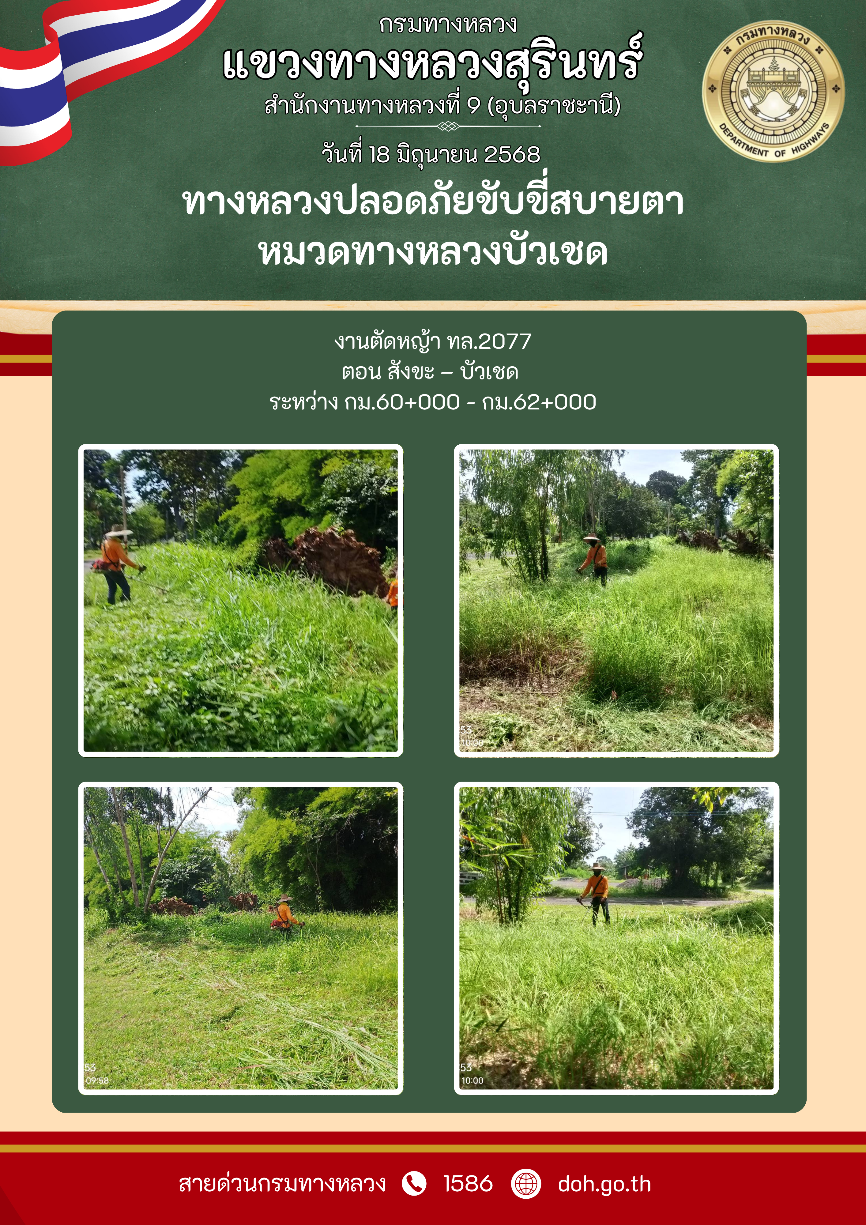 ข้อมูลภาพกิจกรรม : ทางหลวงปลอยภัย ขับขี่สบายตา 18 มิถุนายน 2568