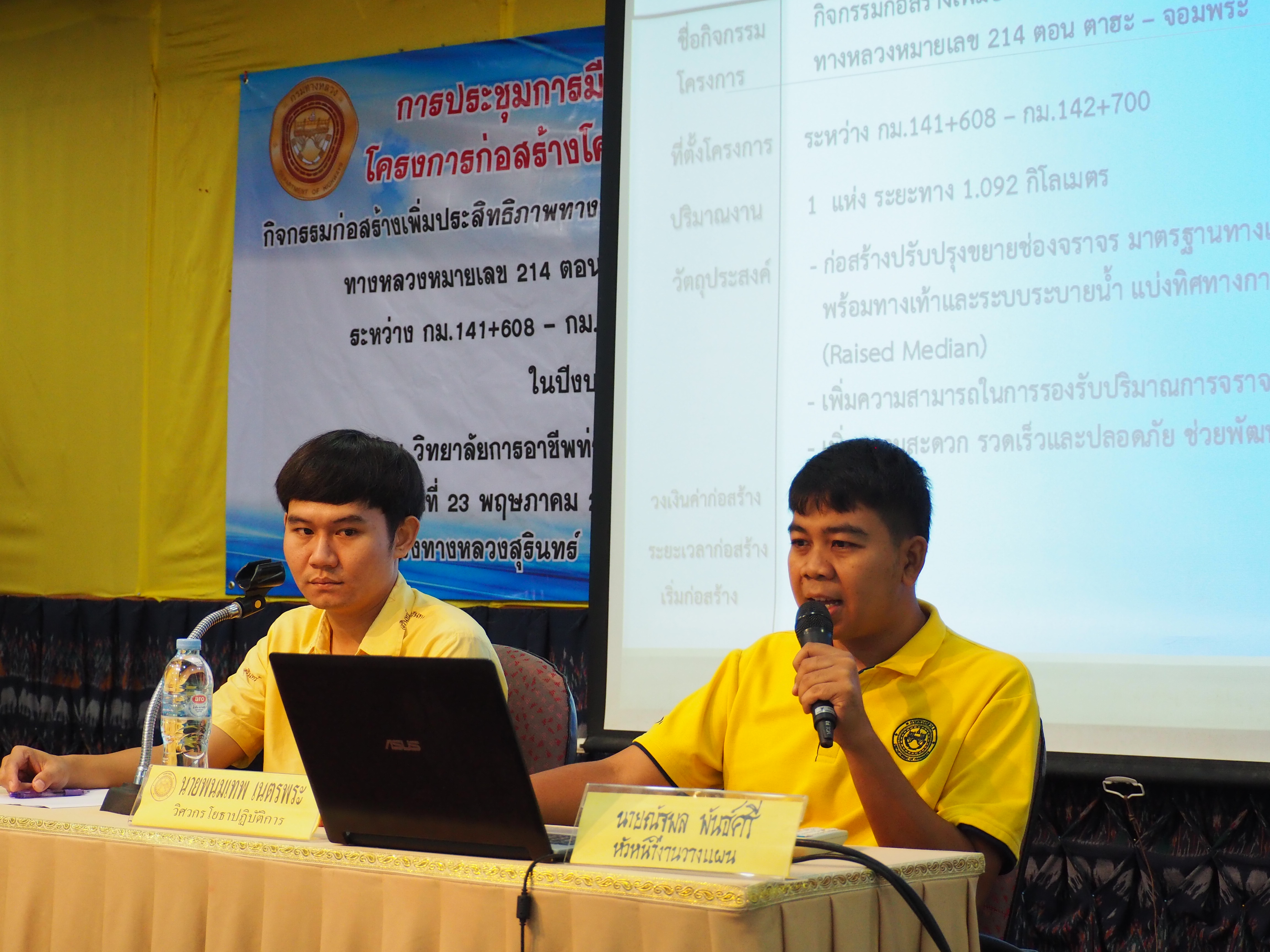 แขวงทางหลวงสุรินทร์ ได้ดำเนินการจัดการมีส่วนร่วมของประชาชน ปีงบประมาณ 2567 โครงการก่อสร้างโครงข่ายทางหลวงแผ่นดิน สำหรับ กิจกรรมยกระดับมาตรฐานและเพิ่มประสิทธิภาพทางหลวง ทางหลวงหมายเลข 214 ตอนควบคุม 0302 ตอน ตาฮะ - จอมพระ ระหว่าง กม.141+608 - กม.142+700 ระยะทาง 1.092 กิโลเมตร โดยดำเนินการประชุมในวันพฤหัสบดีที่ 23 พฤษภาคม 2567 เวลา 09.00 น. - 14.00 น. ณ วิทยาลัยการอาชีพท่าตูม ตำบลท่าตูม อำเภอท่าตูม จังหวัดสุรินทร์ เสร็จเรียบร้อยแล้ว