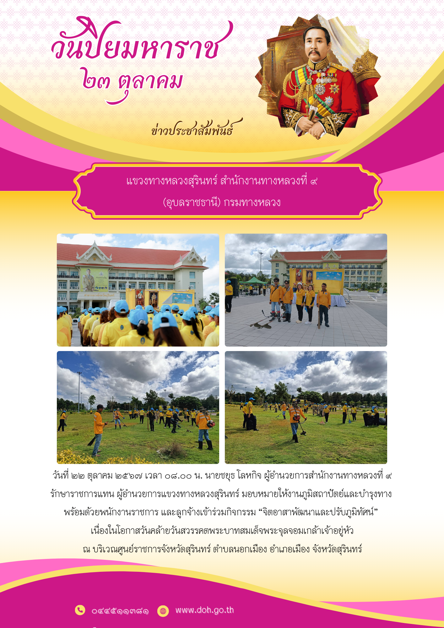 รักษาราชการแทน ผู้อำนวยการแขวงทางหลวงสุรินทร์ มอบหมายให้งานภูมิสถาปัตย์และบำรุงทาง