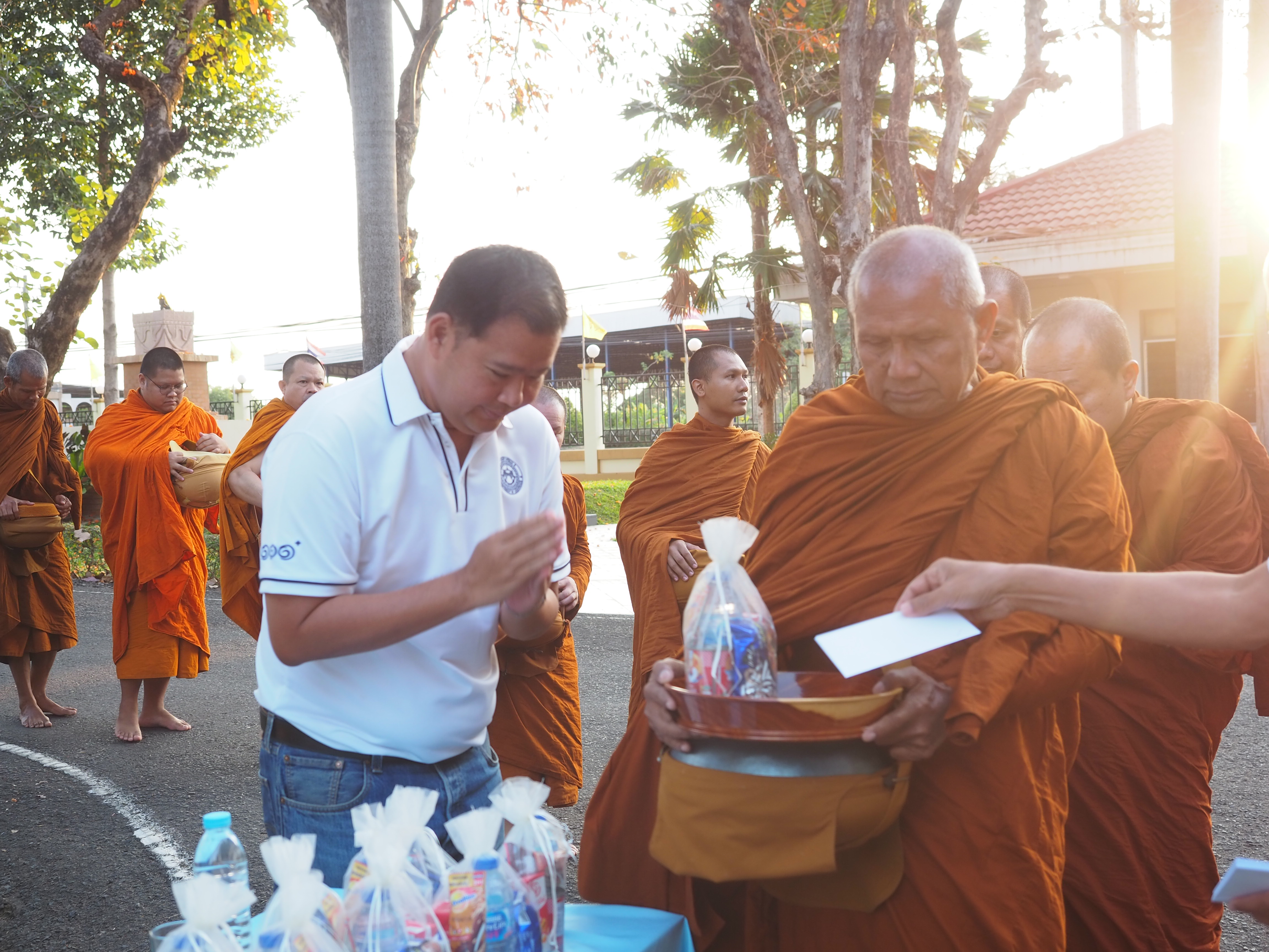 พร้อมด้วย คณะผู้บริหาร และเจ้าหน้าที่ในสังกัด ทำบุญตักบาตรข้าวสารอาหารแห้งและถวายภัตตาหาร แด่ พระเทพวชิรญาณโสภณ (เยื้อน ขนฺติพโล) เจ้าอาวาสวัดเขาศาลา และพระภิกษุสงฆ์ จำนวน 9 รูป