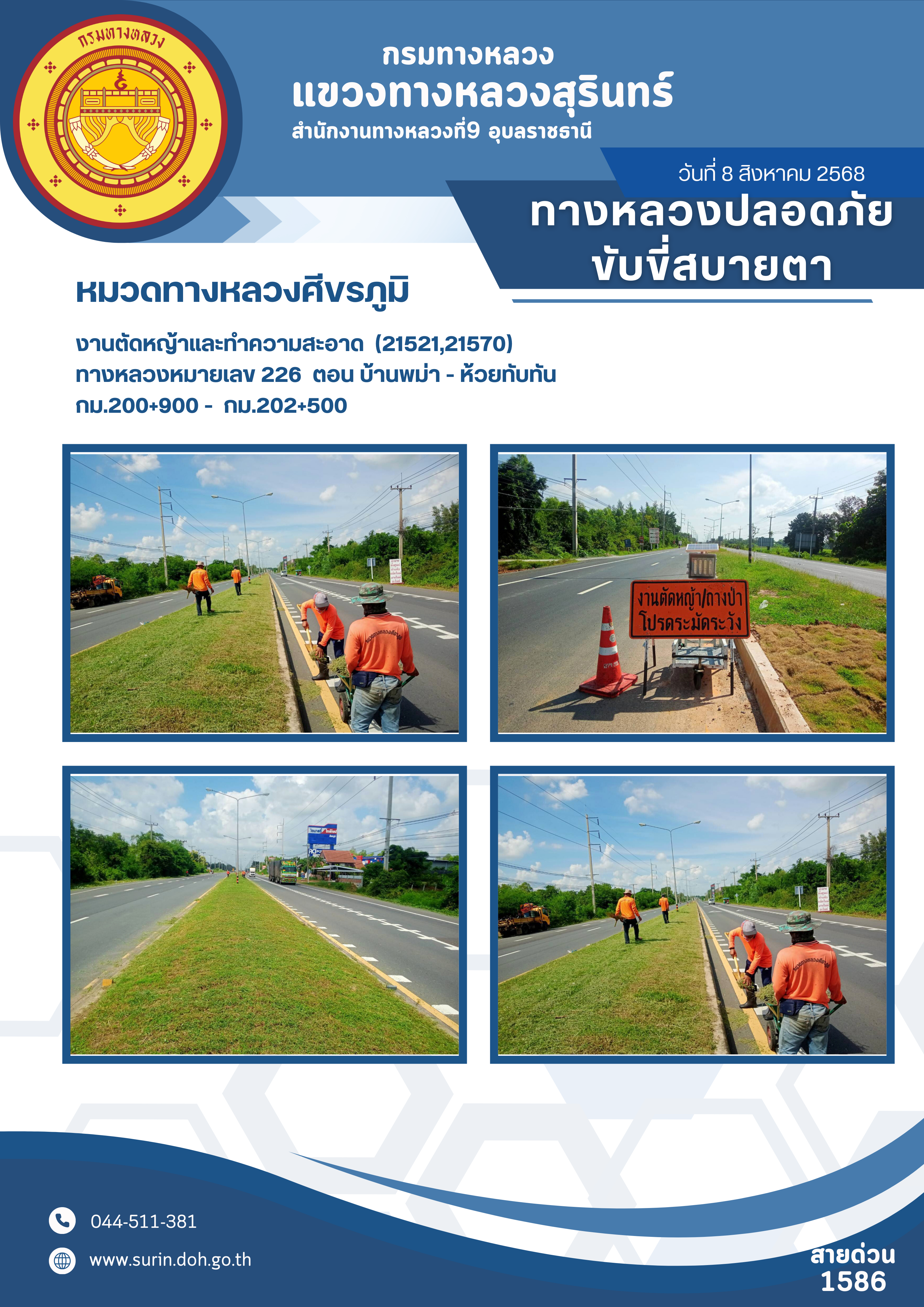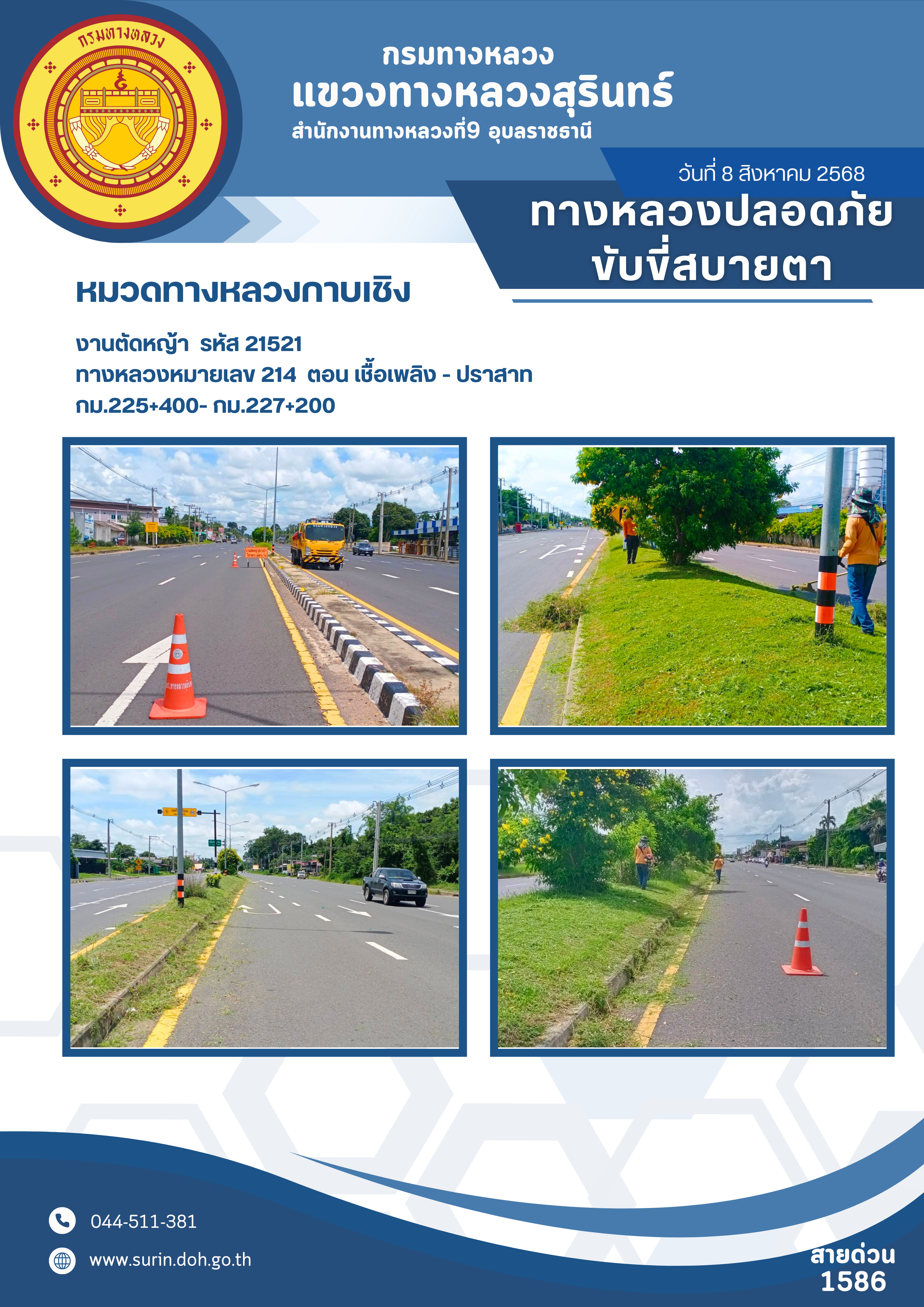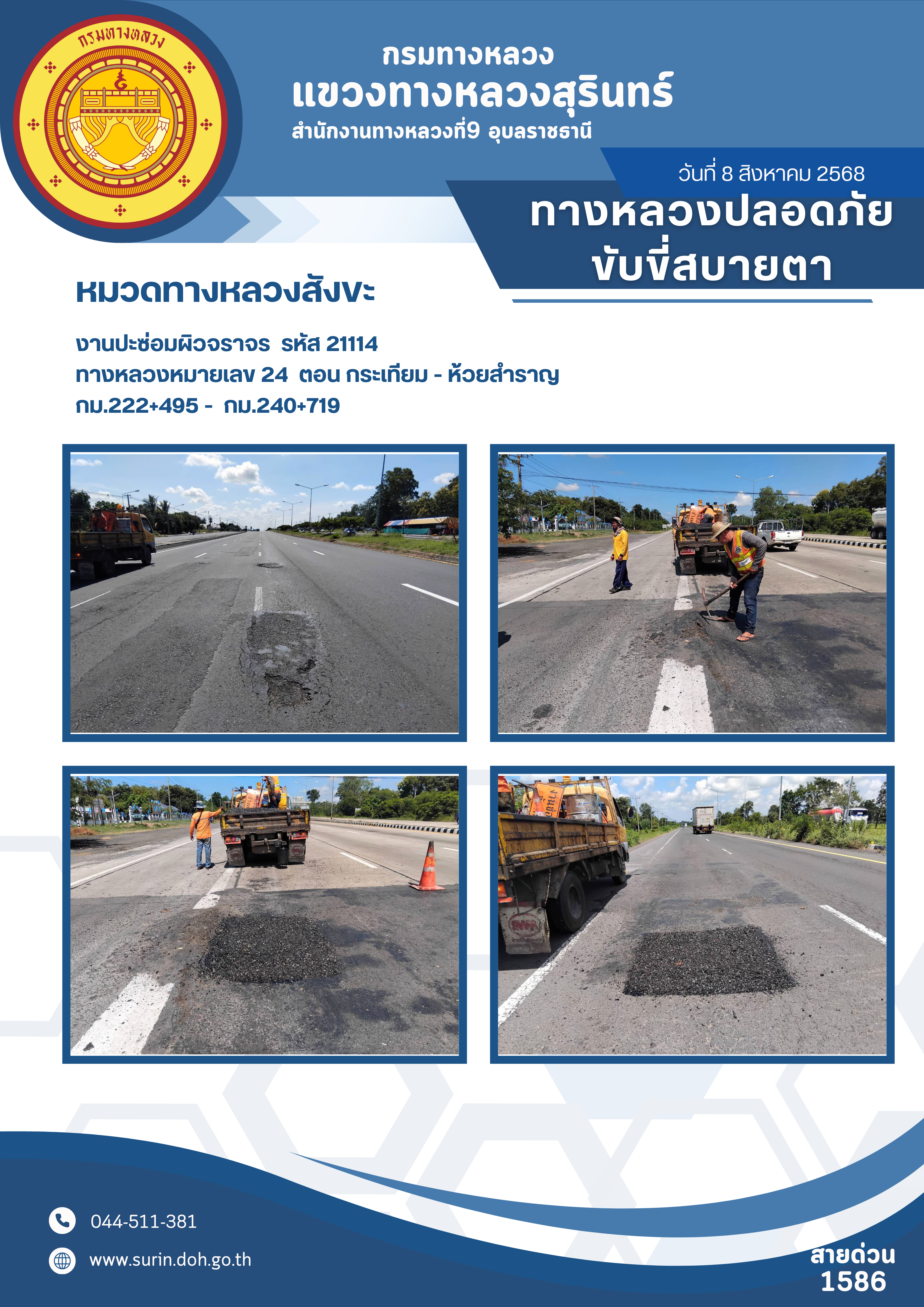 ข้อมูลข่าว : ทางหลวงปลอดภัย ขับขี่สบายตา 8 สิงหาคม 2568
