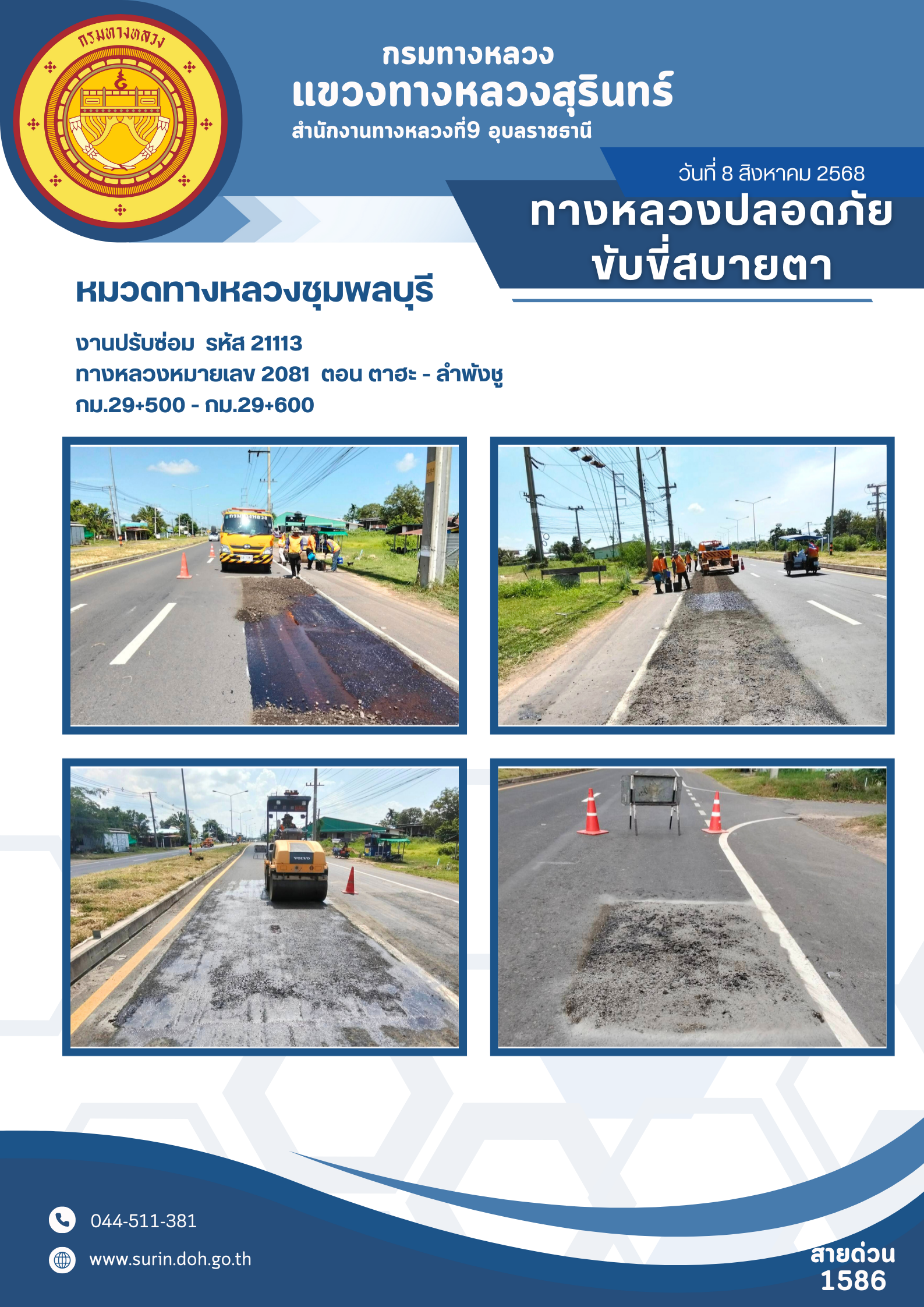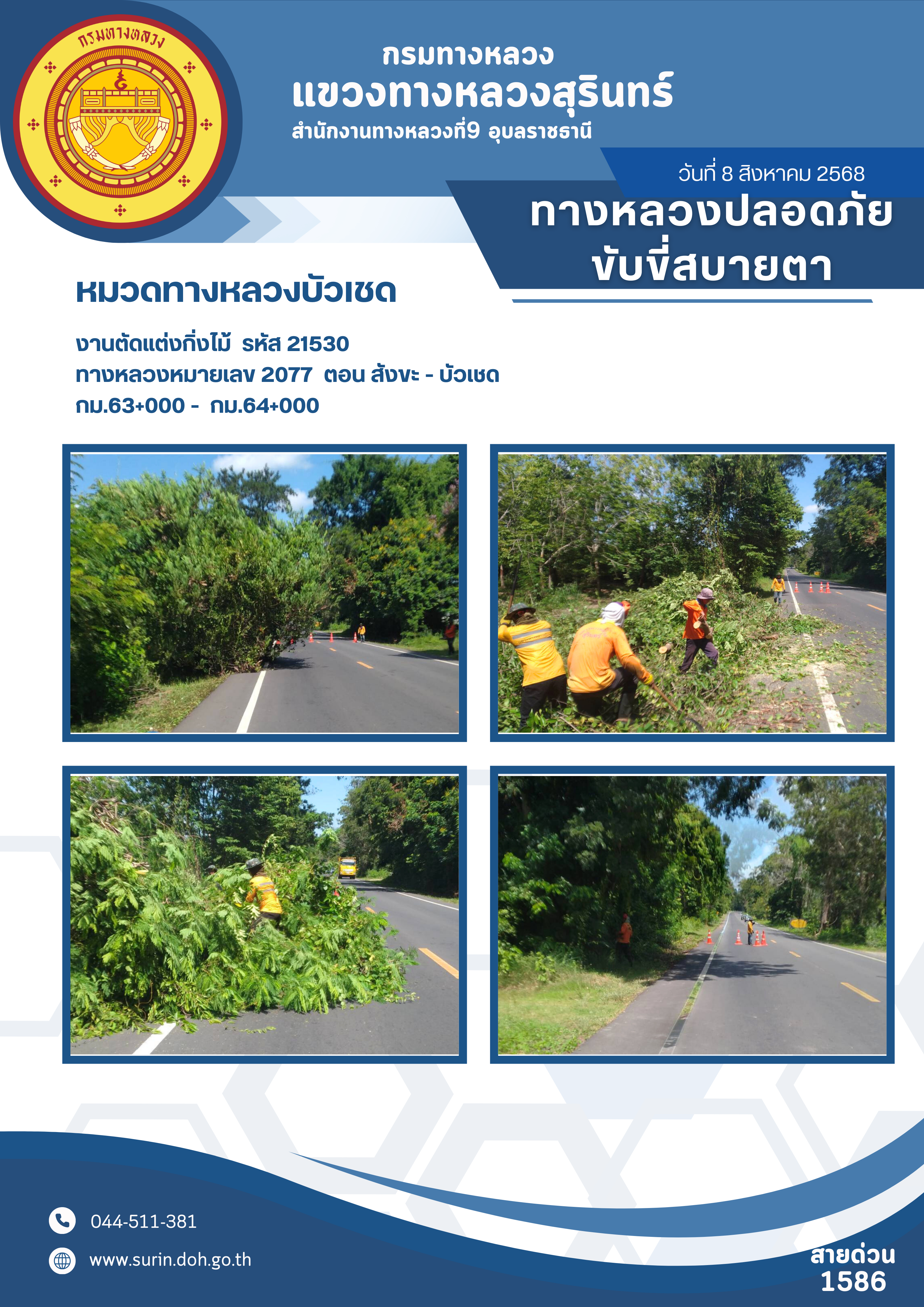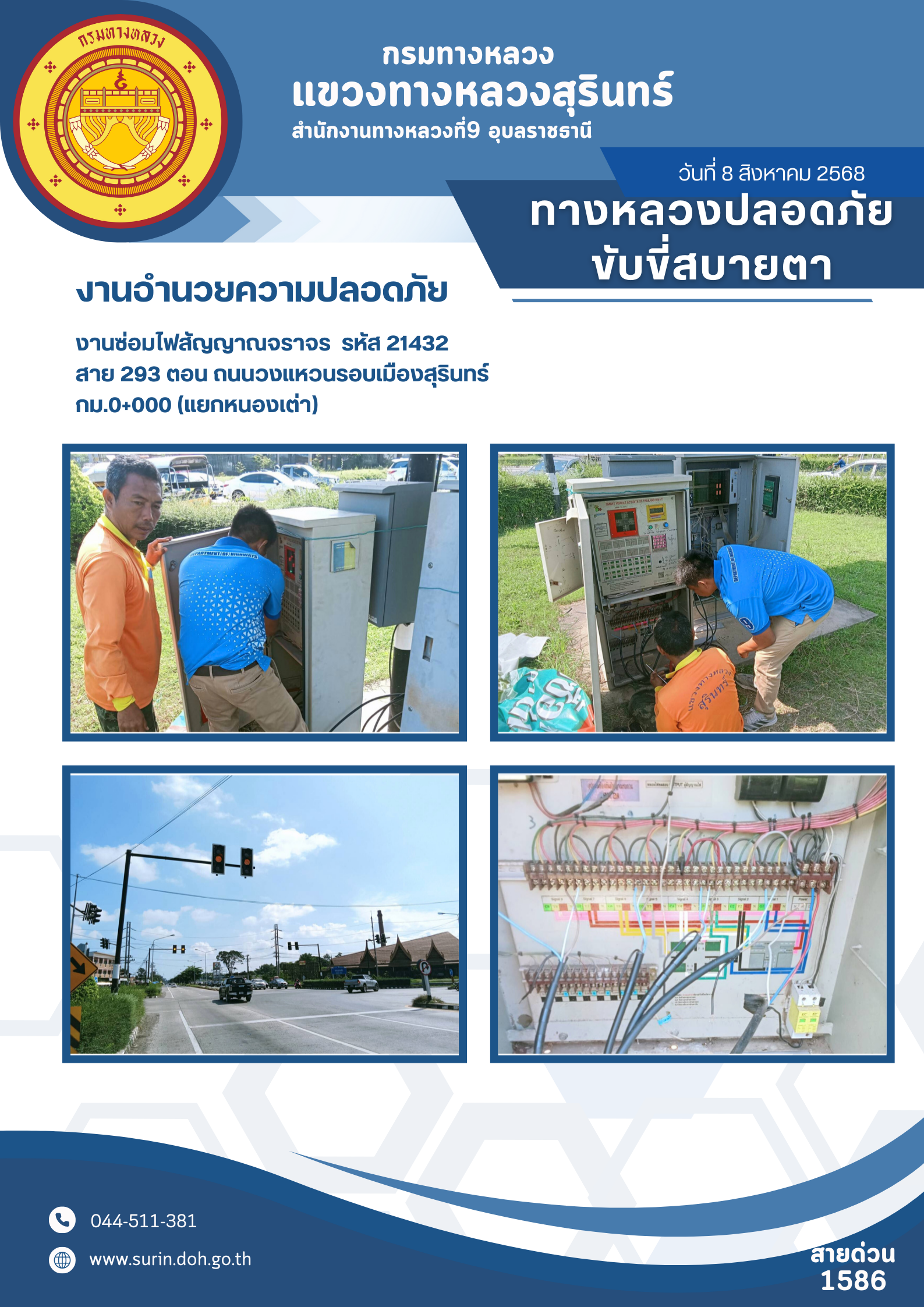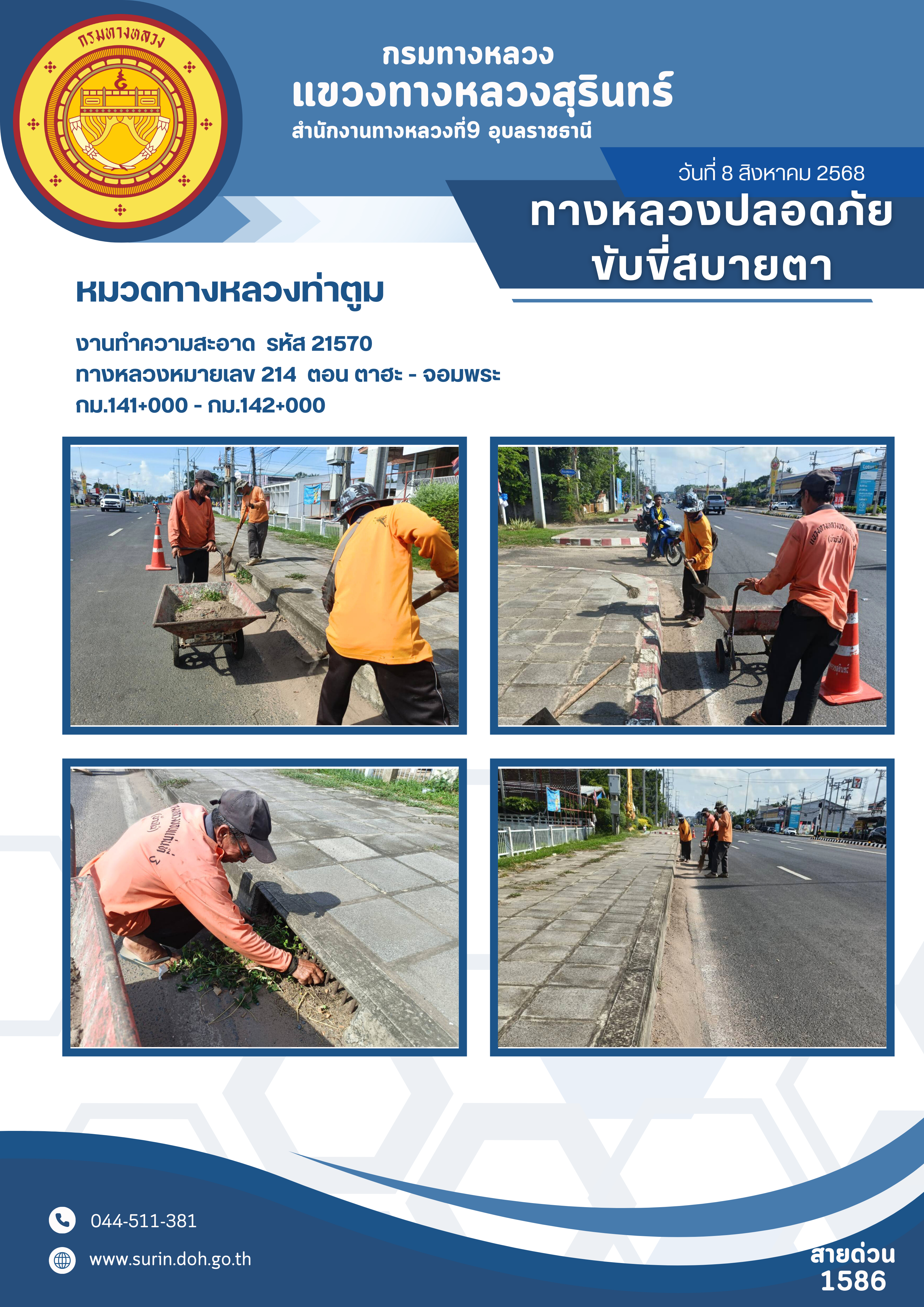 ข้อมูลข่าว : ทางหลวงปลอดภัย ขับขี่สบายตา 8 สิงหาคม 2568