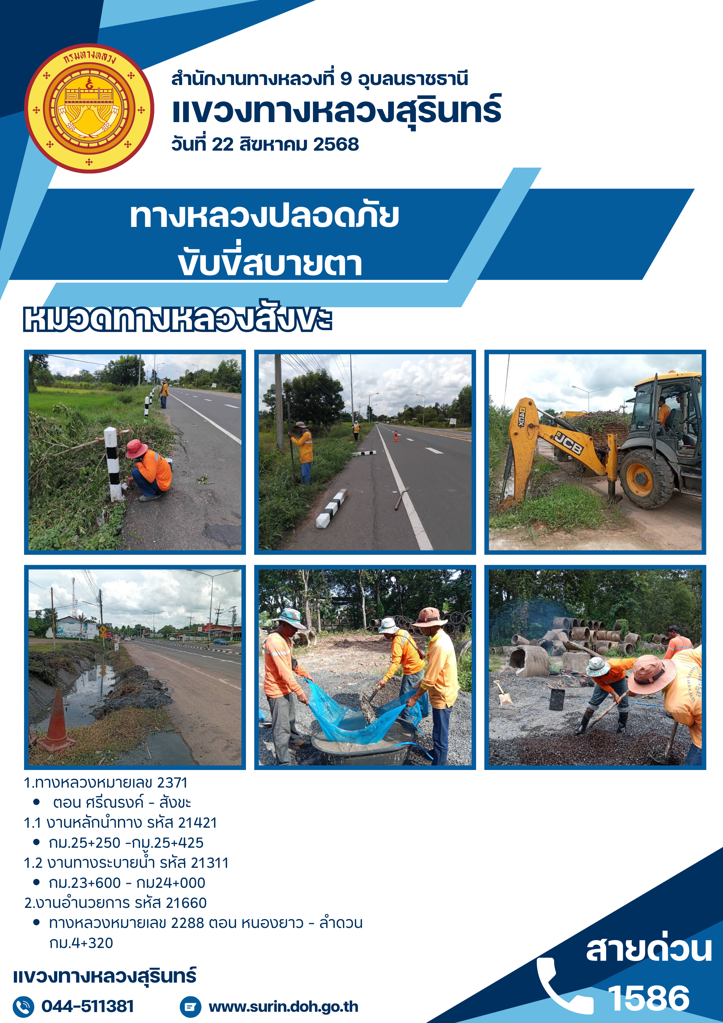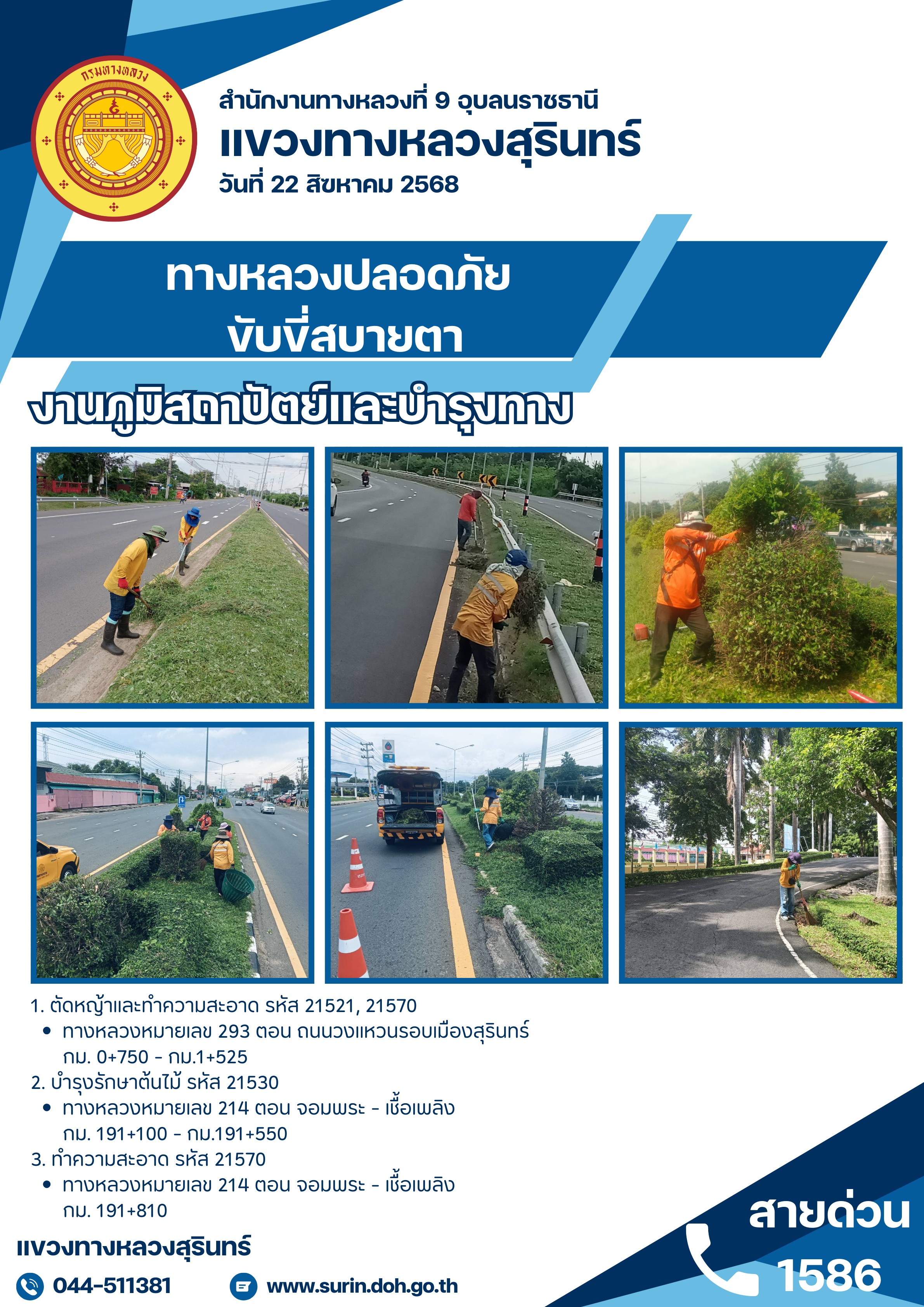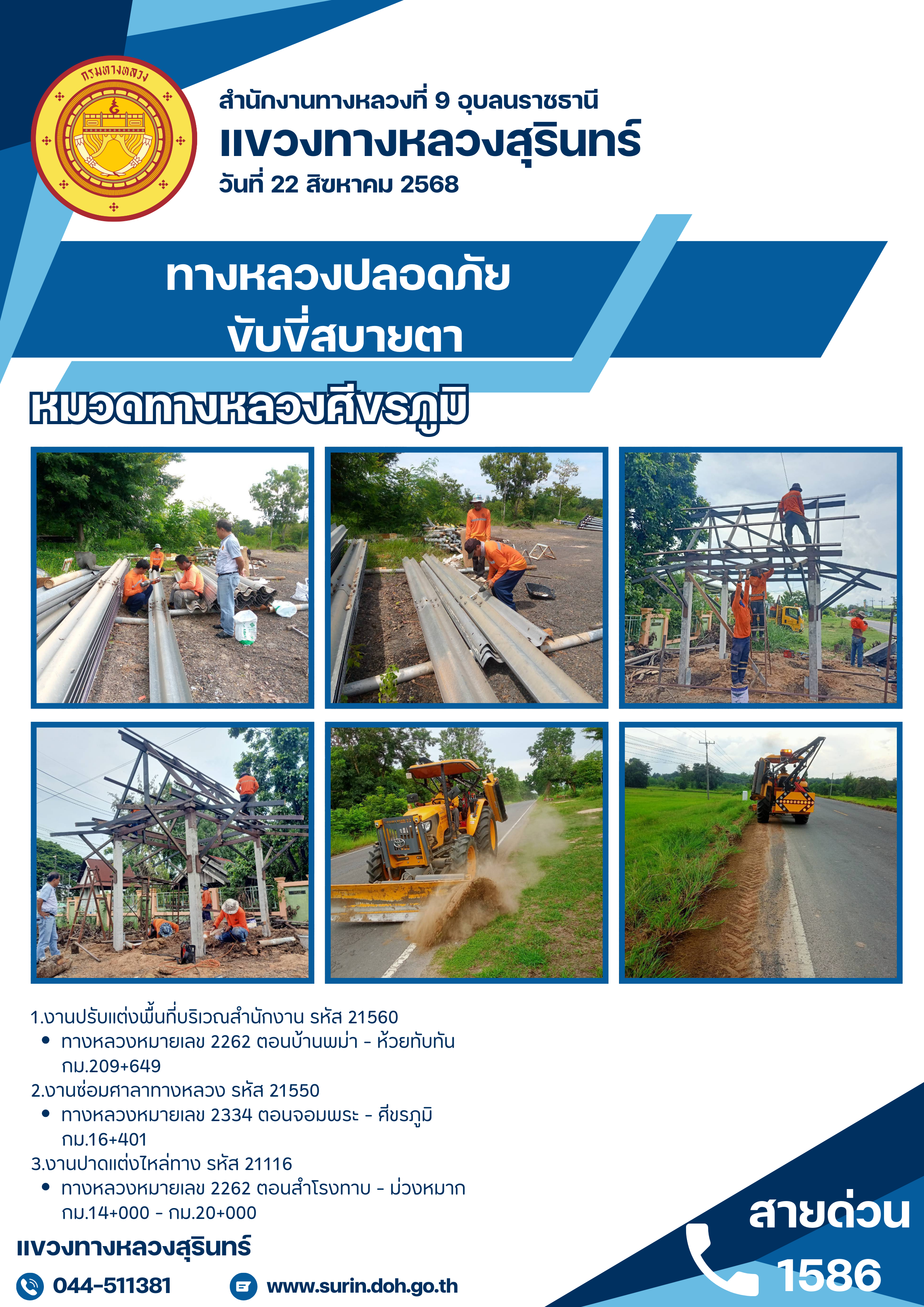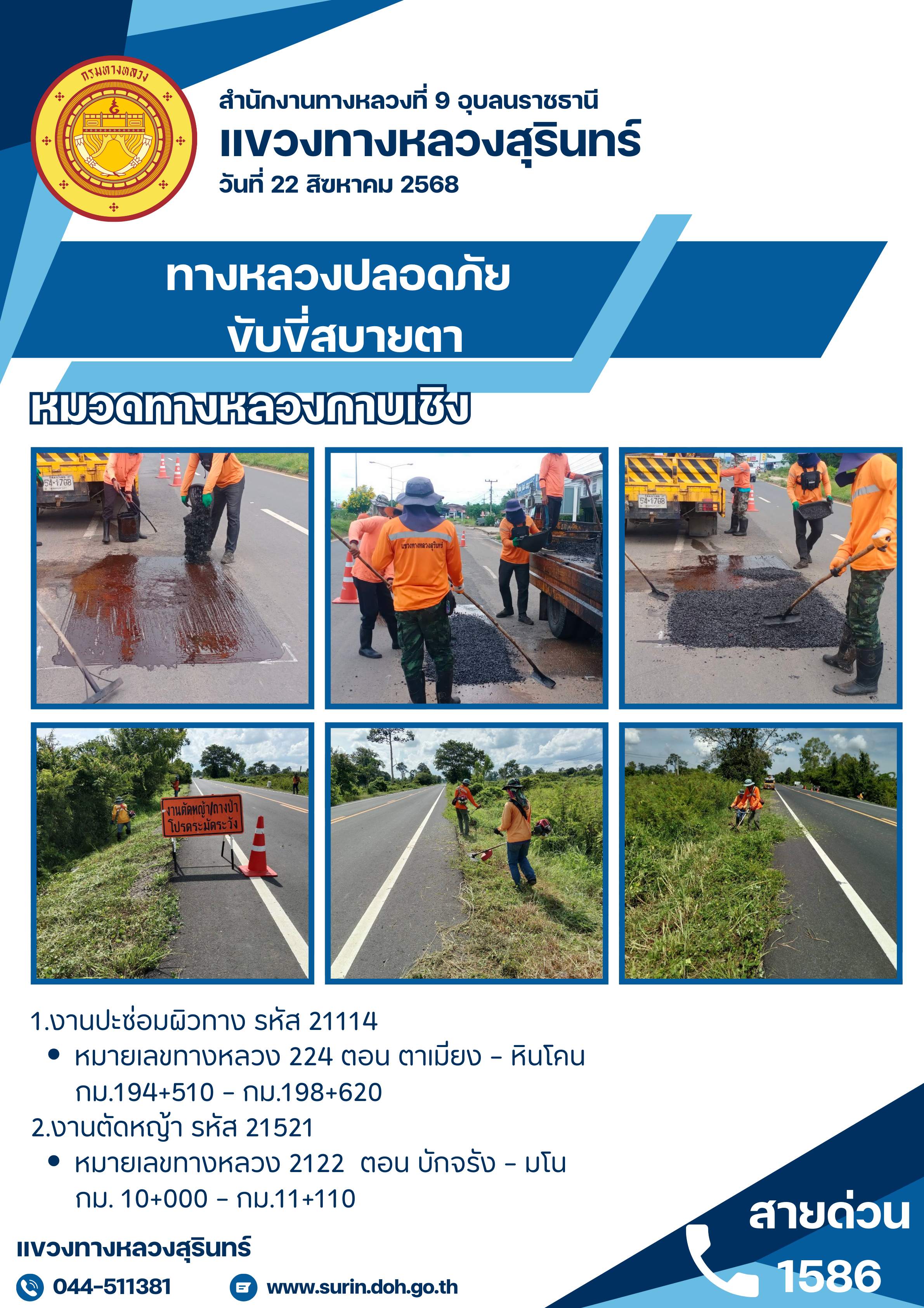 ข้อมูลข่าว : ทางหลวงปลอดภัย ขับขี่สบายตา 22 สิงหาคม 2568