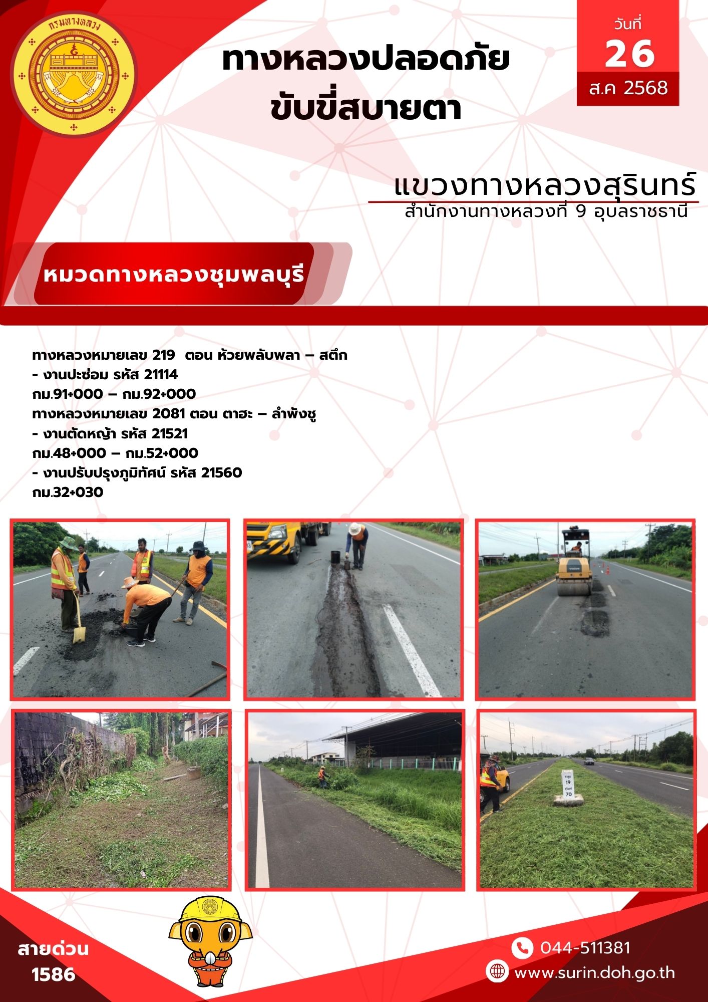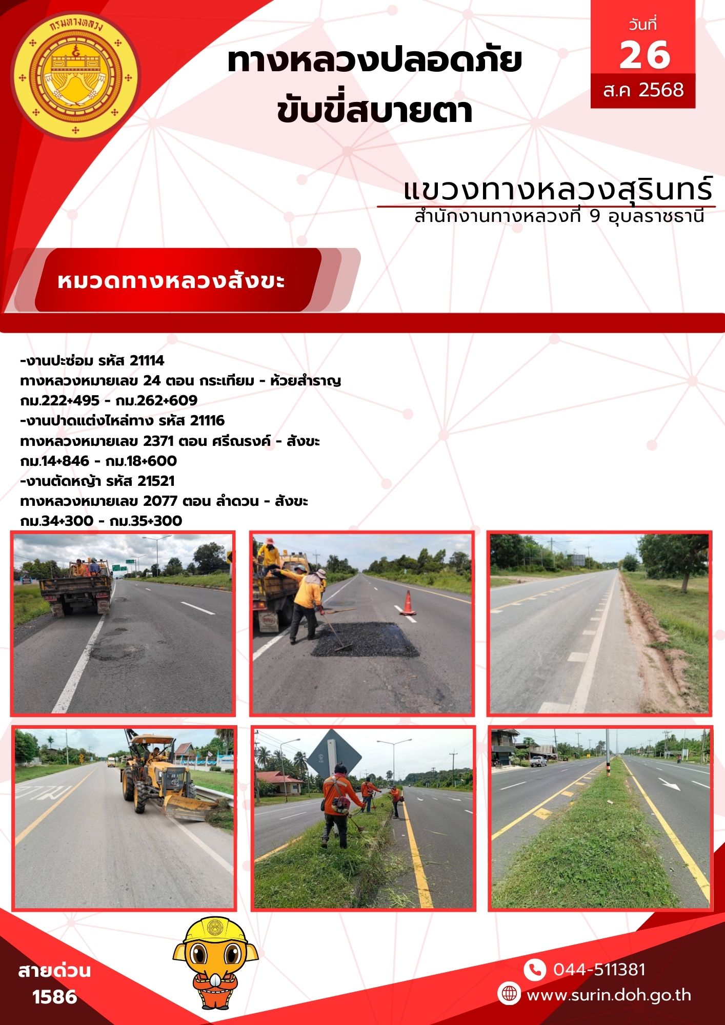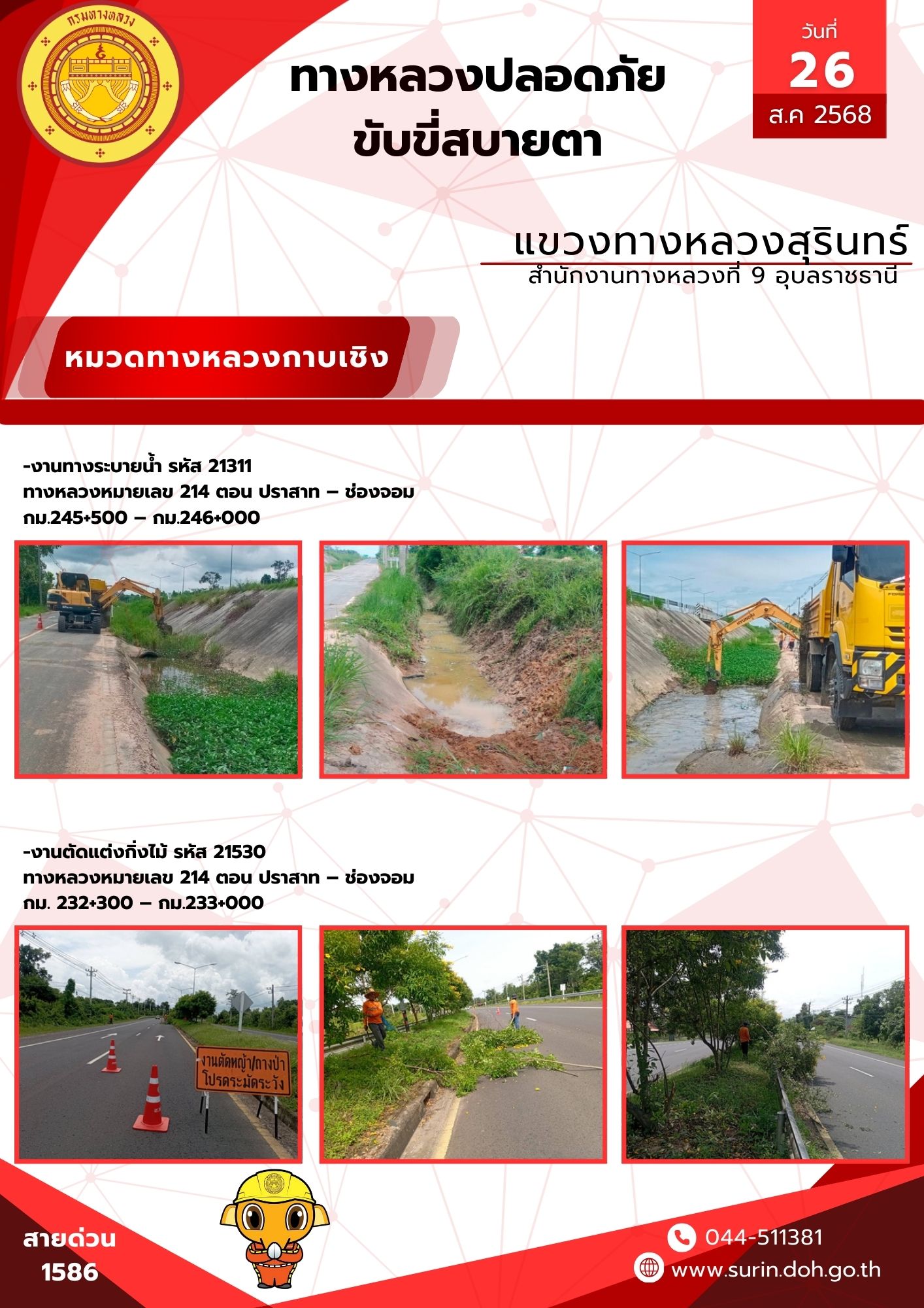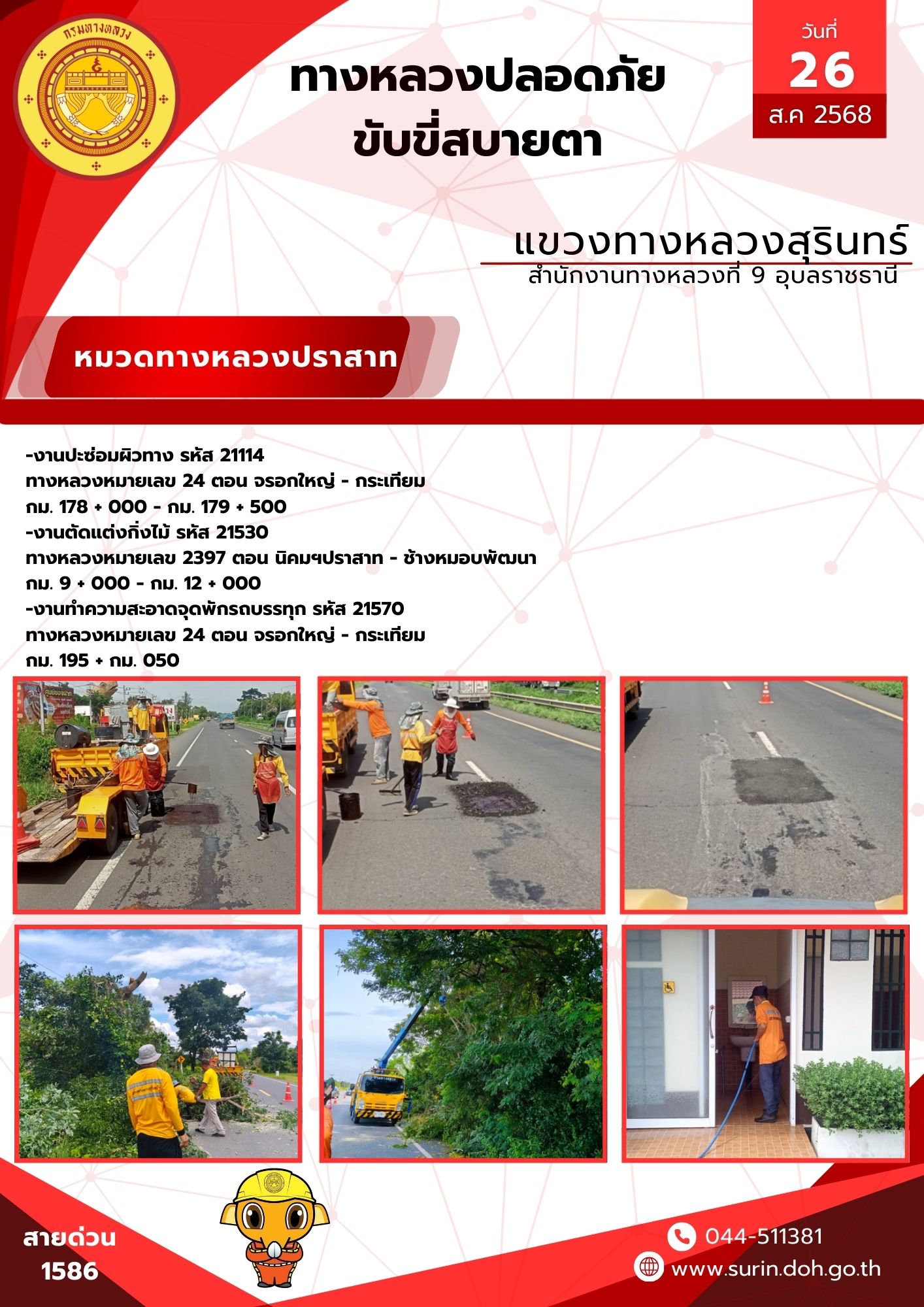 ข้อมูลข่าว : ทางหลวงปลอดภัย ขับขี่สบายตา 26 สิงหาคม 2568
