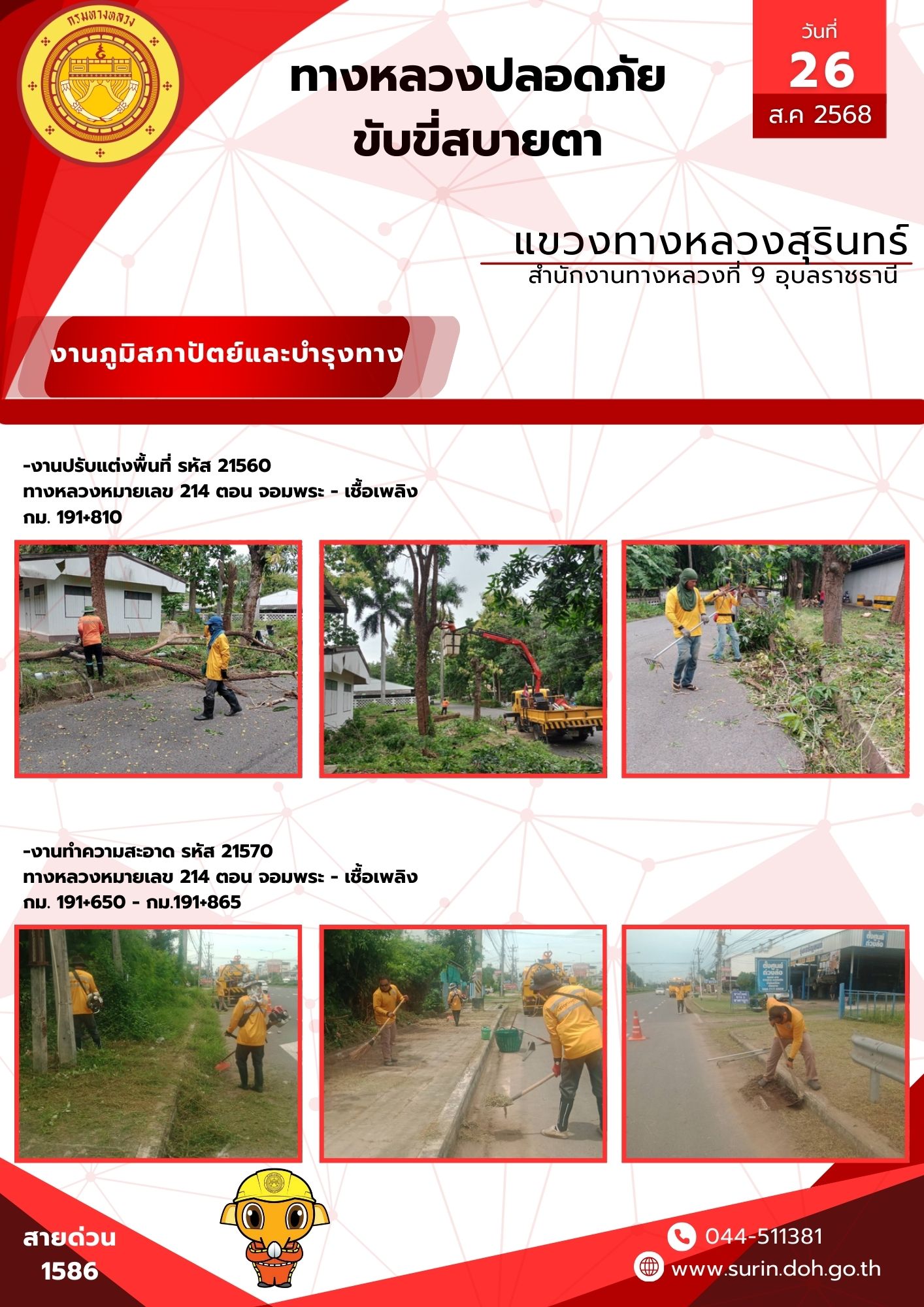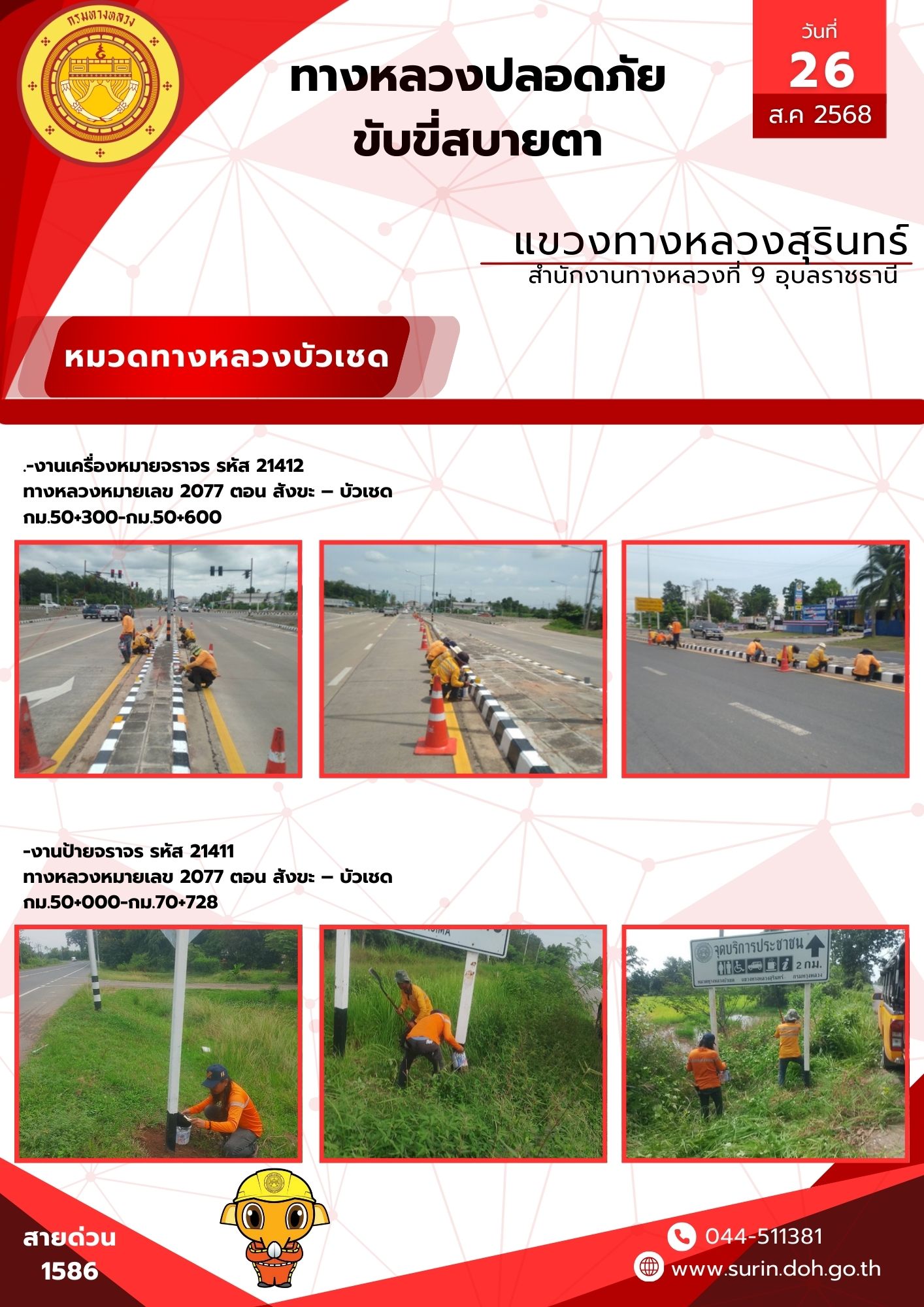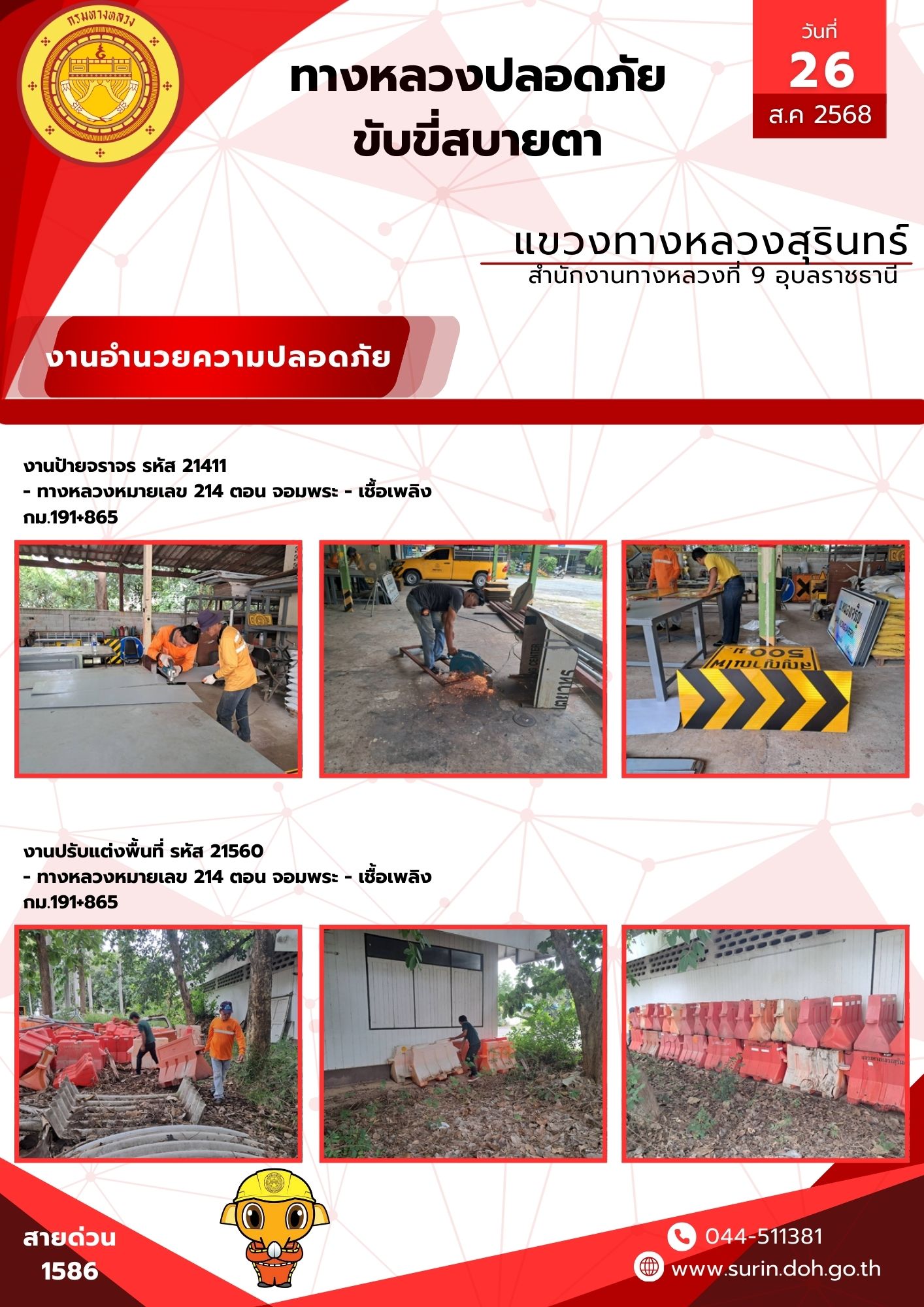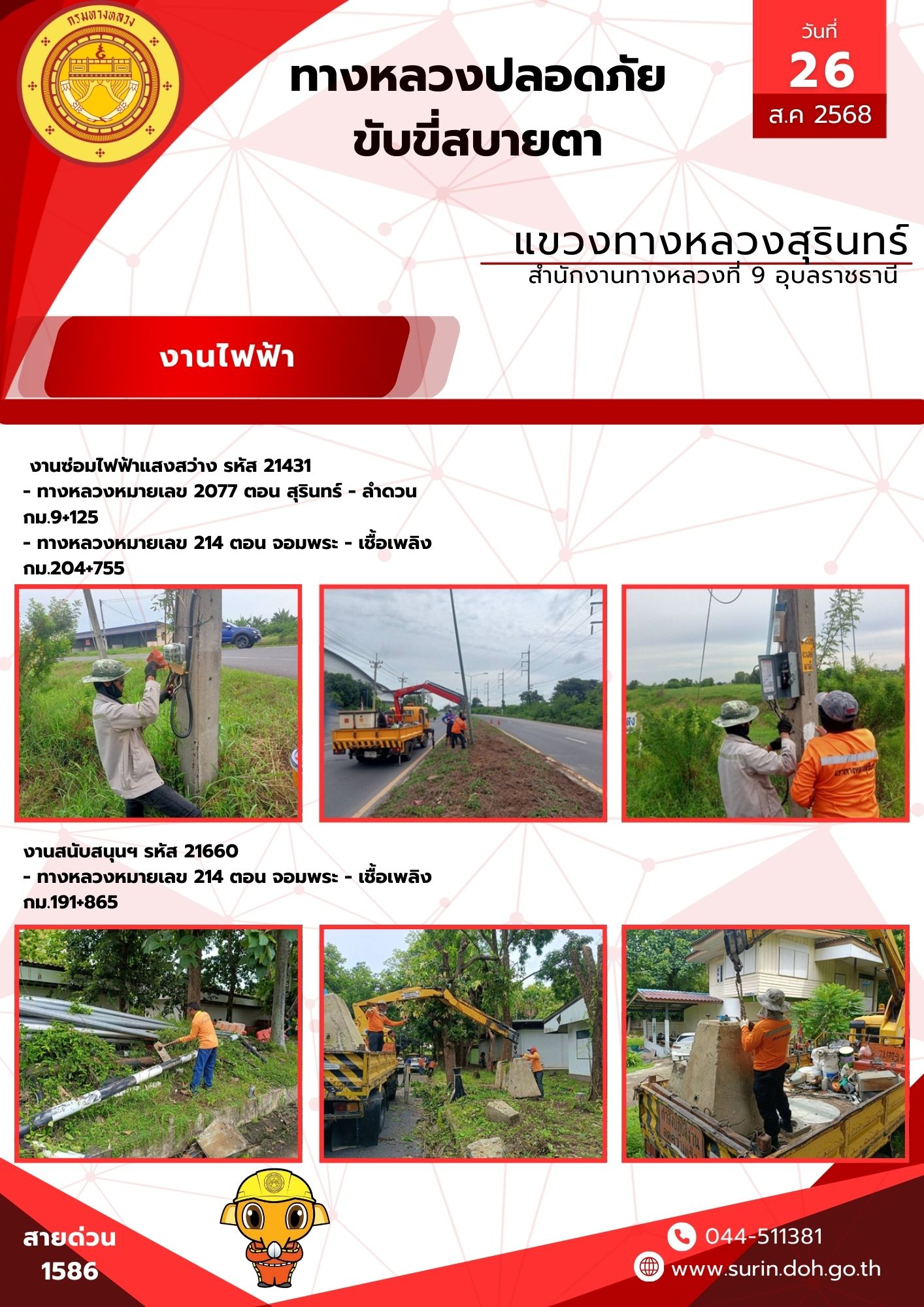 ข้อมูลข่าว : ทางหลวงปลอดภัย ขับขี่สบายตา 26 สิงหาคม 2568