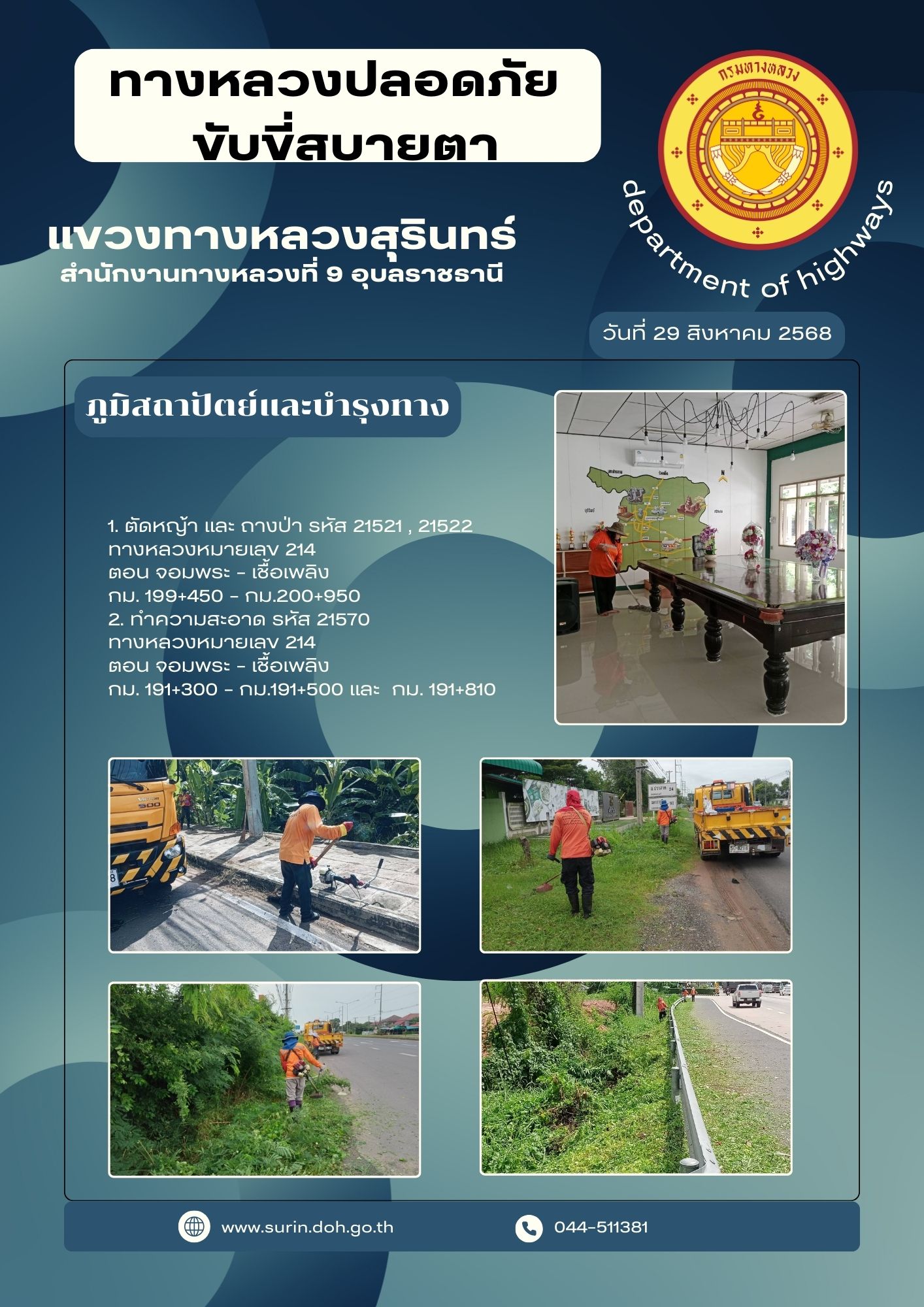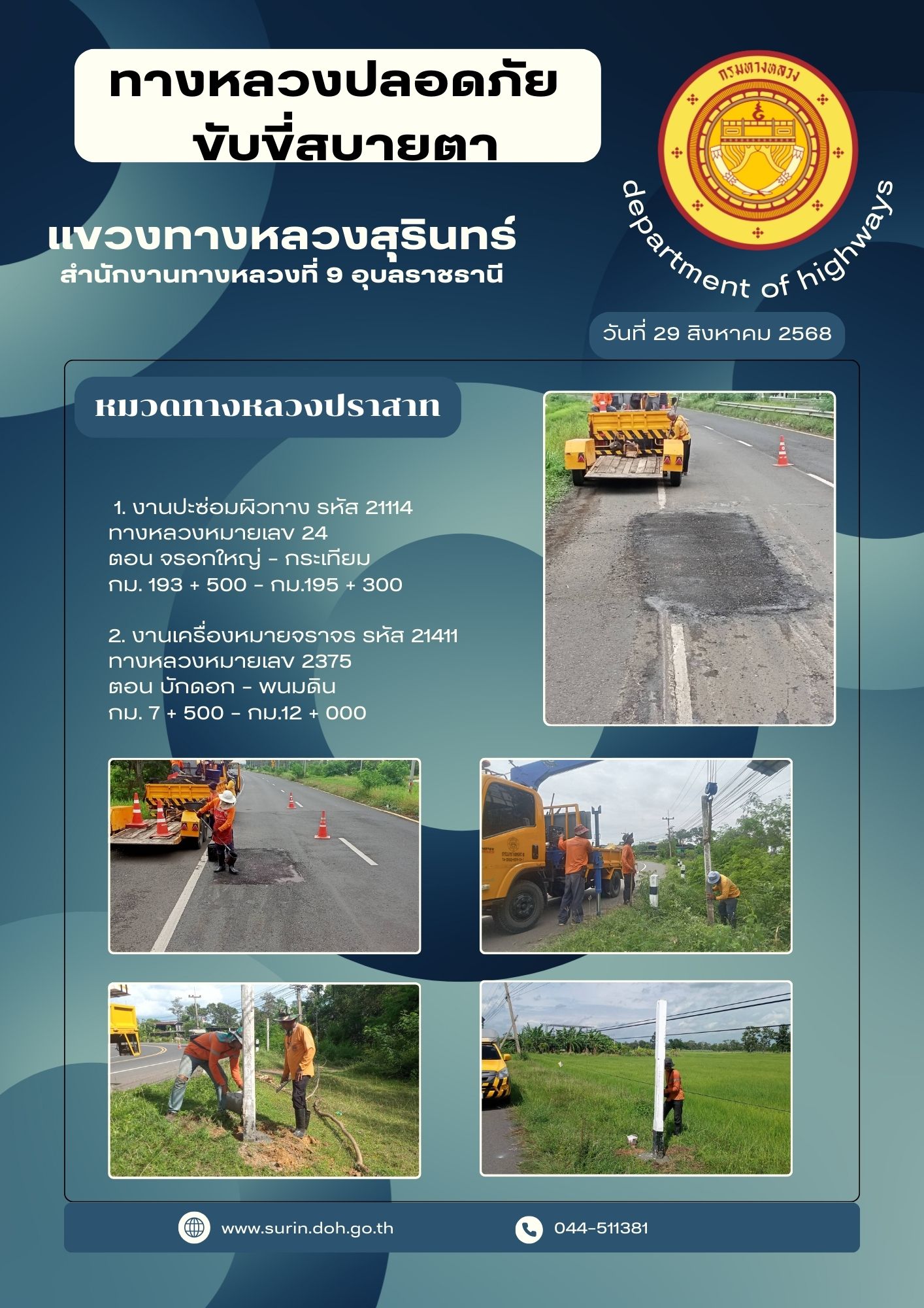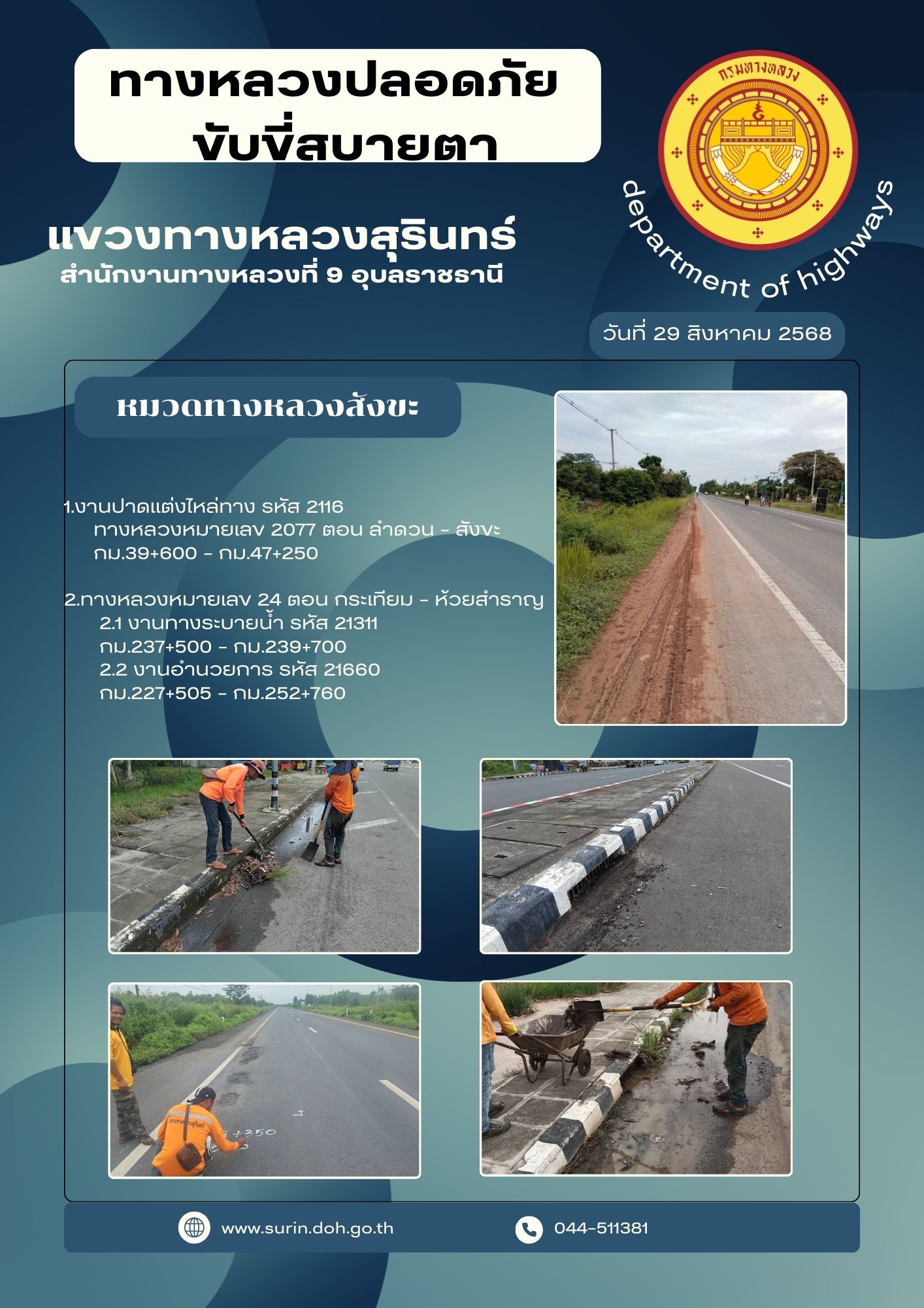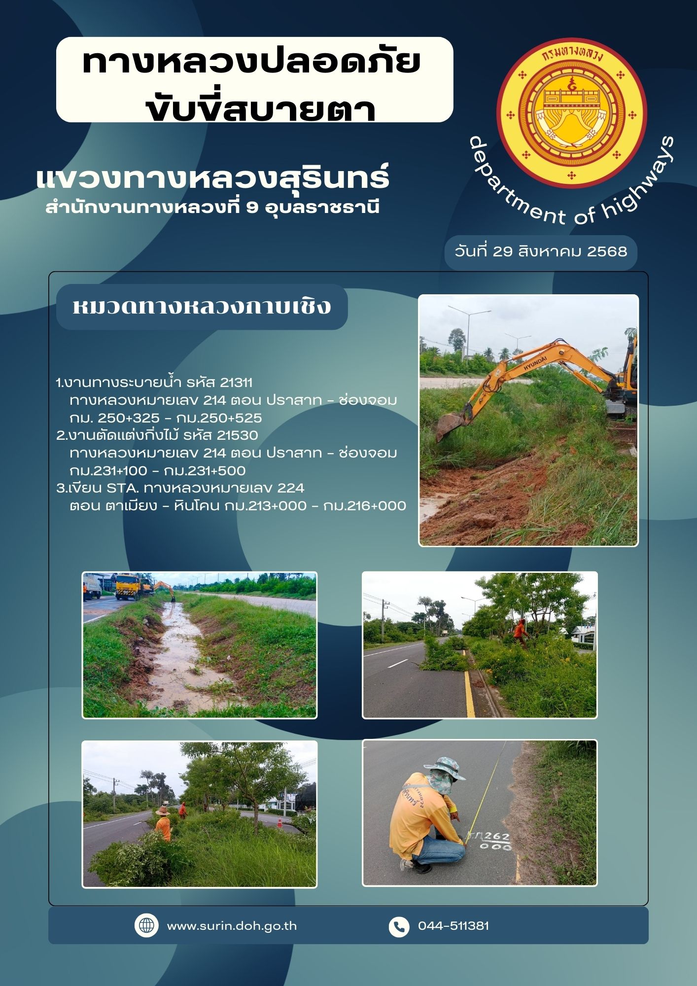 ข้อมูลข่าว : ทางหลวงปลอดภัย ขับขี่สบายตา 29 สิงหาคม 2568