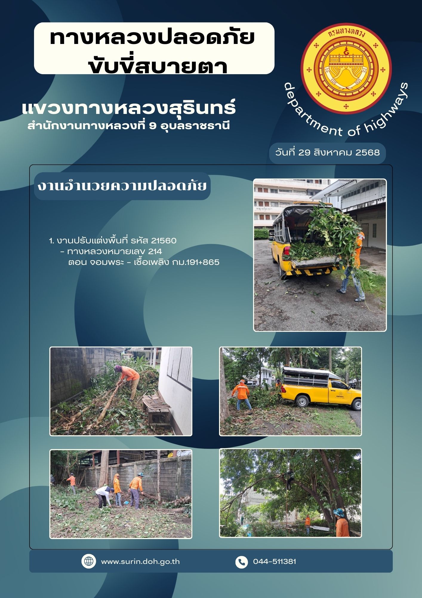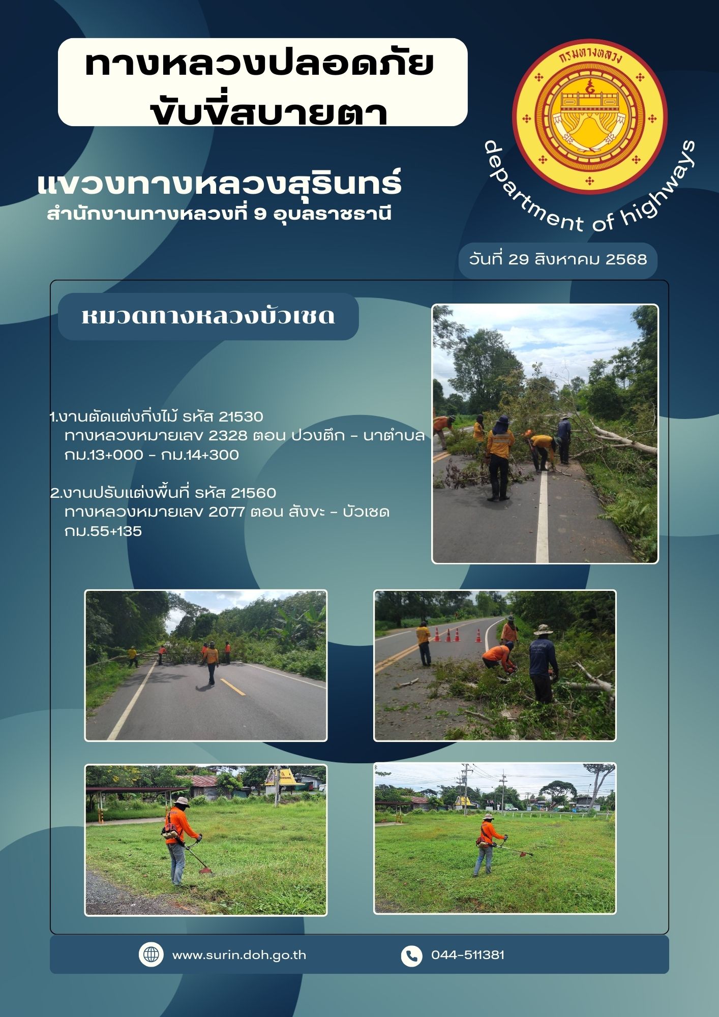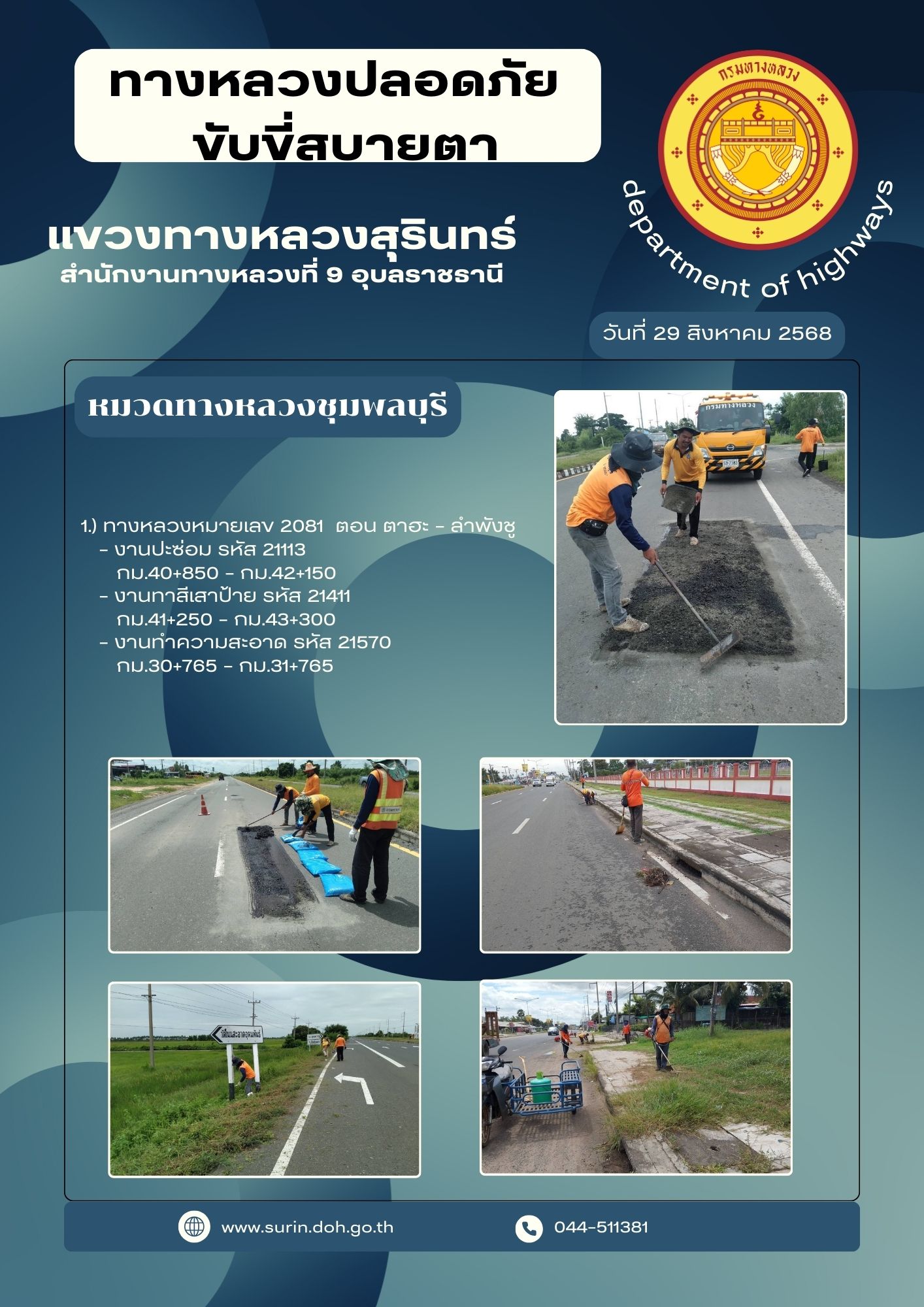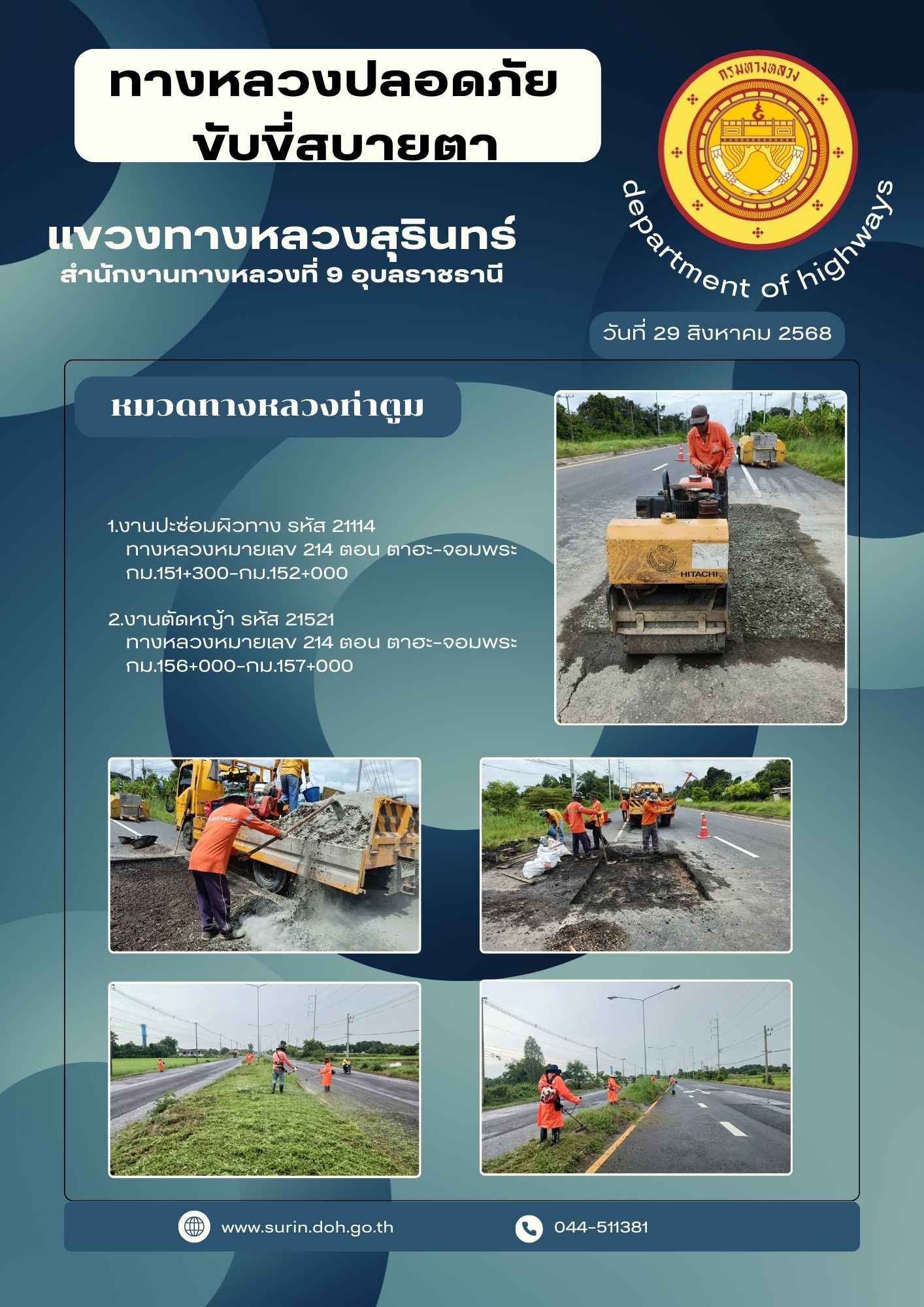 ข้อมูลข่าว : ทางหลวงปลอดภัย ขับขี่สบายตา 29 สิงหาคม 2568