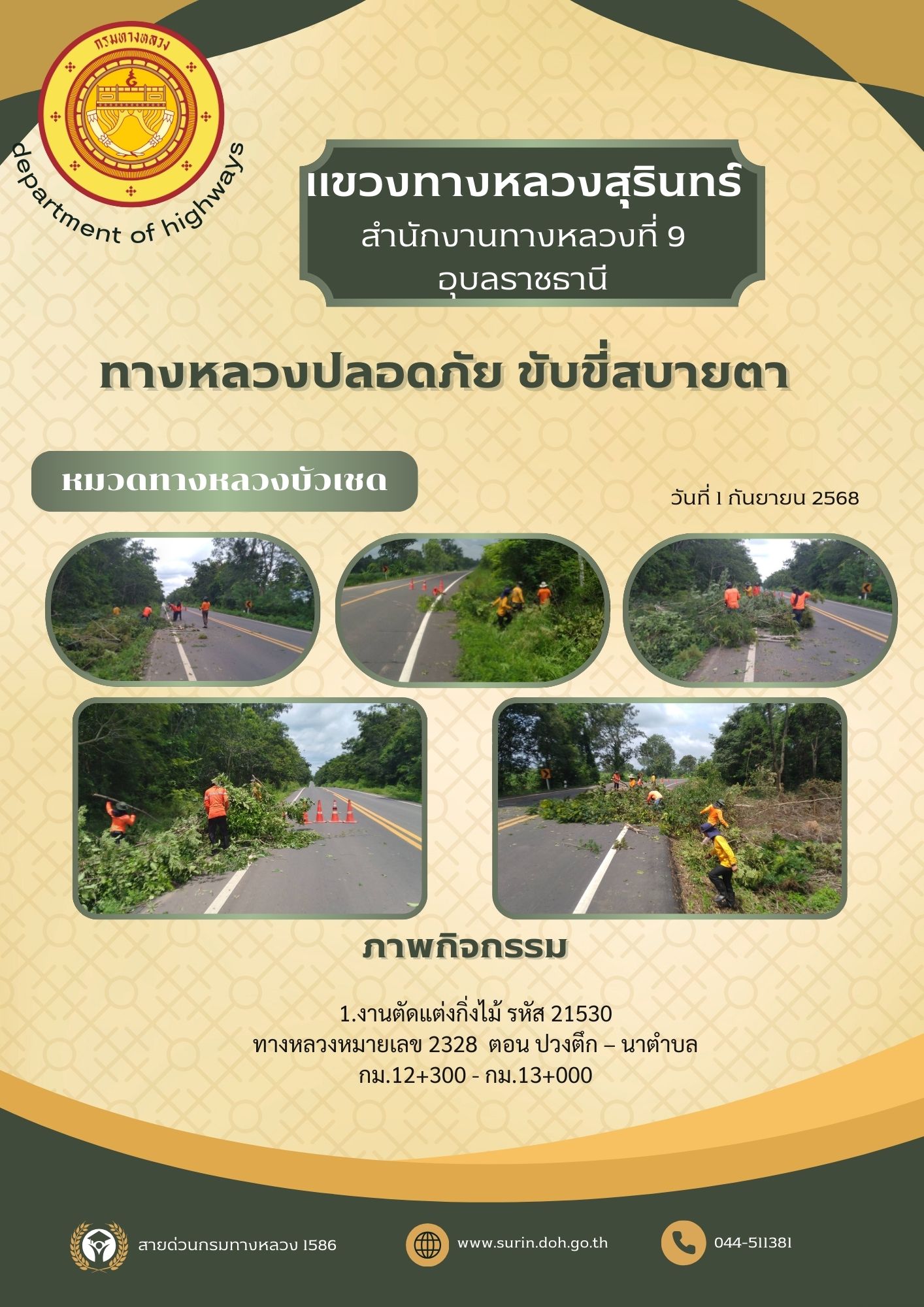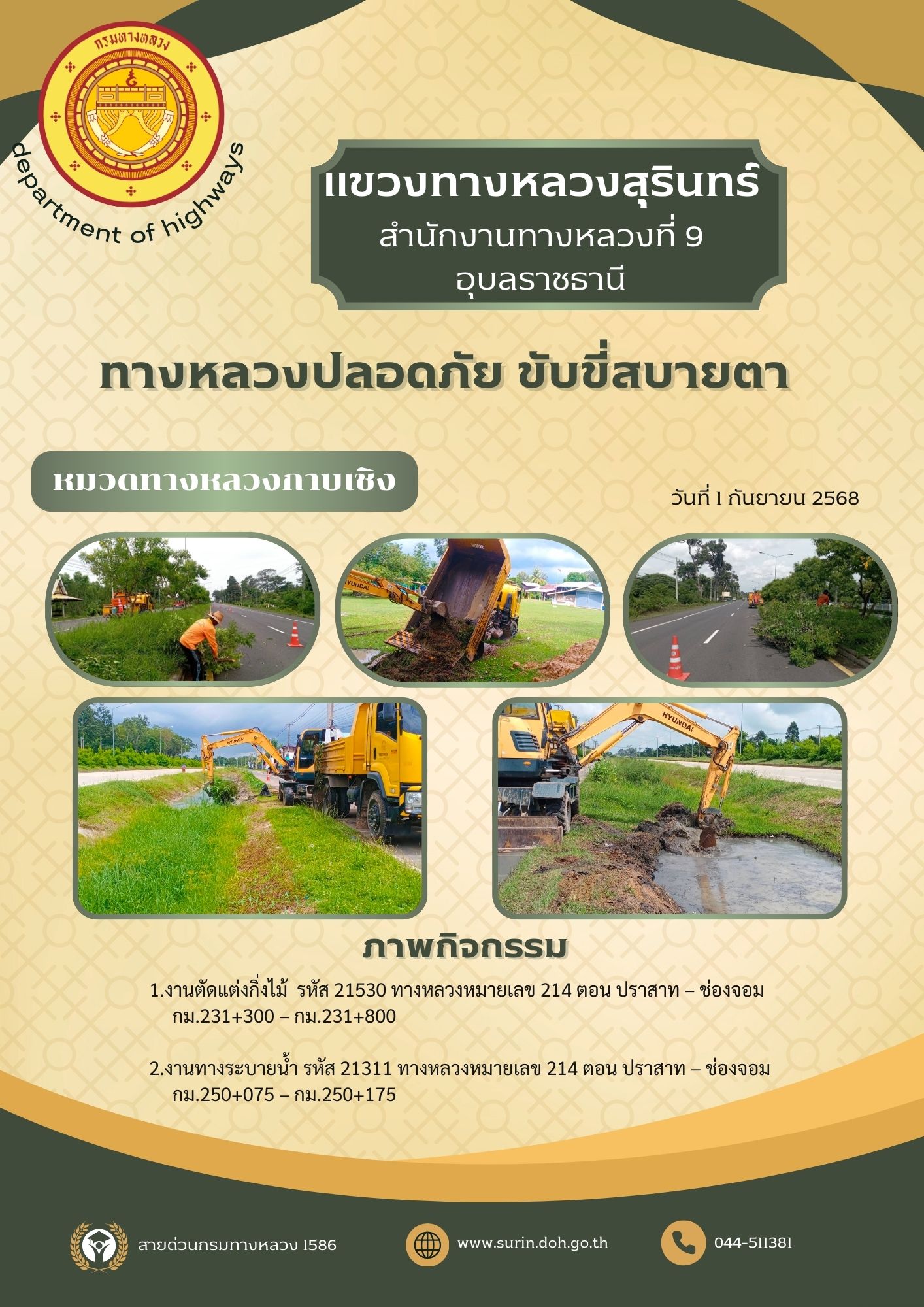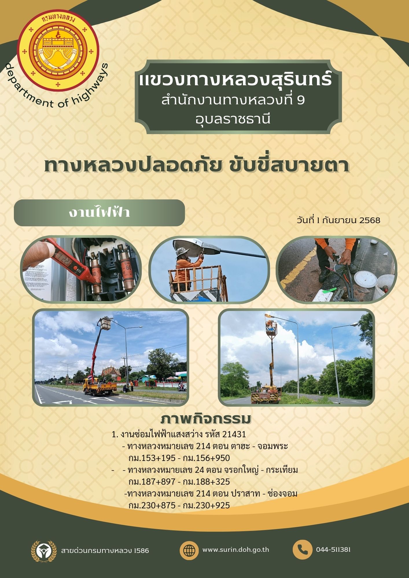 ข้อมูลข่าว : ทางหลวงปลอดภัย ขับขี่สบายตา 1 กันยายน 2568