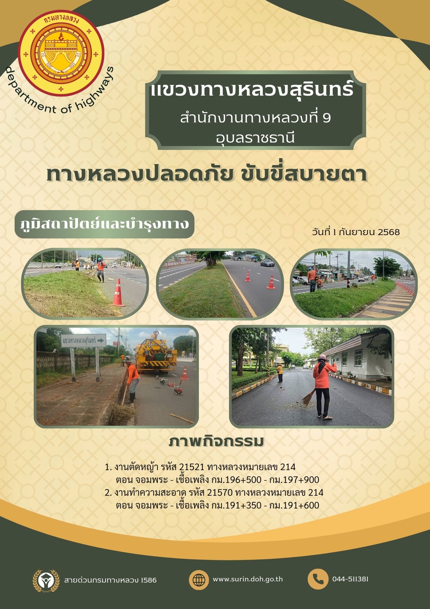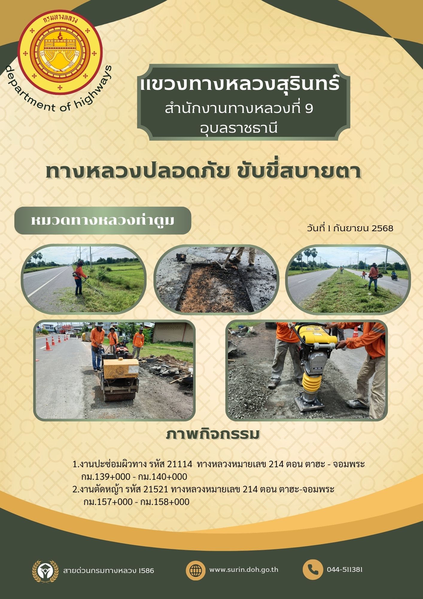 ทางหลวงปลอดภัย ขับขี่สบายตา 1 กันยายน 2568