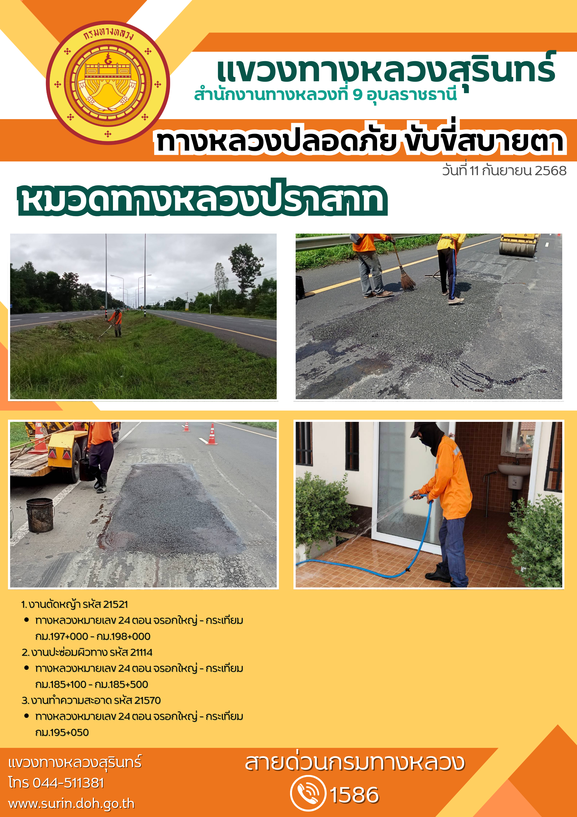 ทางหลวงปลอดภัย ขับขี่สบายตา 11 กันยายน 2568