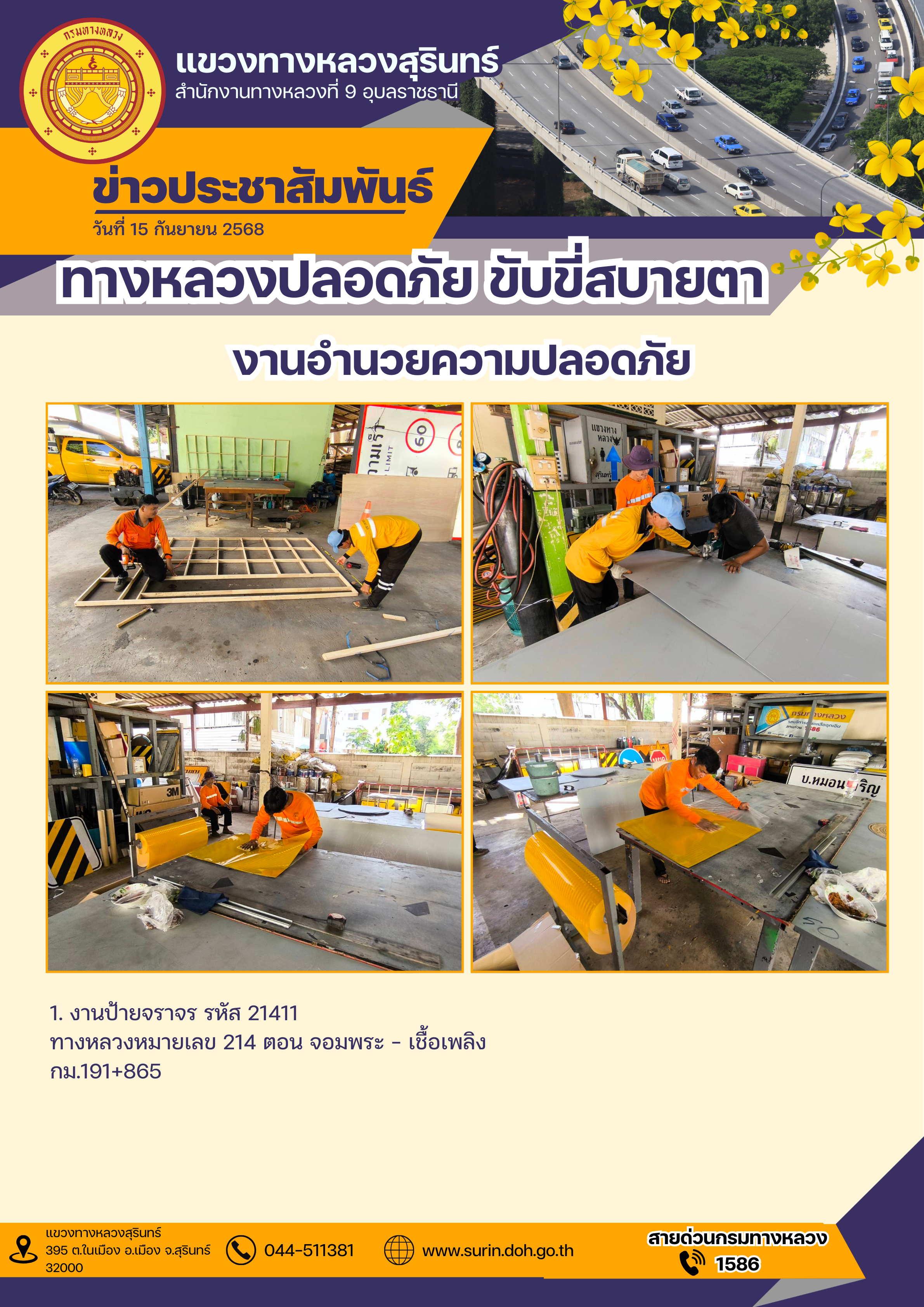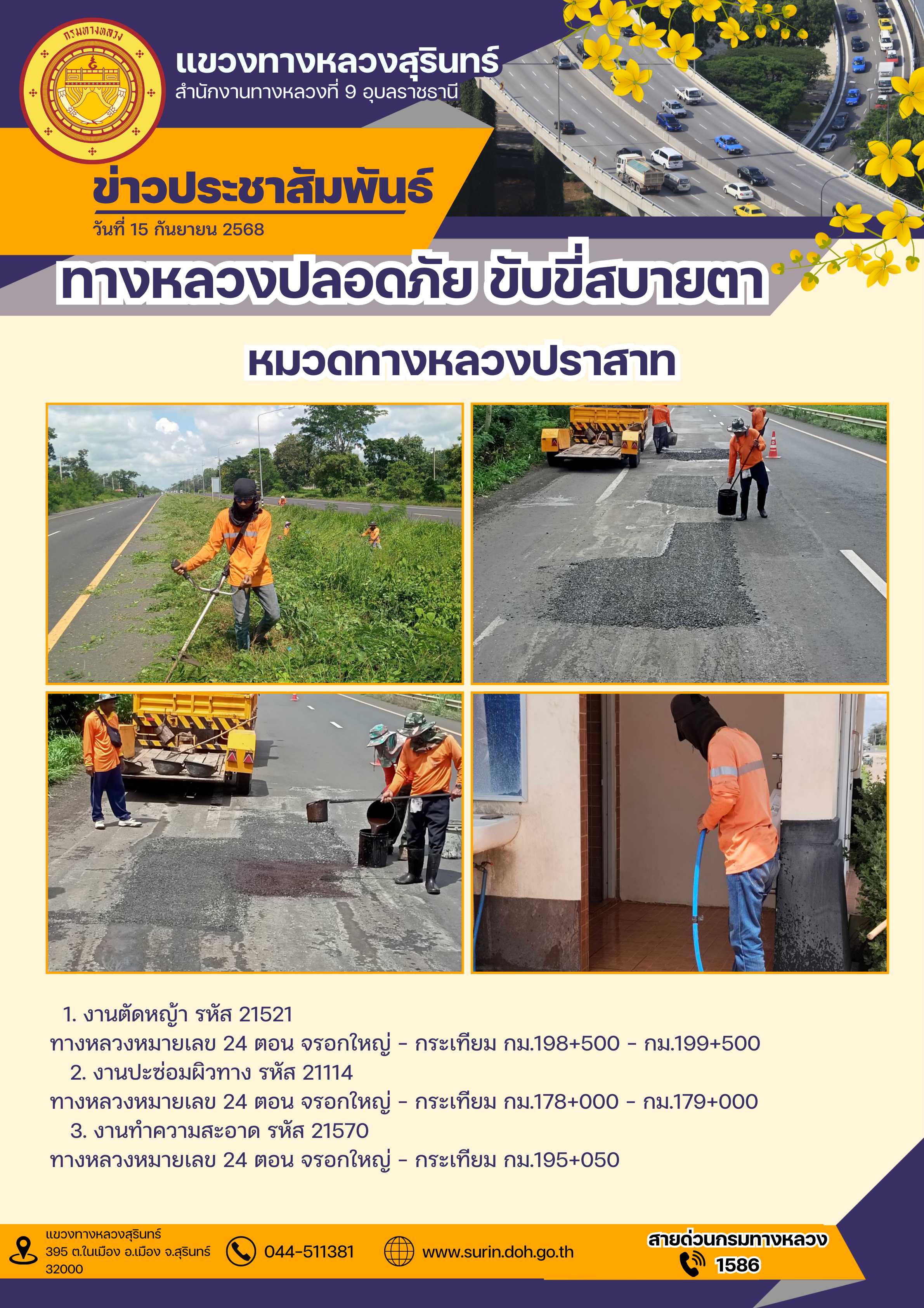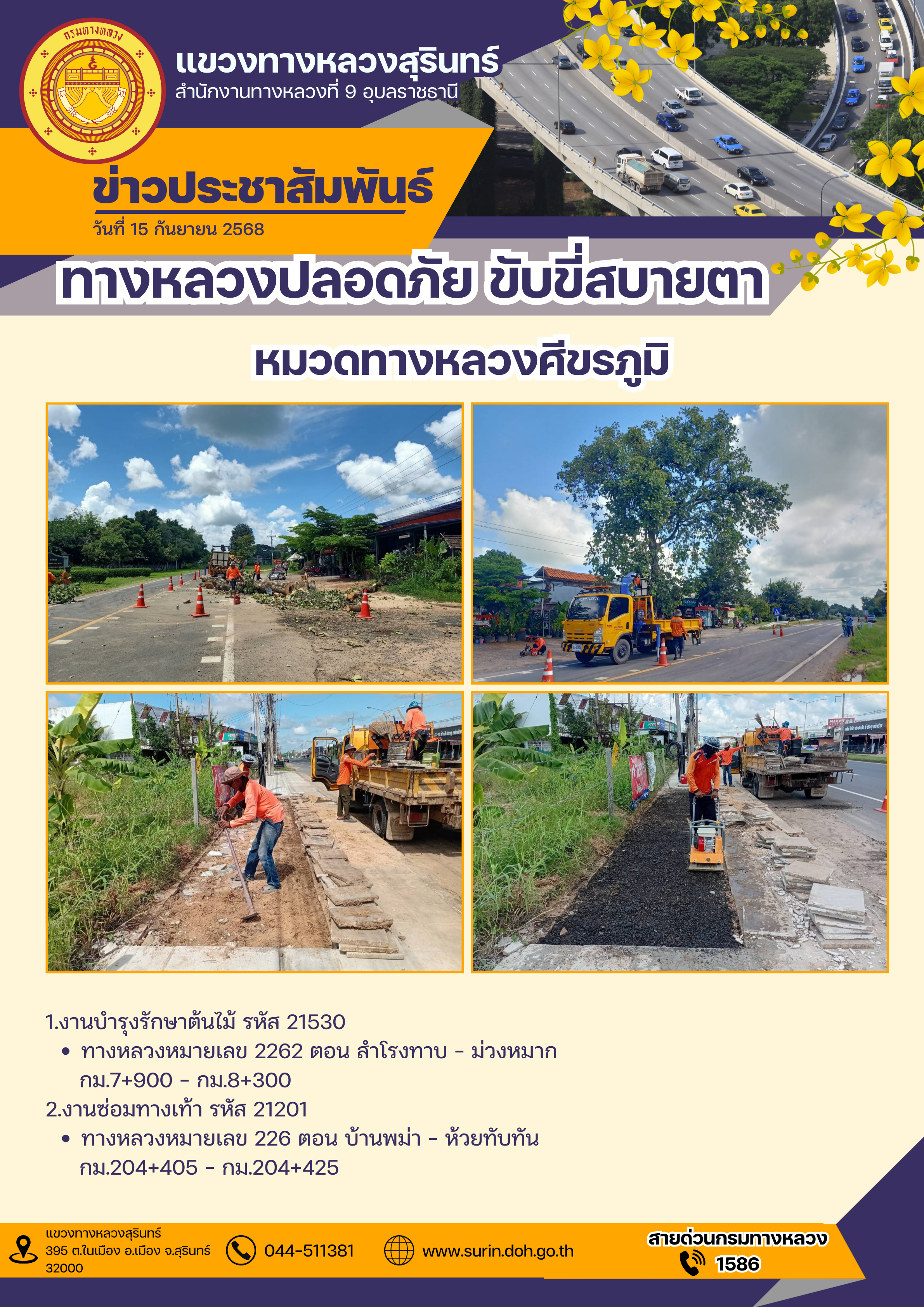 ข้อมูลข่าว : ทางหลวงปลอดภัย ขับขี่สบายตา 15 กันยายน 2568