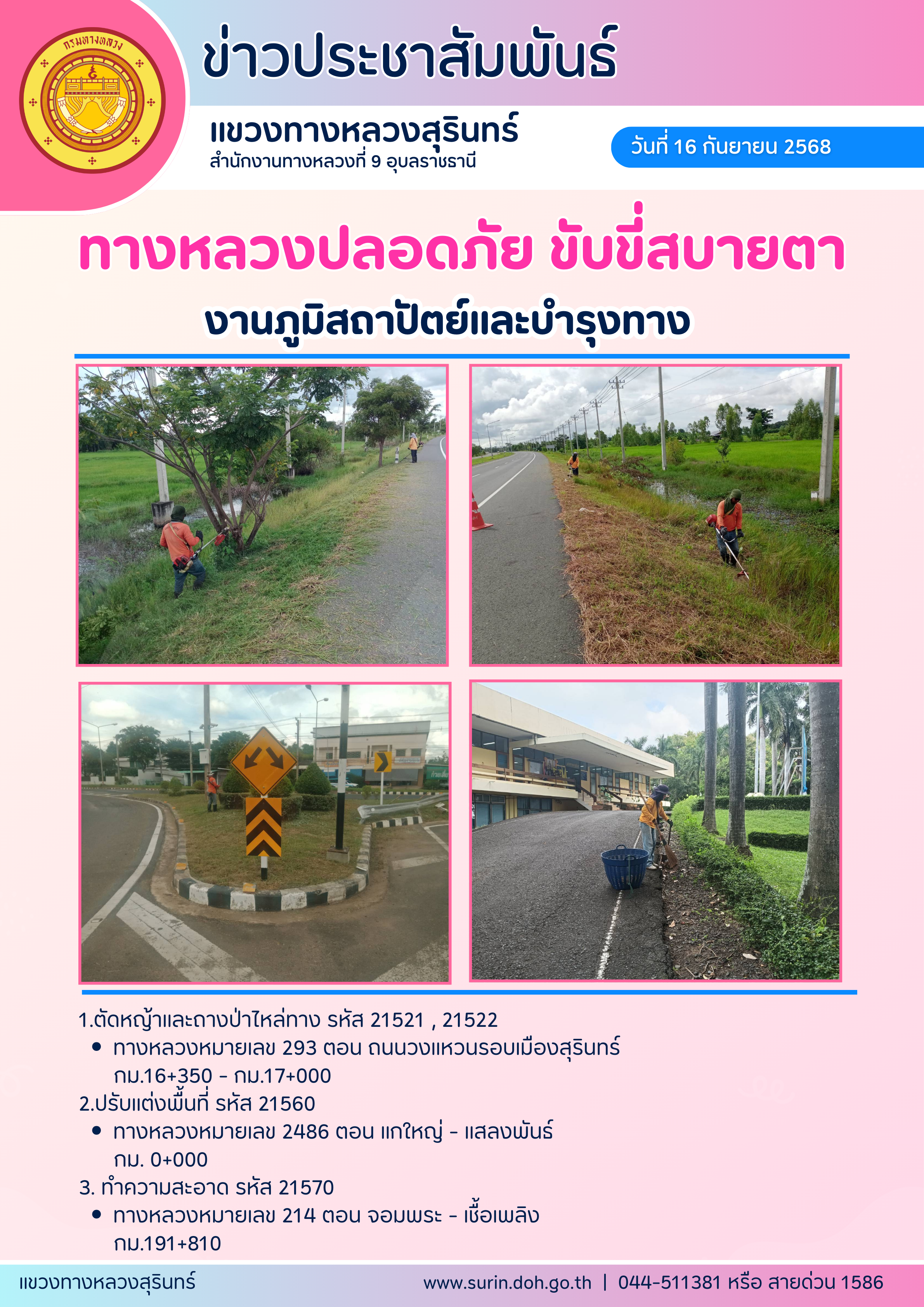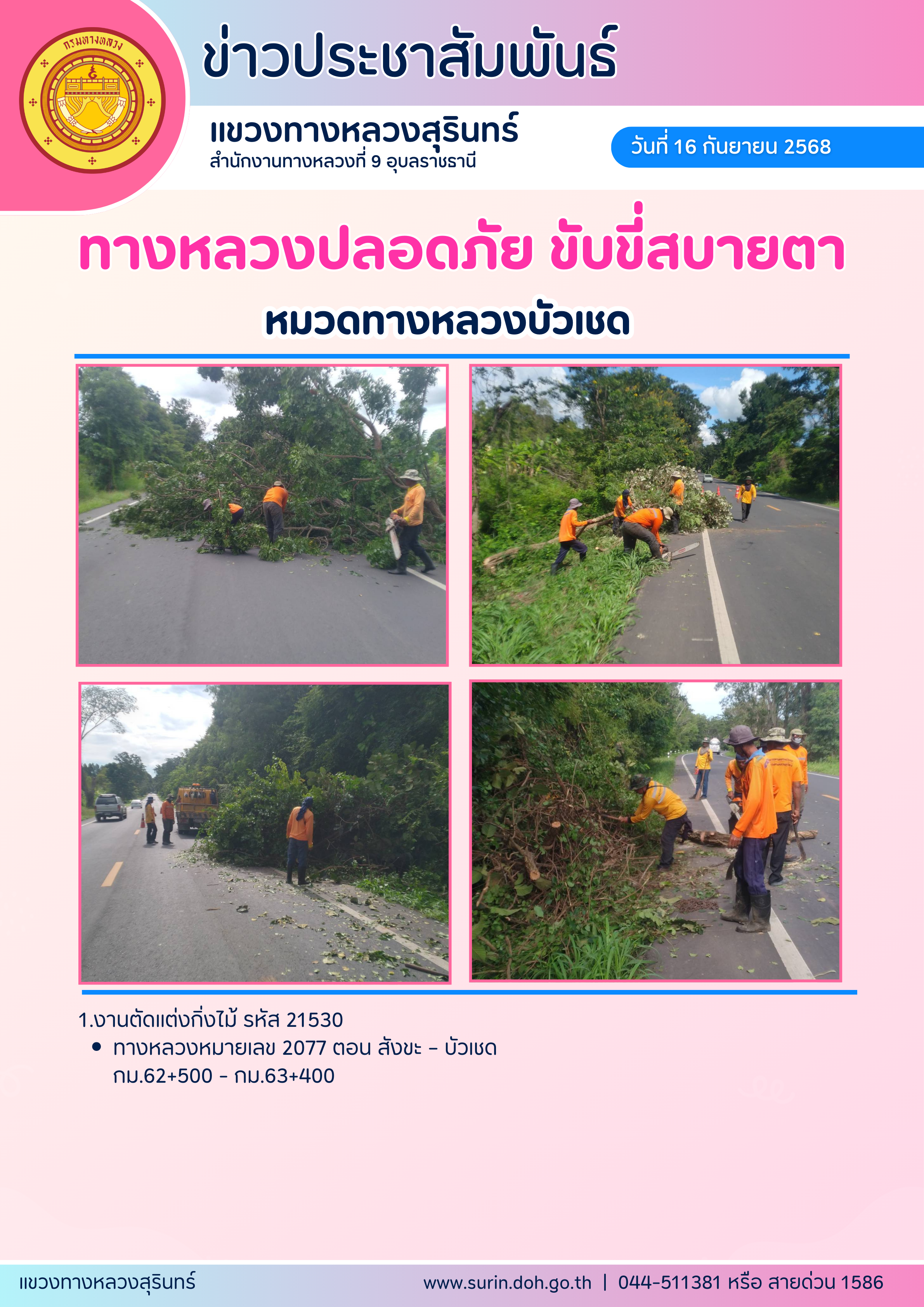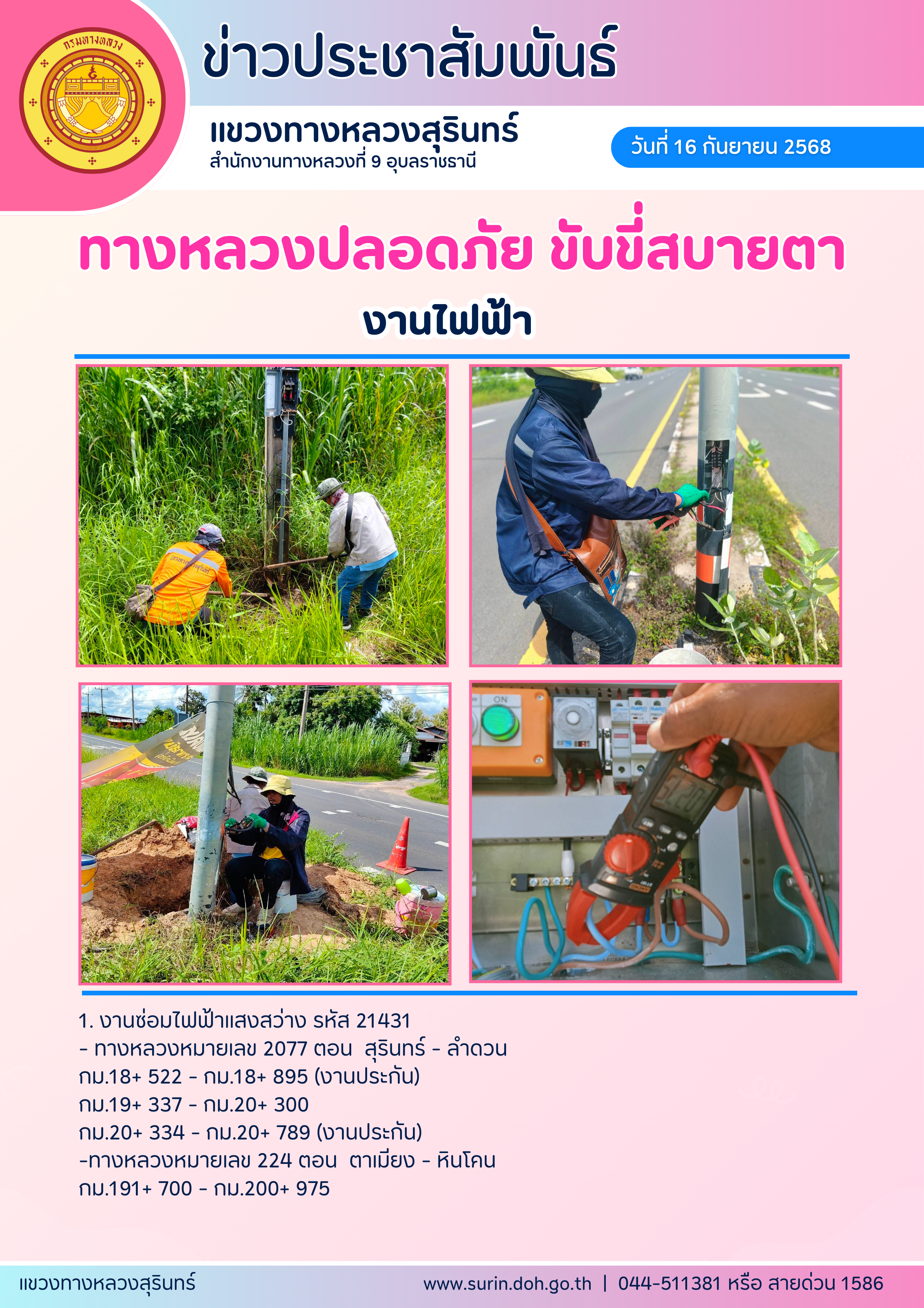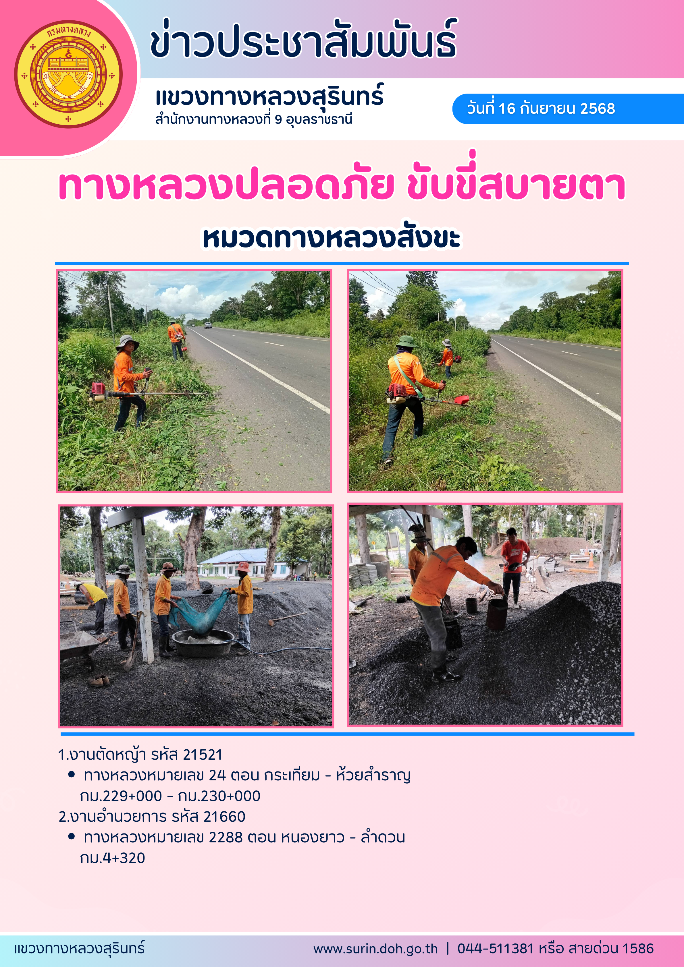 ข้อมูลข่าว : ทางหลวงปลอดภัย ขับขี่สบายตา 16 กันยายน 2568