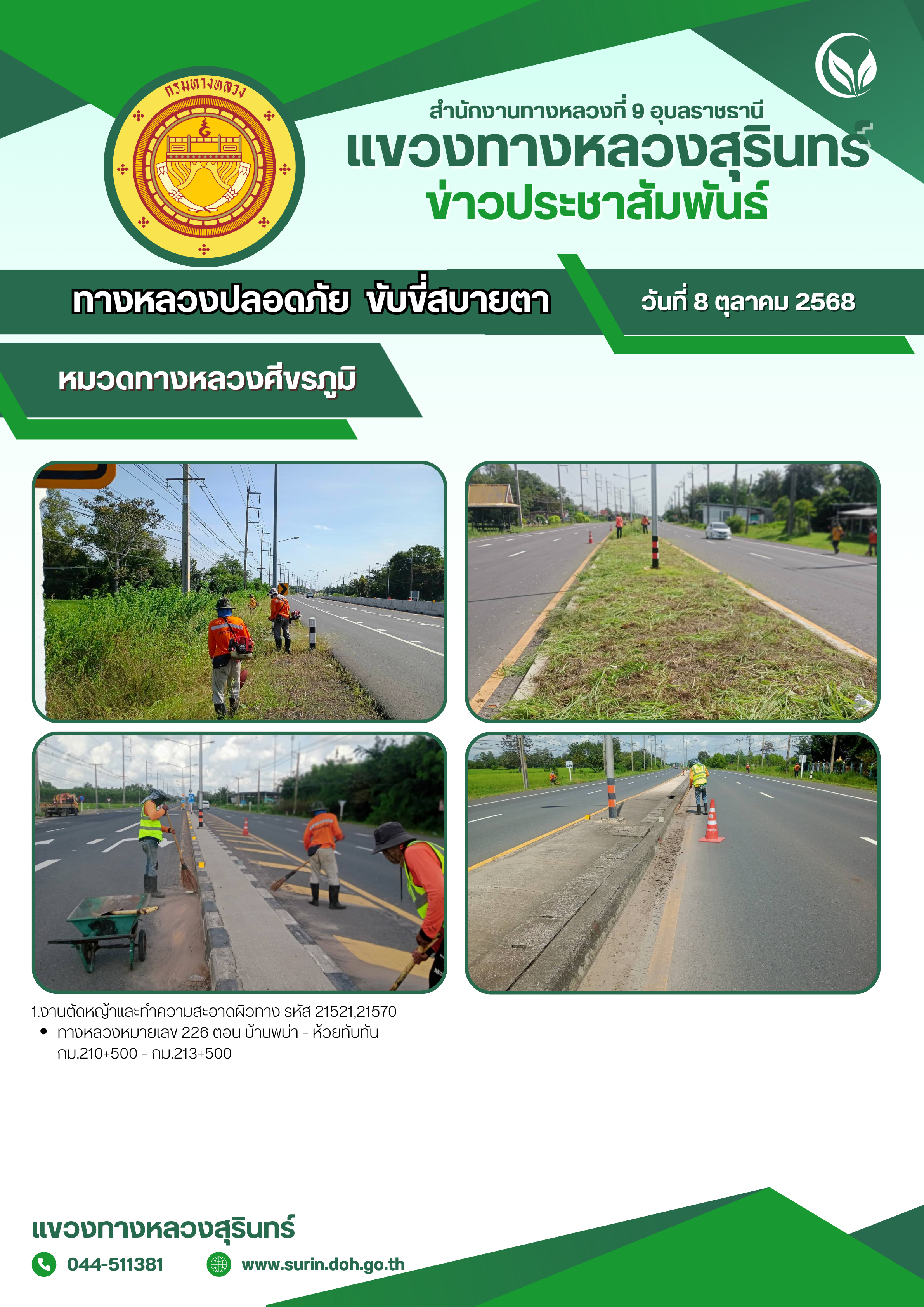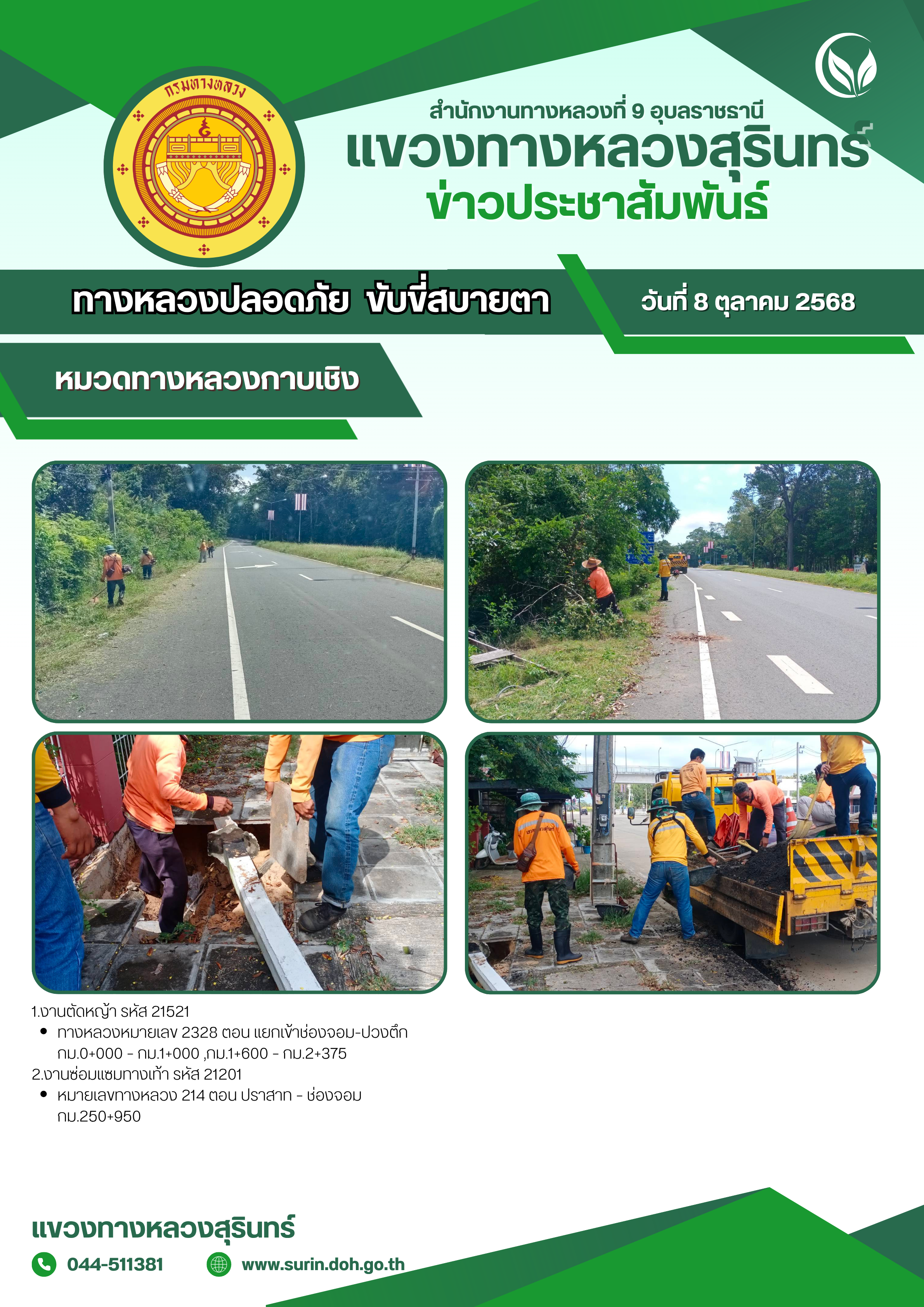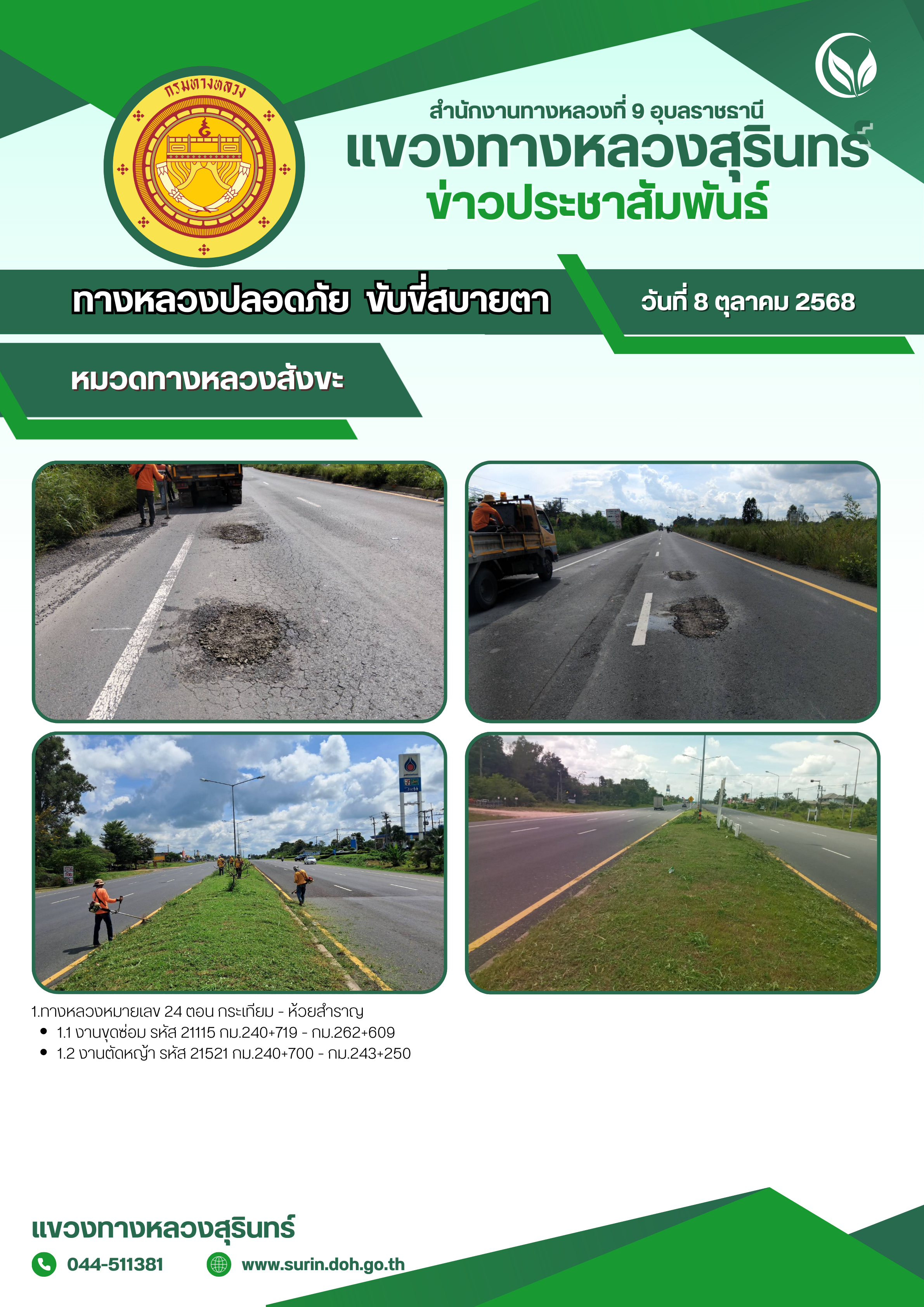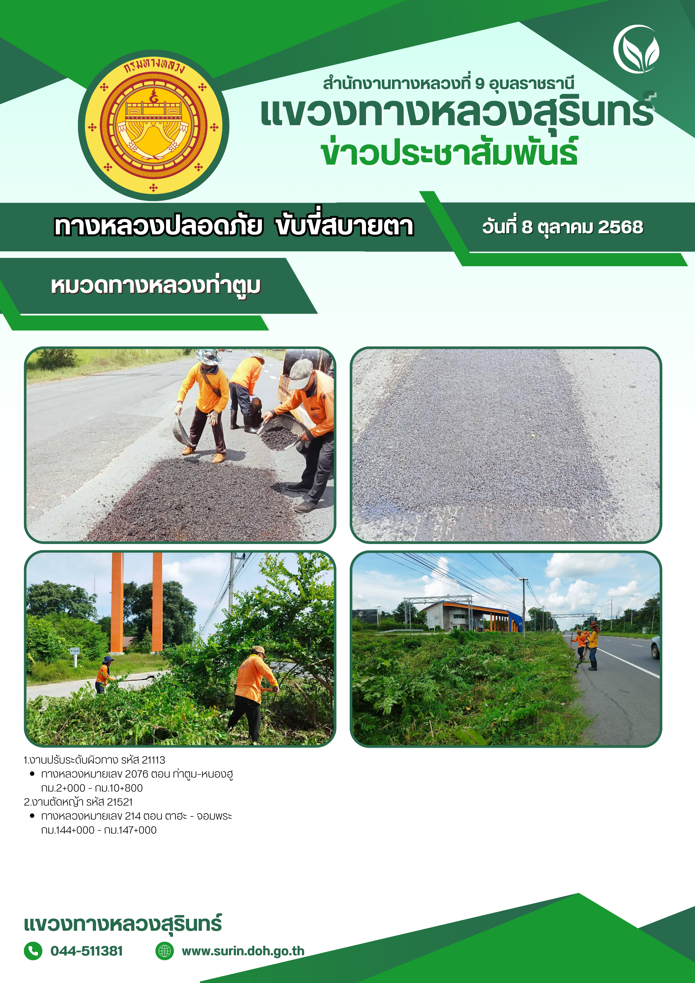 ข้อมูลข่าว : ทางหลวงปลอดภัย ขับขี่สบายตา 8 ตุลาคม 2568