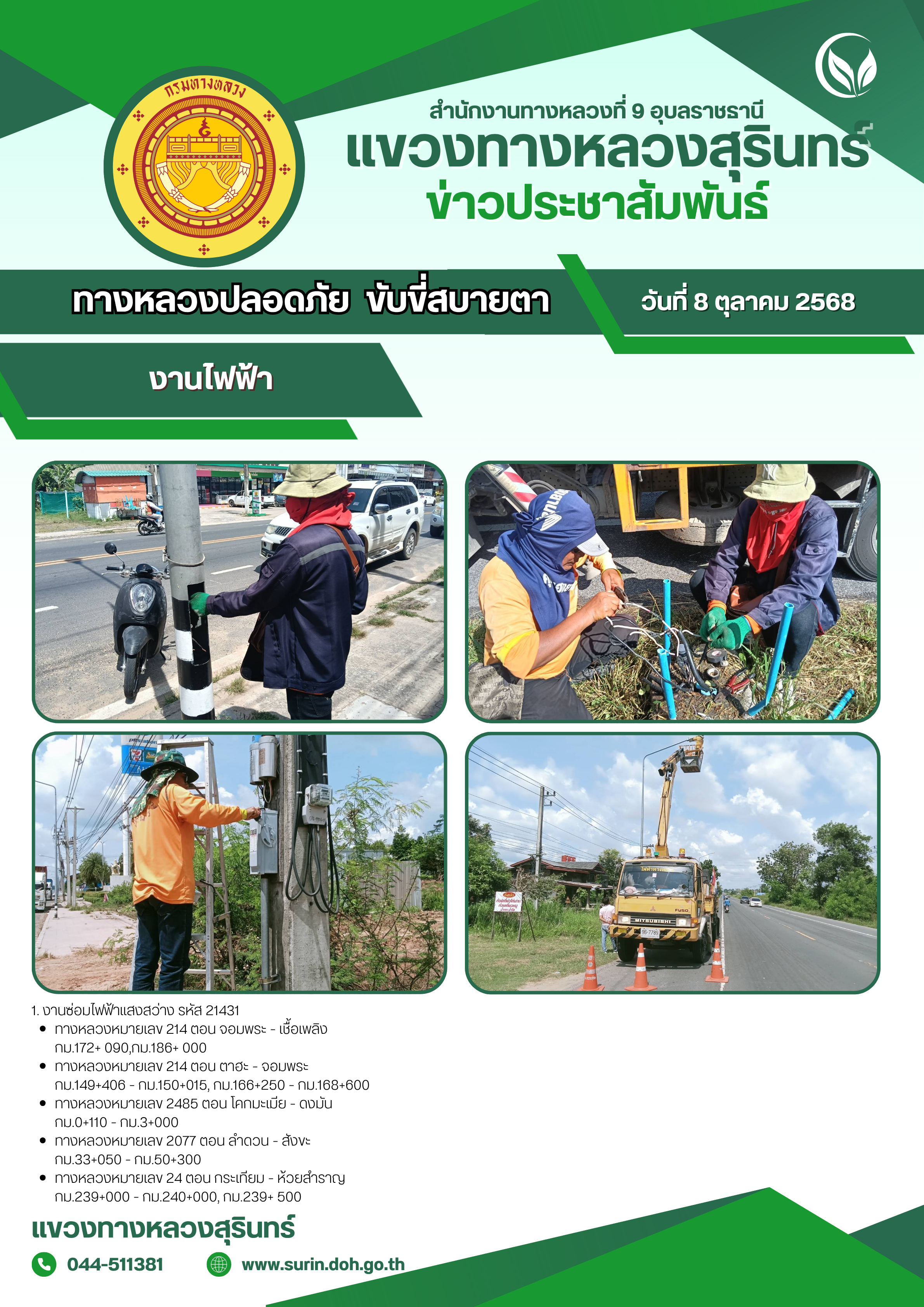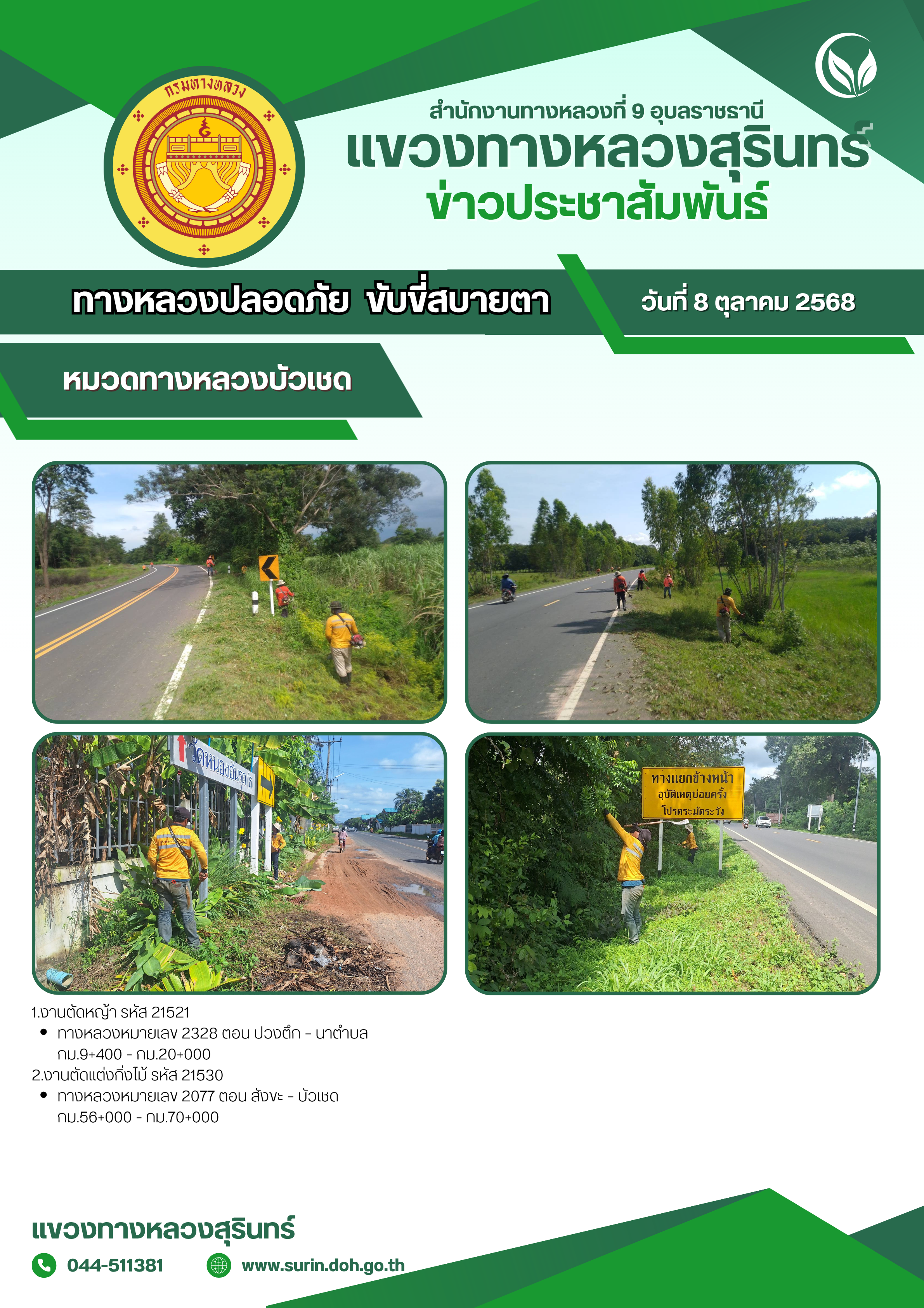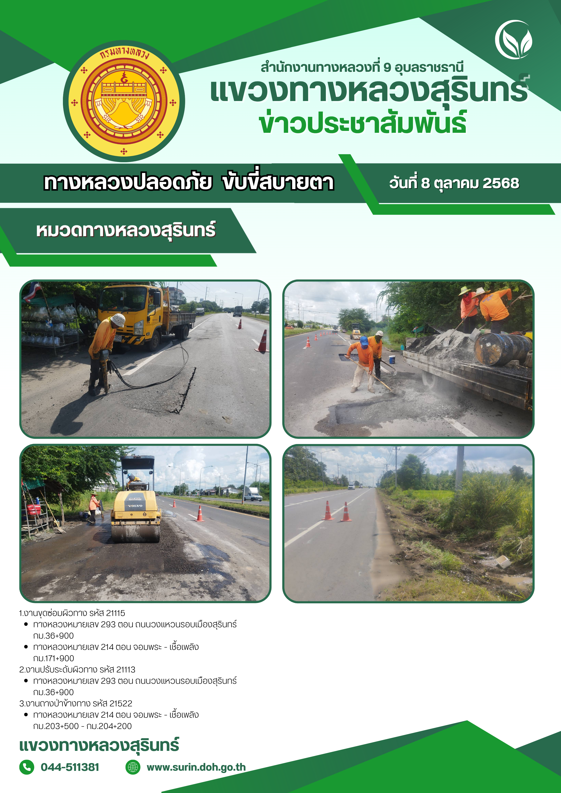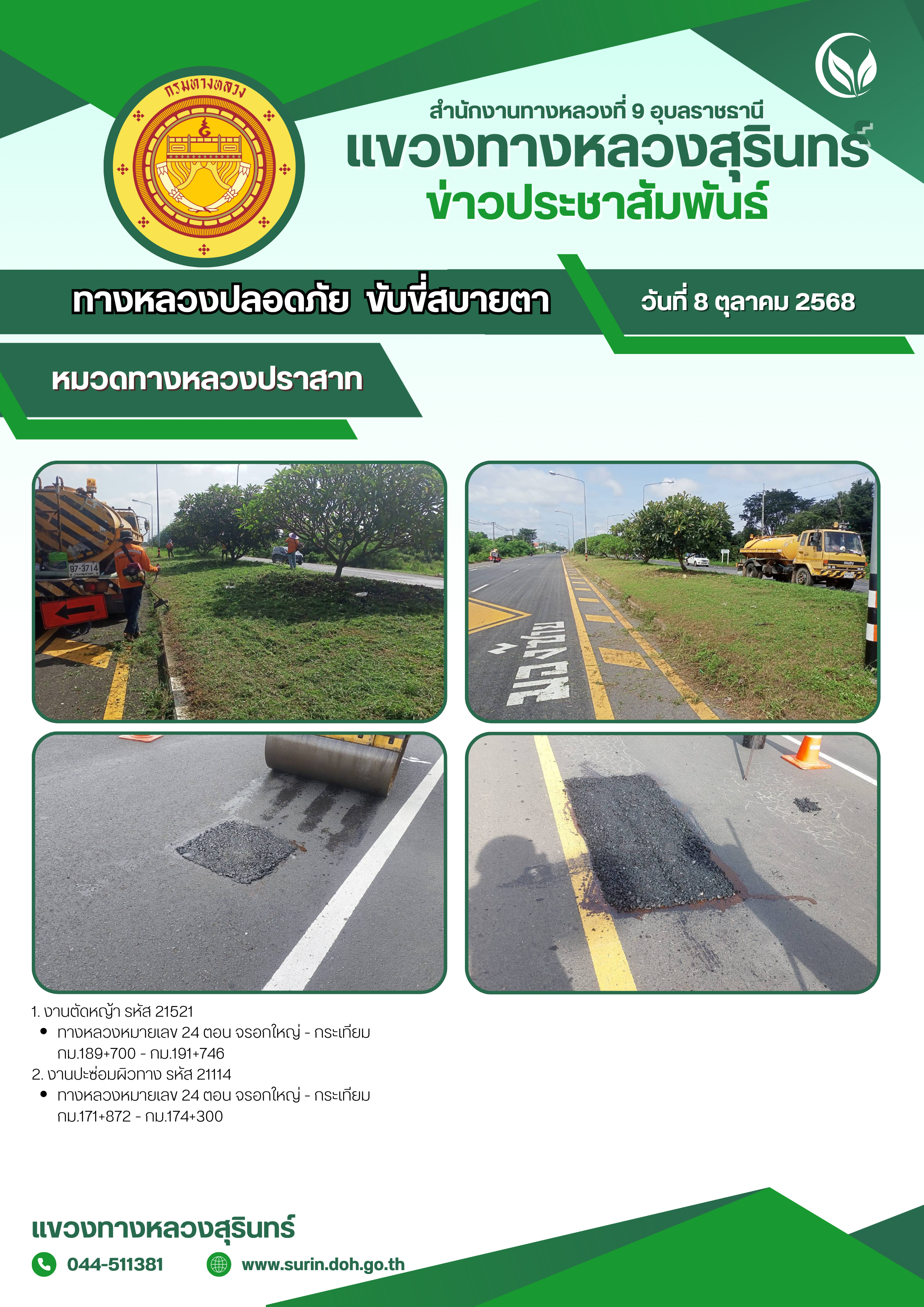 ข้อมูลข่าว : ทางหลวงปลอดภัย ขับขี่สบายตา 8 ตุลาคม 2568