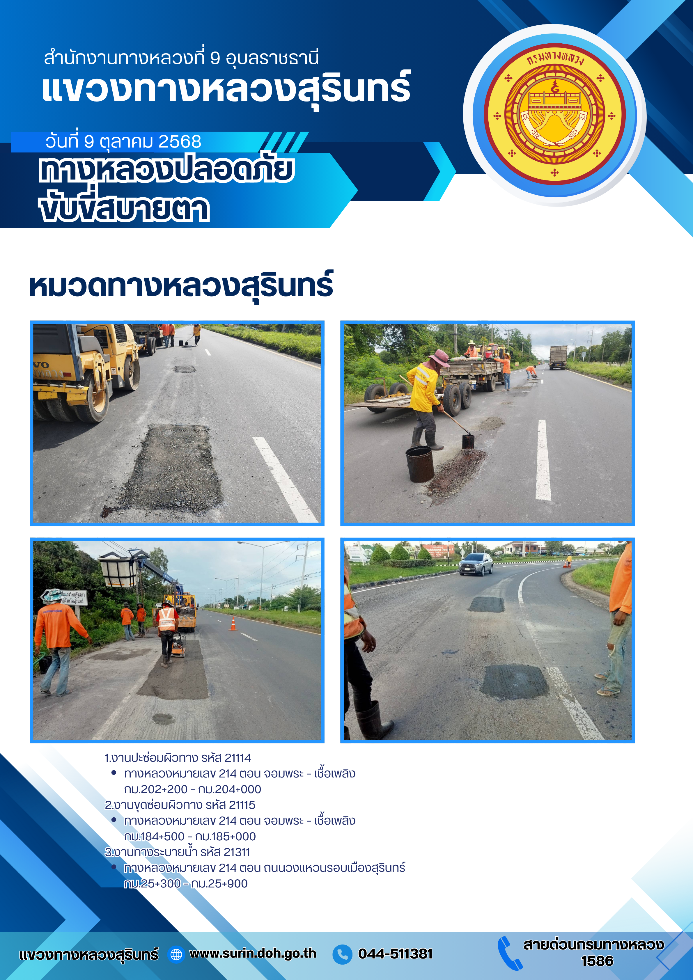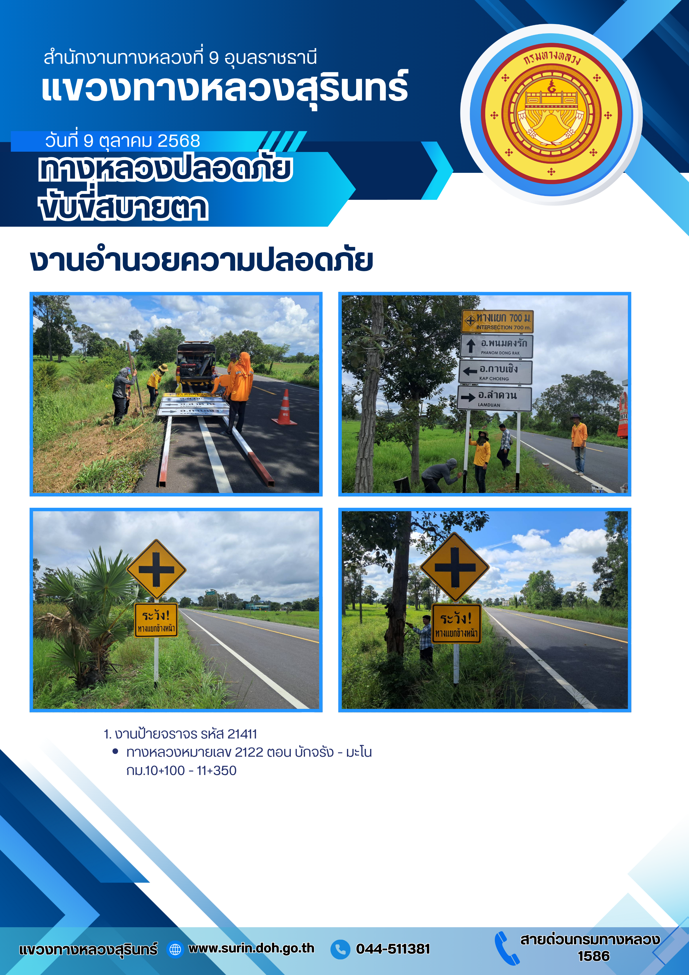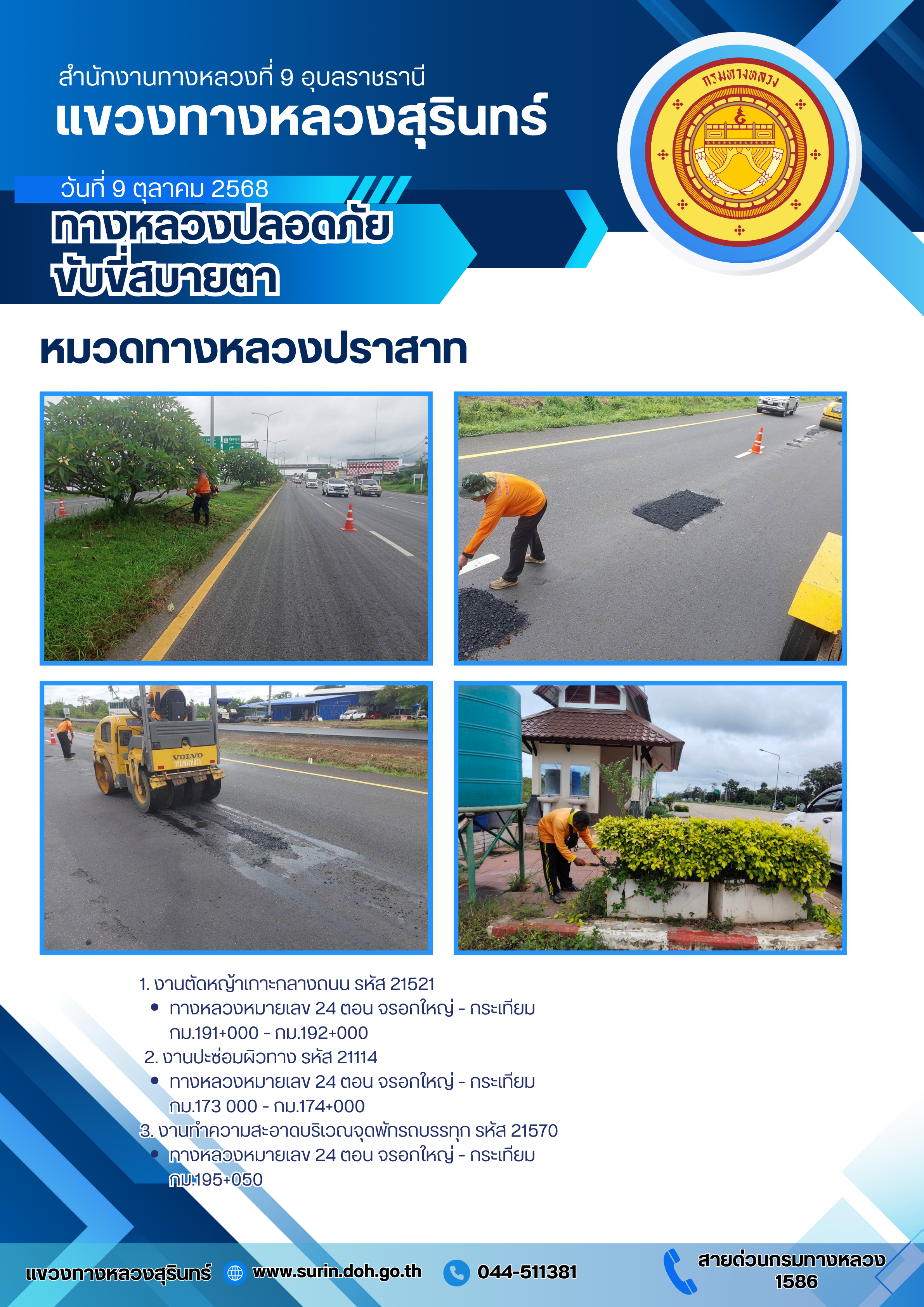 ทางหลวงปลอดภัย ขับขี่สบายตา 9 ตุลาคม 2568
