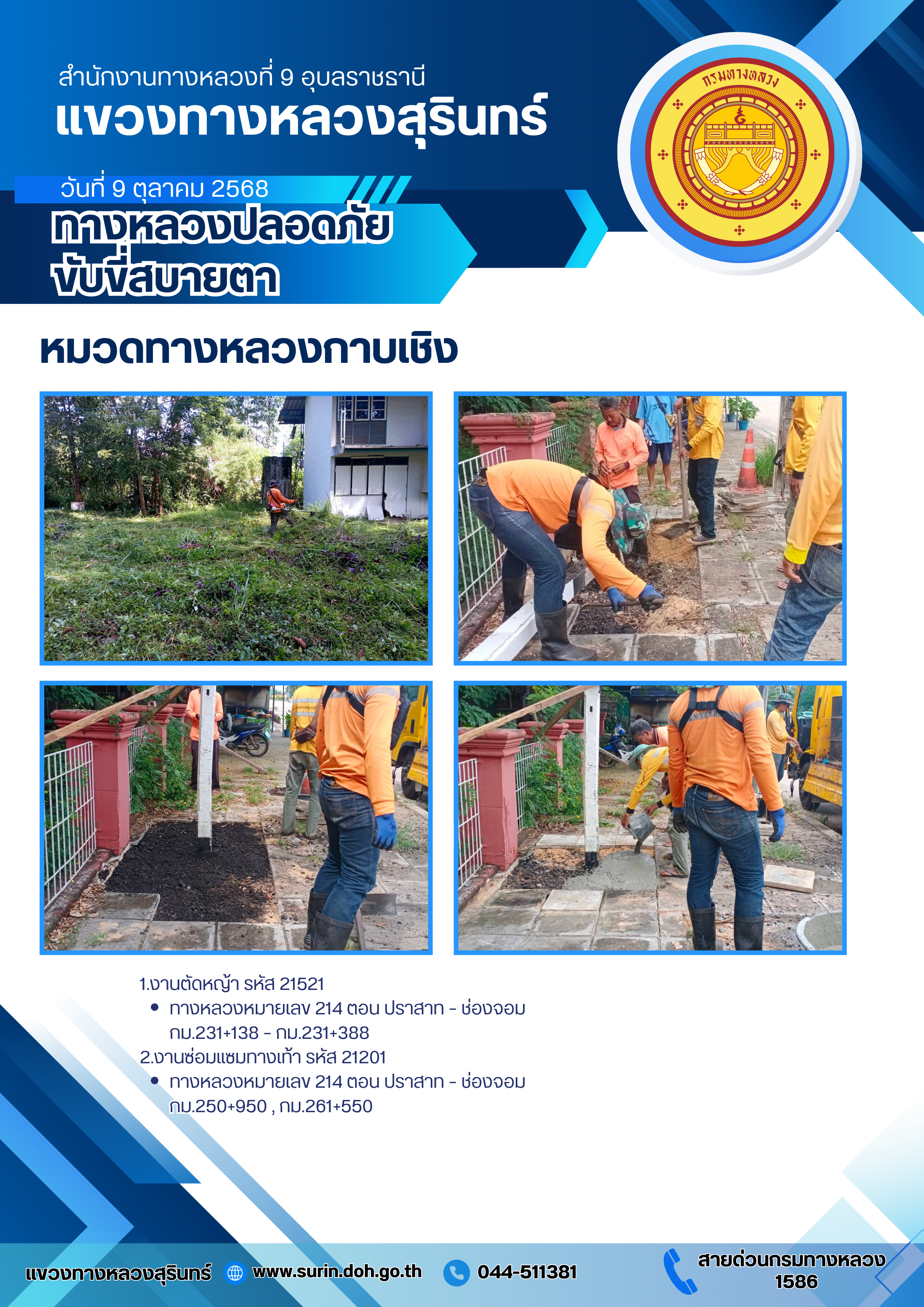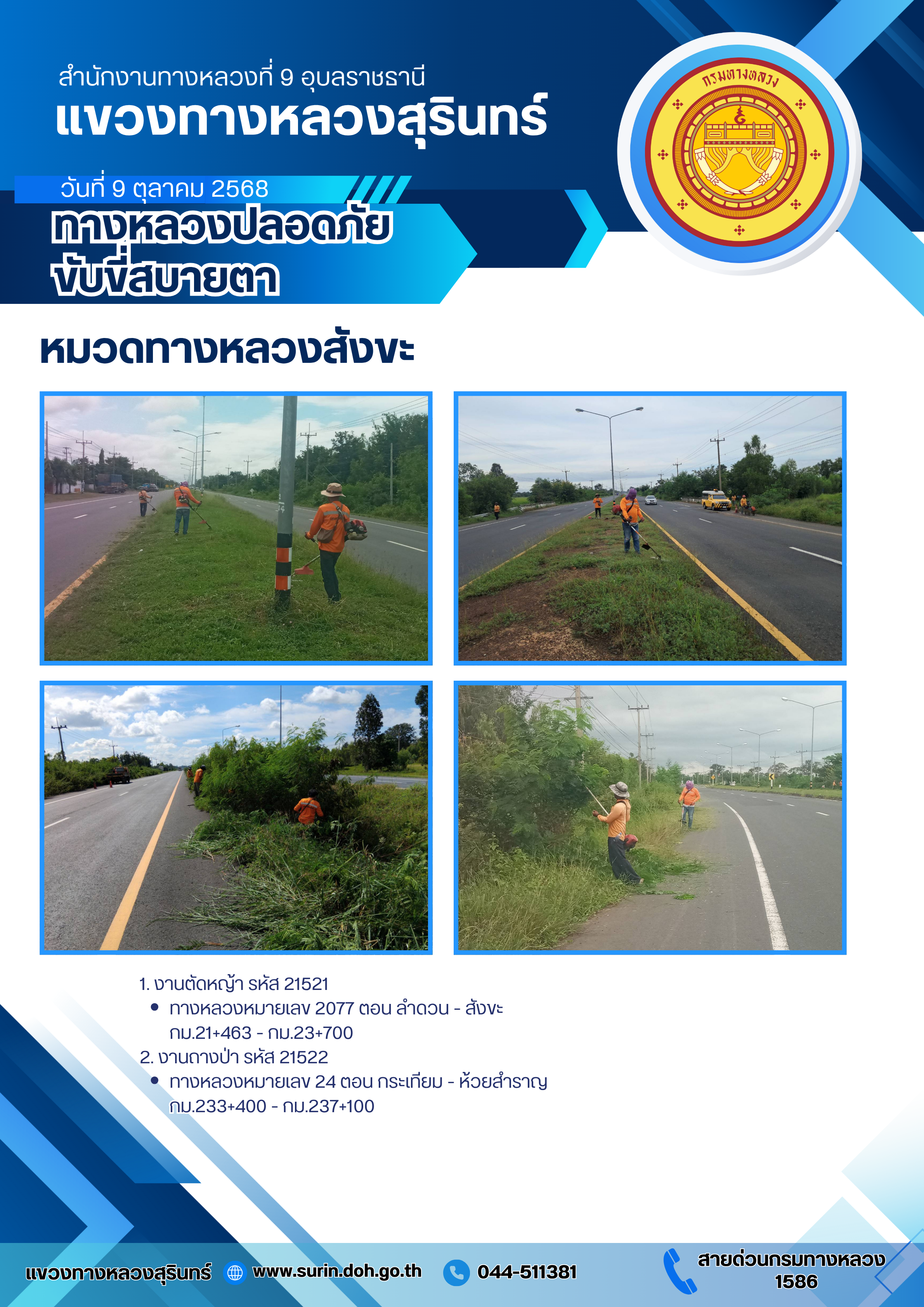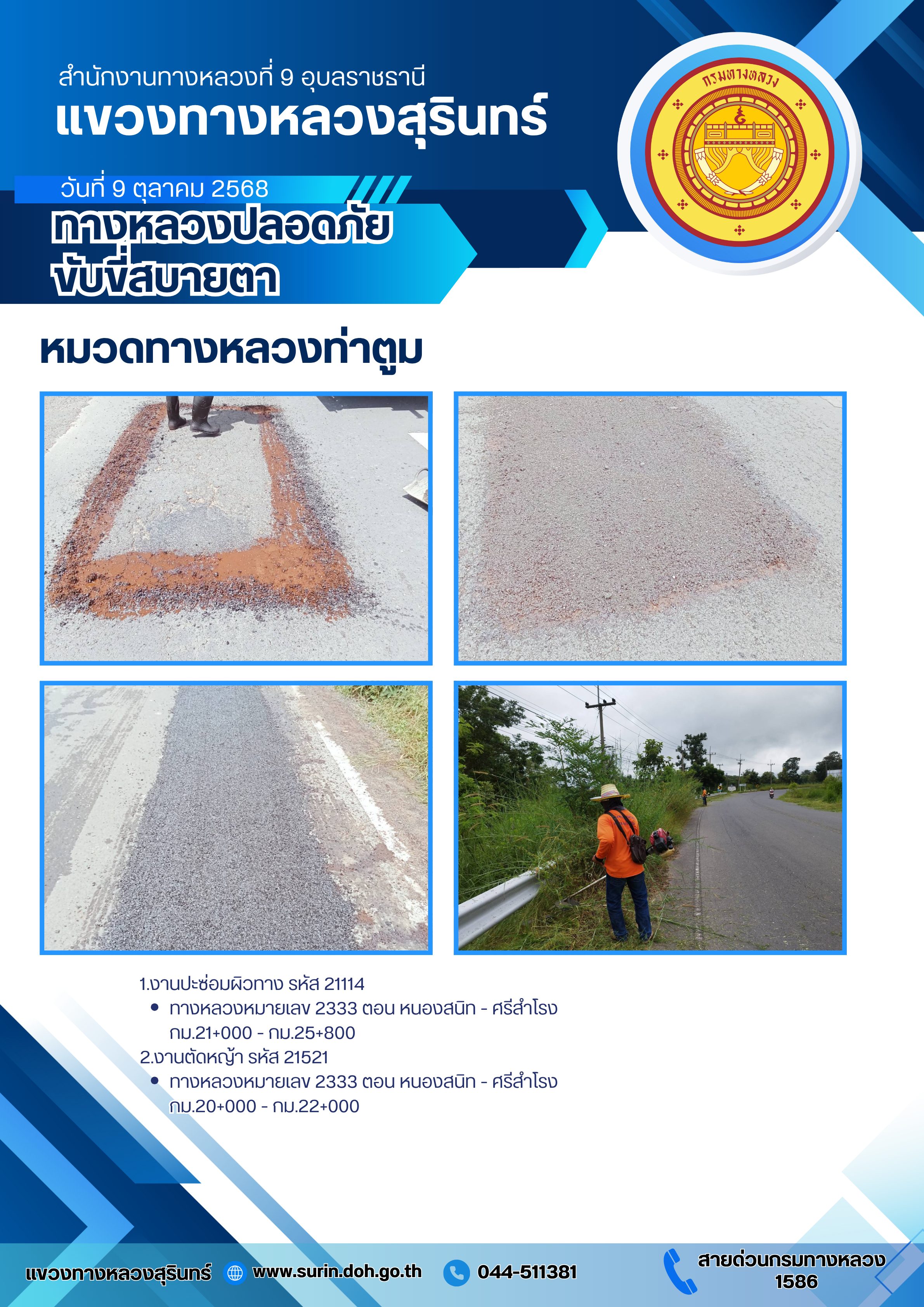 ทางหลวงปลอดภัย ขับขี่สบายตา 9 ตุลาคม 2568