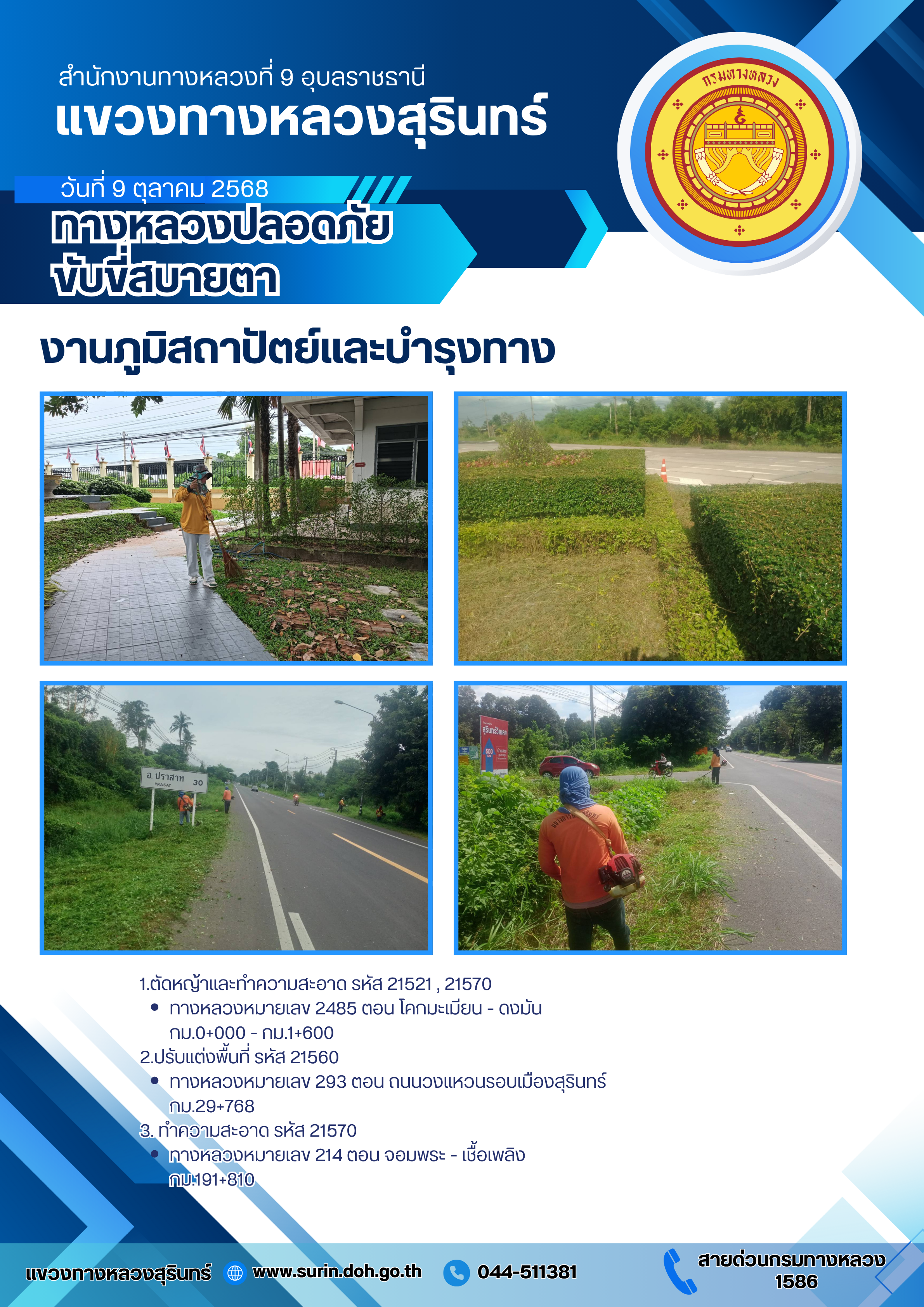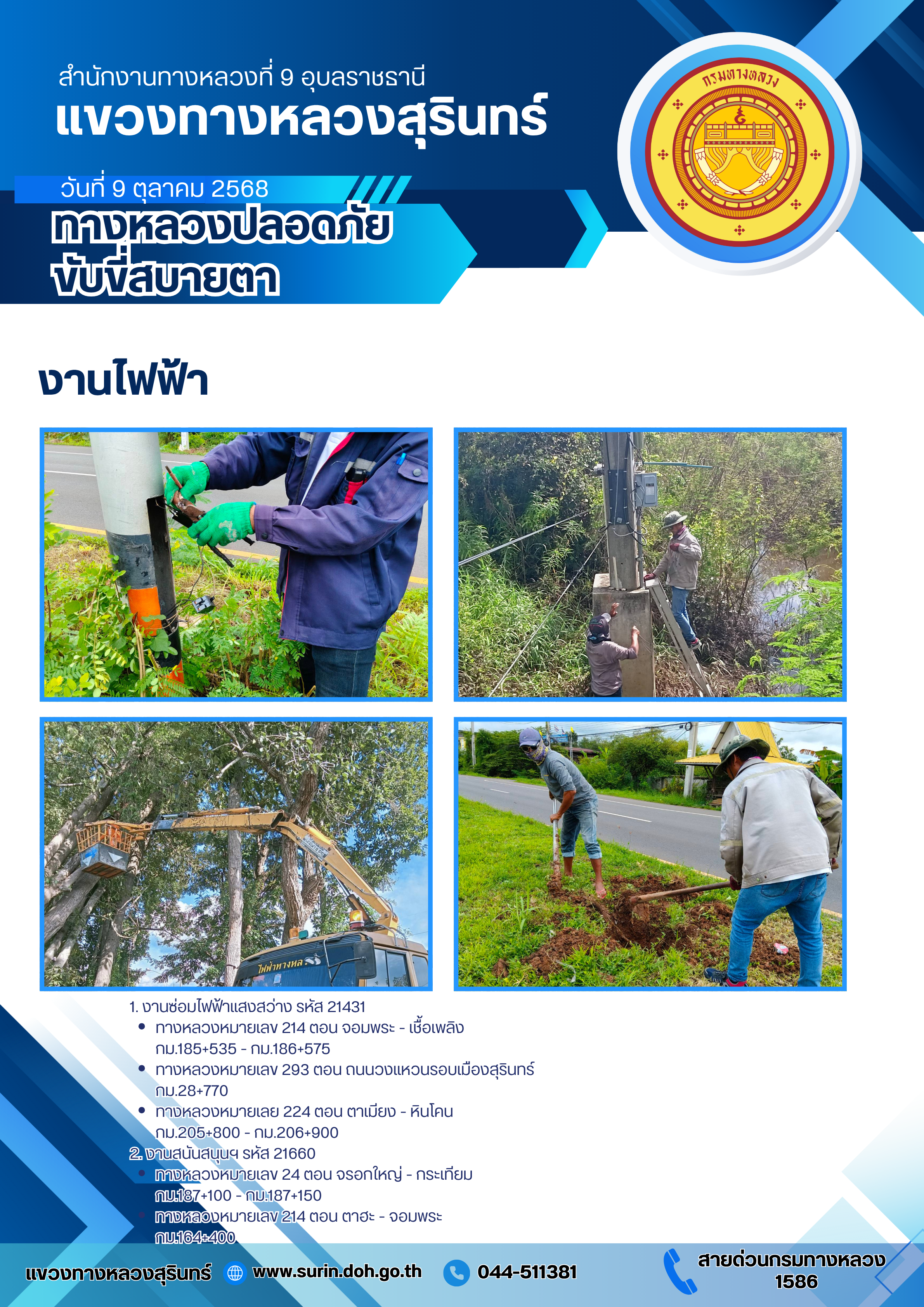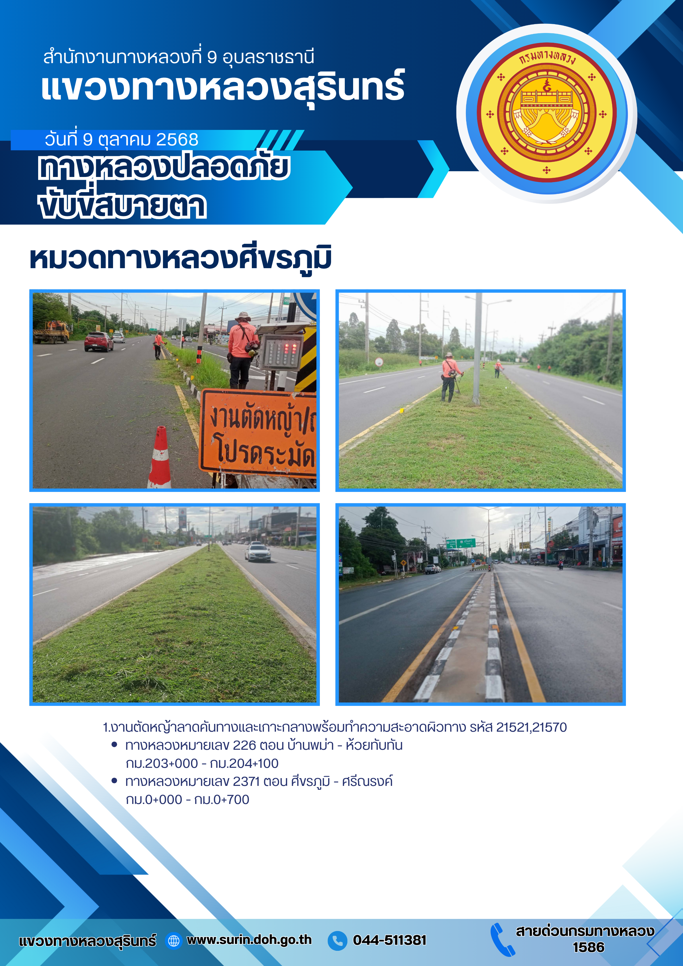 ข้อมูลข่าว : ทางหลวงปลอดภัย ขับขี่สบายตา 9 ตุลาคม 2568