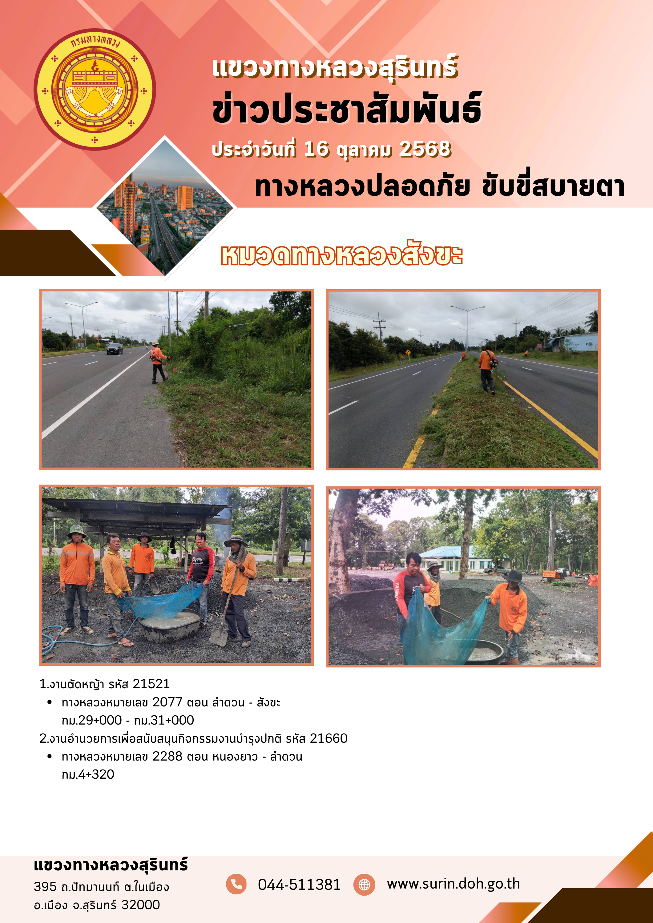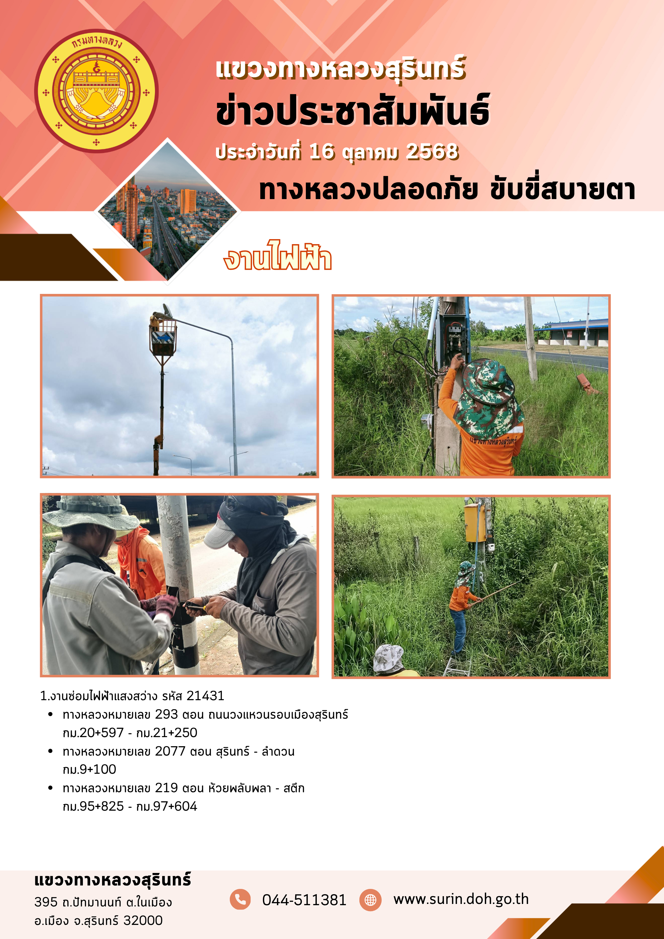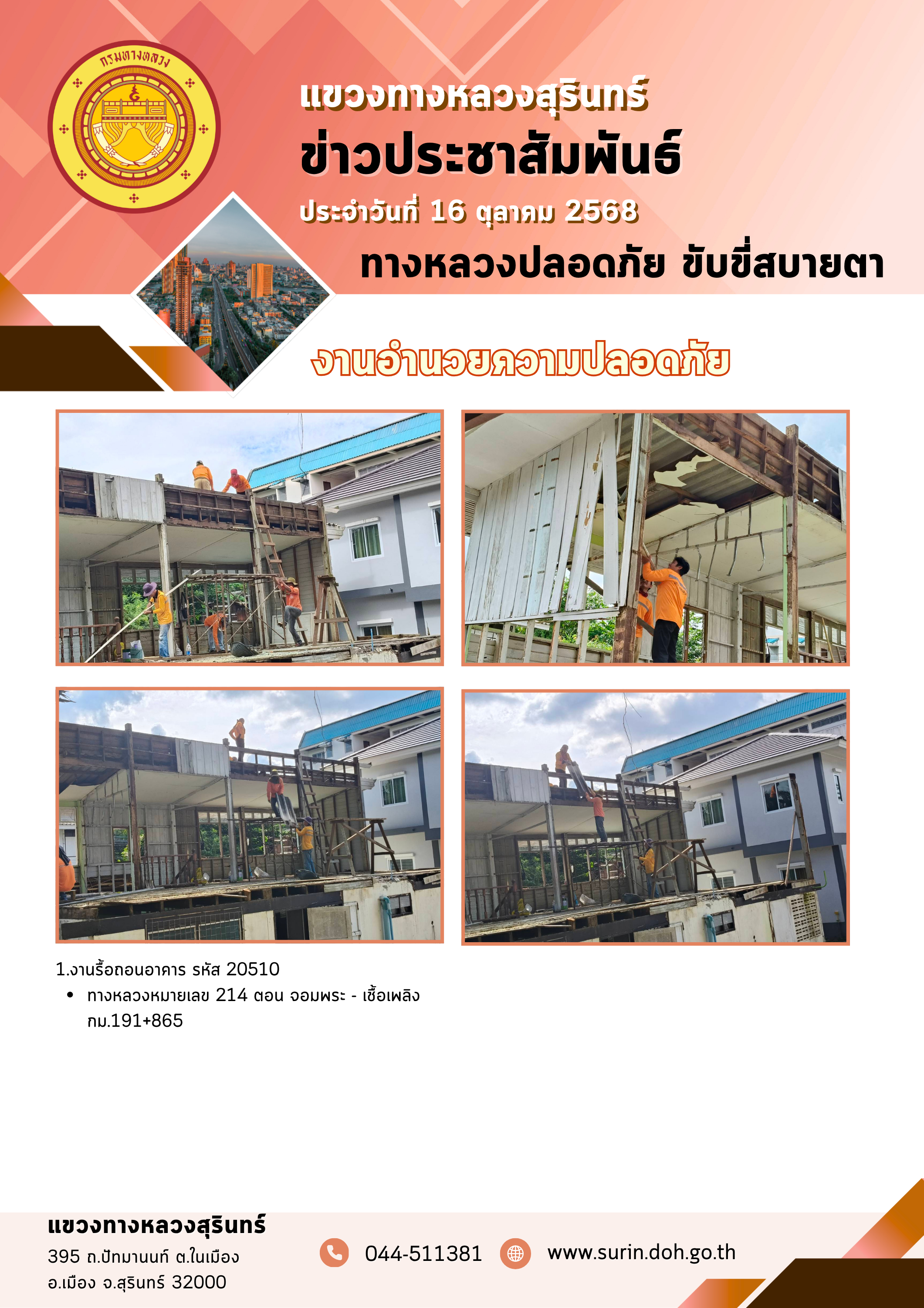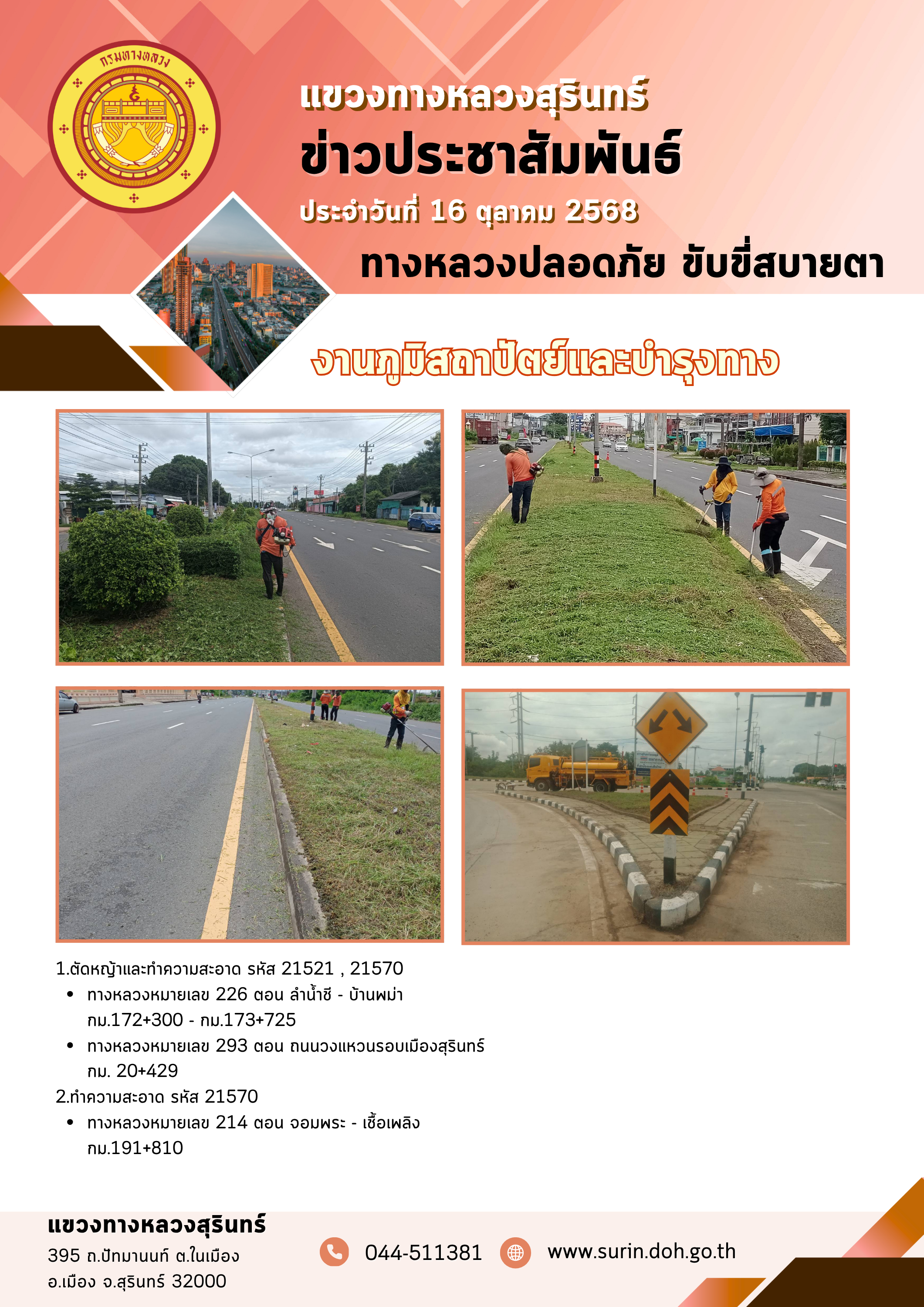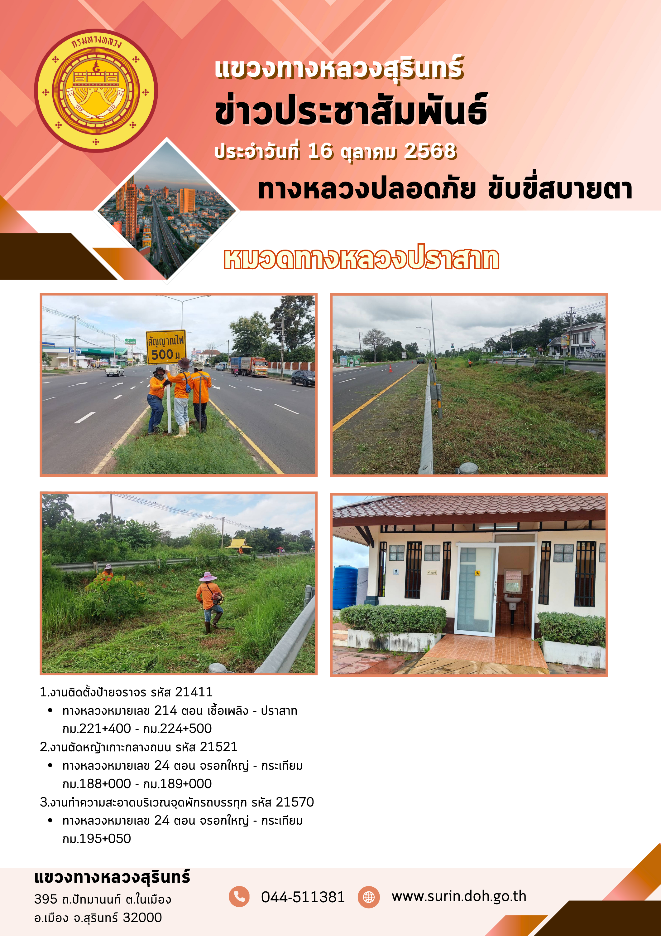 ข้อมูลข่าว : ทางหลวงปลอดภัย ขับขี่สบายตา 16 ตุลาคม 2568