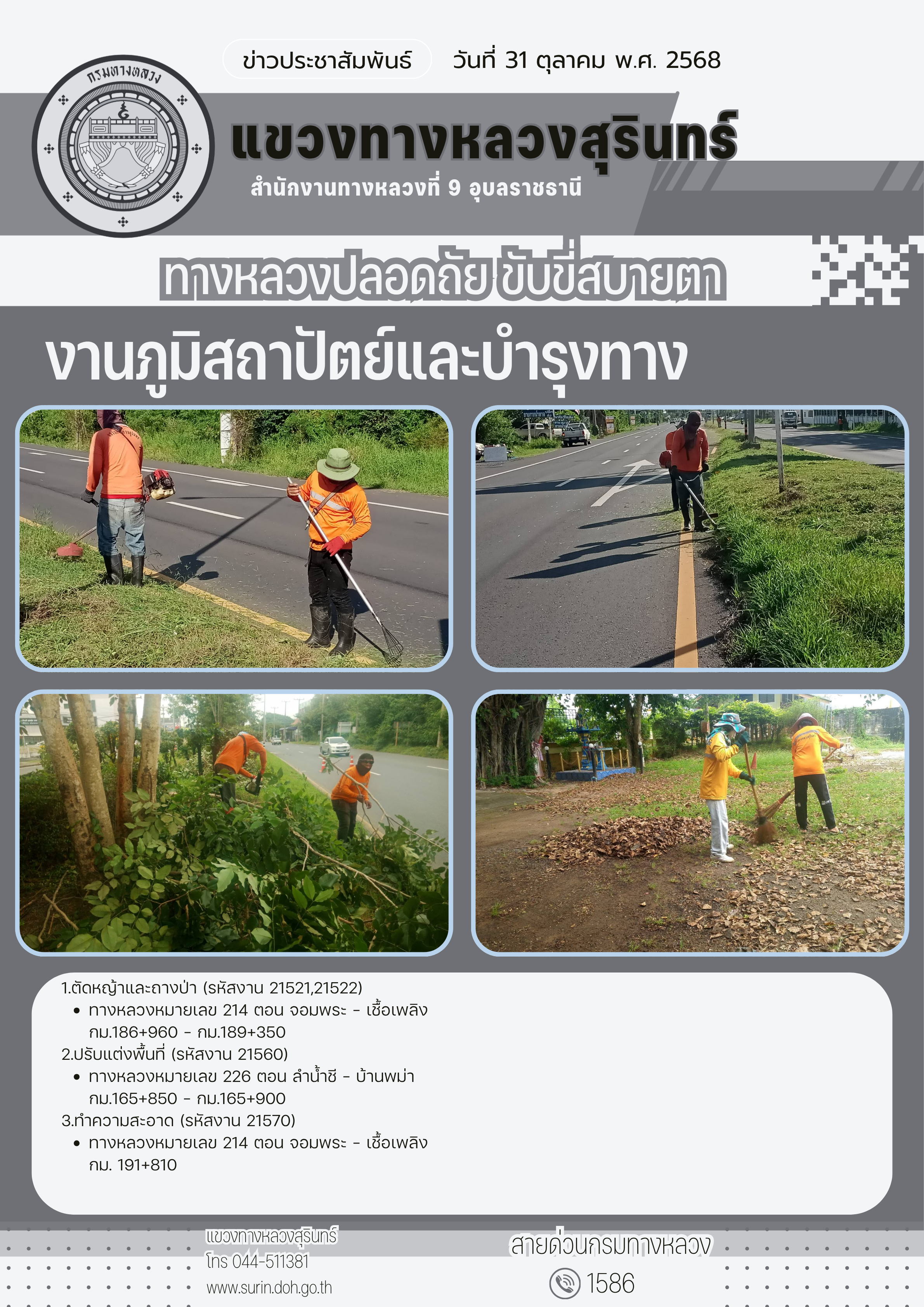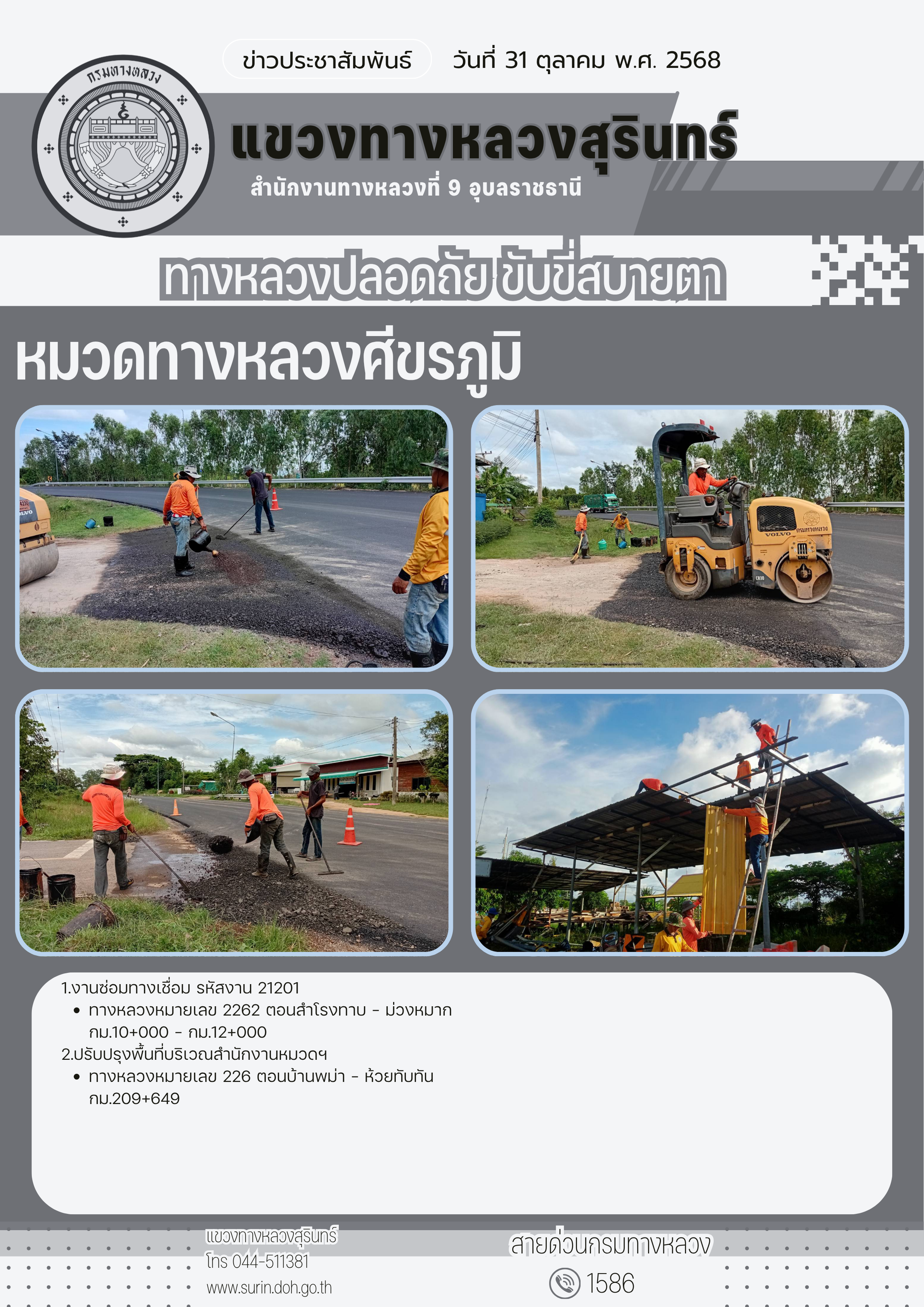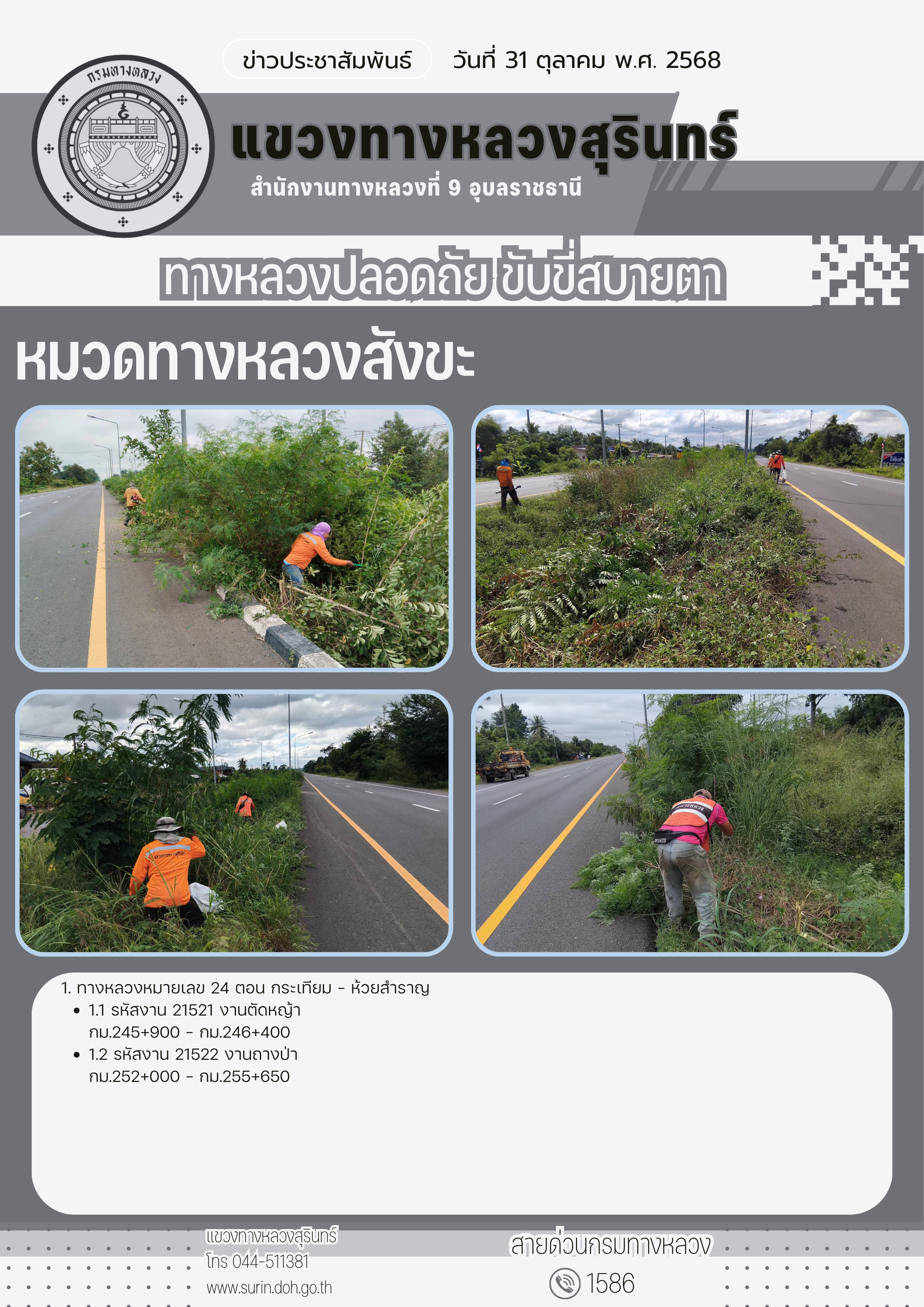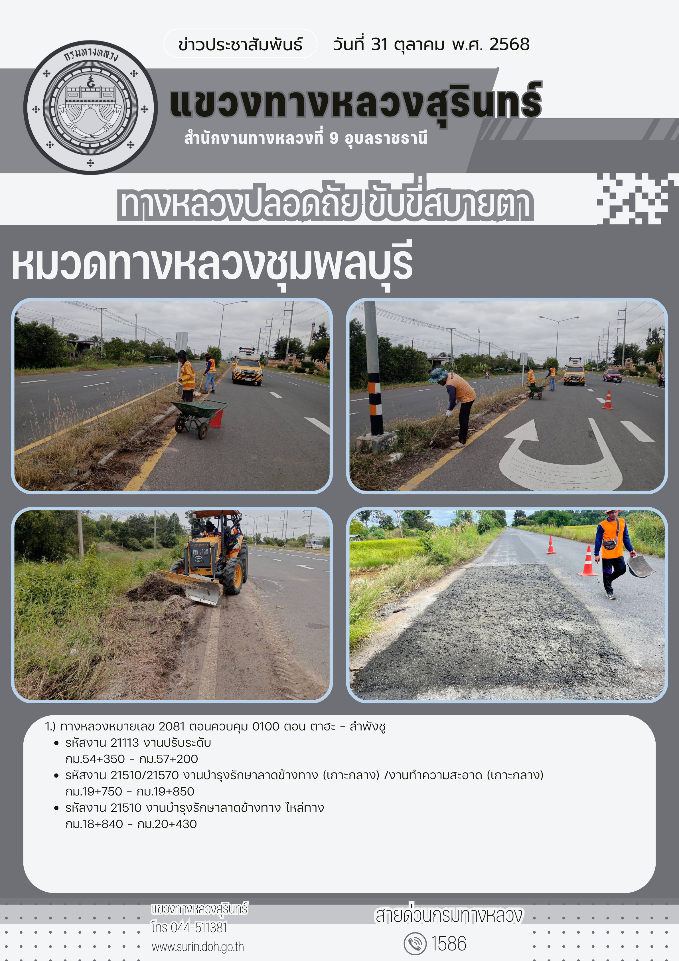 ข้อมูลข่าว : ทางหลวงปลอดภัย ขับขี่สบายตา 31 ตุลาคม 2568