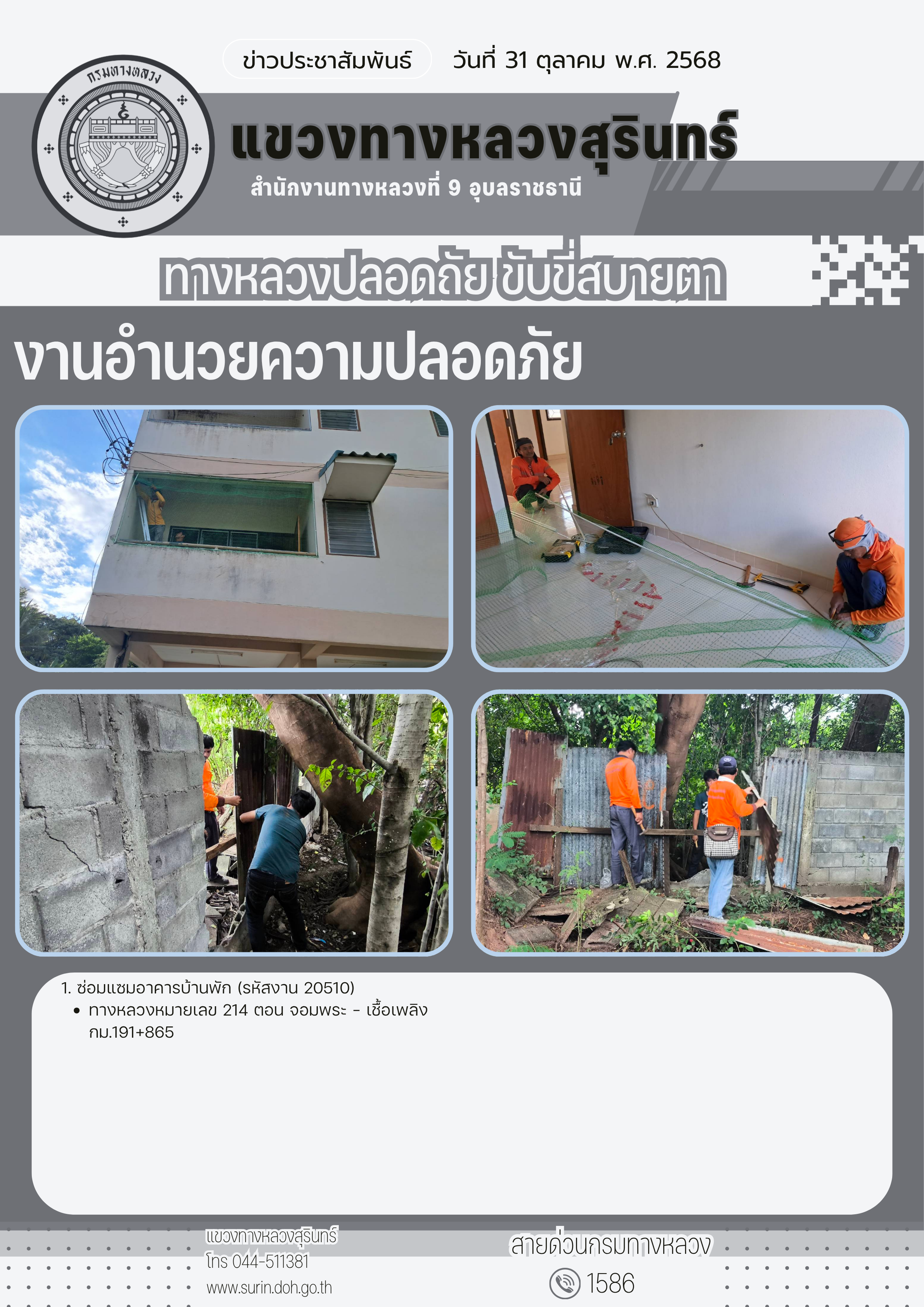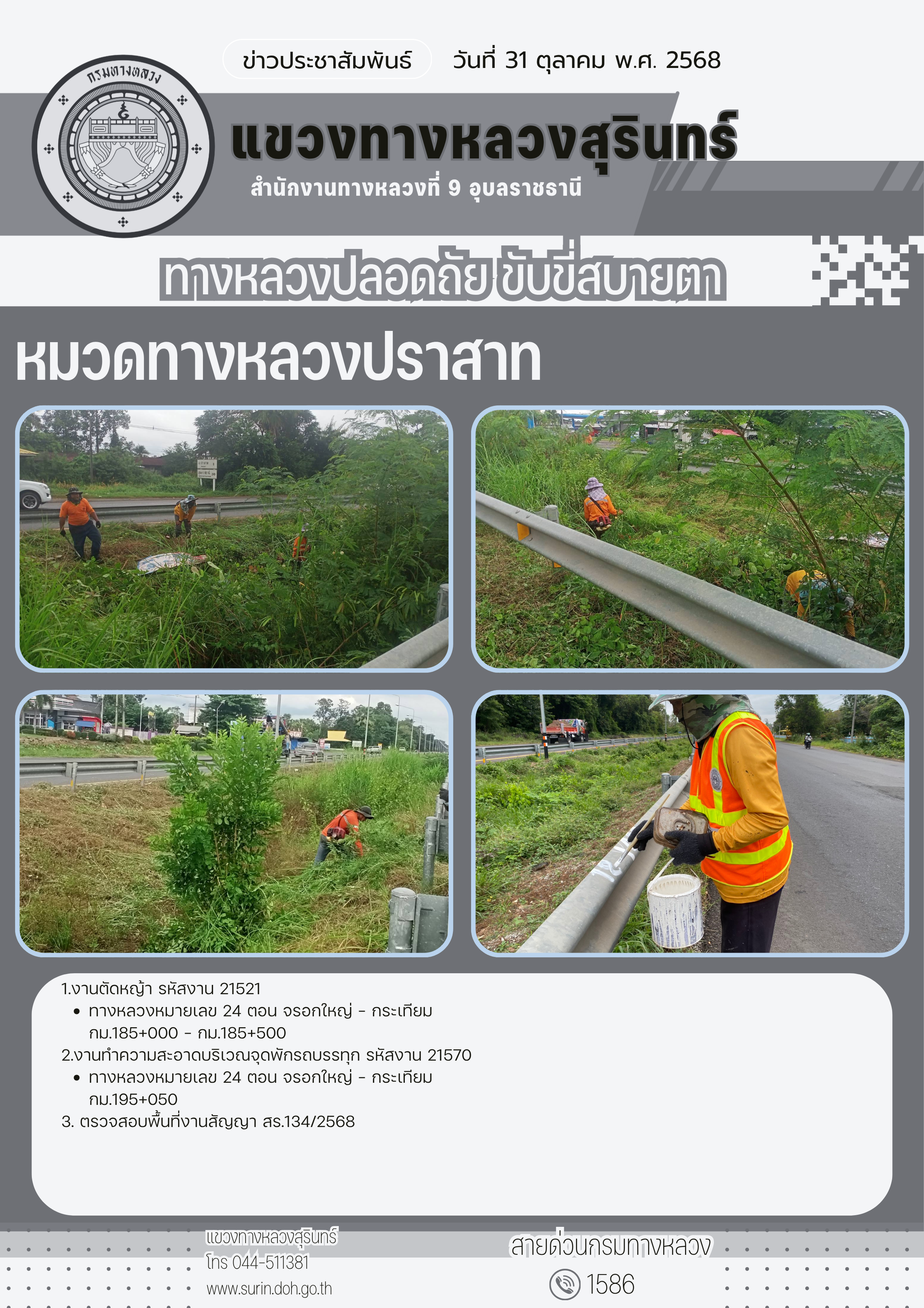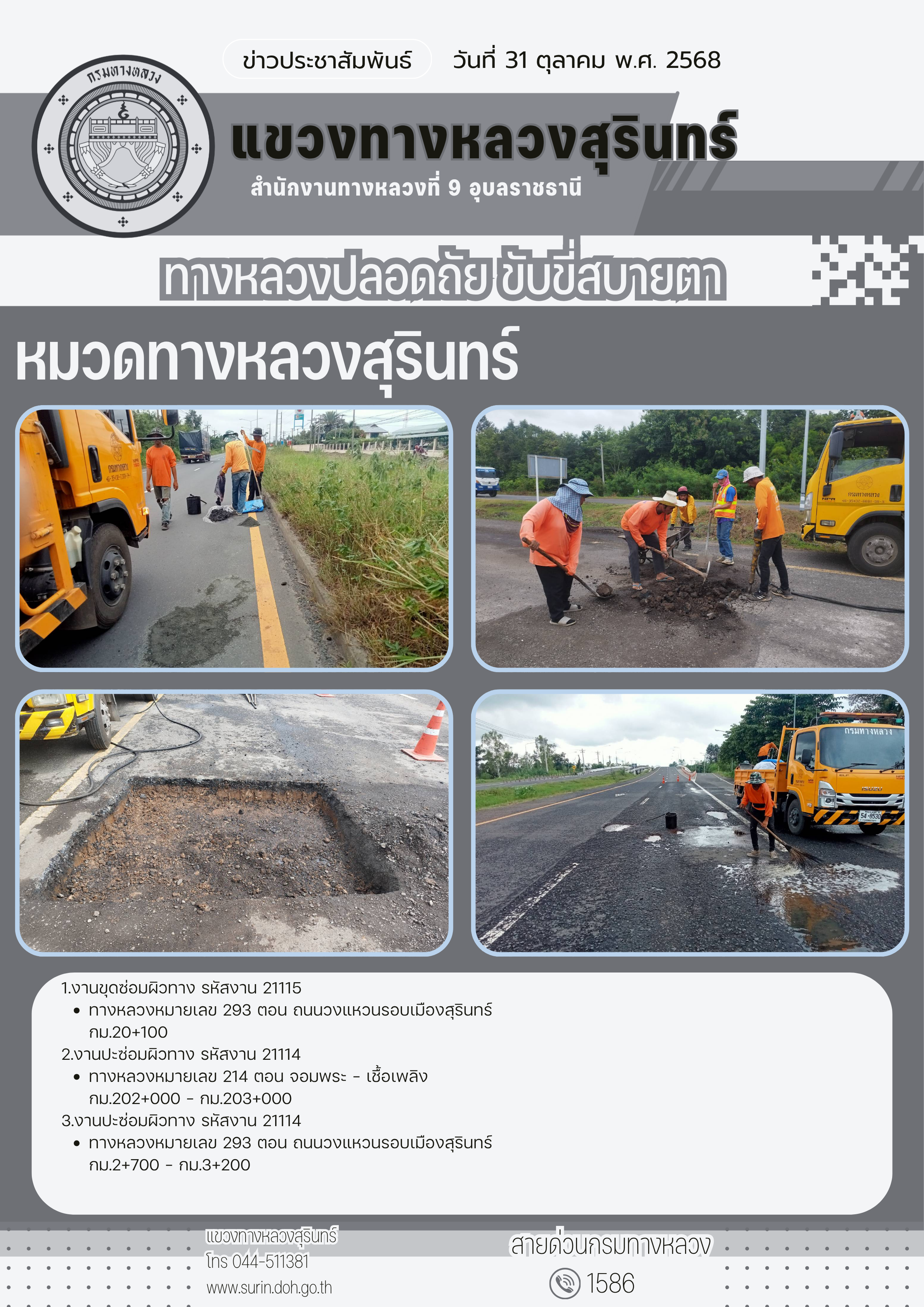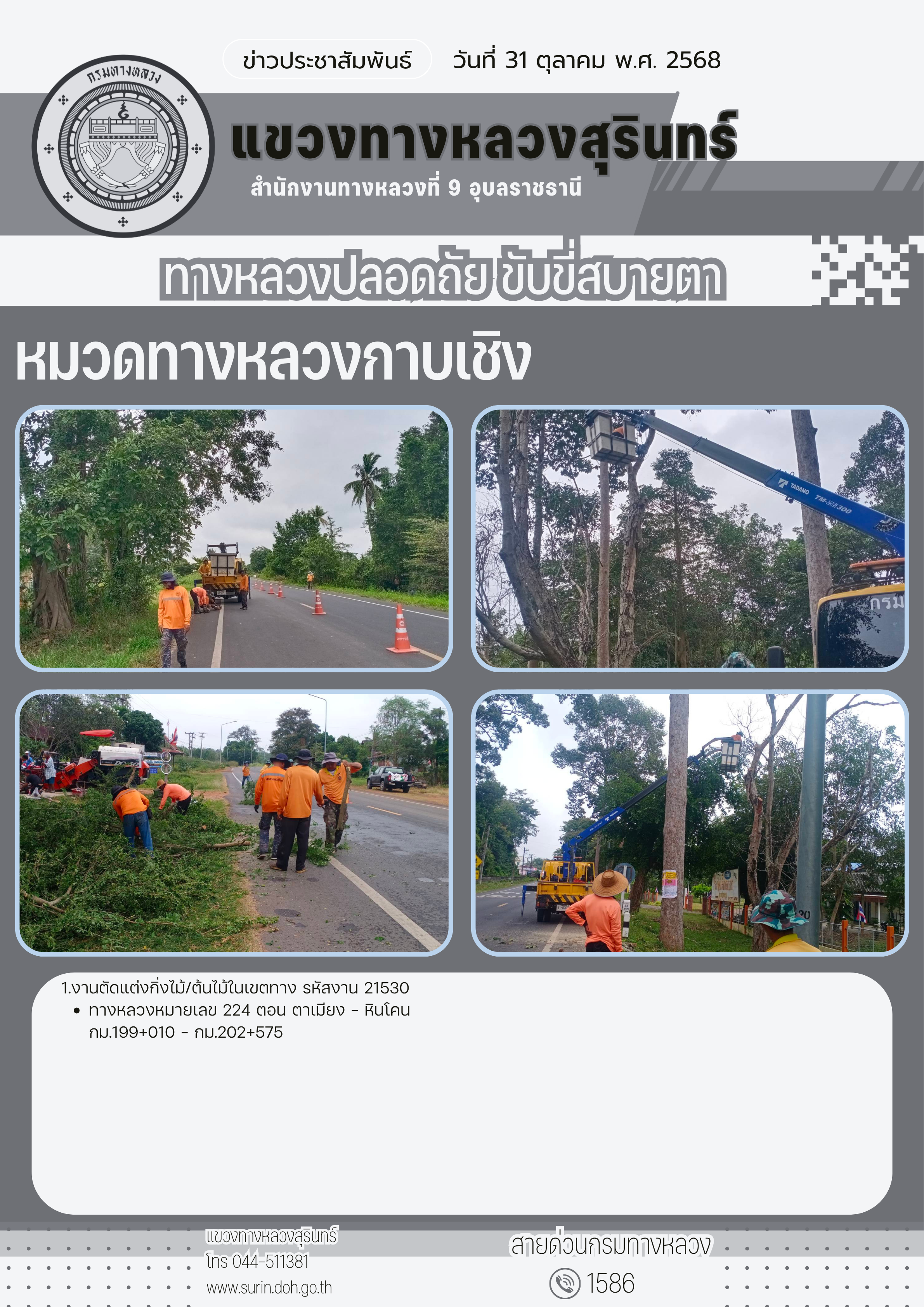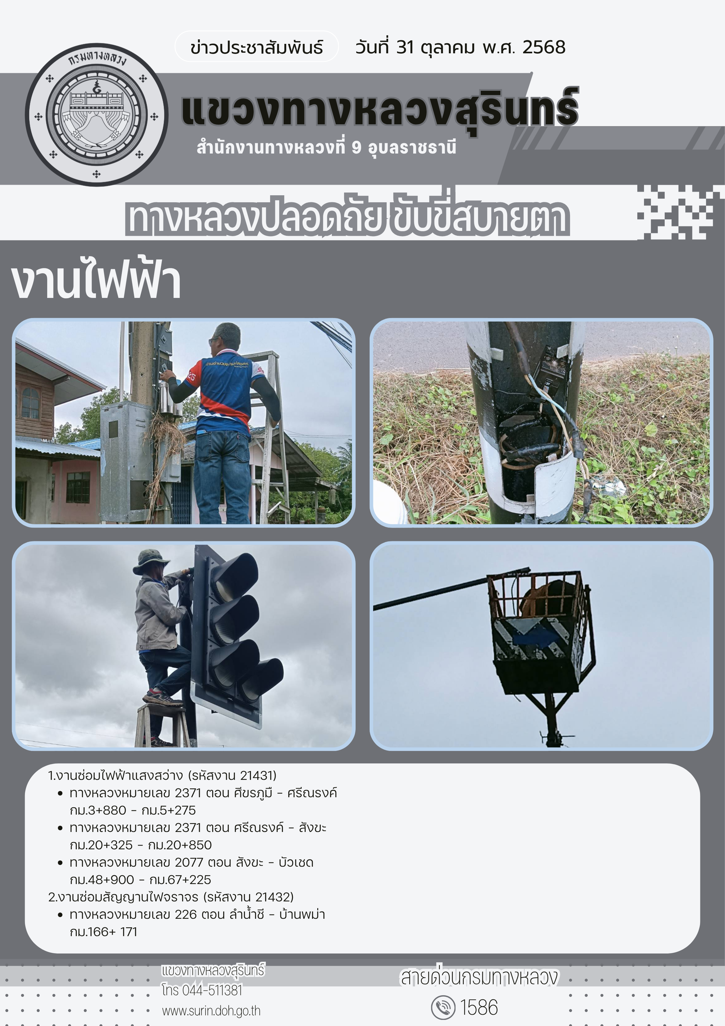ข้อมูลข่าว : ทางหลวงปลอดภัย ขับขี่สบายตา 31 ตุลาคม 2568