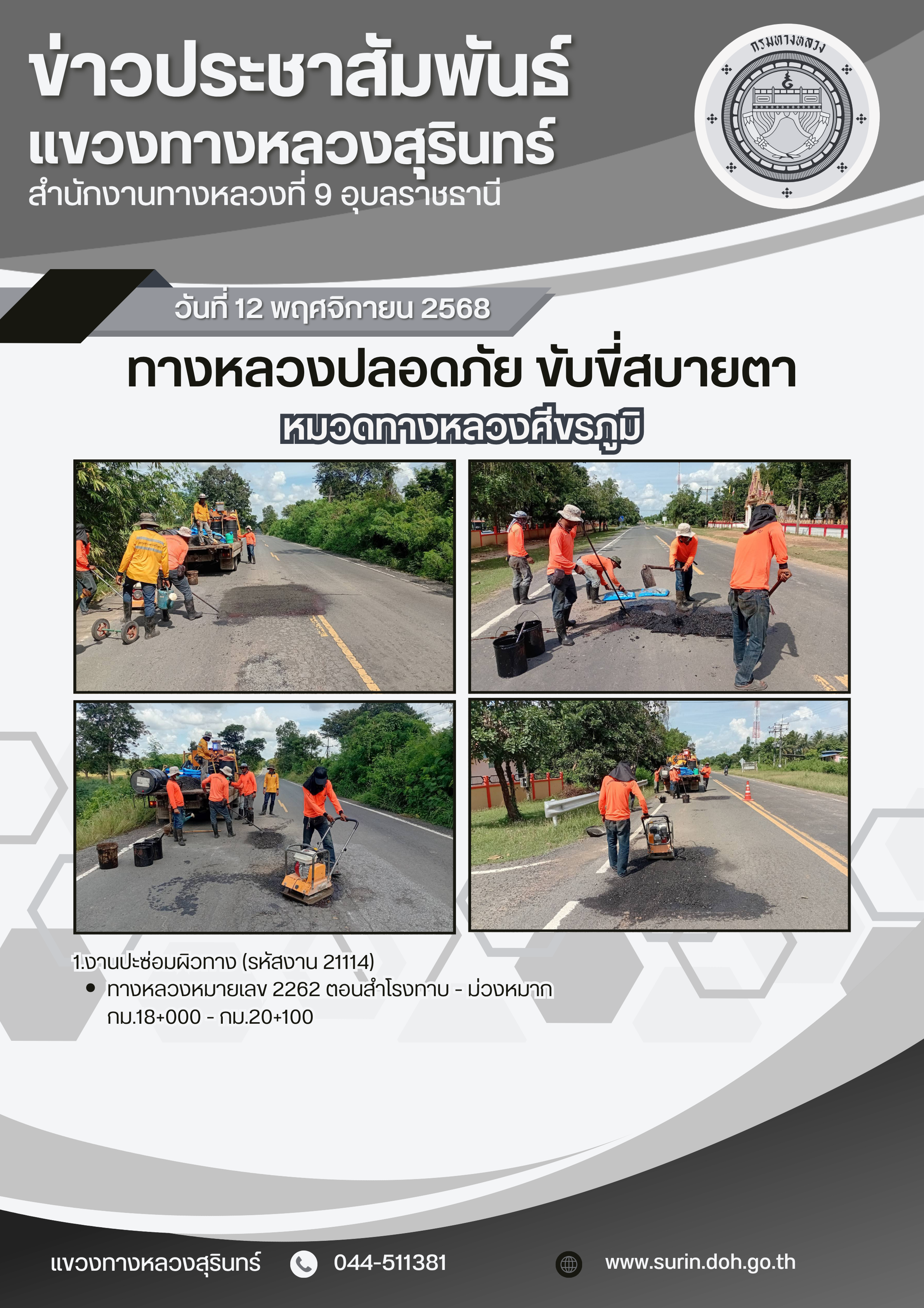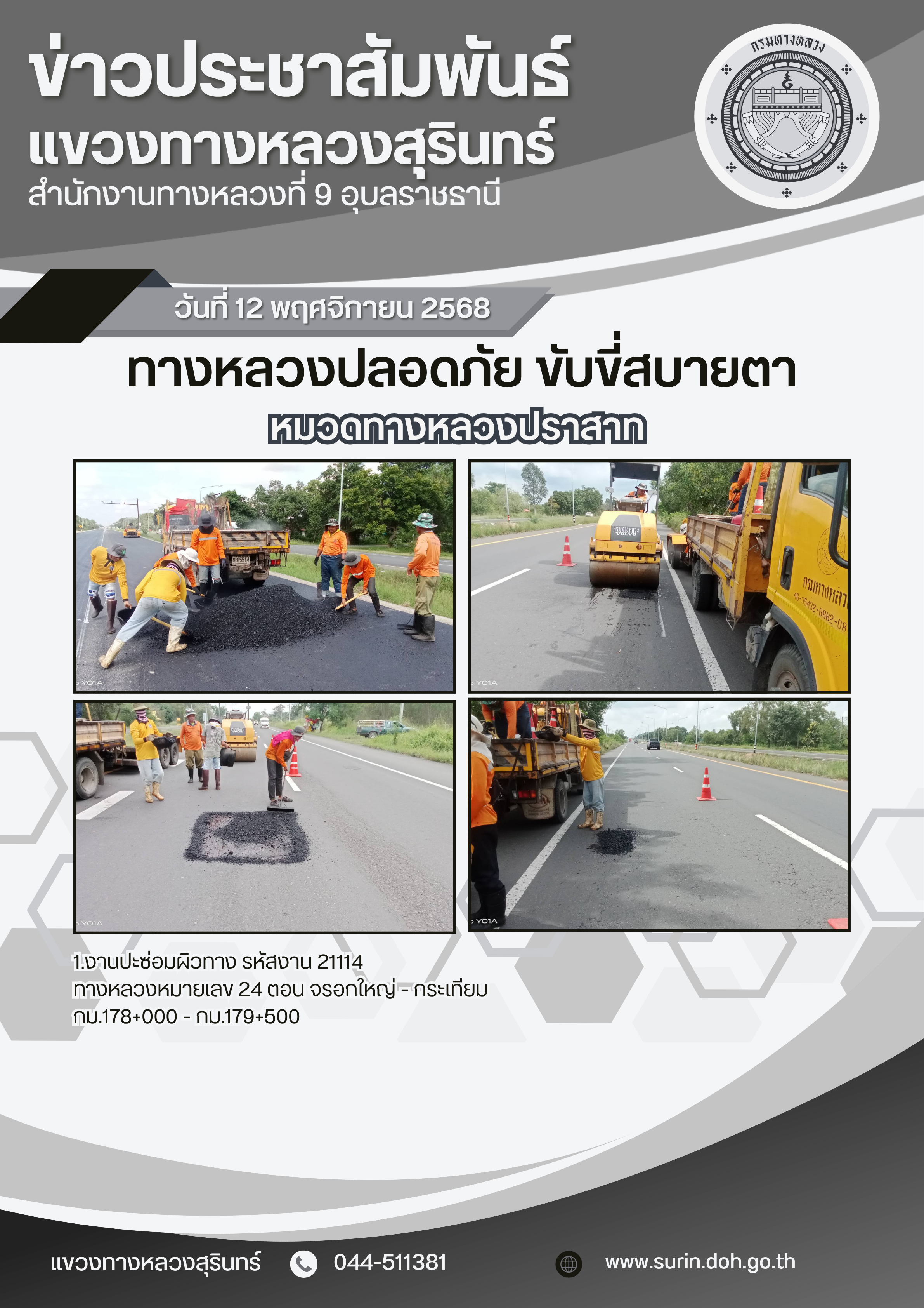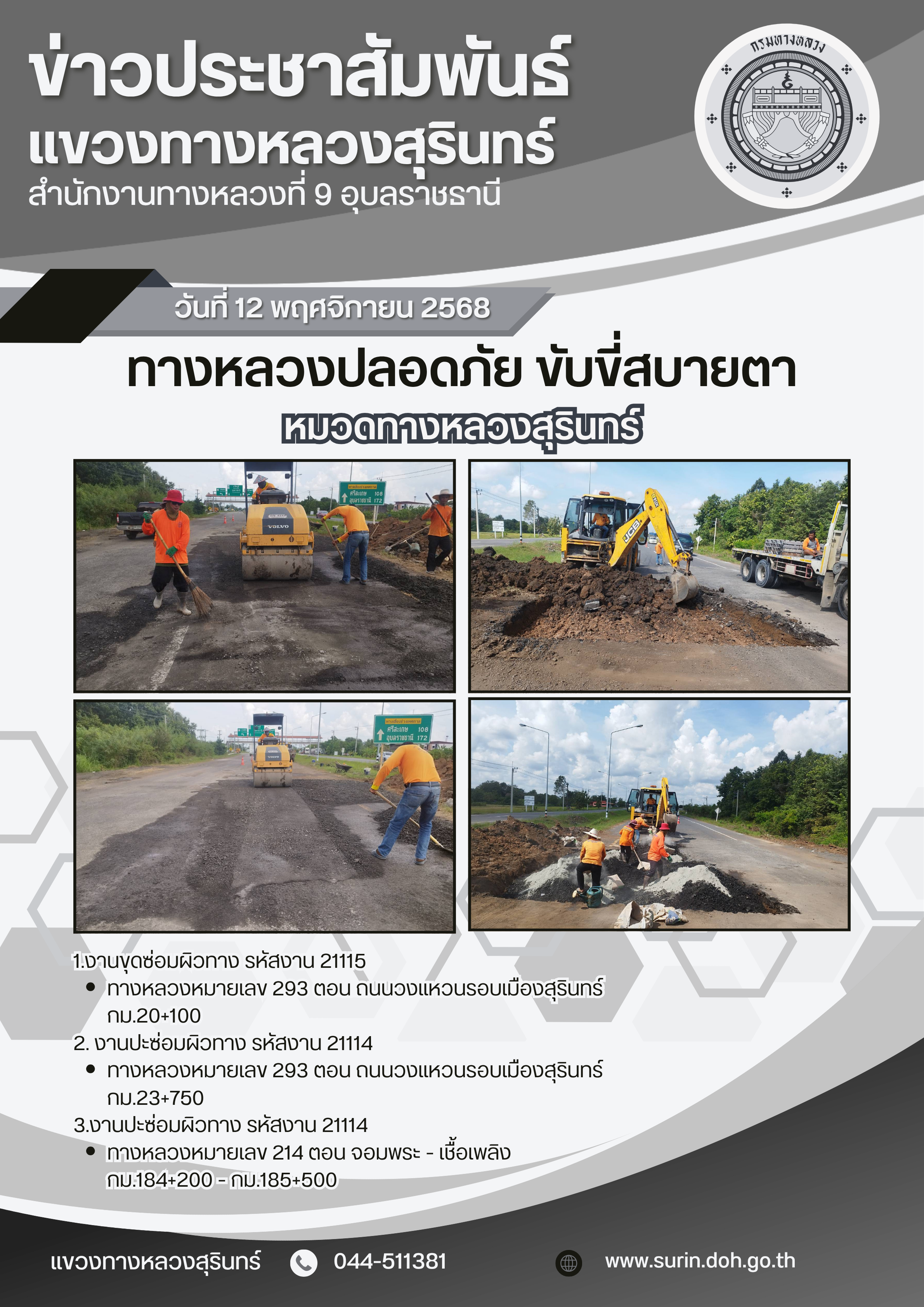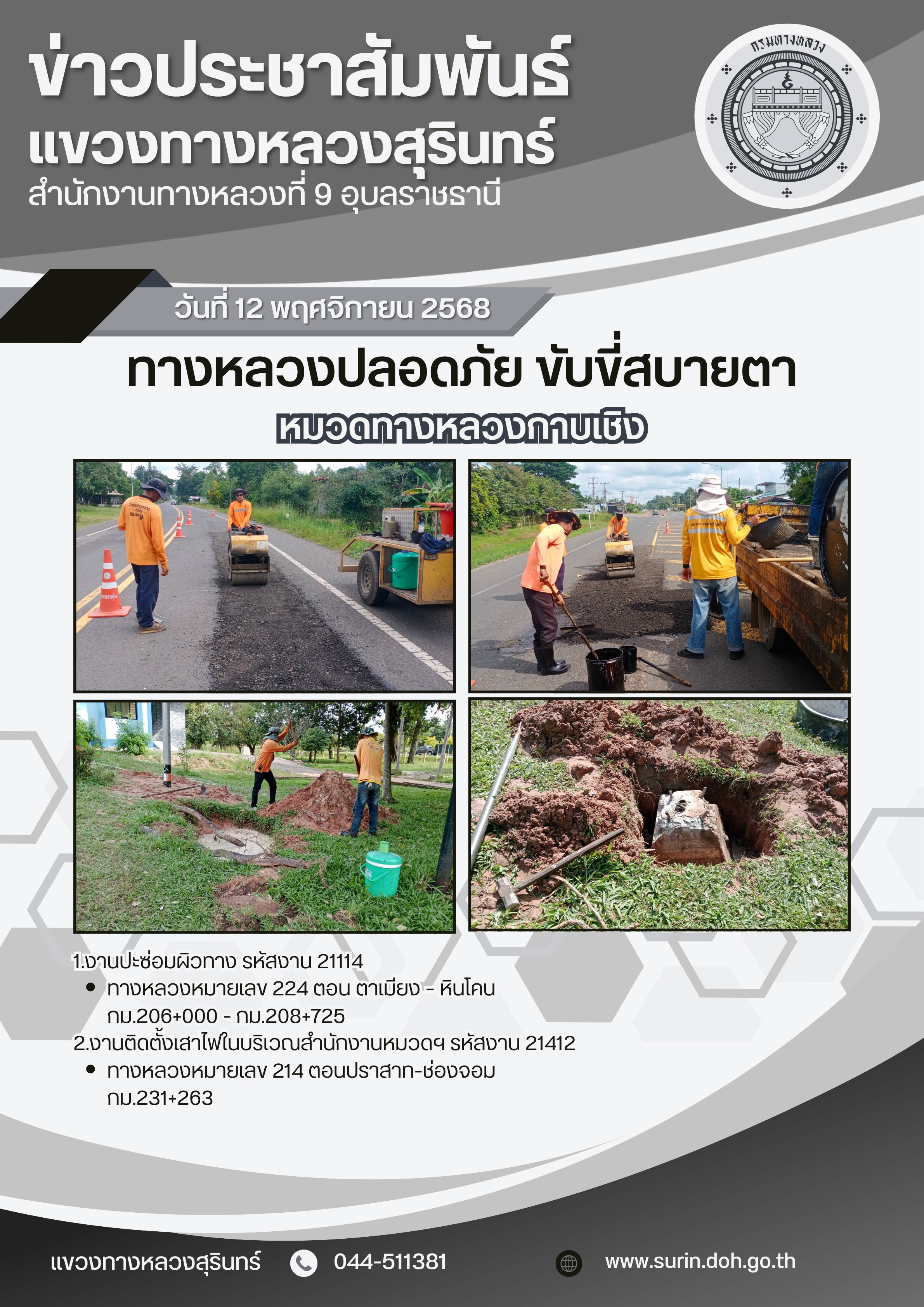 ข้อมูลข่าว : ทางหลวงปลอดภัย ขับขี่สบายตา 12 พฤศจิกายน 2568