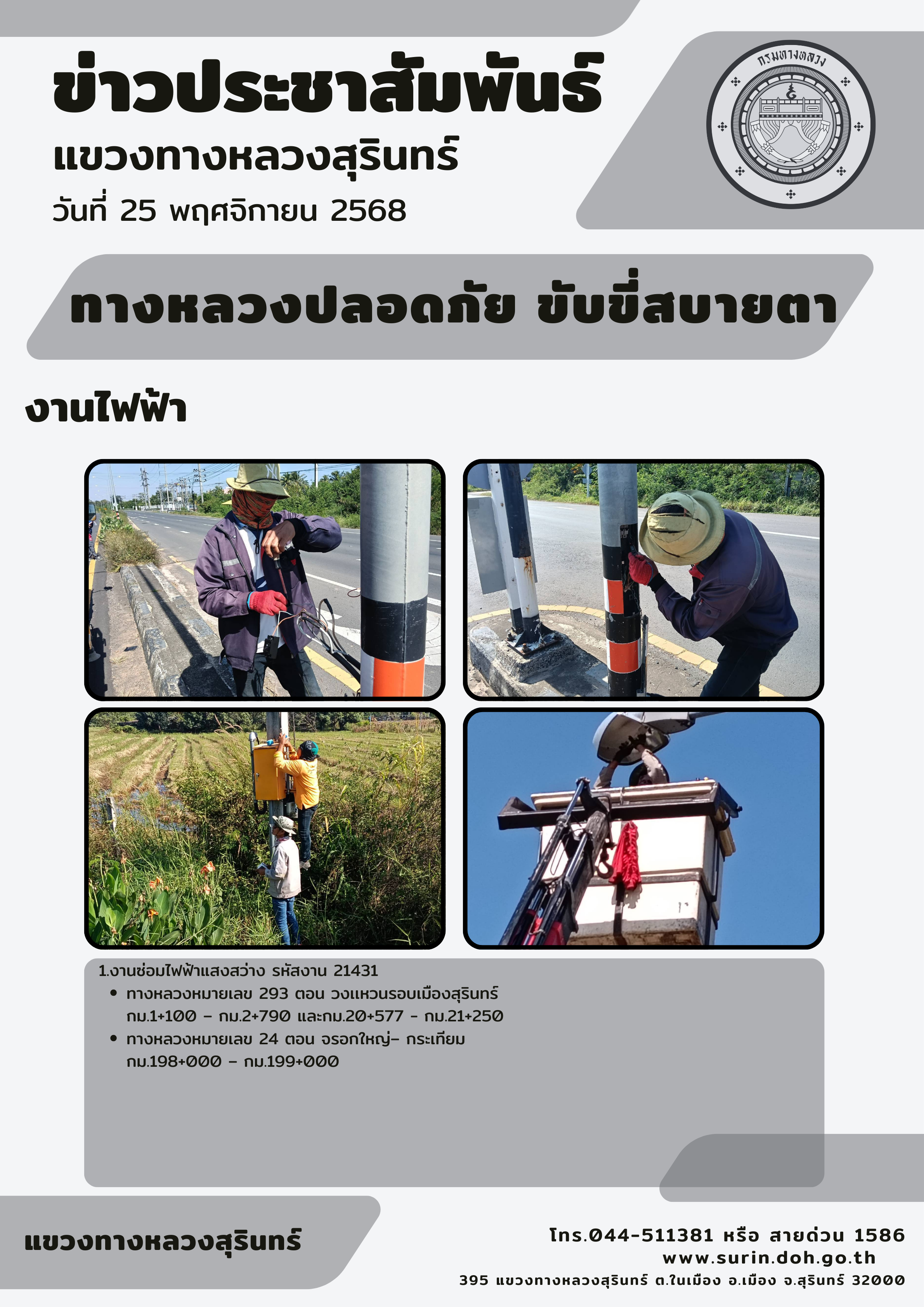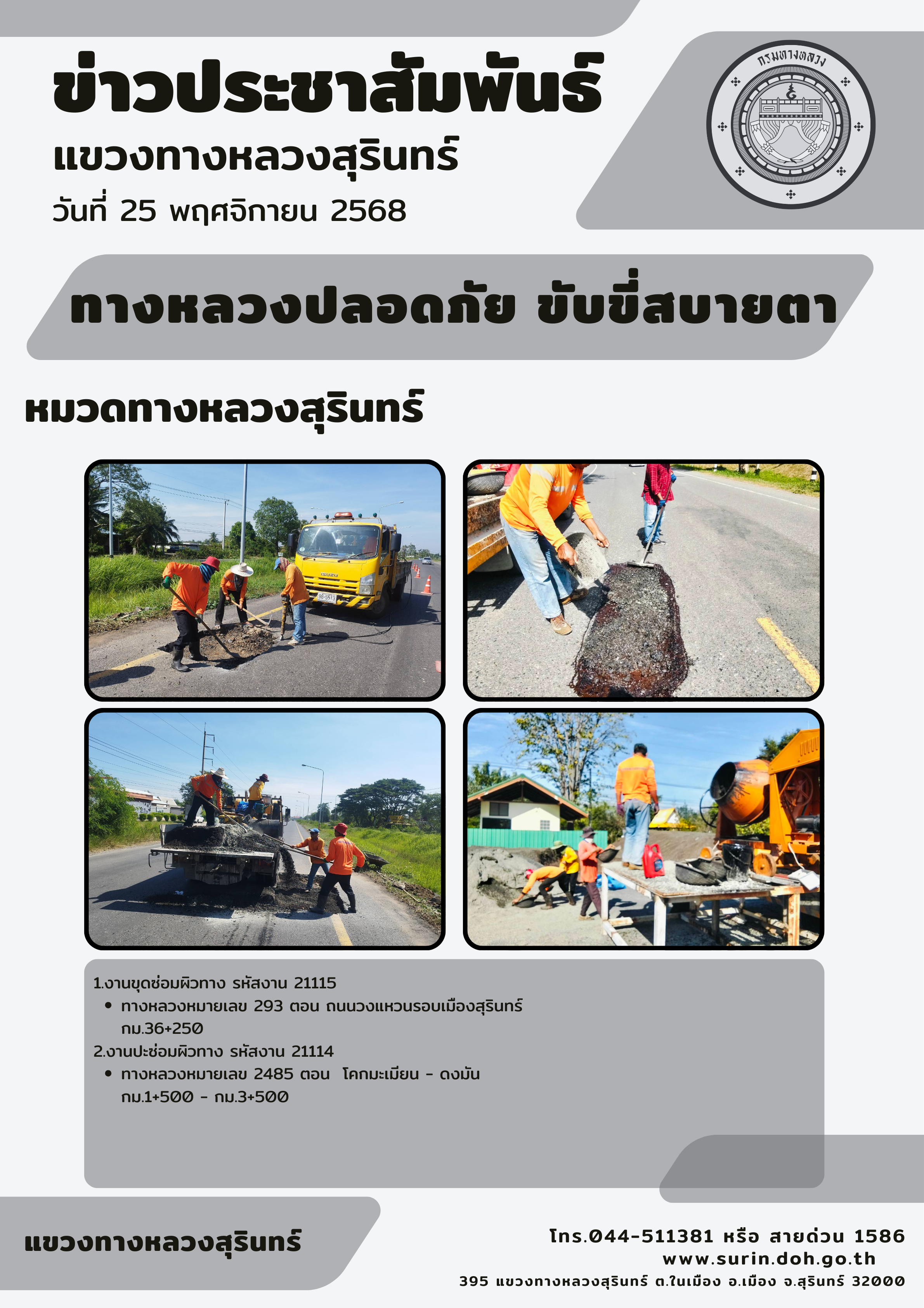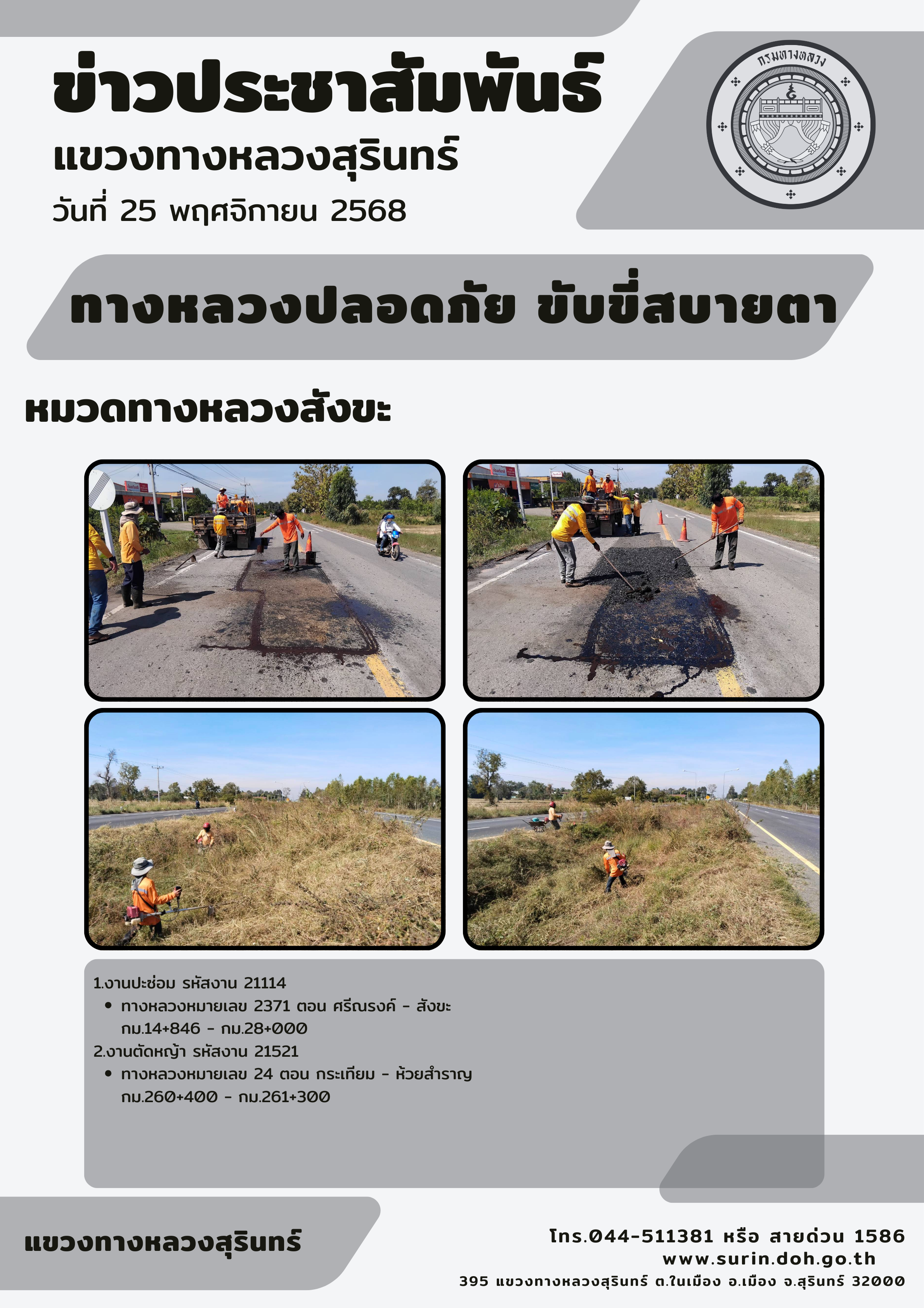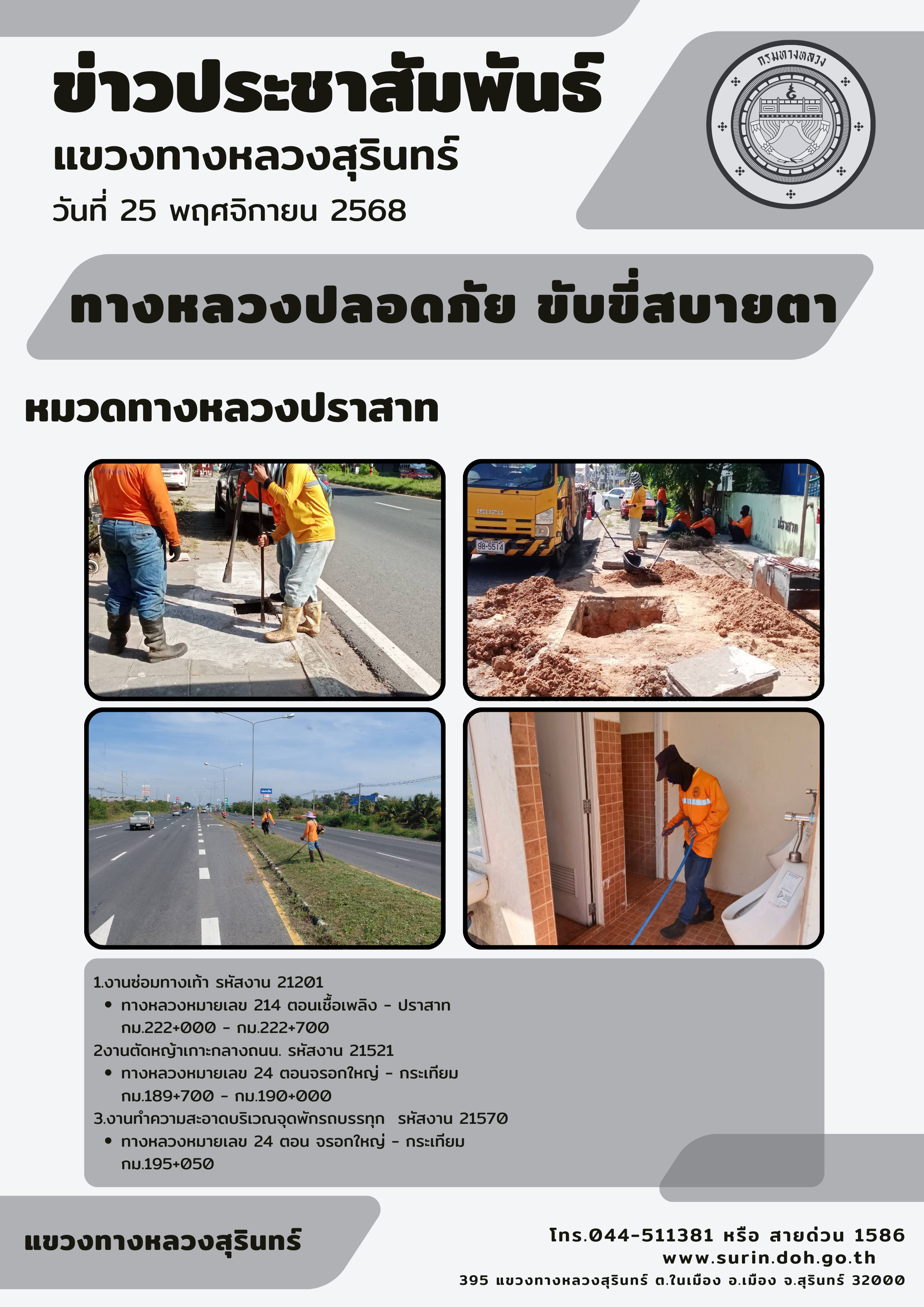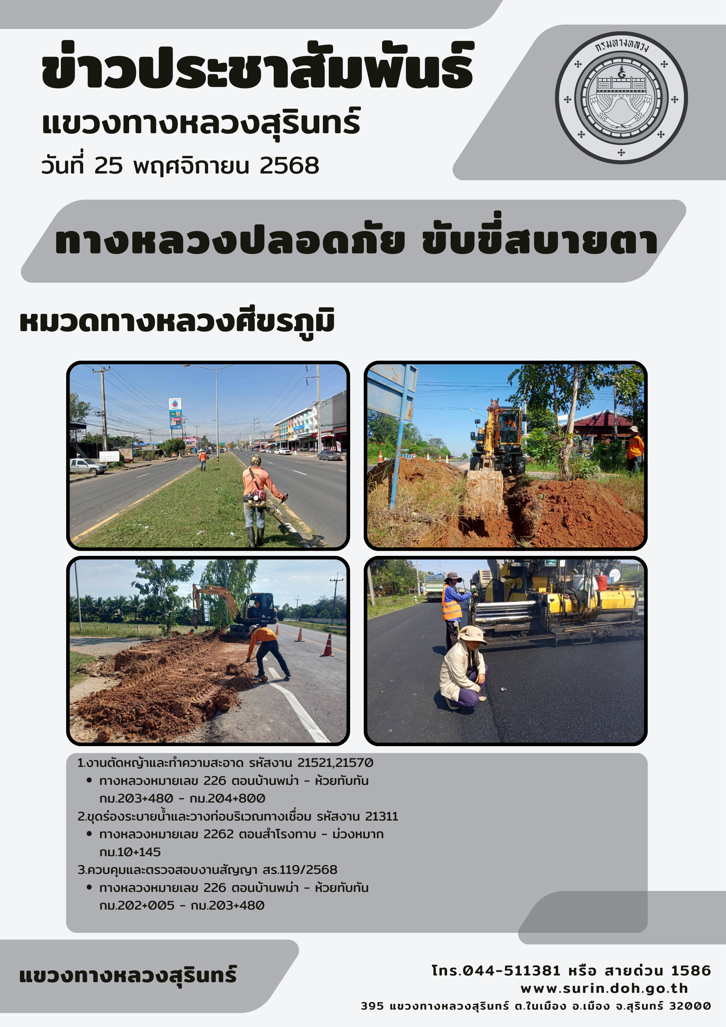 ข้อมูลข่าว : ทางหลวงปลอดภัย ขับขี่สบายตา 25 พฤศจิกายน 2568