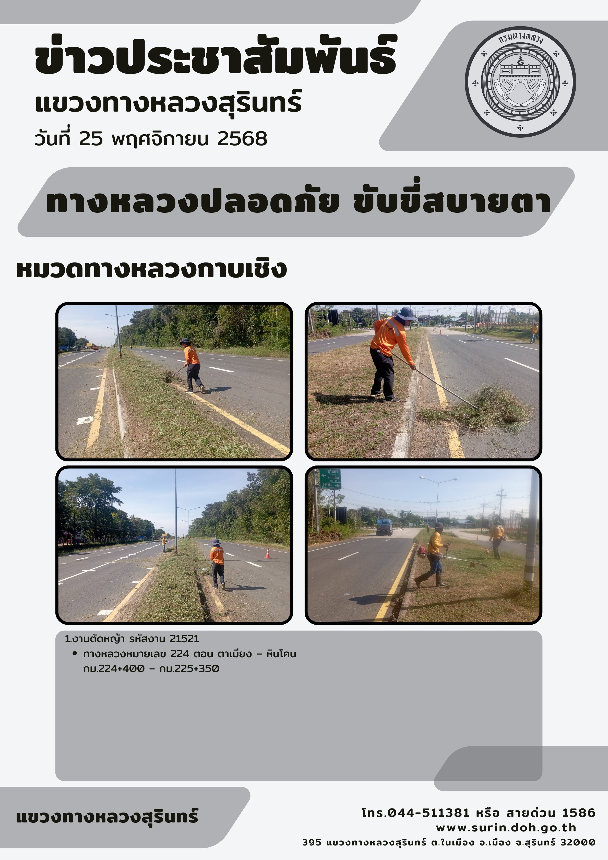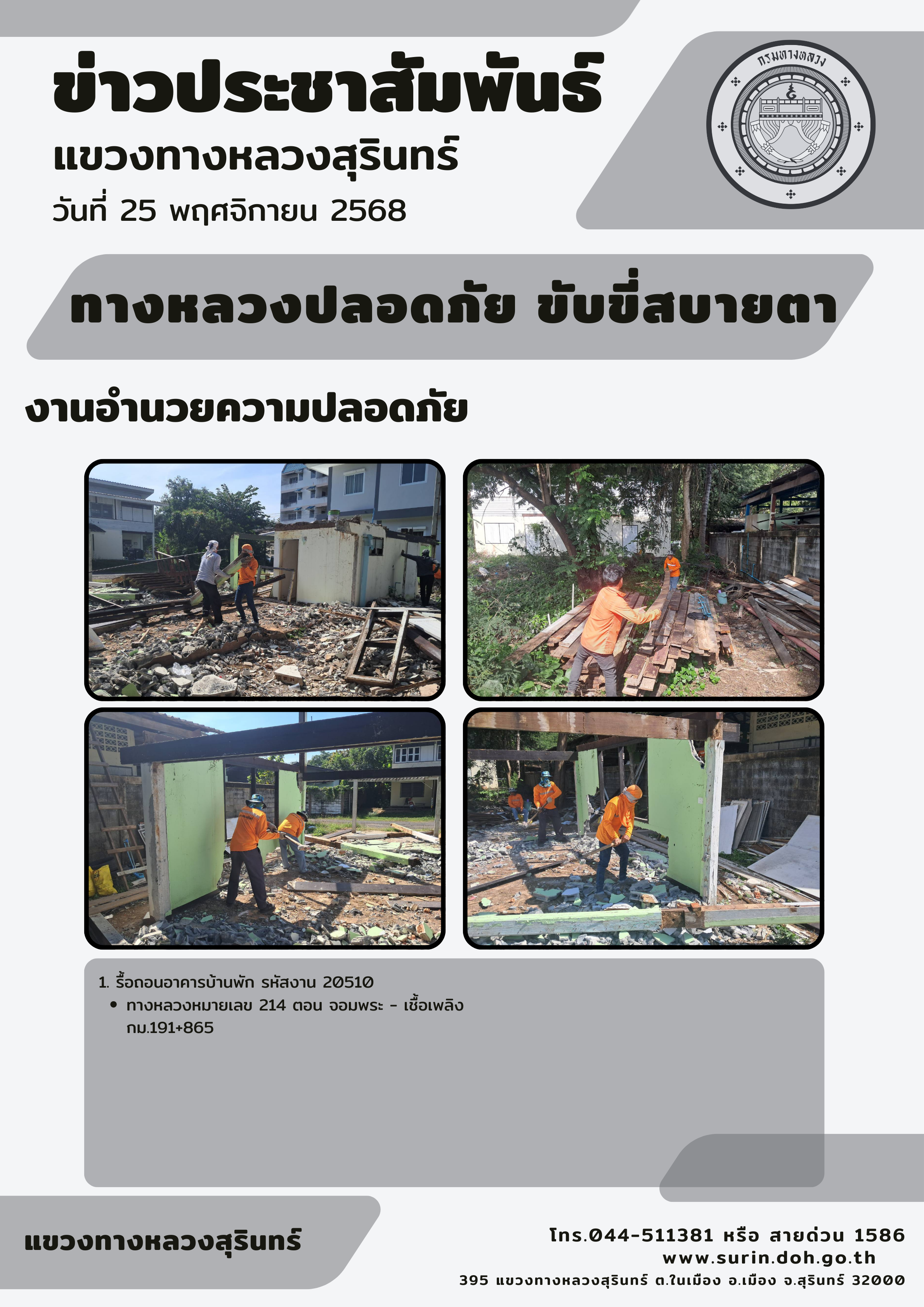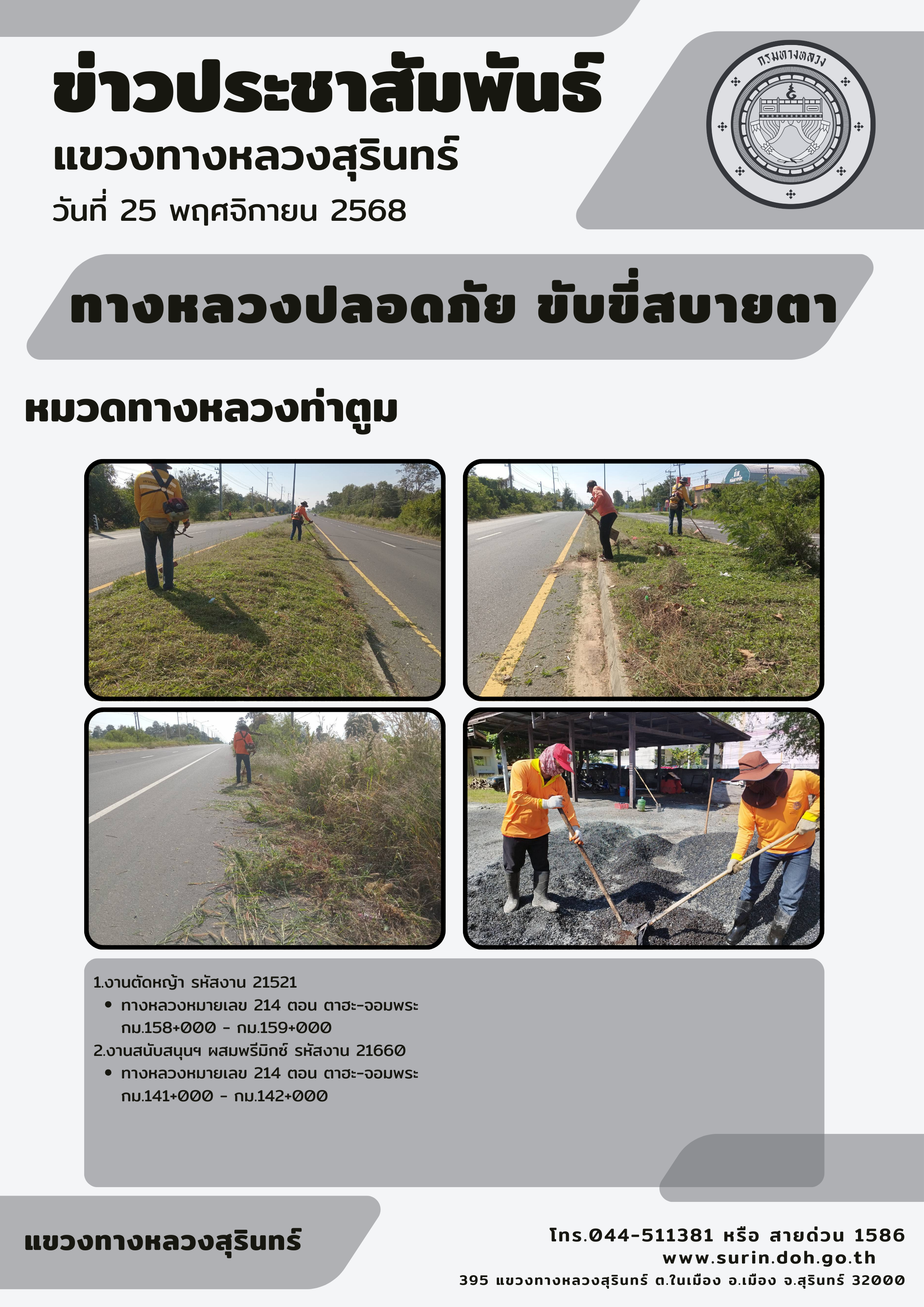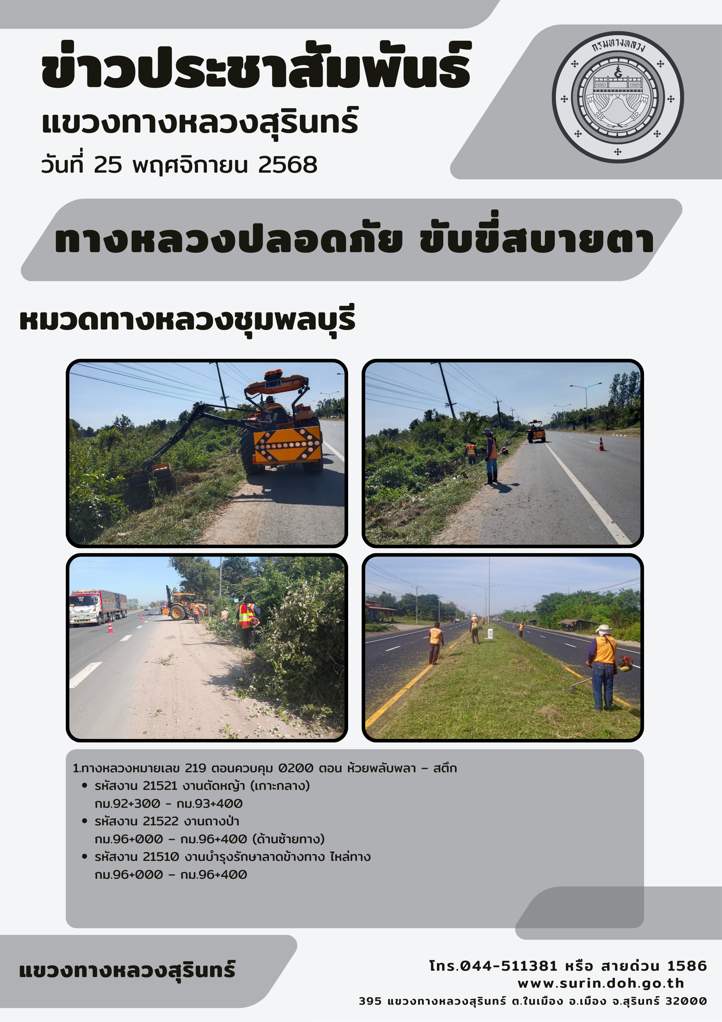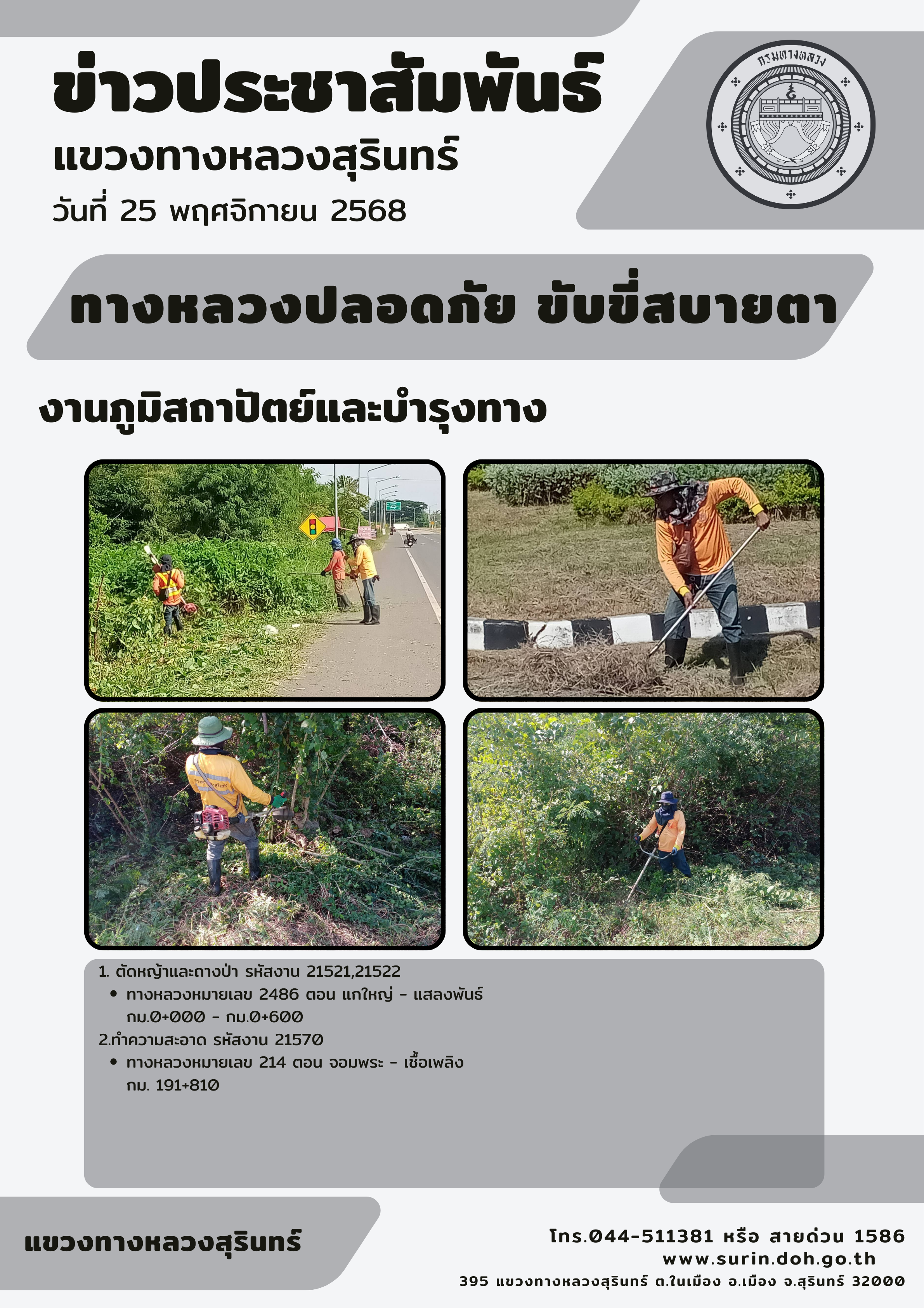 ข้อมูลข่าว : ทางหลวงปลอดภัย ขับขี่สบายตา 25 พฤศจิกายน 2568