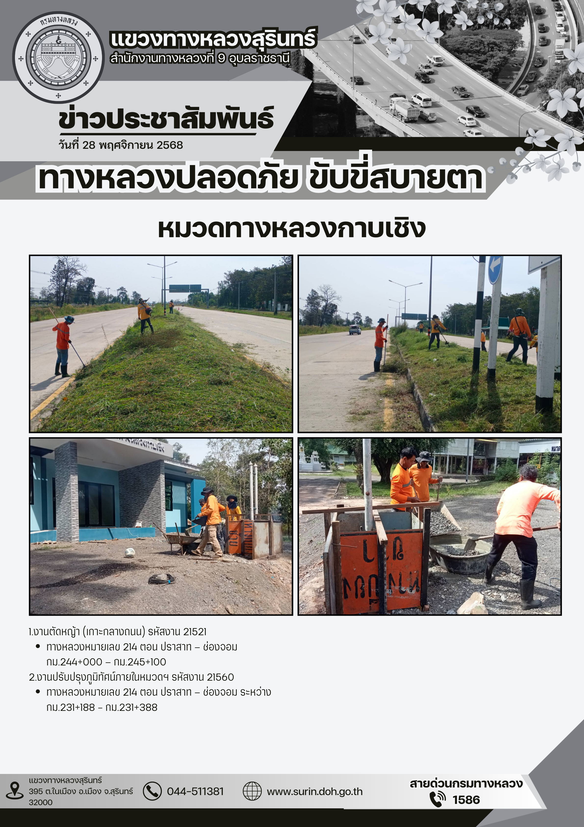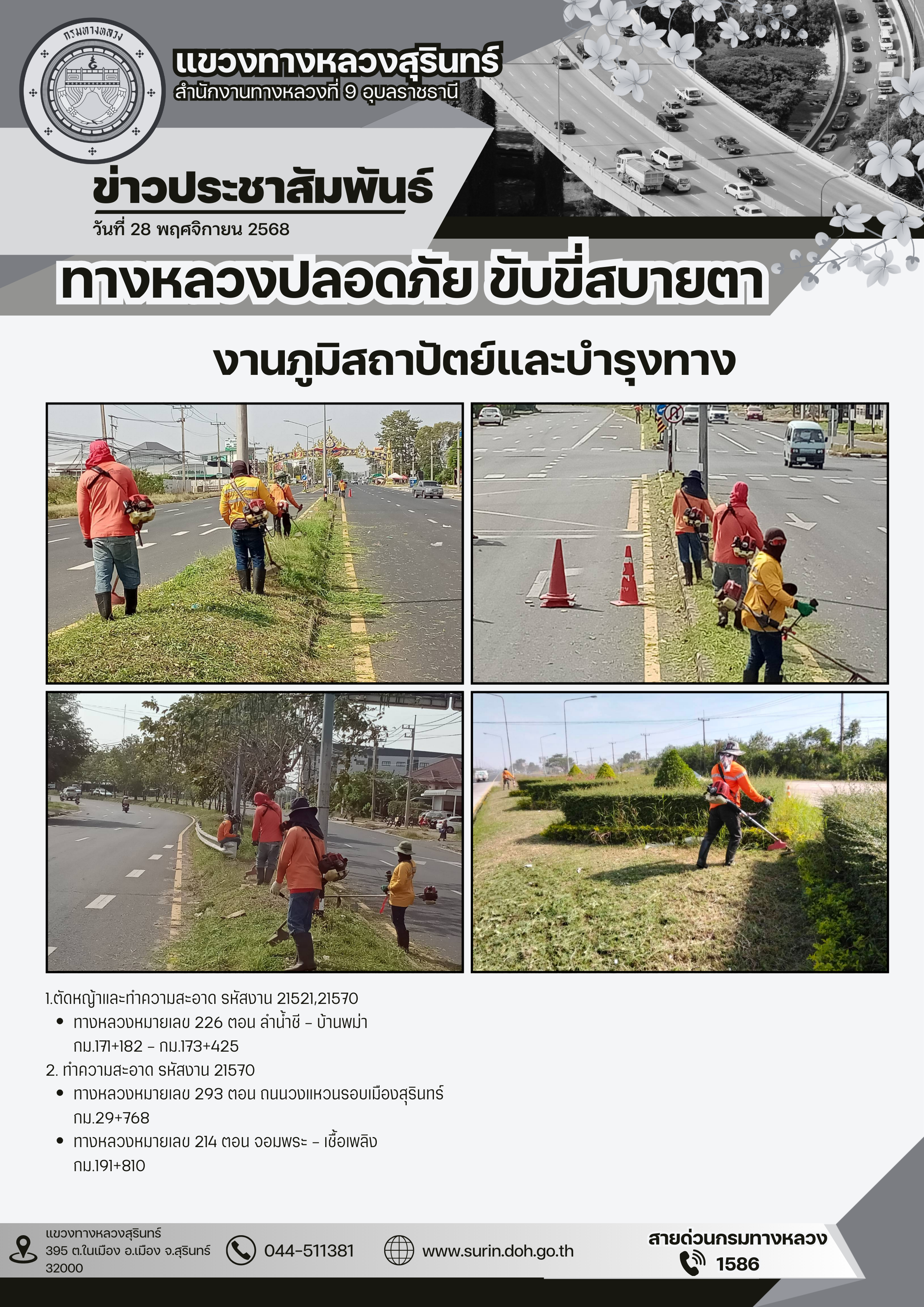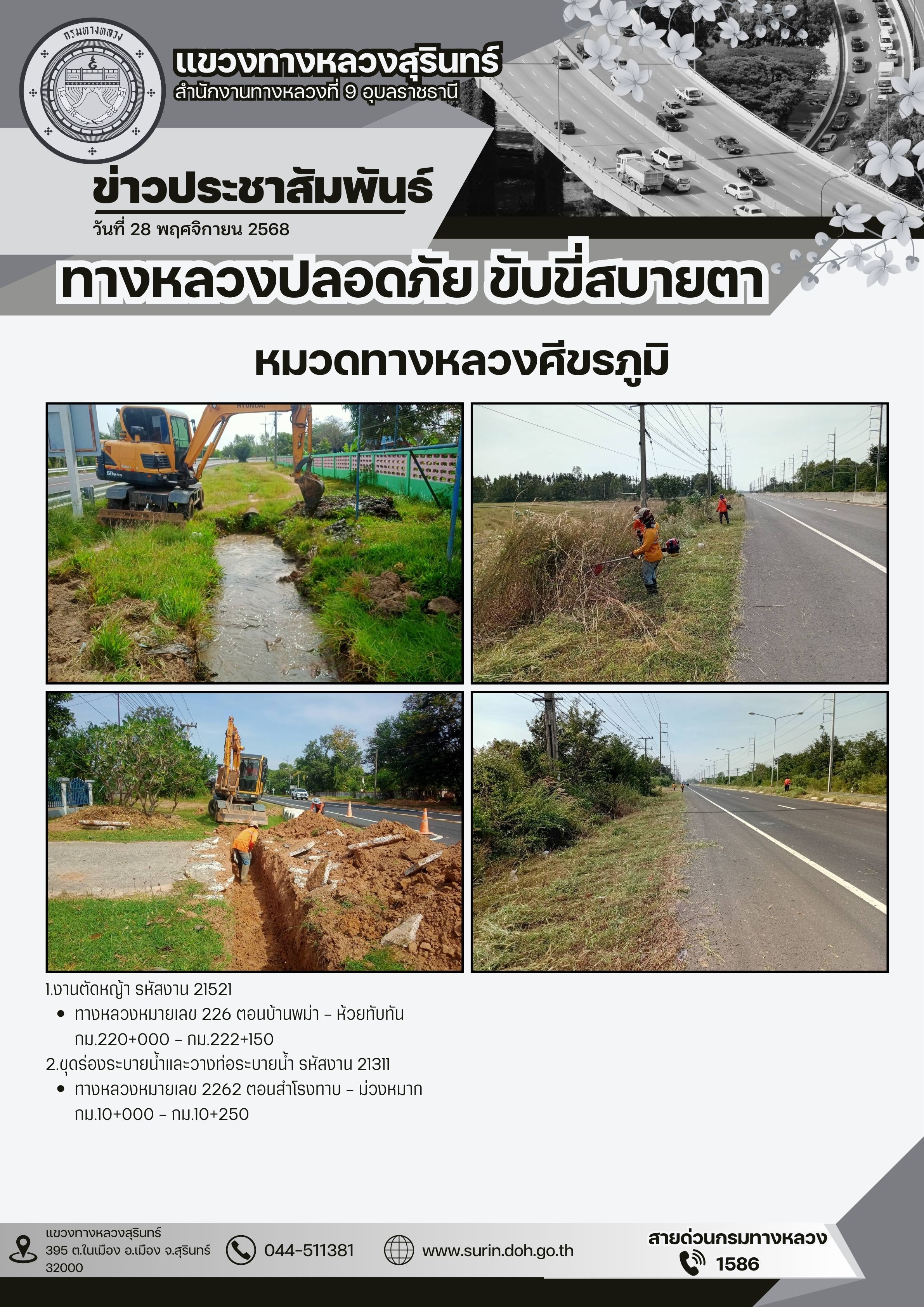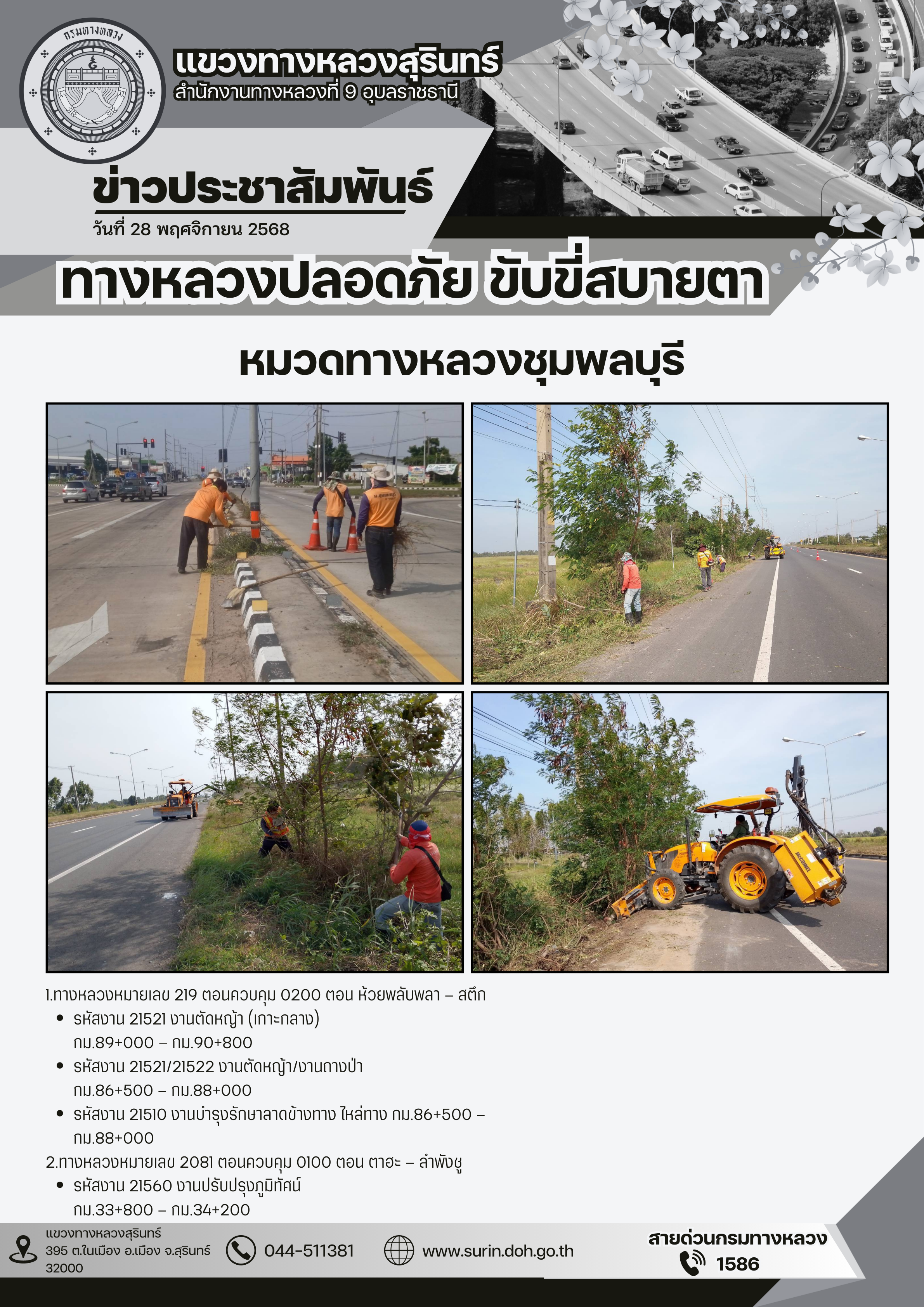 ข้อมูลข่าว : ทางหลวงปลอดภัย ขับขี่สบายตา 28 พฤศจิกายน 2568
