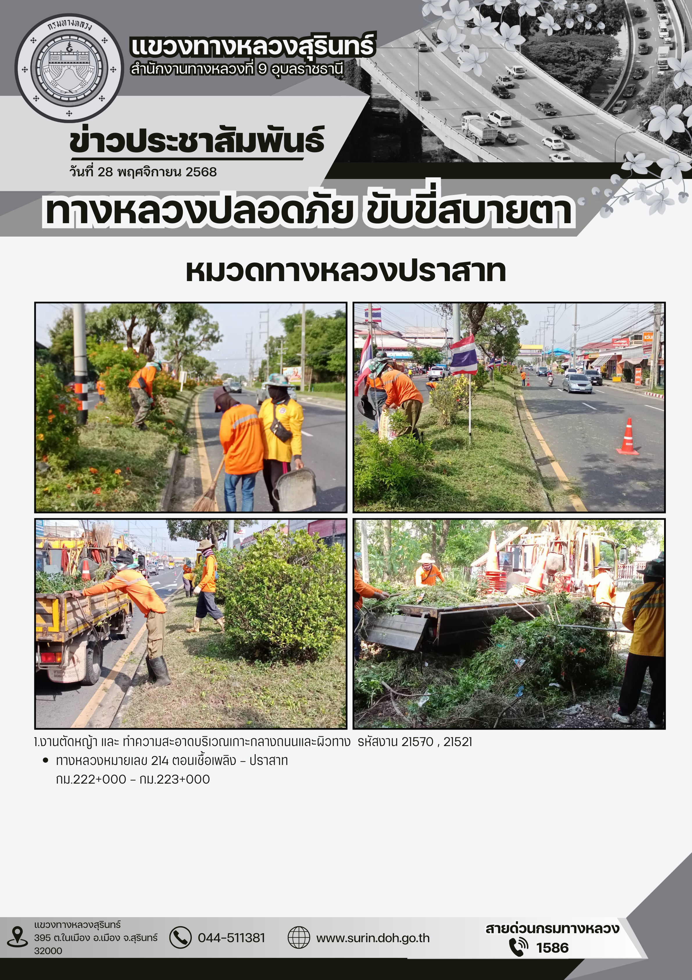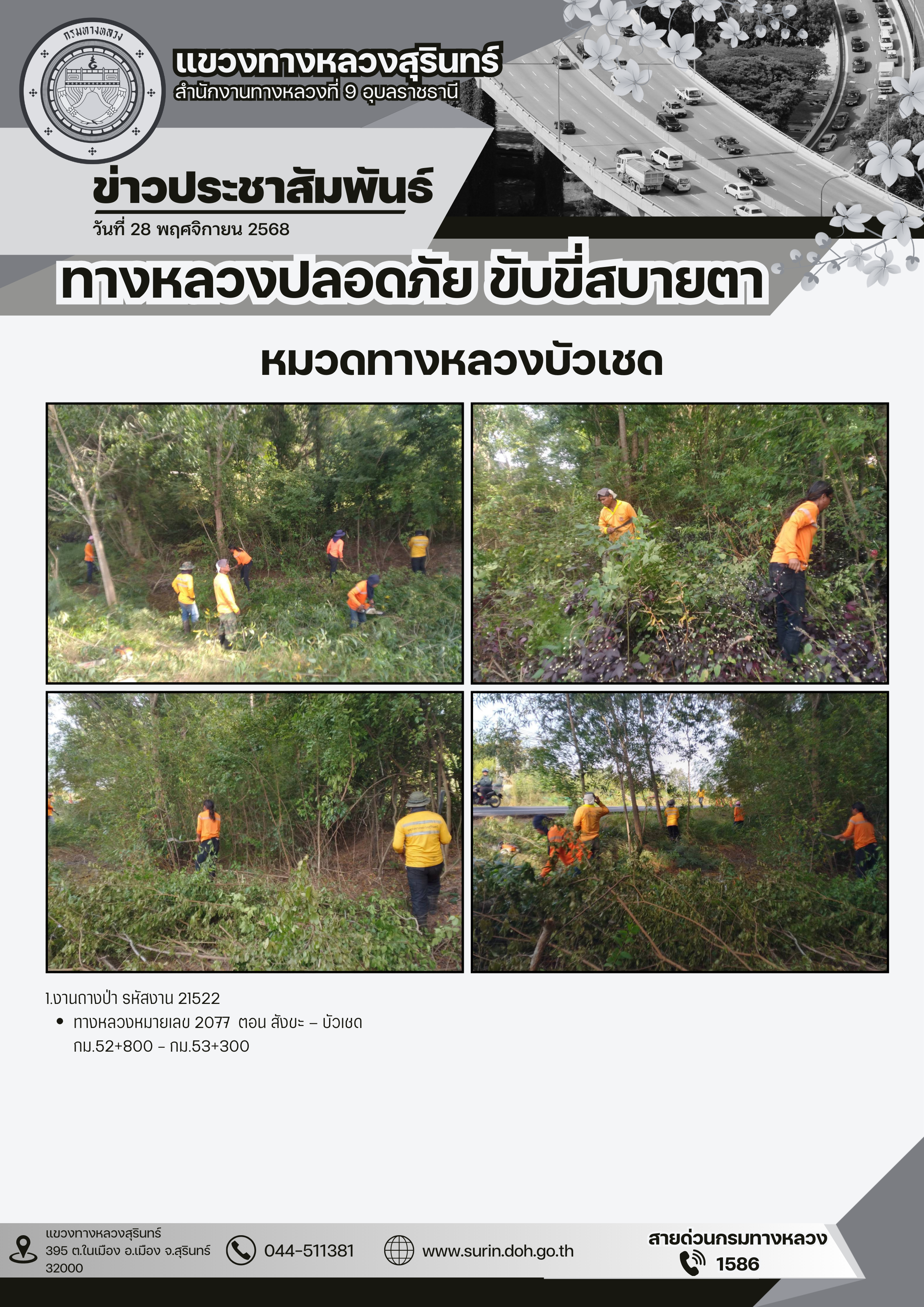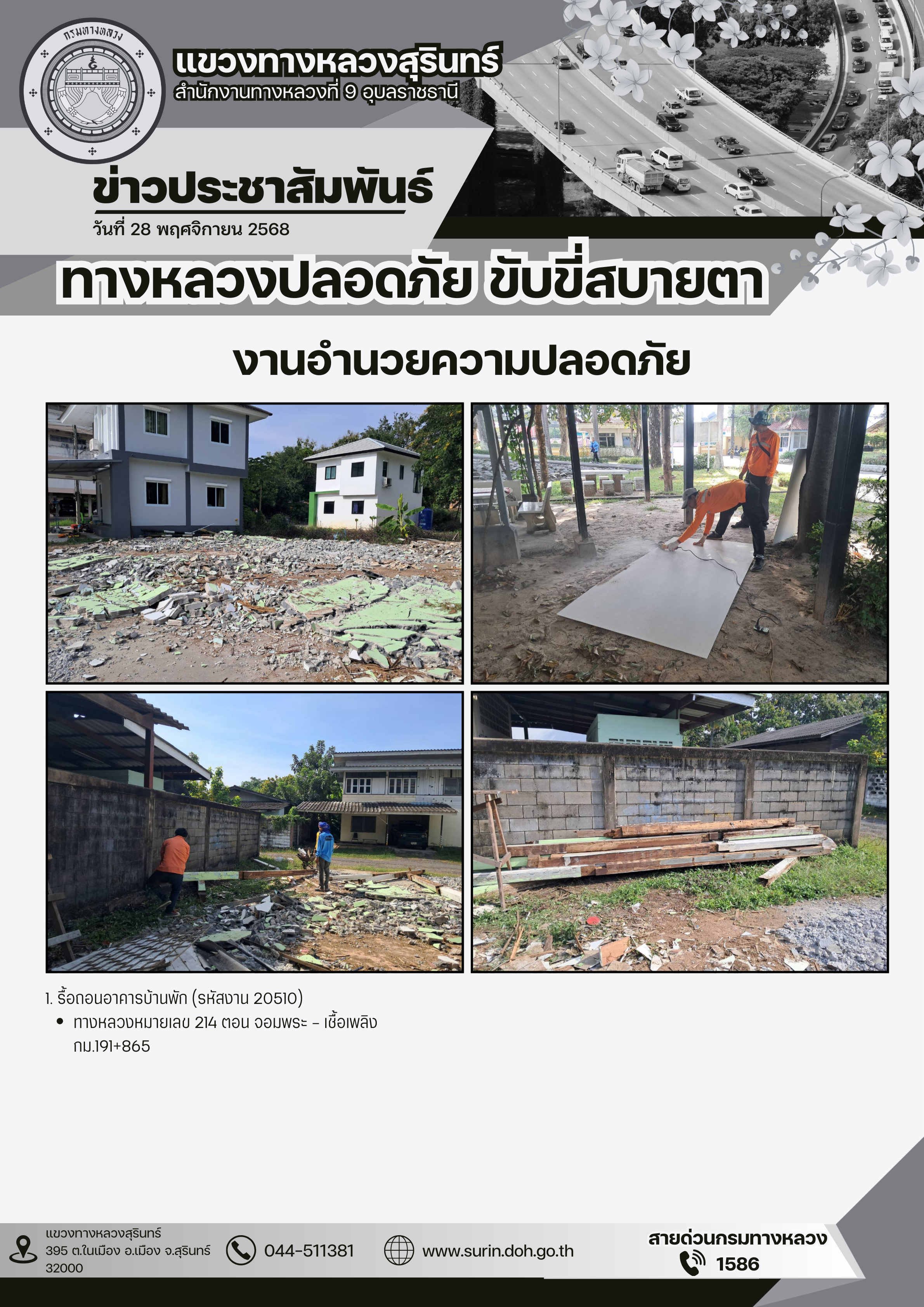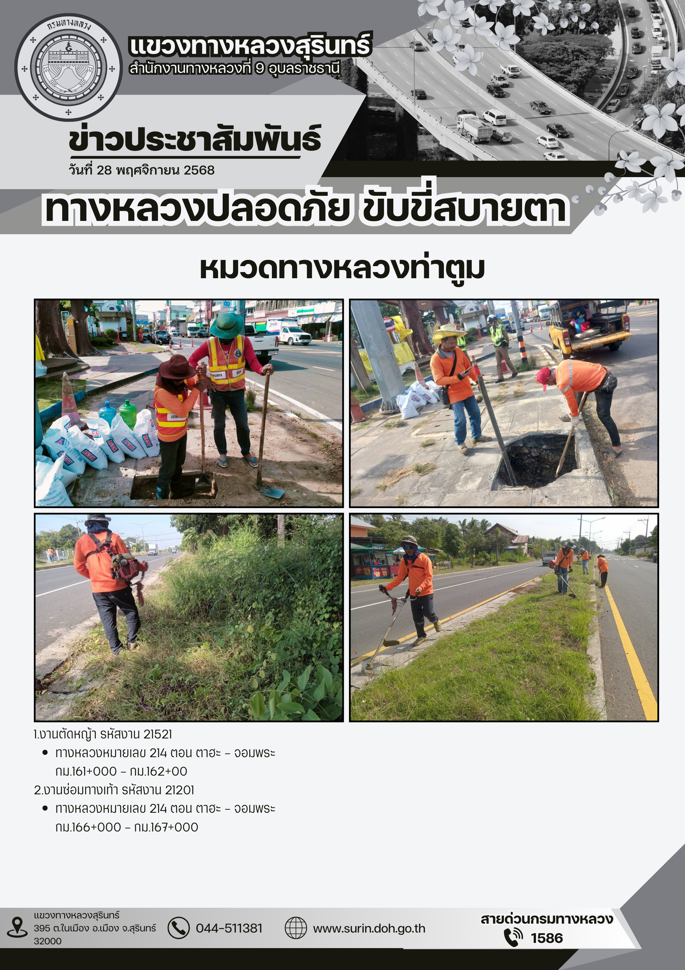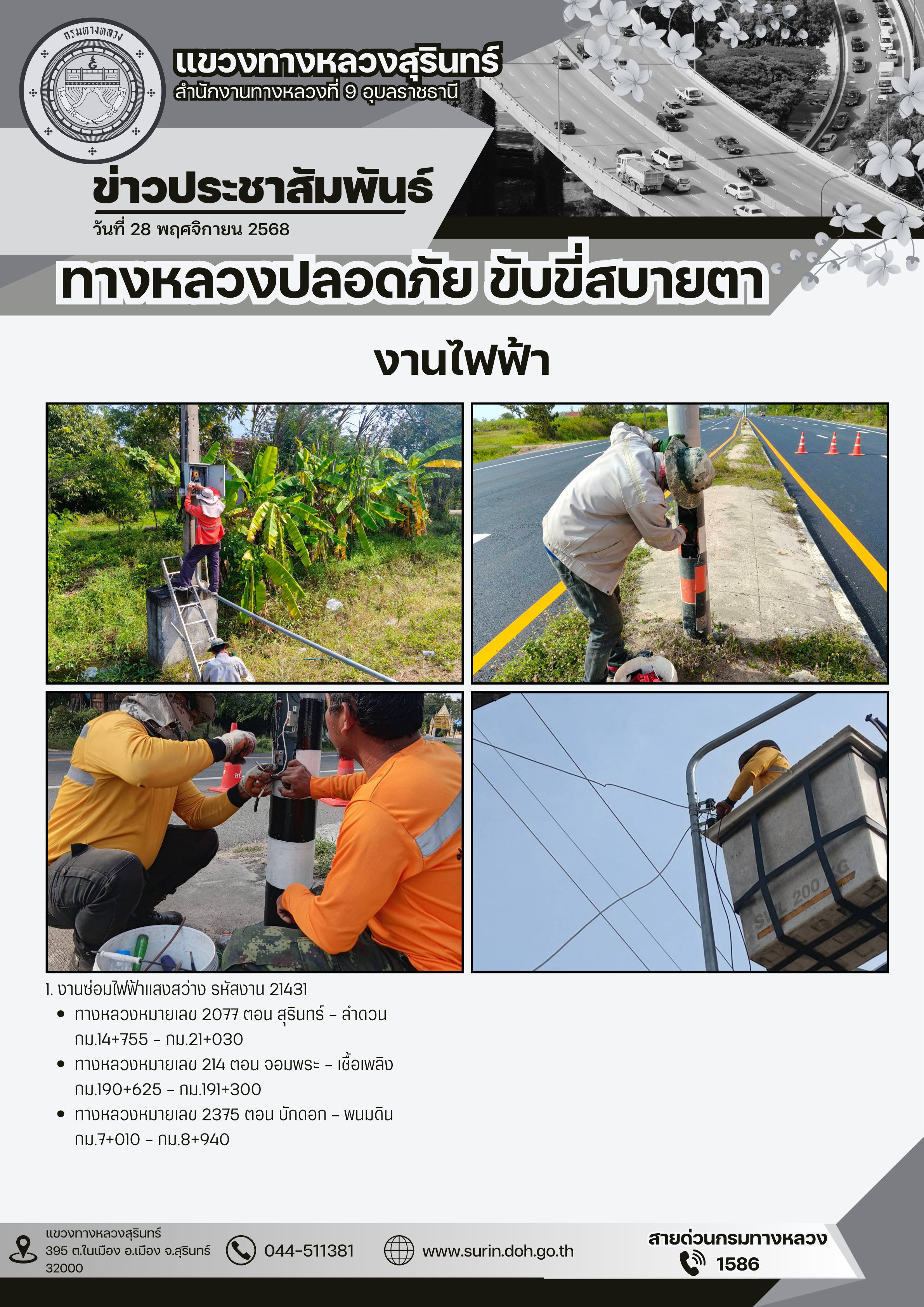 ข้อมูลข่าว : ทางหลวงปลอดภัย ขับขี่สบายตา 28 พฤศจิกายน 2568