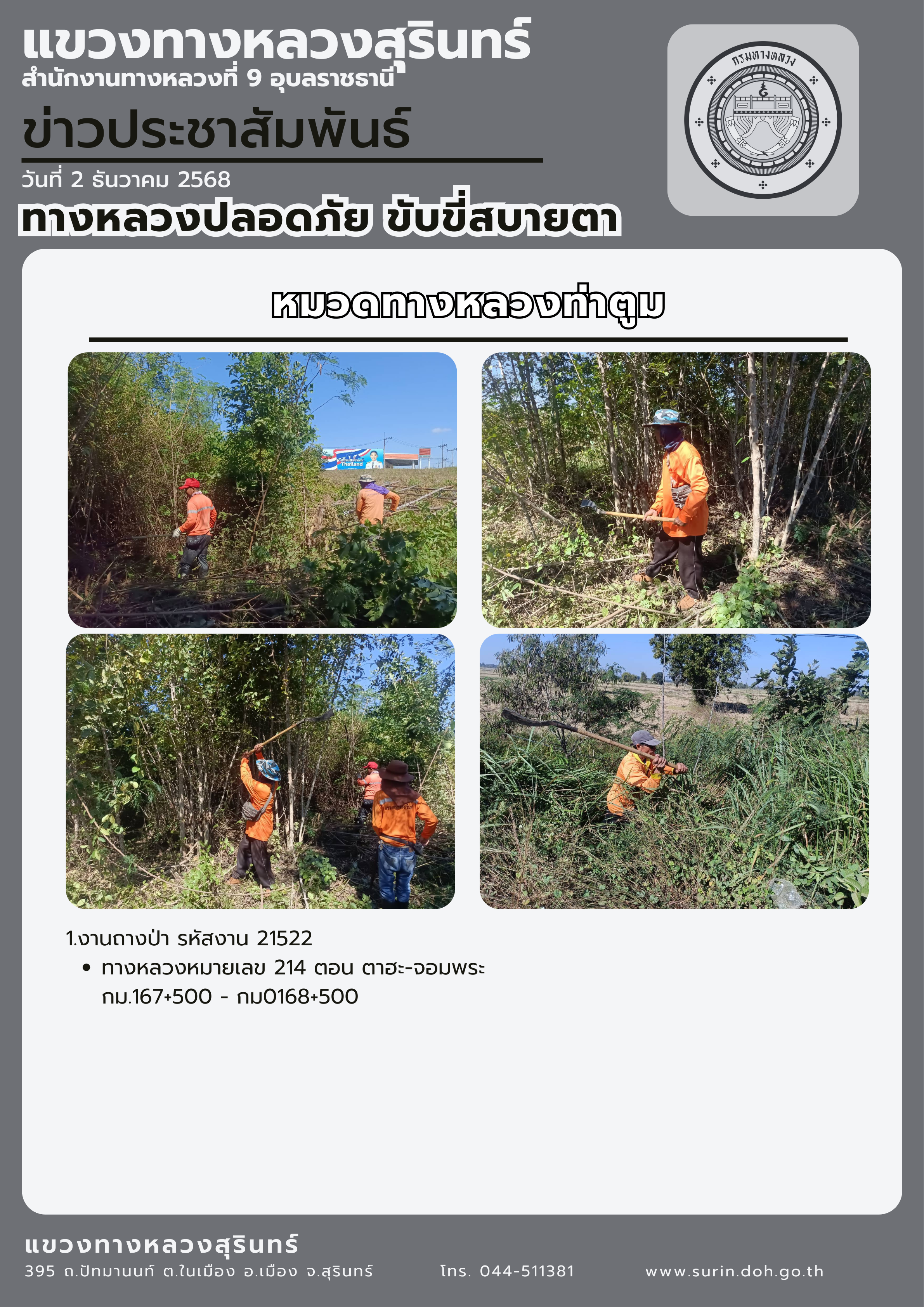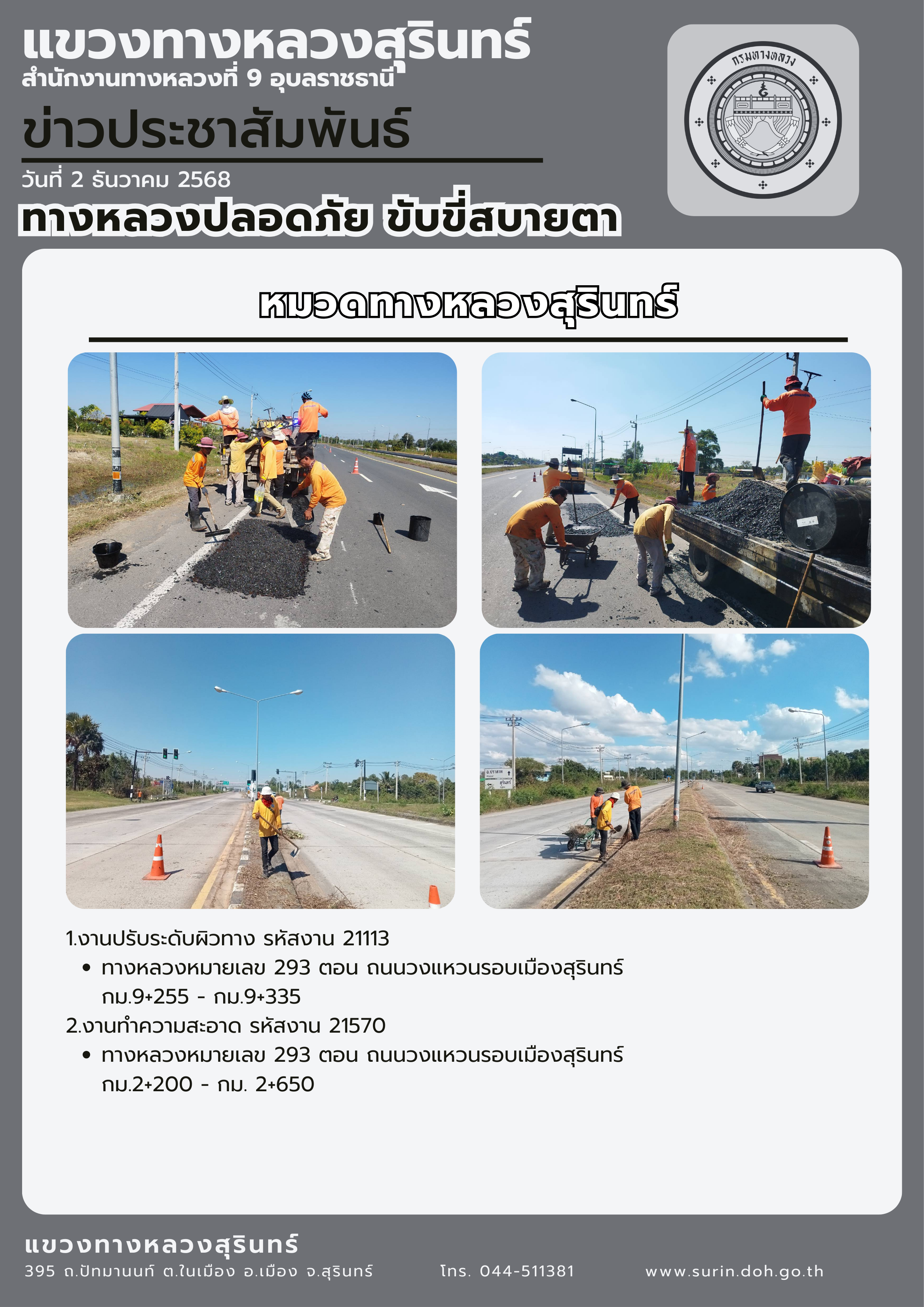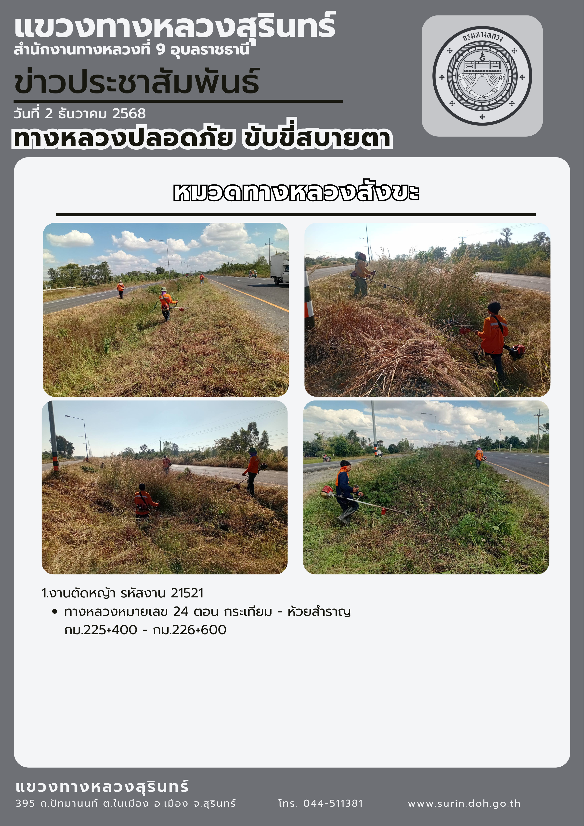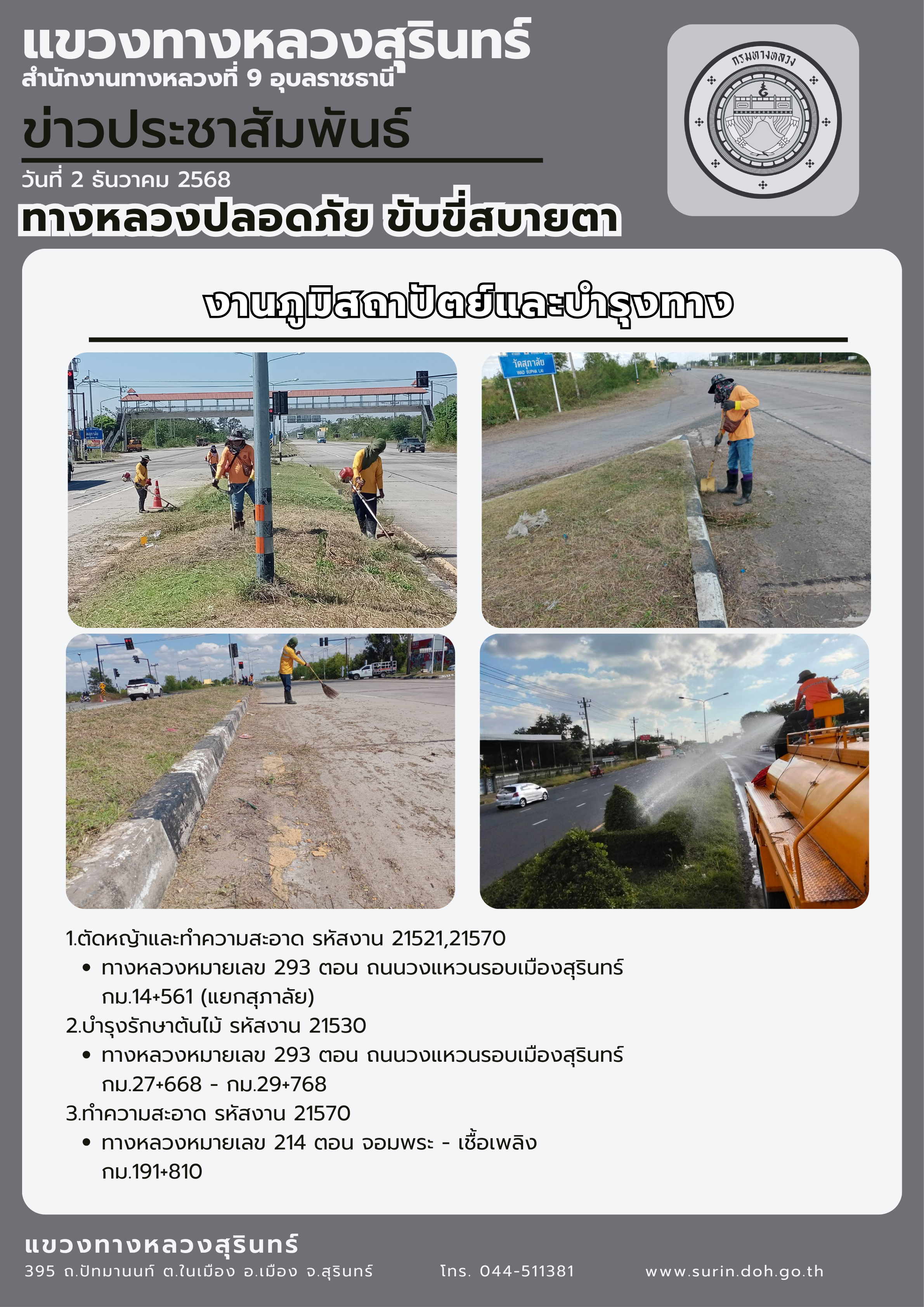 ทางหลวงปลอดภัย ขับขี่สบายตา 2 ธันวาคม 2568