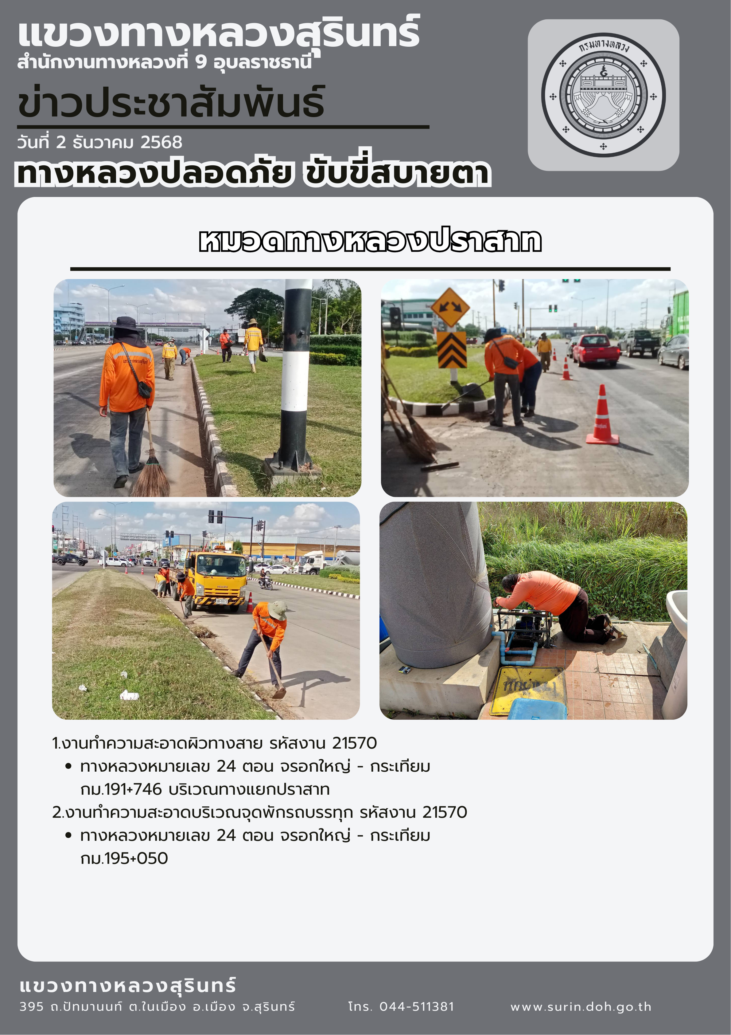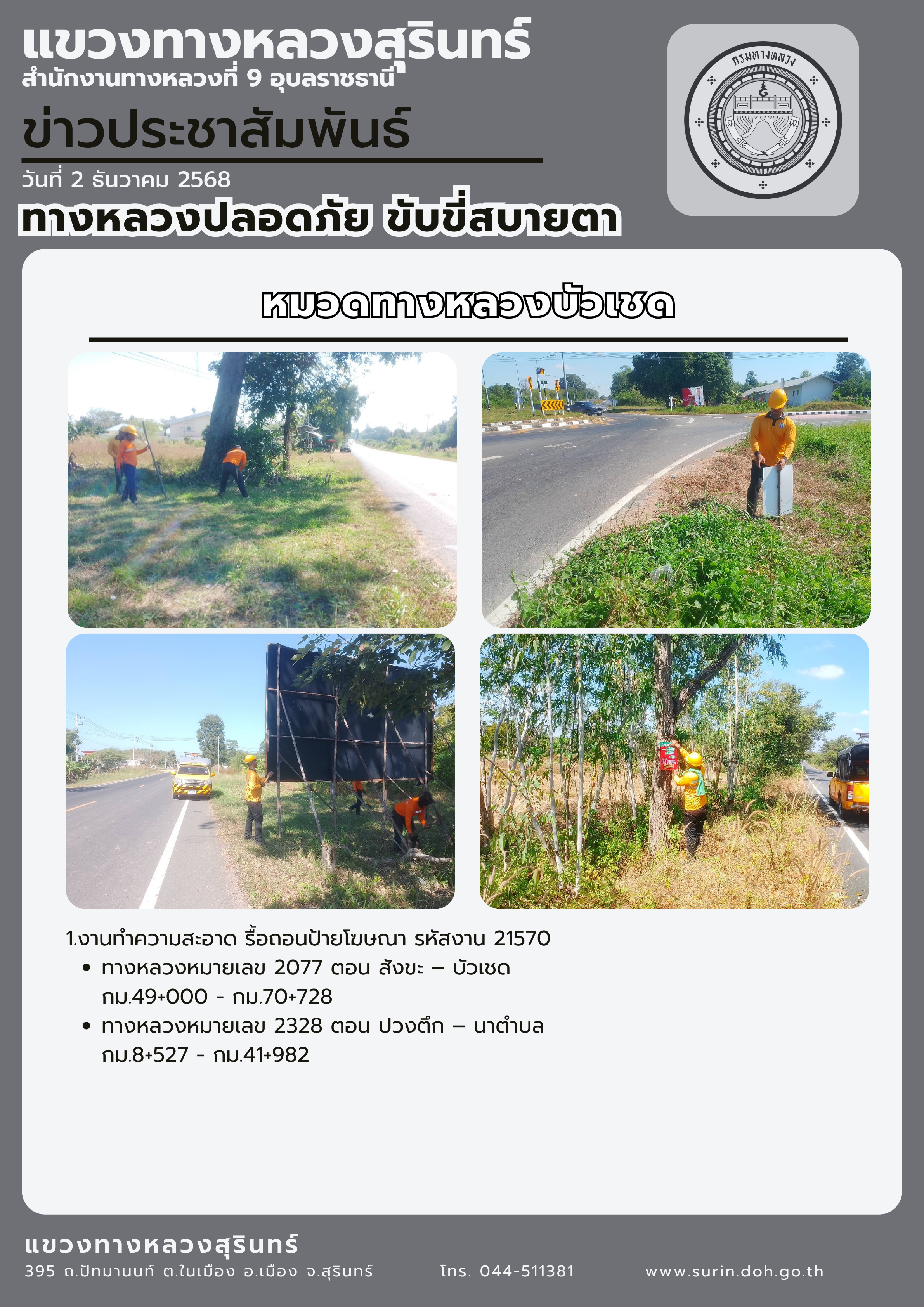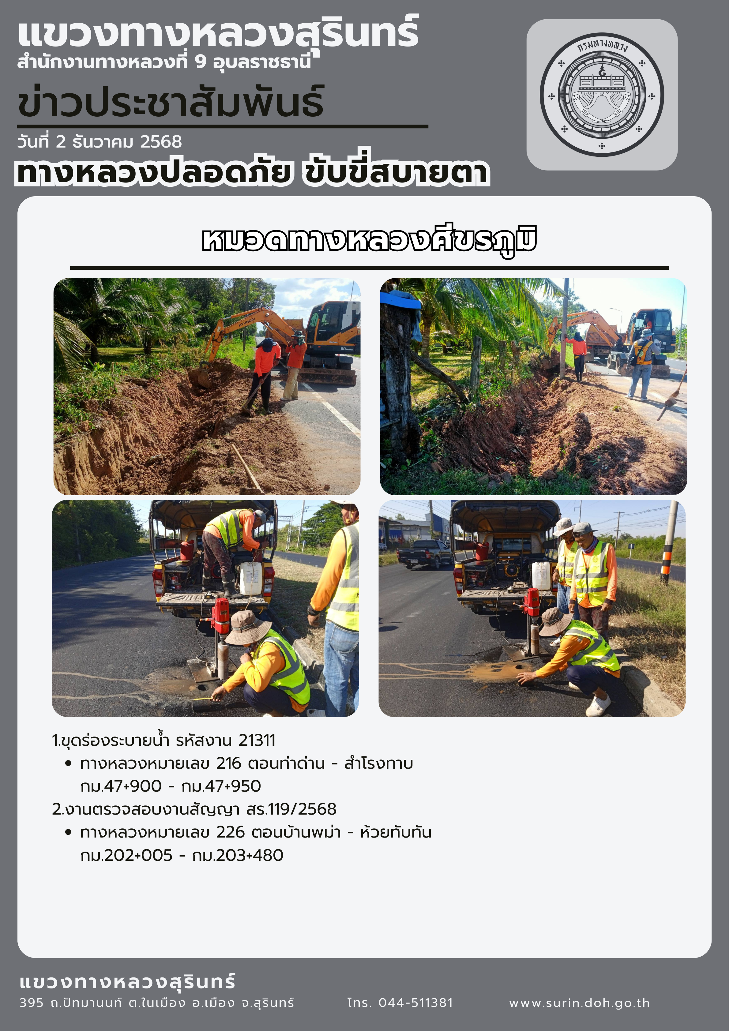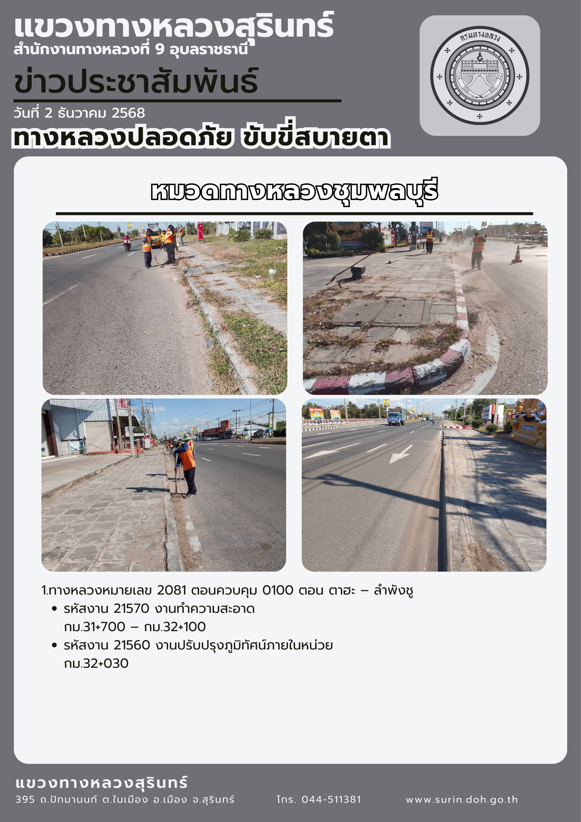 ข้อมูลข่าว : ทางหลวงปลอดภัย ขับขี่สบายตา 2 ธันวาคม 2568