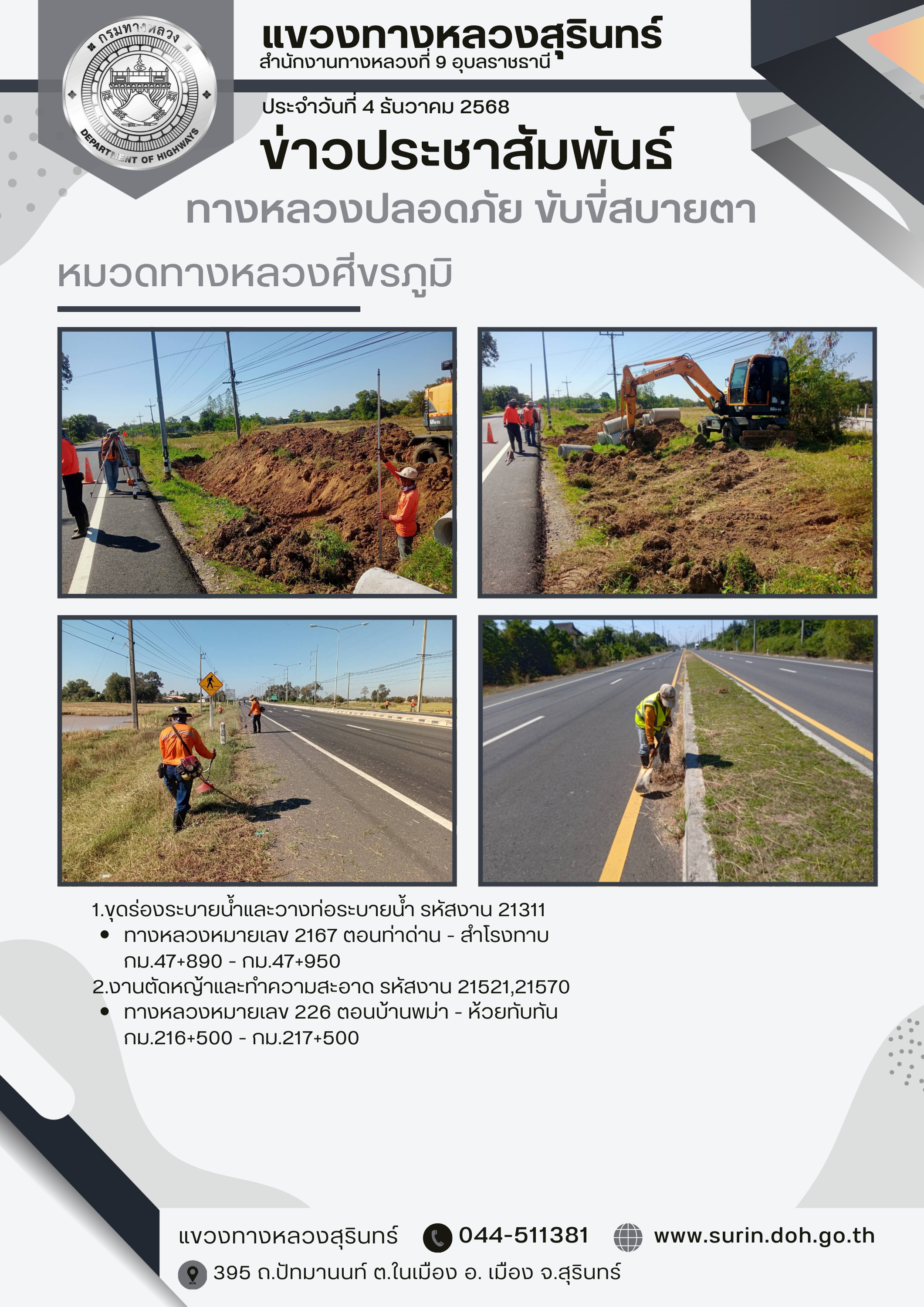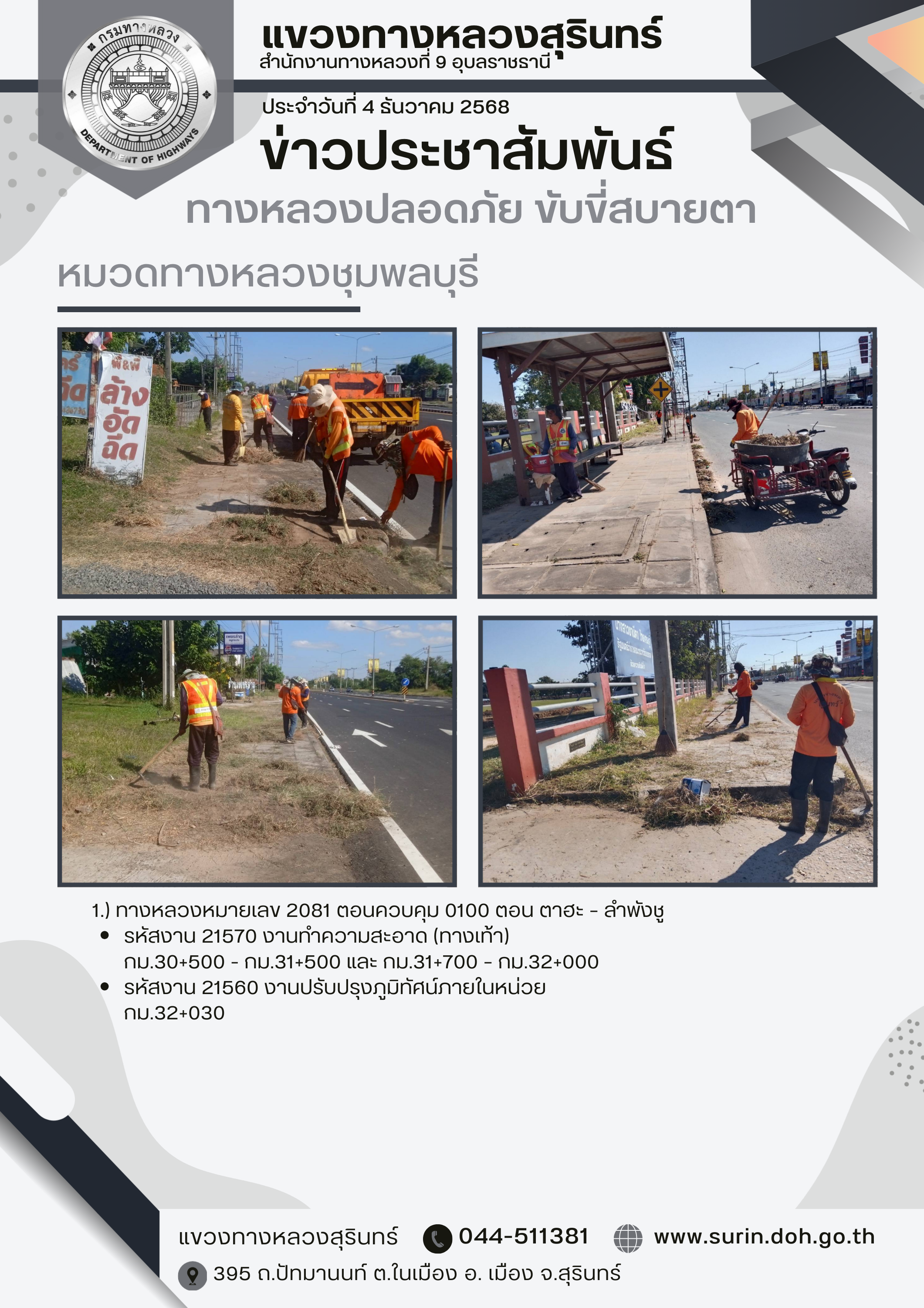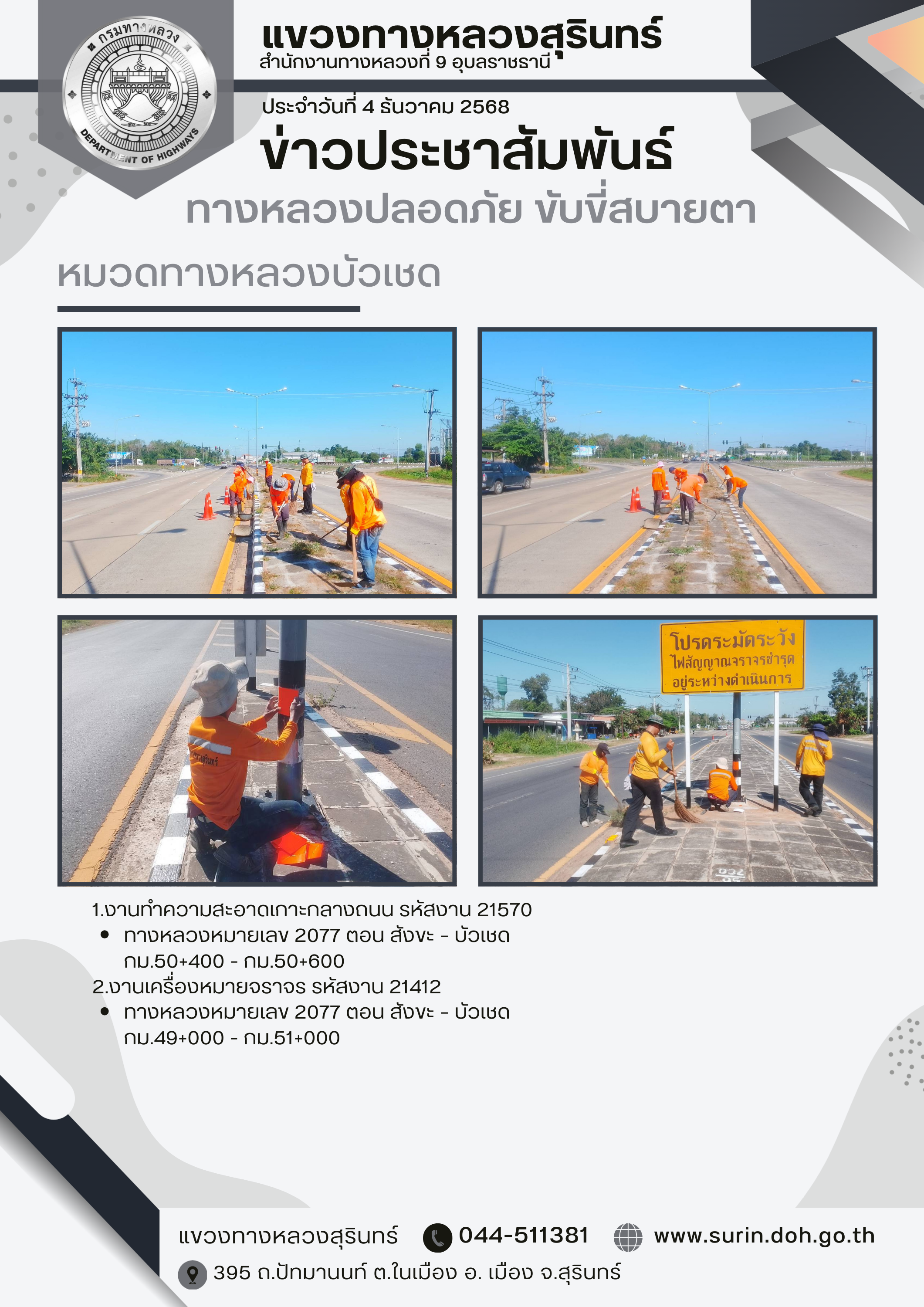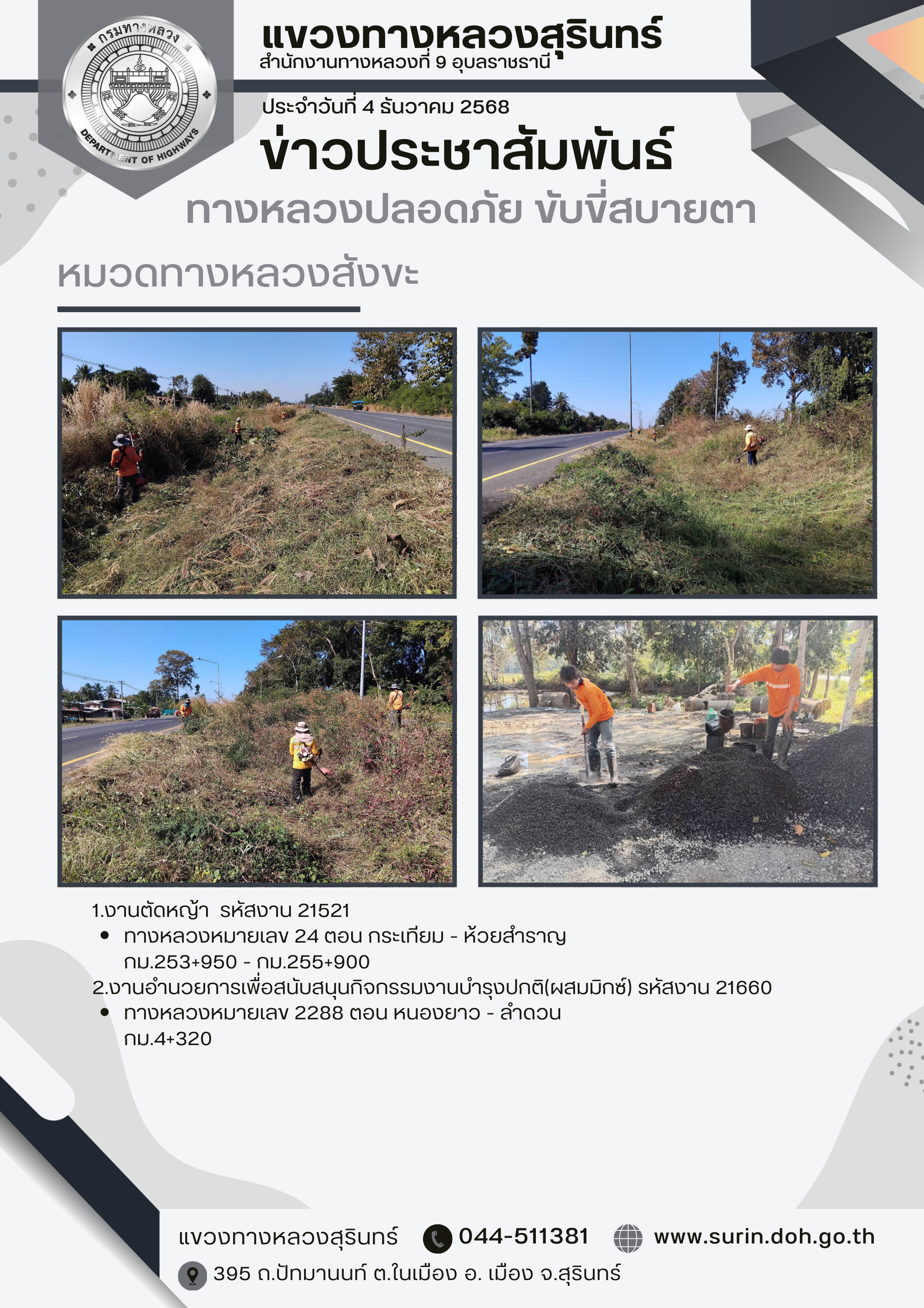 ข้อมูลข่าว : ทางหลวงปลอดภัย ขับขี่สบายตา 4 ธันวาคม 2568