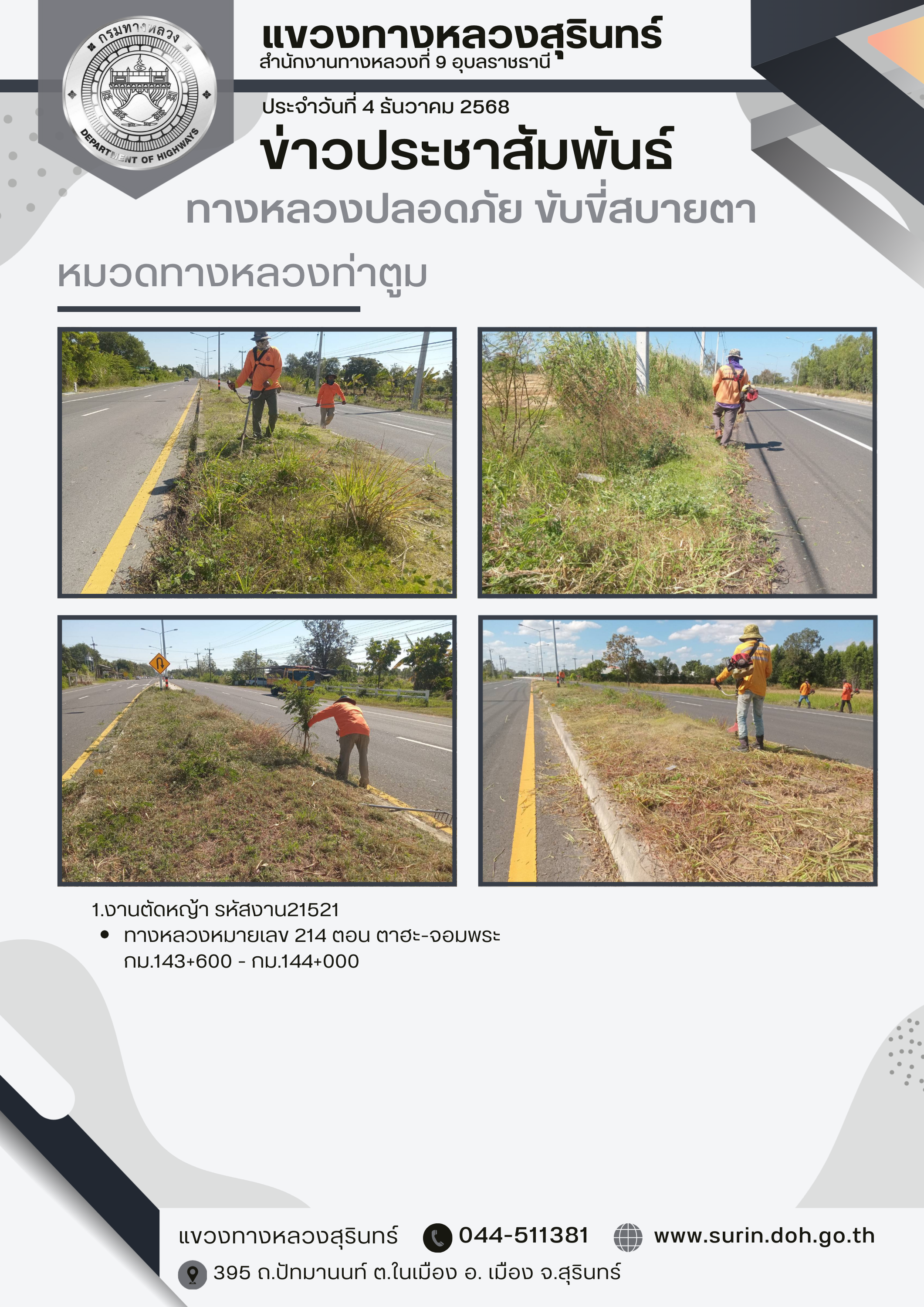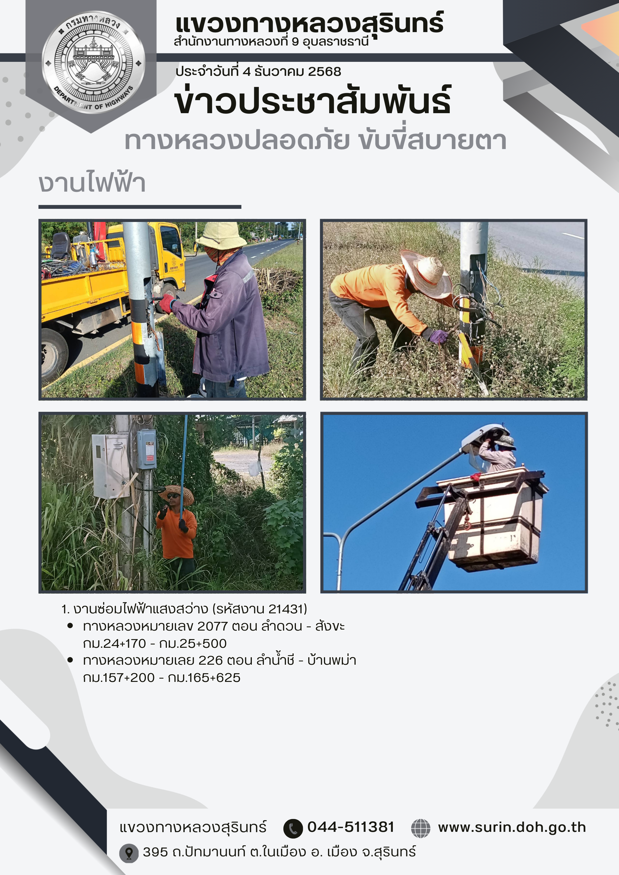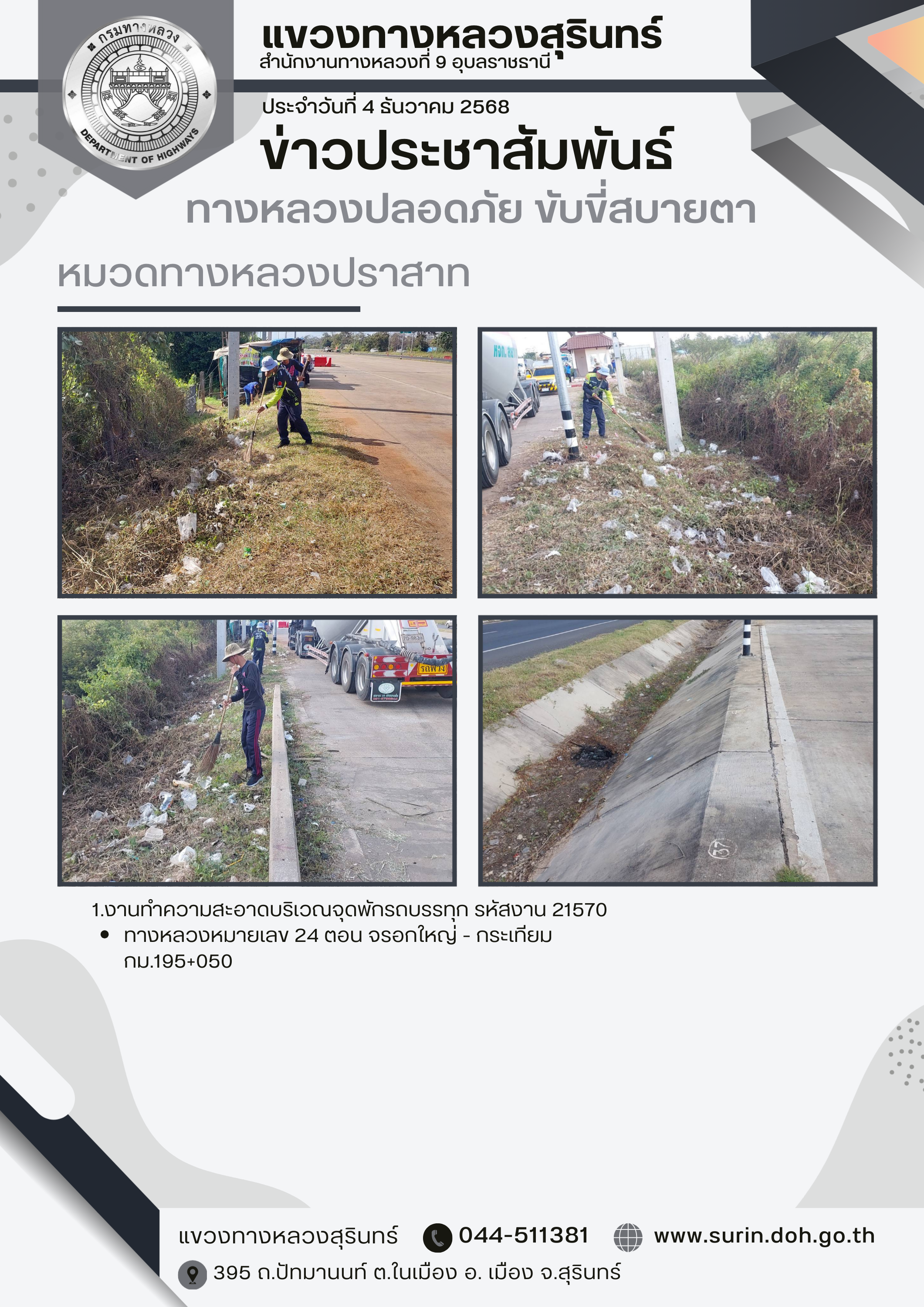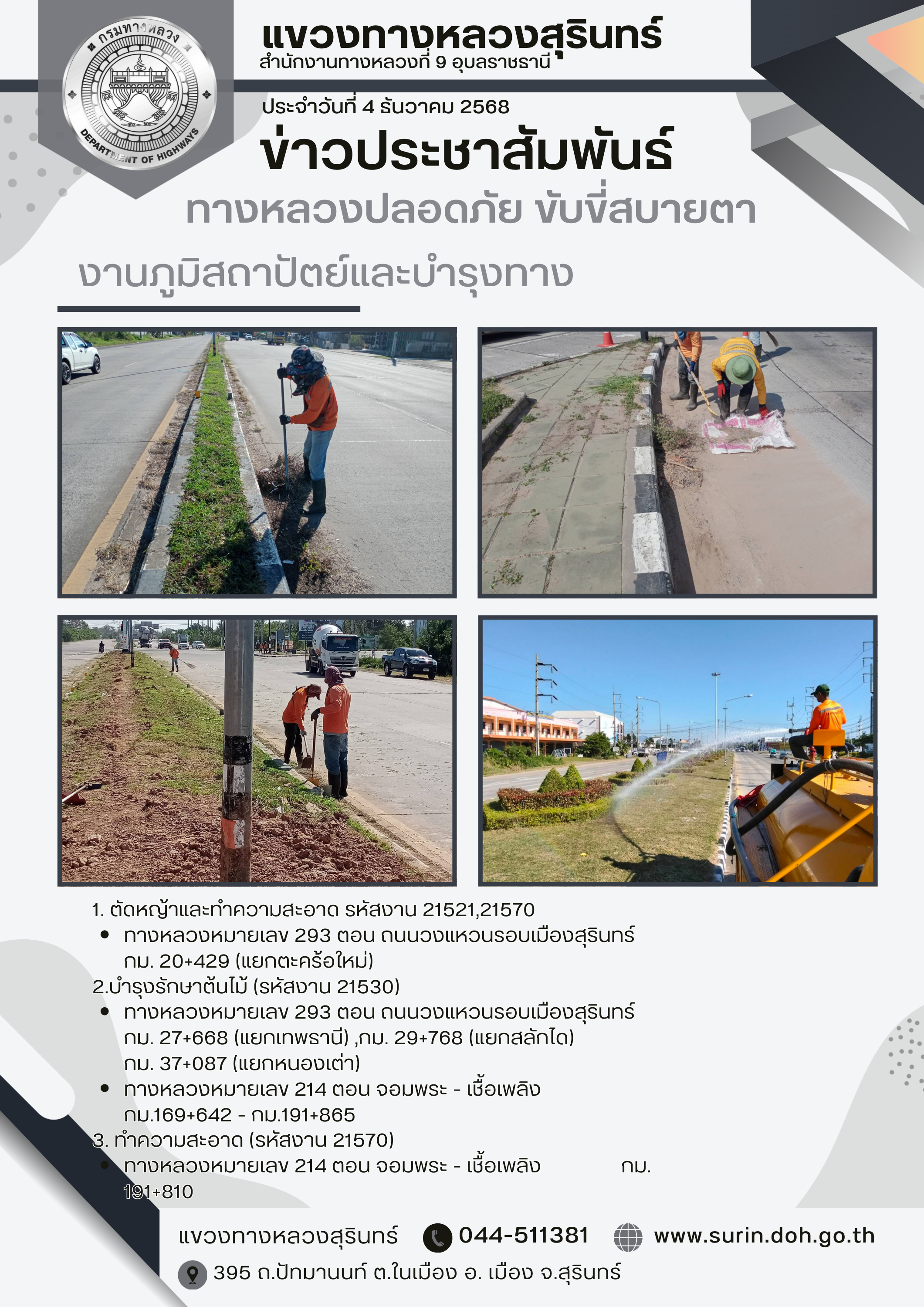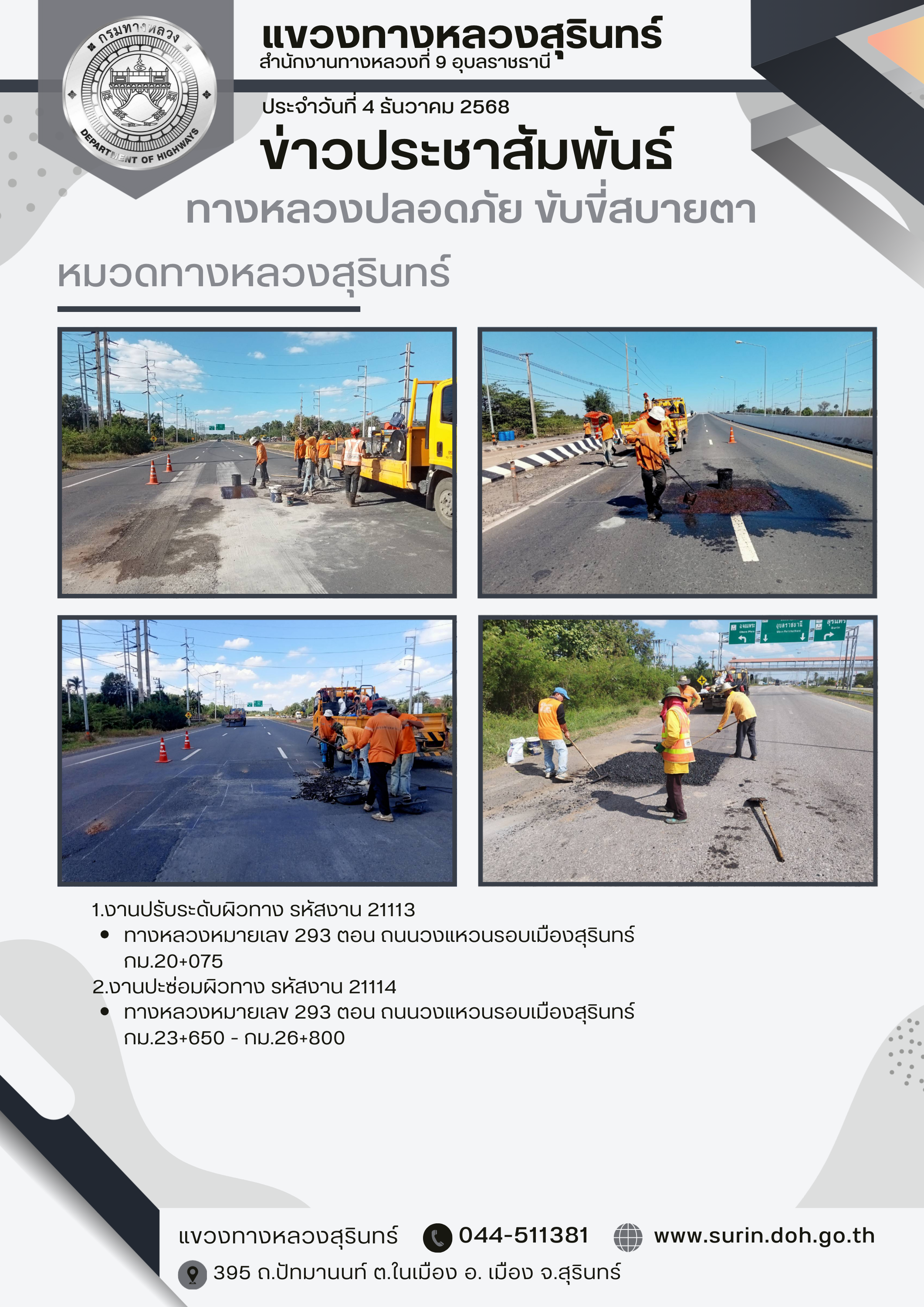 ข้อมูลข่าว : ทางหลวงปลอดภัย ขับขี่สบายตา 4 ธันวาคม 2568
