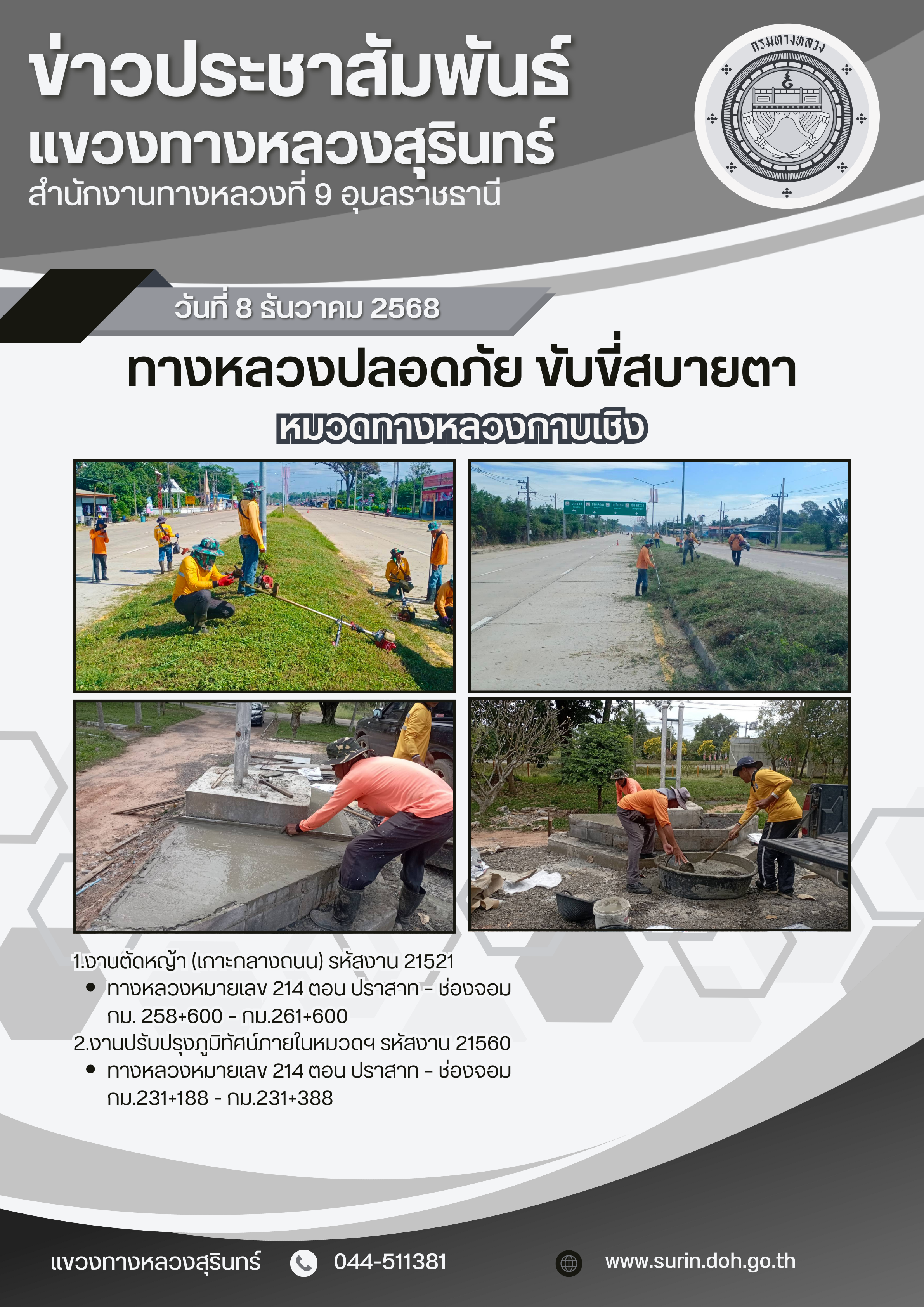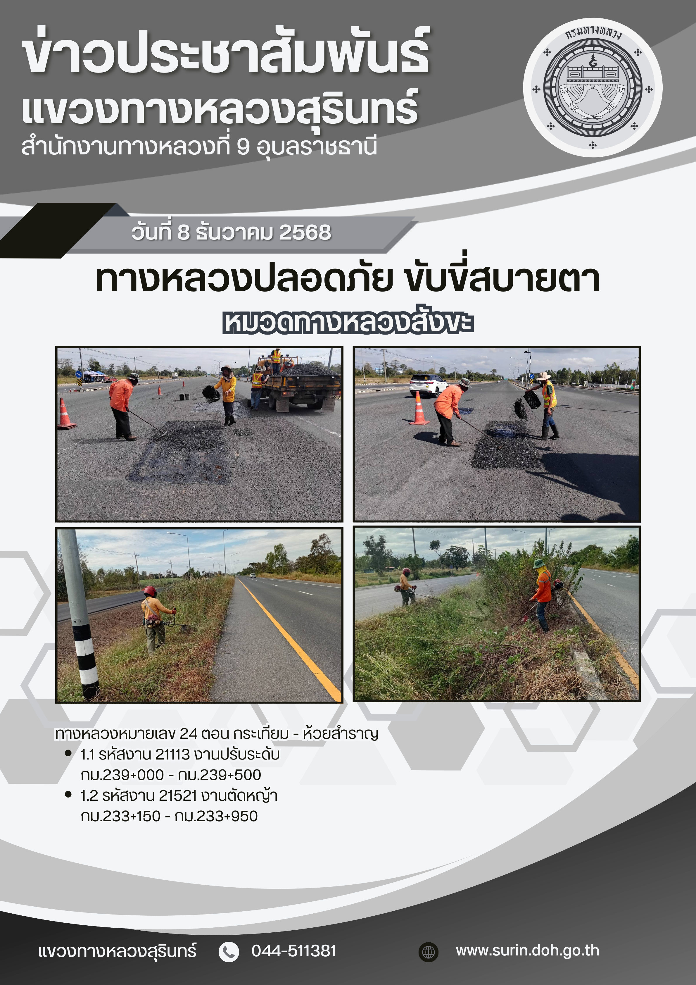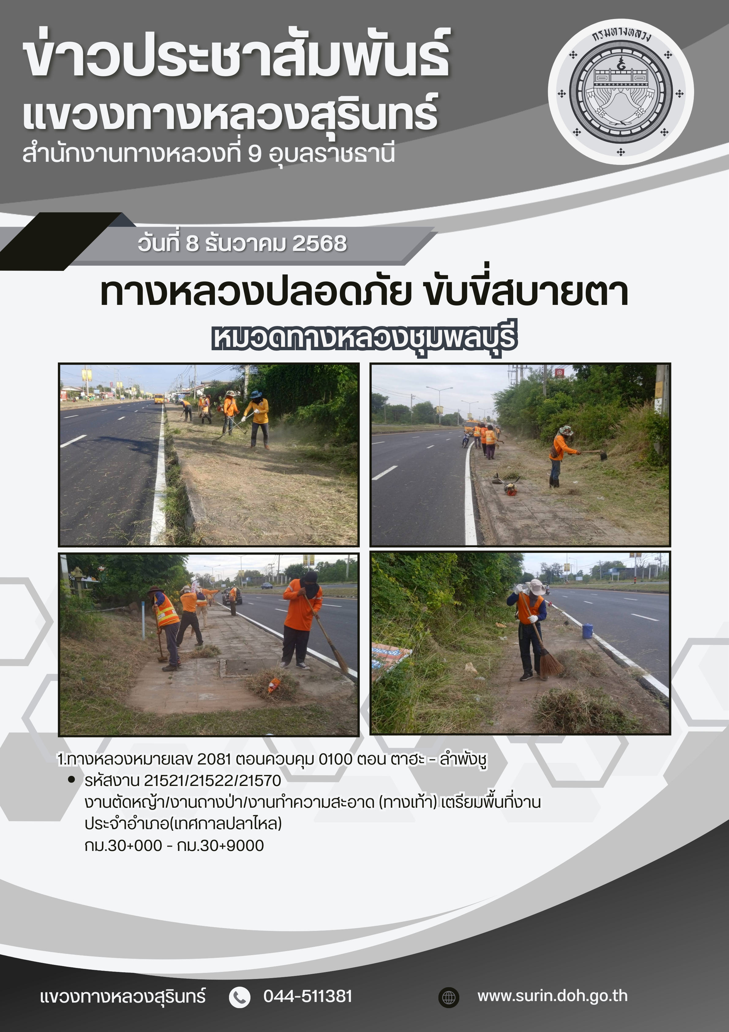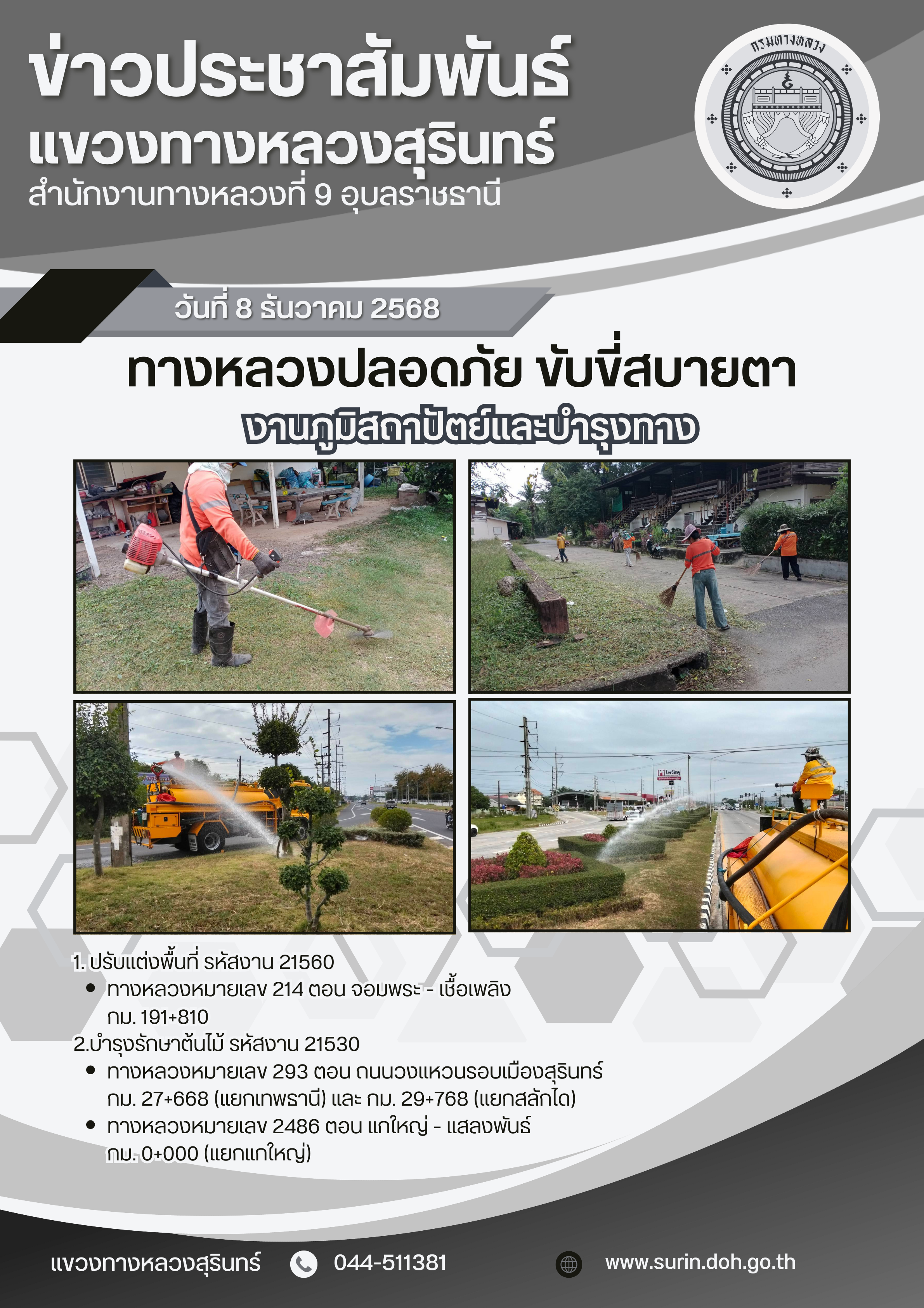 ข้อมูลข่าว : ทางหลวงปลอดภัย ขับขี่สบายตา 8 ธันวาคม 2568