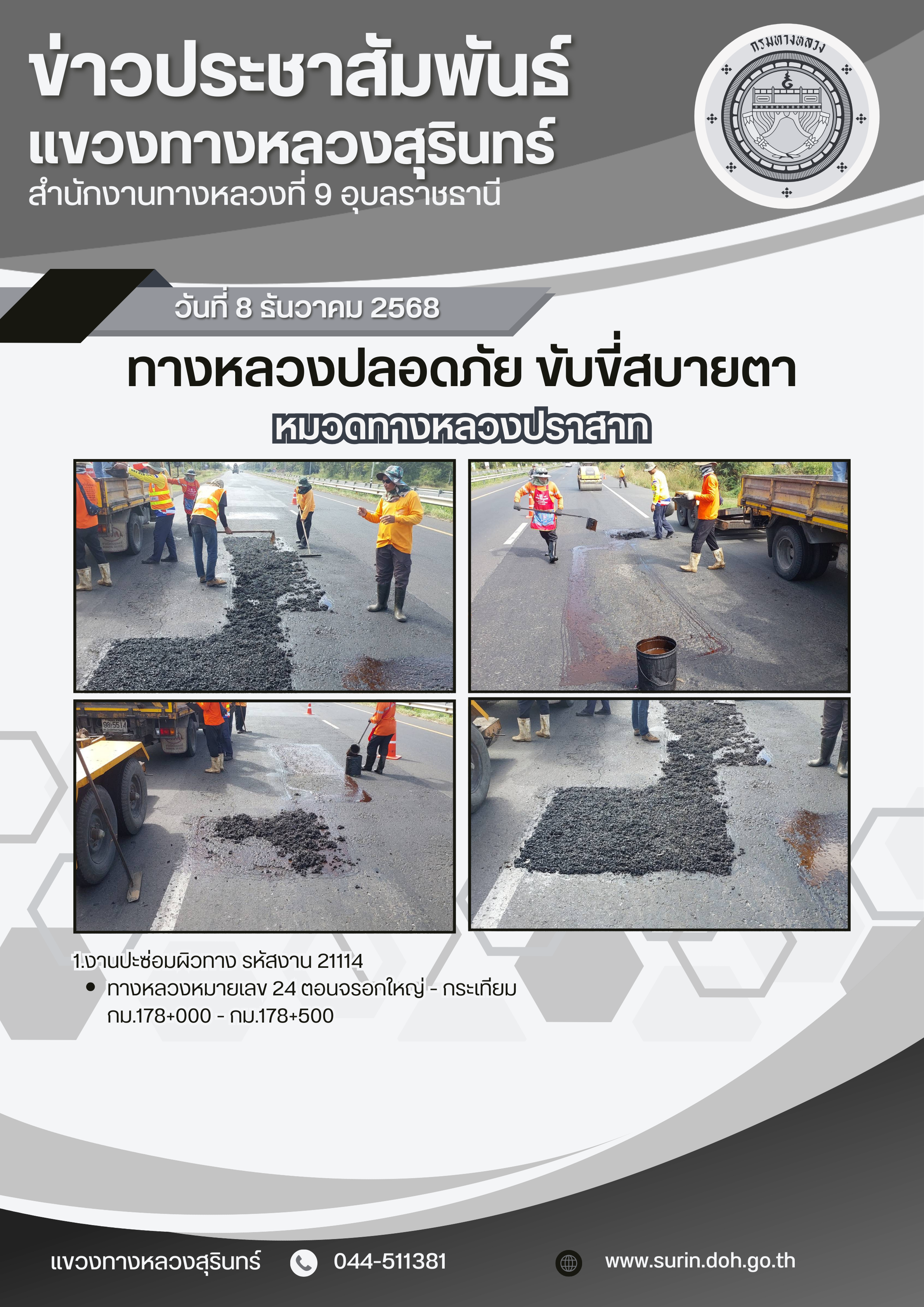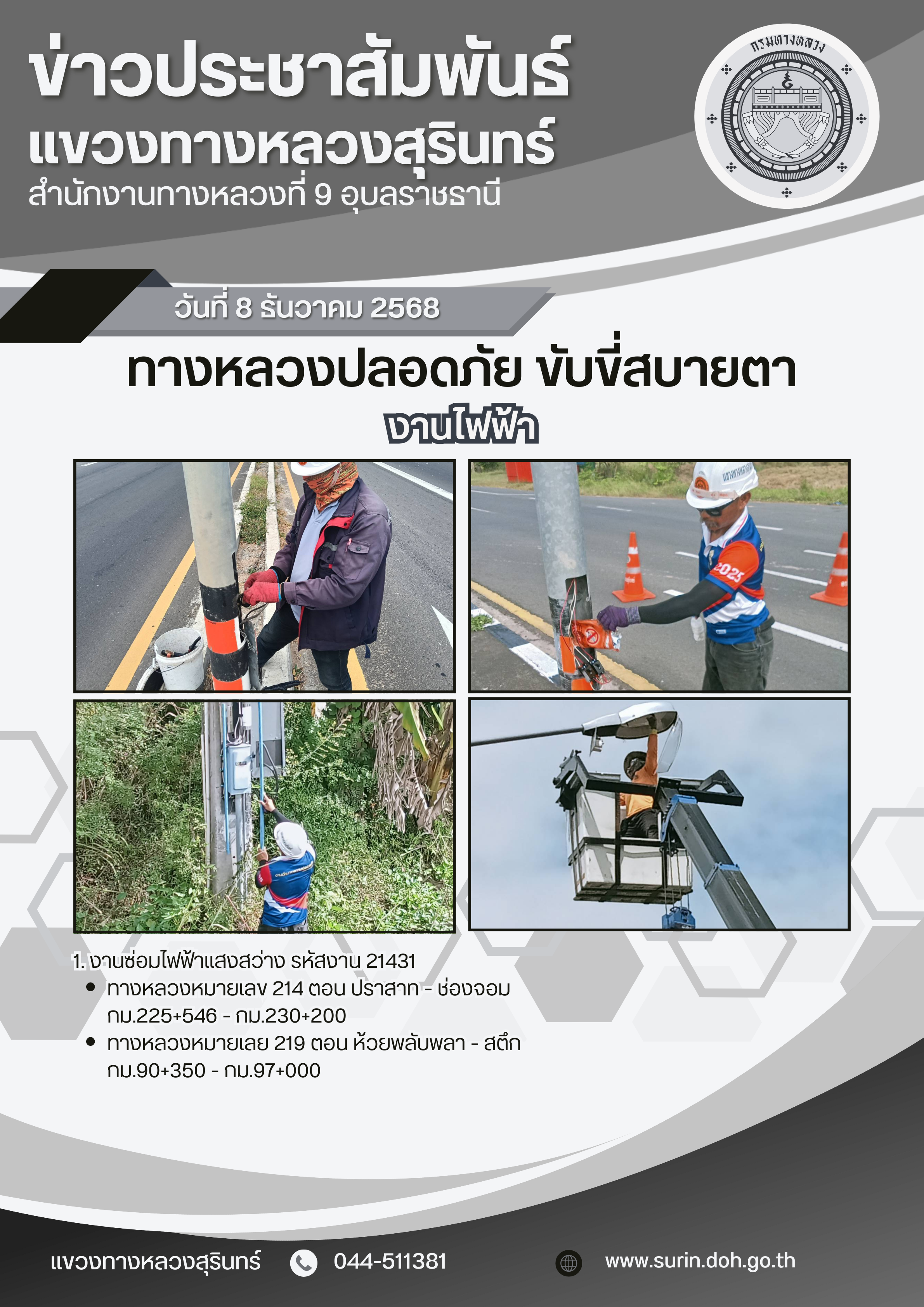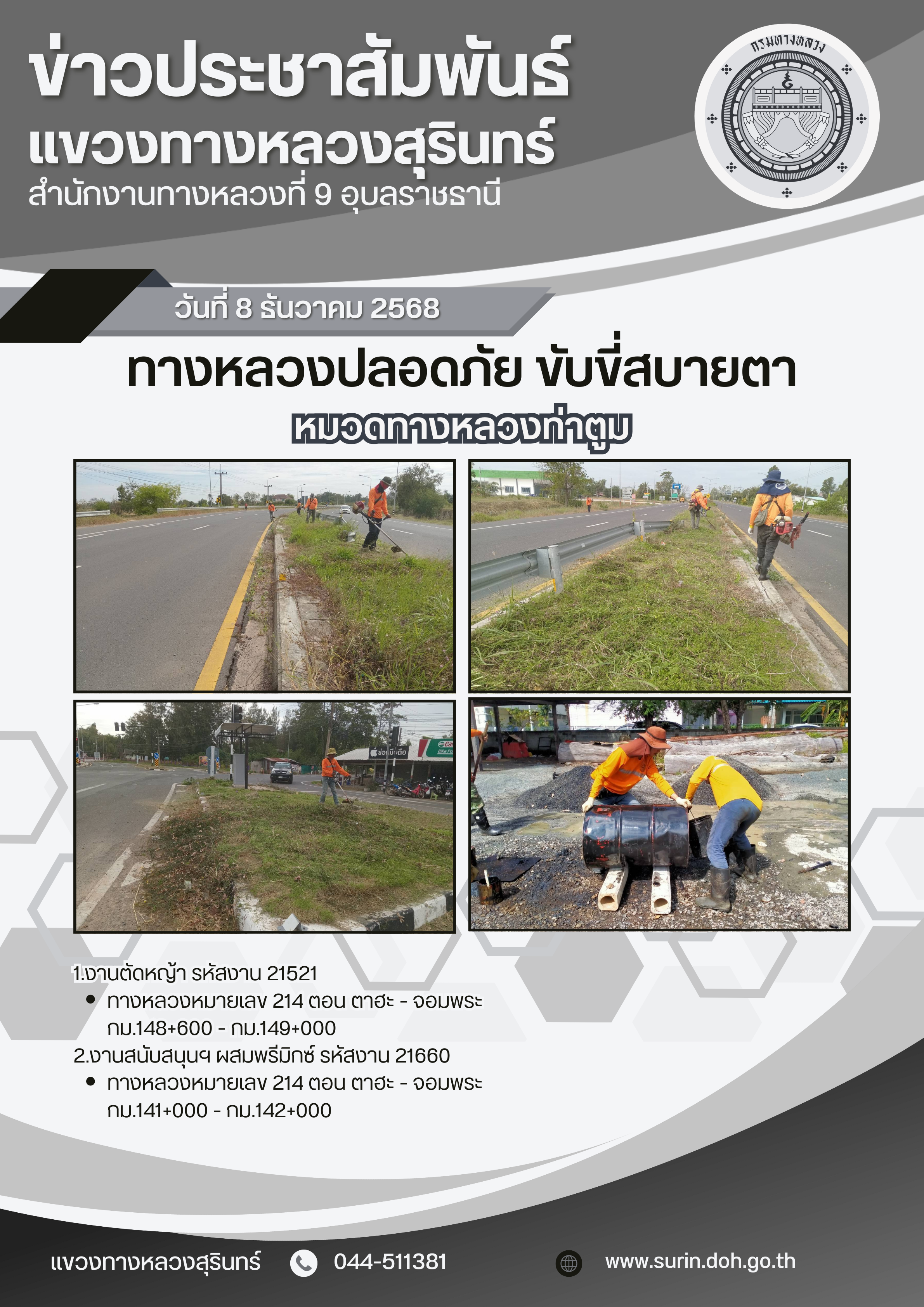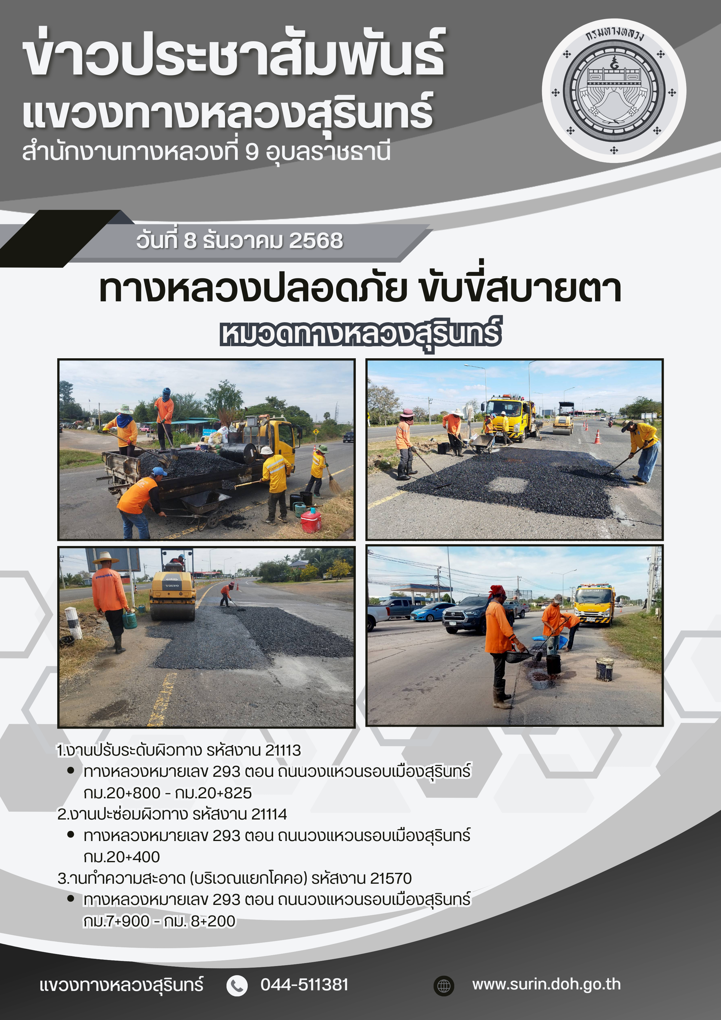 ข้อมูลข่าว : ทางหลวงปลอดภัย ขับขี่สบายตา 8 ธันวาคม 2568