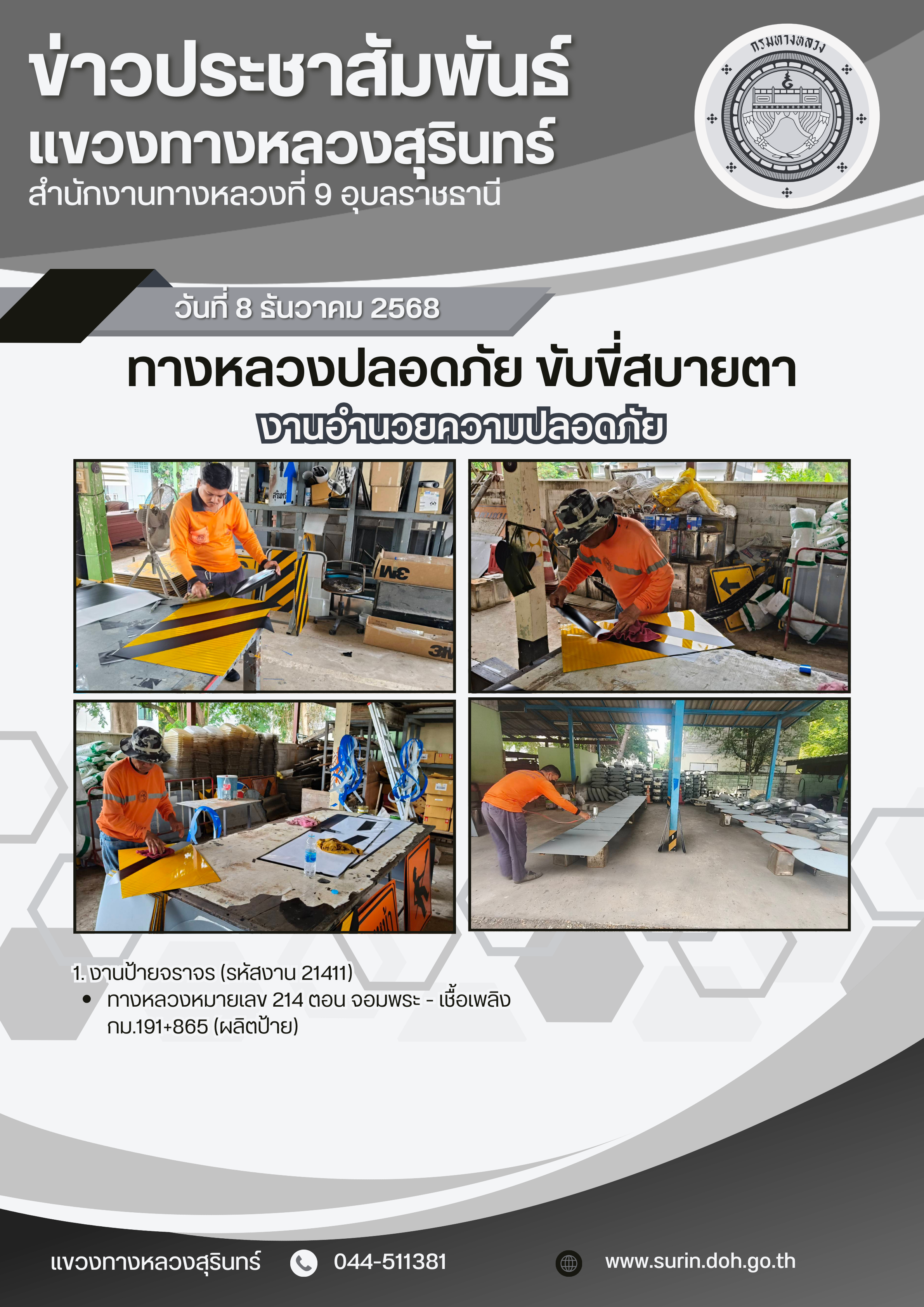 ทางหลวงปลอดภัย ขับขี่สบายตา 8 ธันวาคม 2568