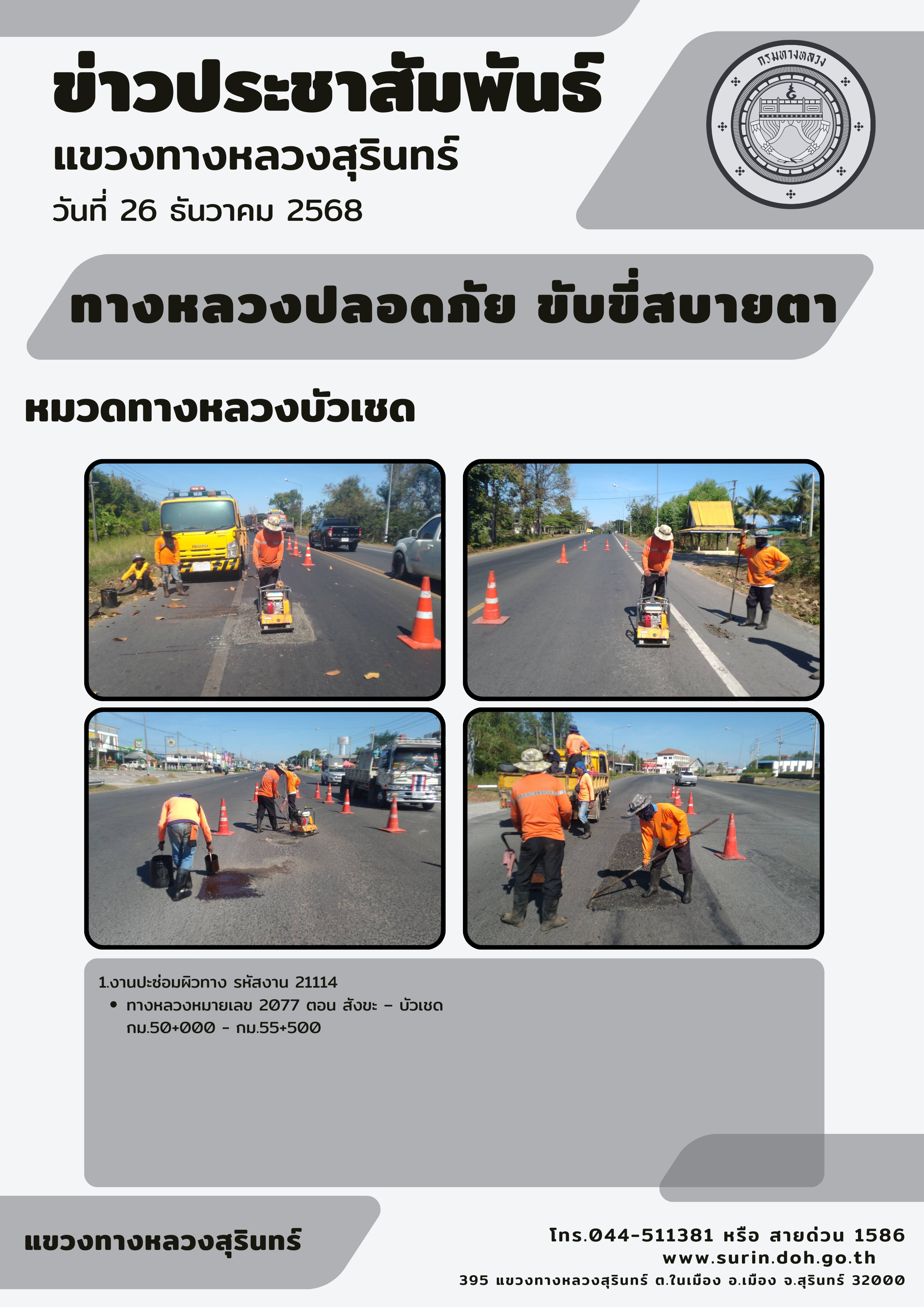 ข้อมูลข่าว : ทางหลวงปลอดภัย ขับขี่สบายตา 26 ธันวาคม 2568