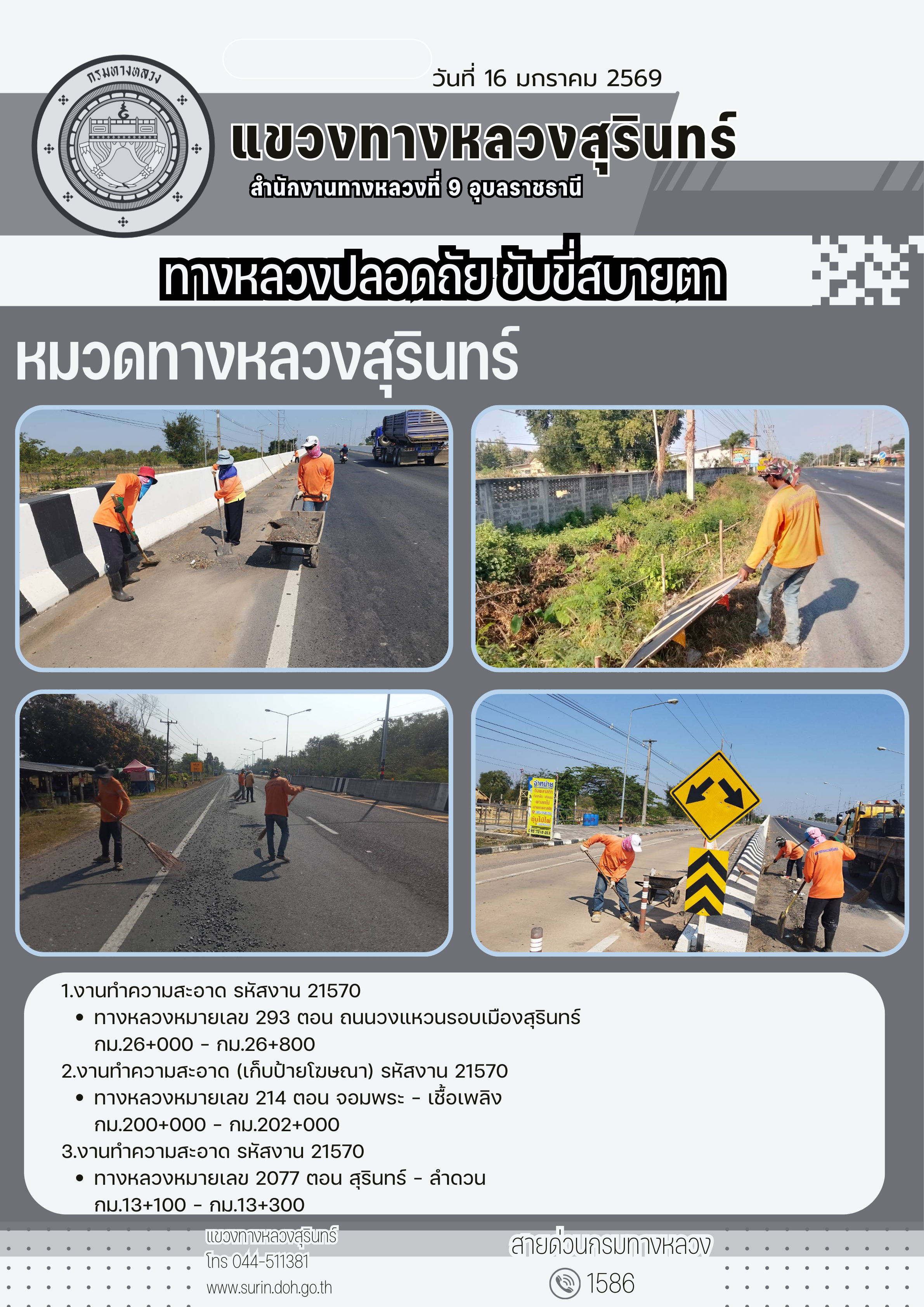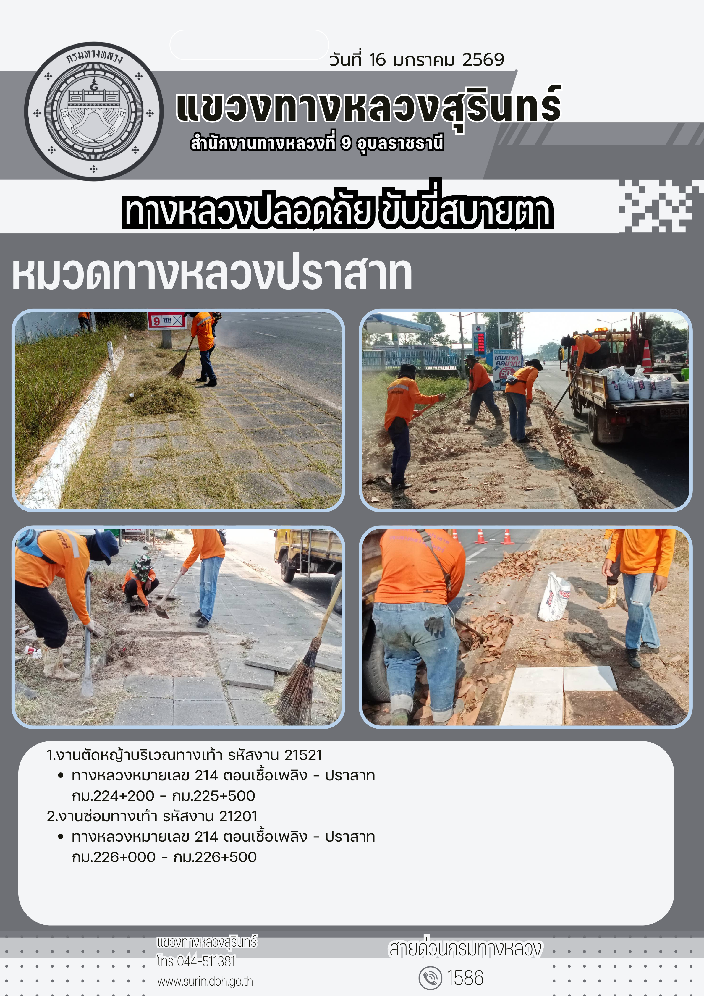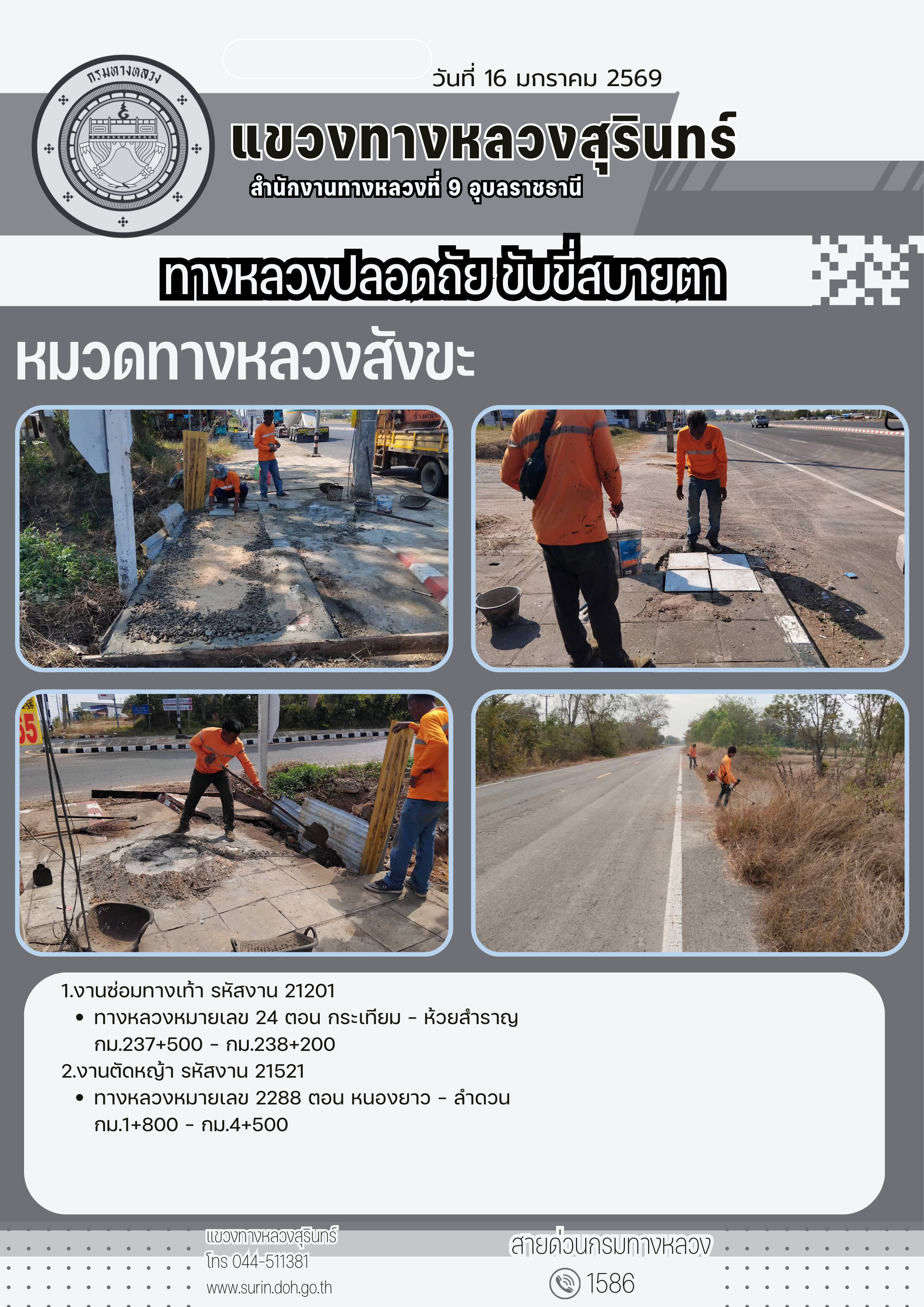 ข้อมูลข่าว : ทางหลวงปลอดภัย ขับขี่สบายตา 16 มกราคม 2569