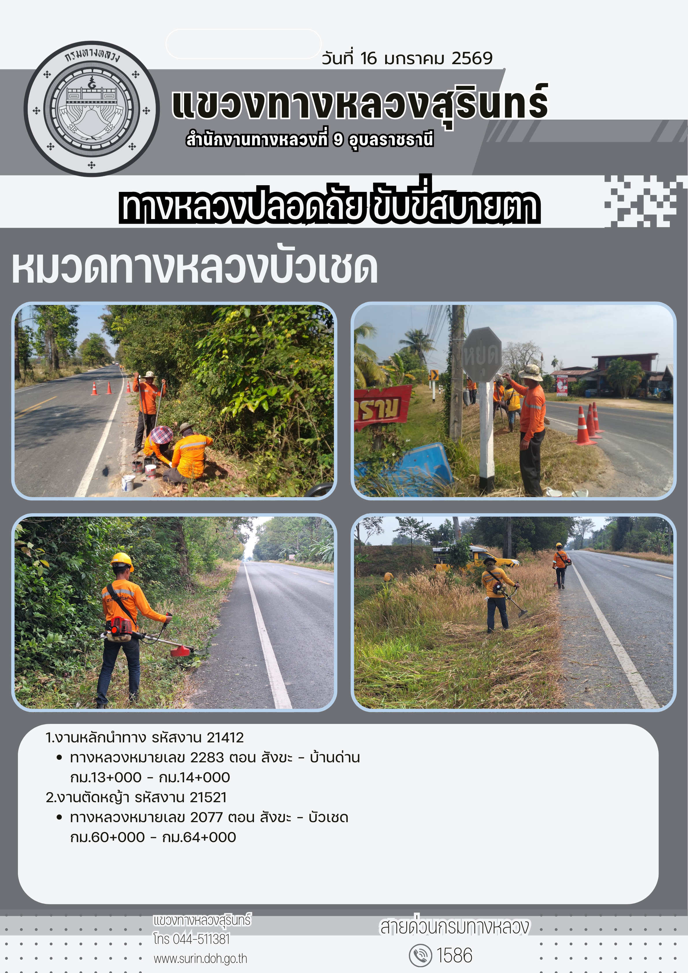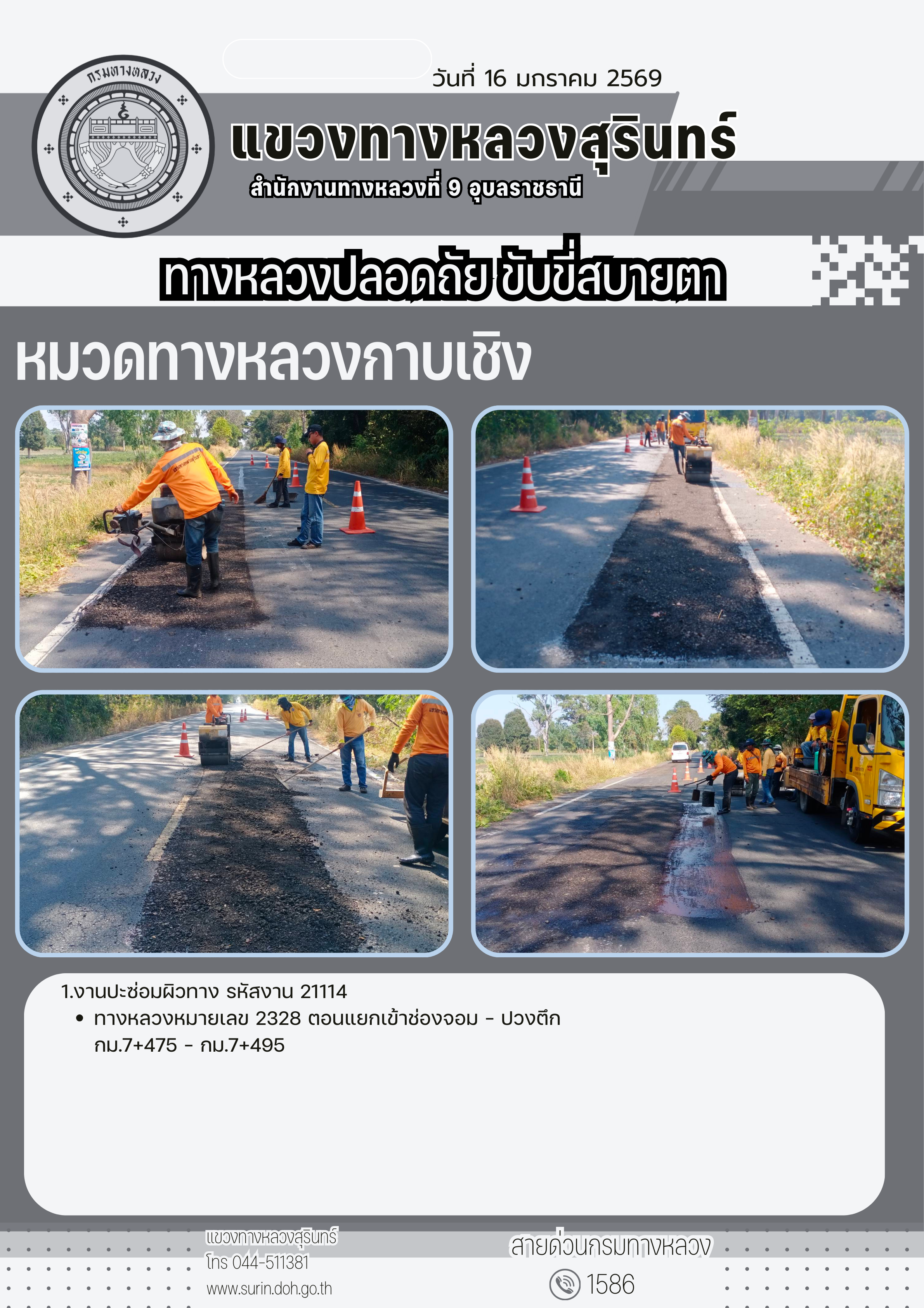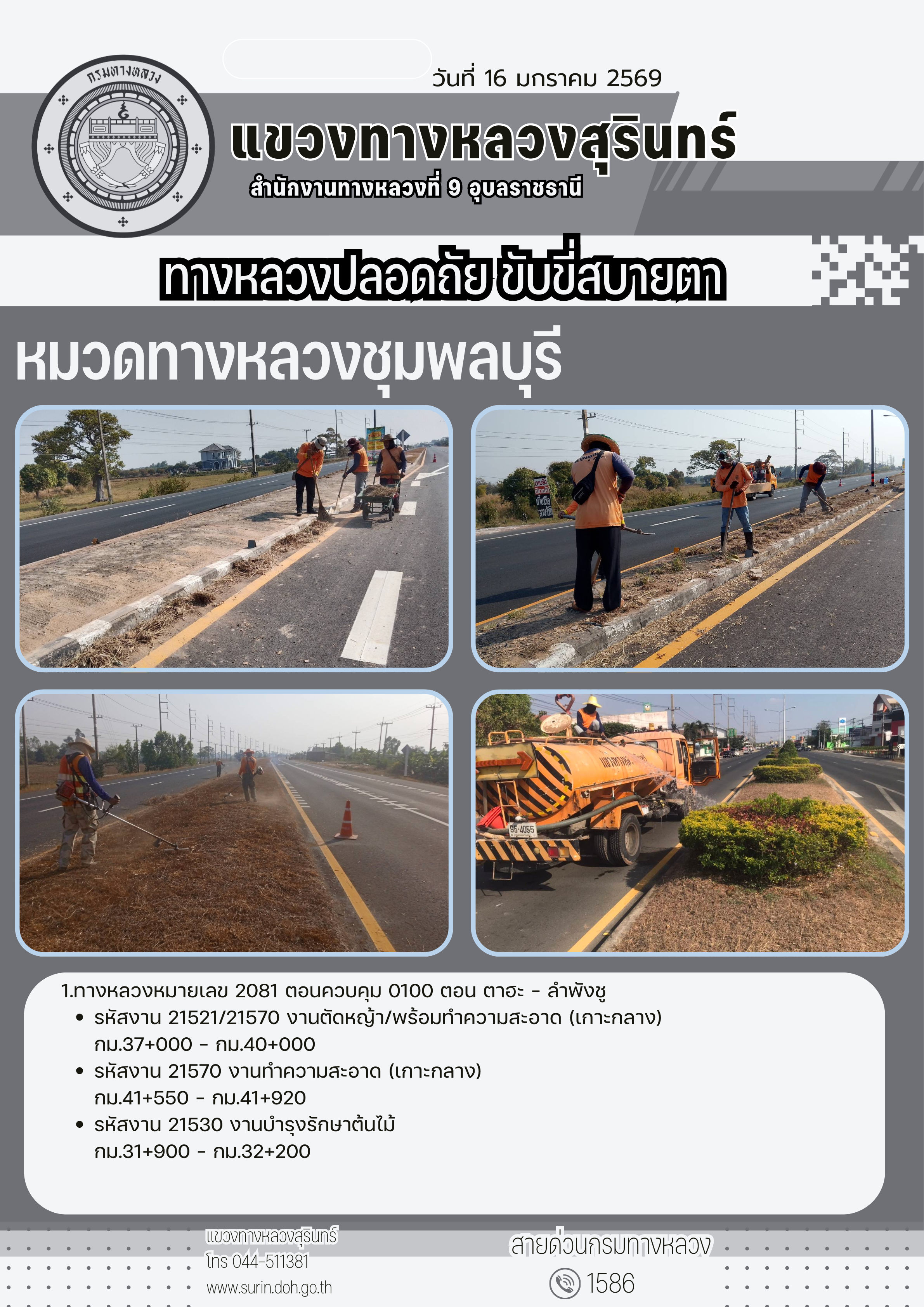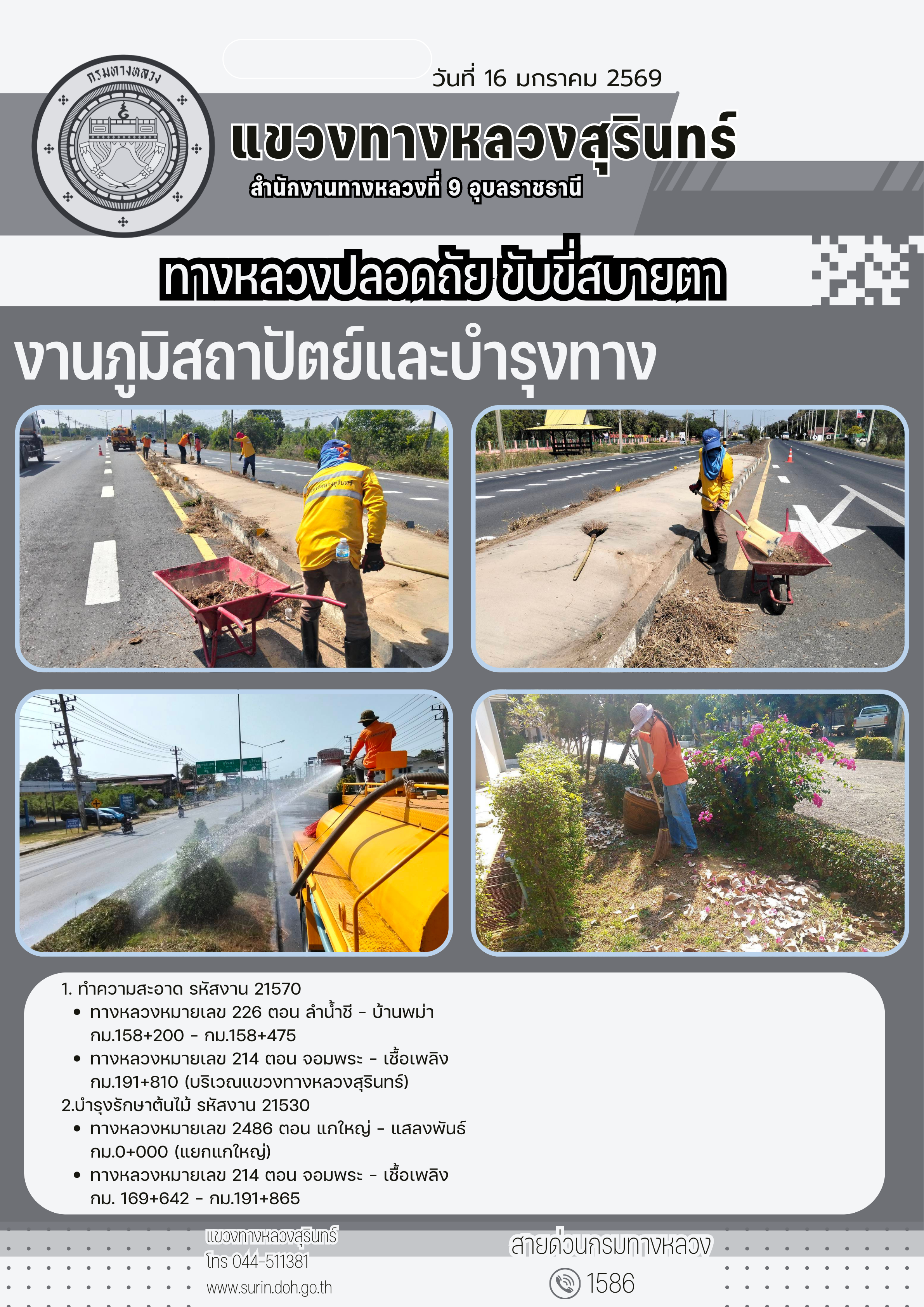ข้อมูลข่าว : ทางหลวงปลอดภัย ขับขี่สบายตา 16 มกราคม 2569