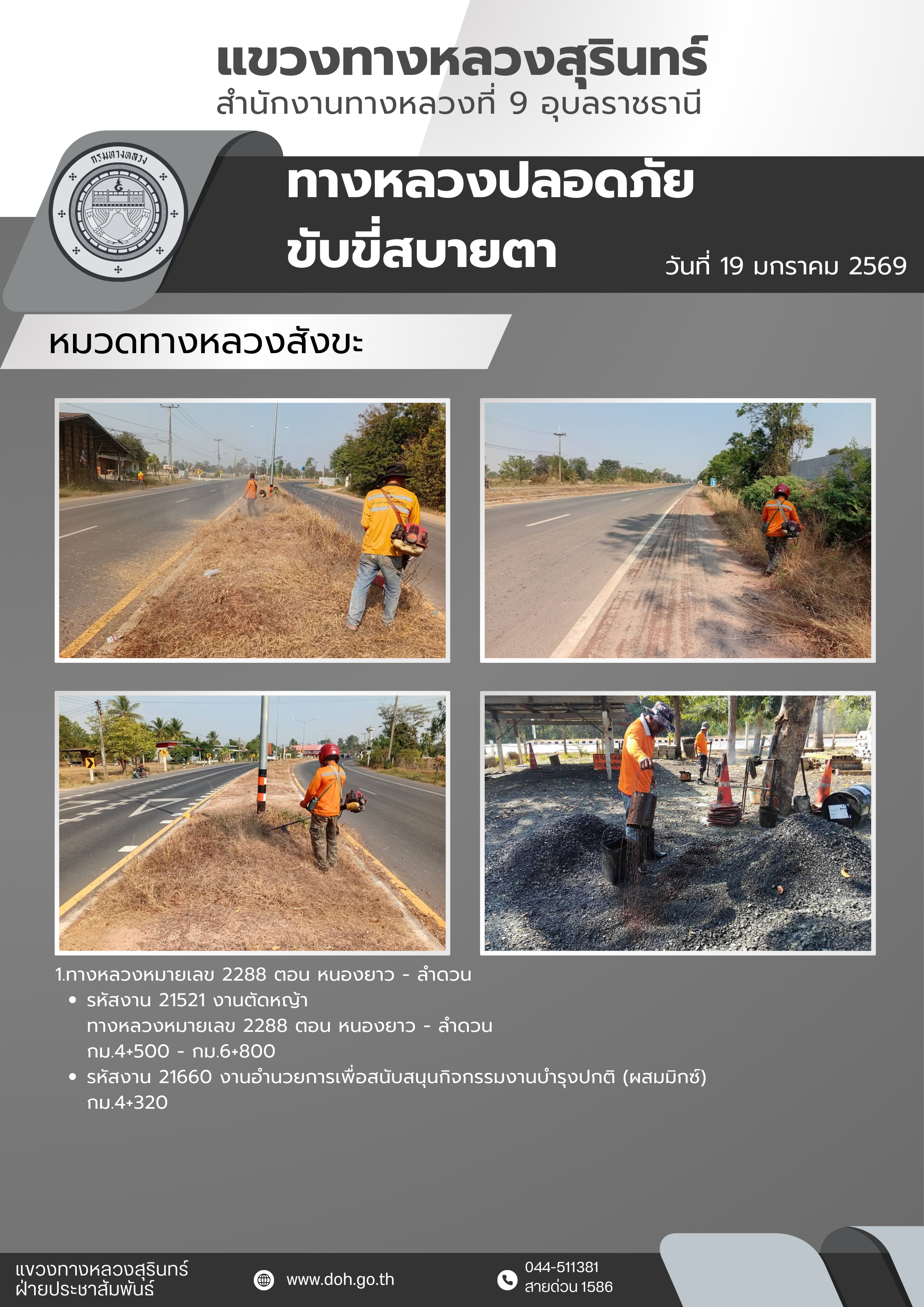ทางหลวงปลอดภัย ขับขี่สบายตา 19 มกราคม 2568