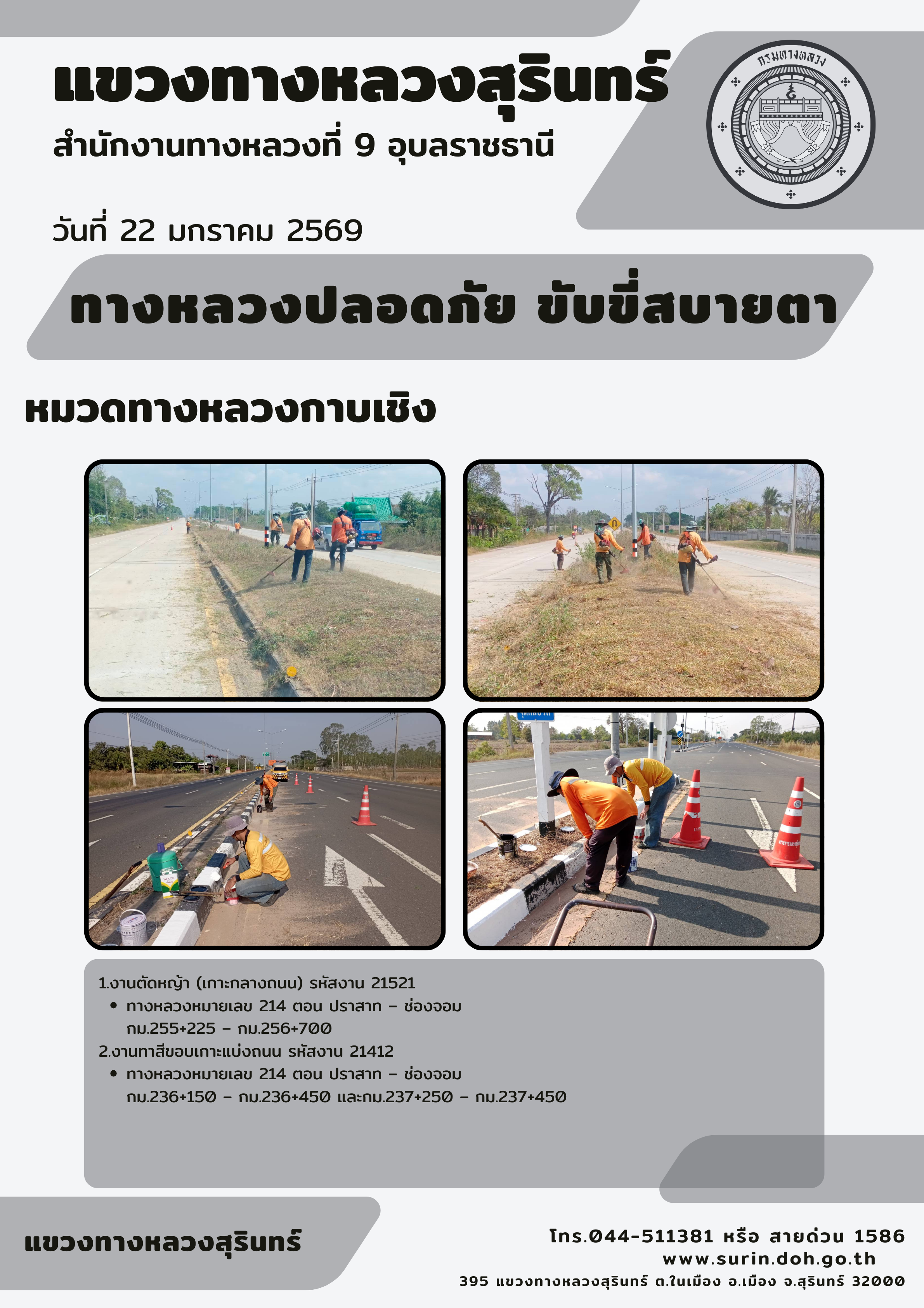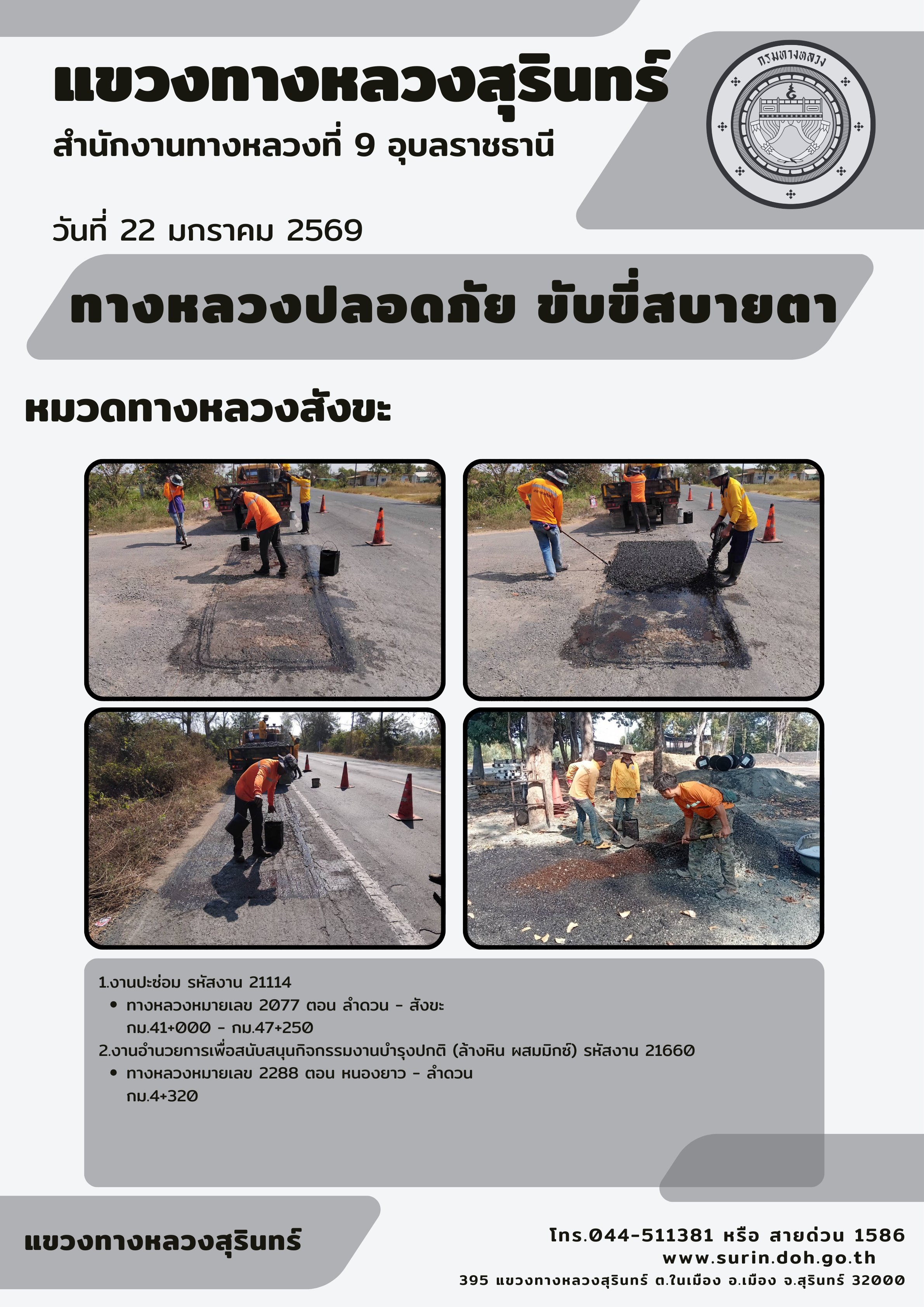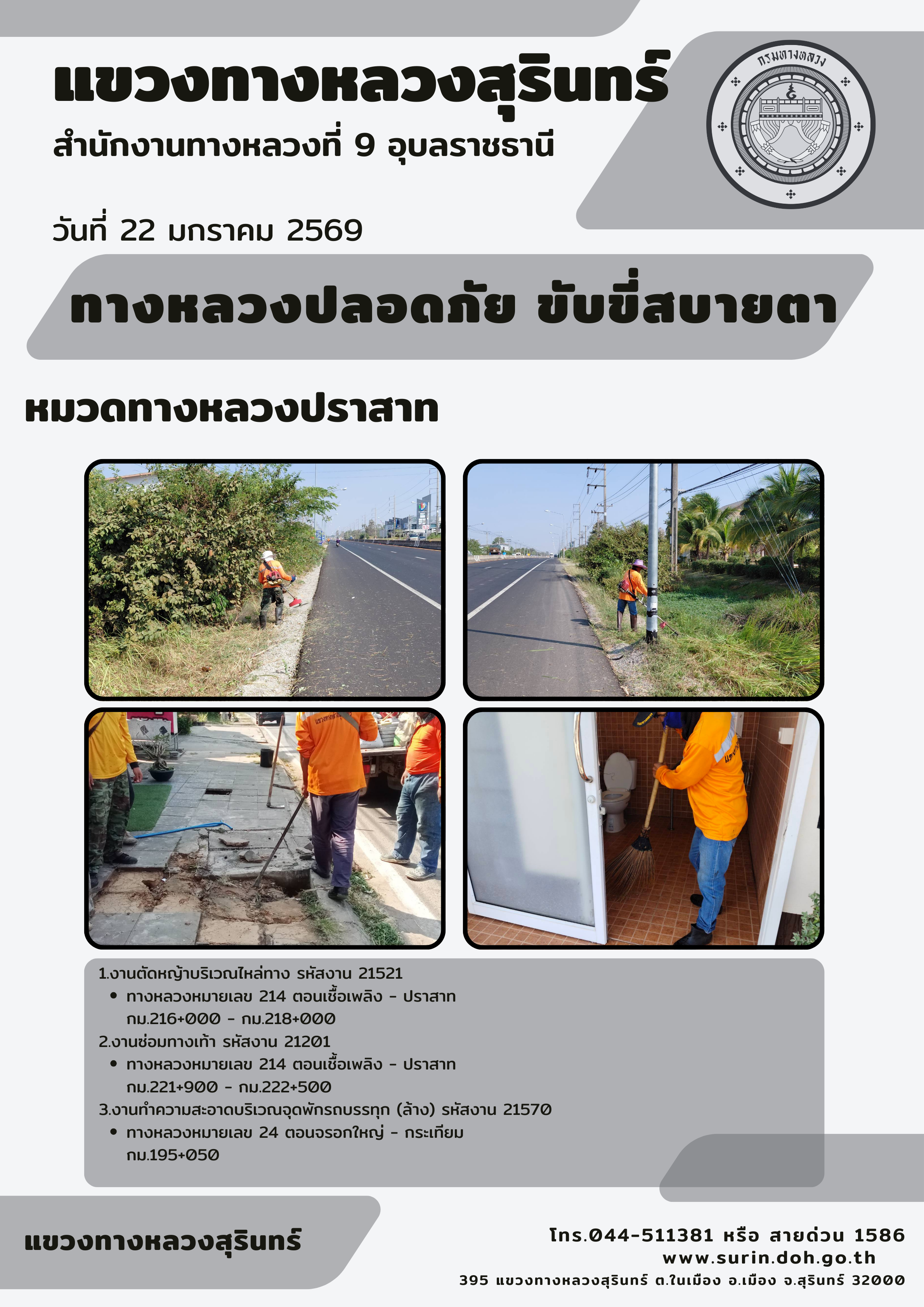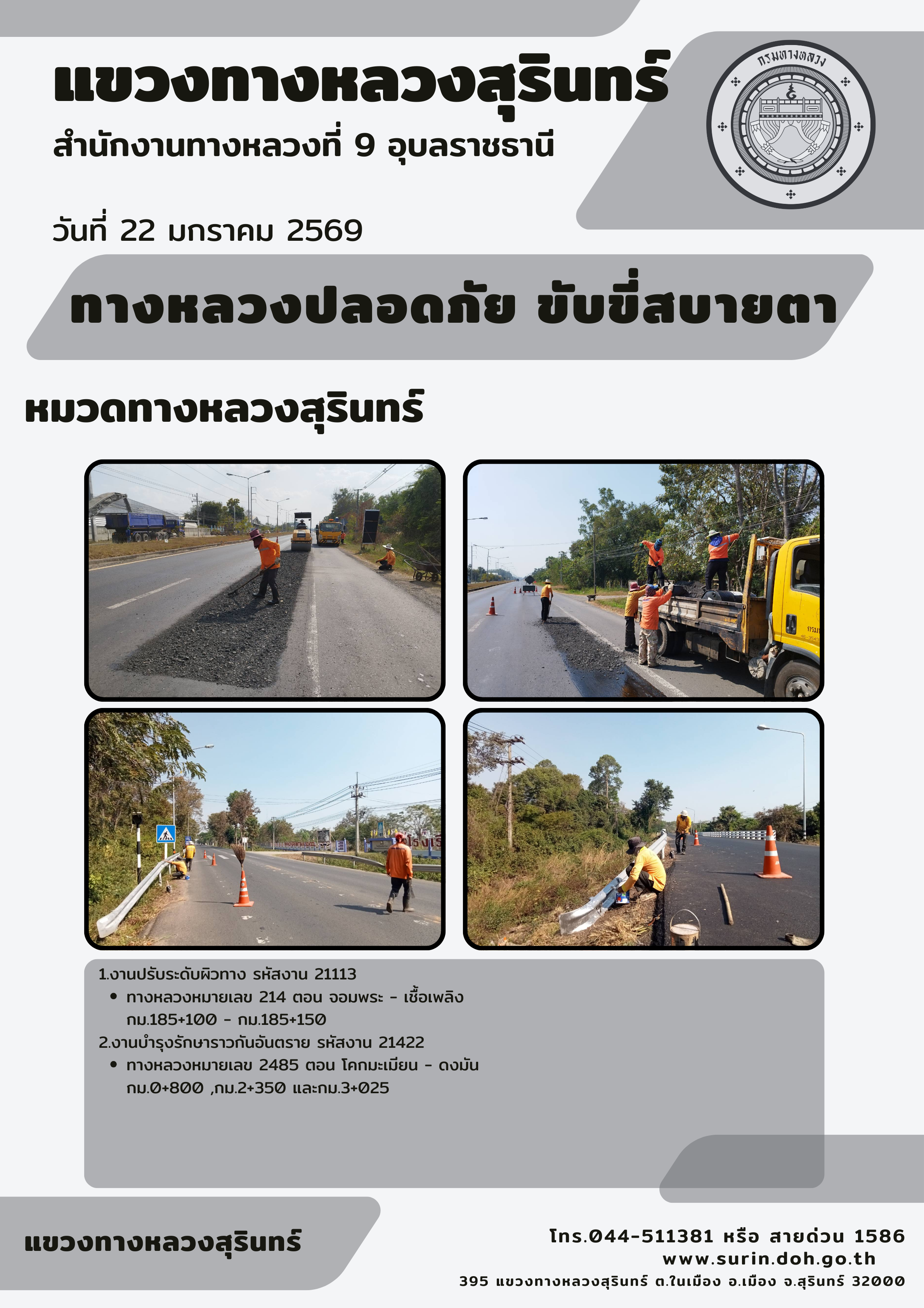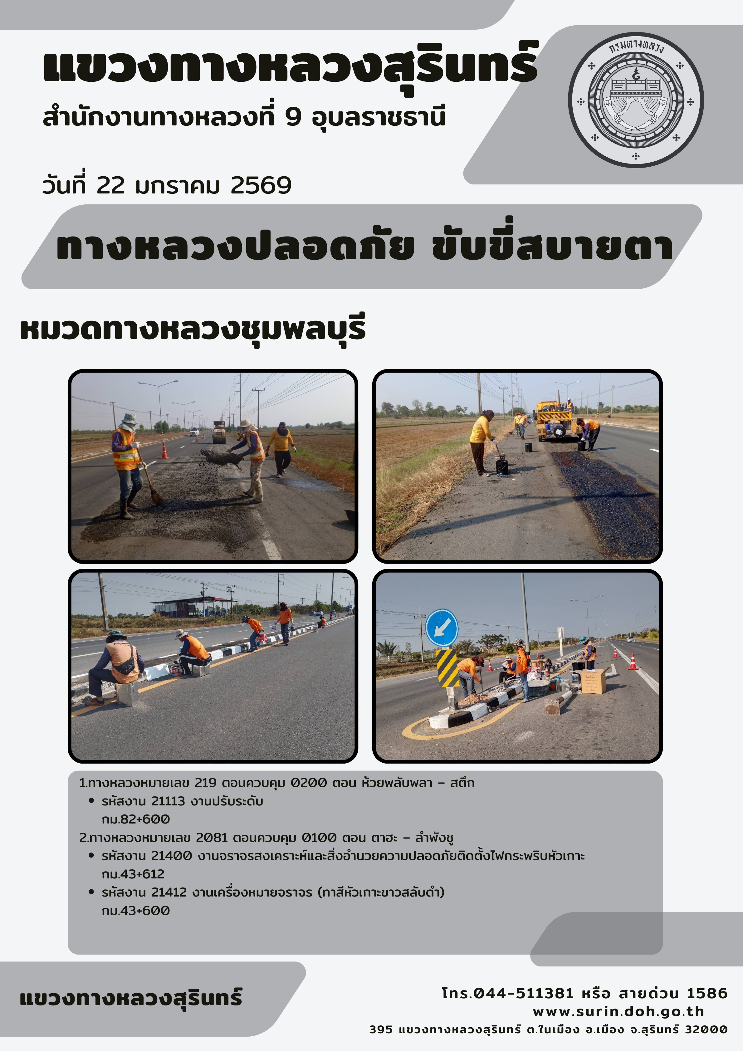 ข้อมูลข่าว : ทางหลวงปลอดภัย ขับขี่สบายตา 22 มกราคม 2569