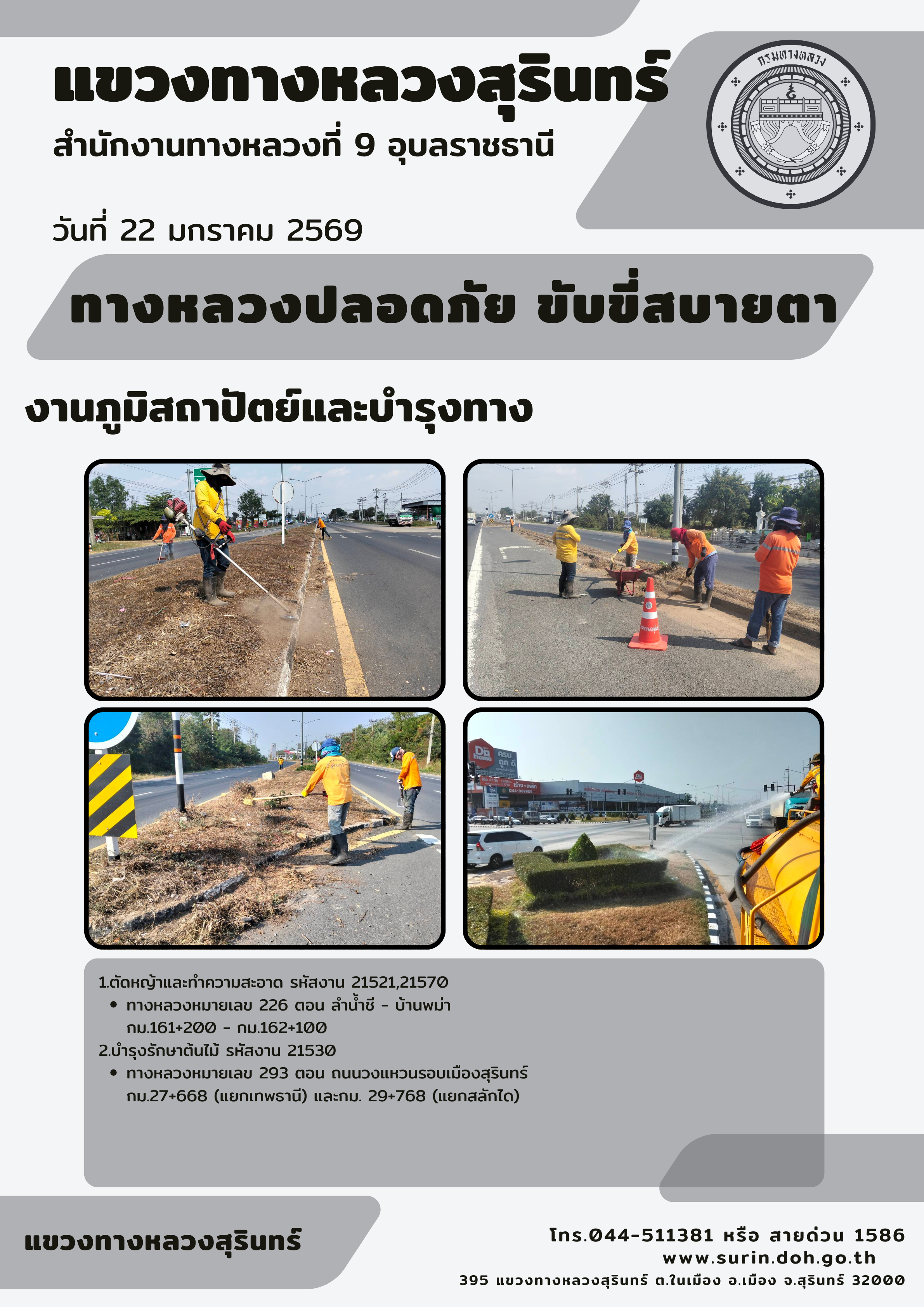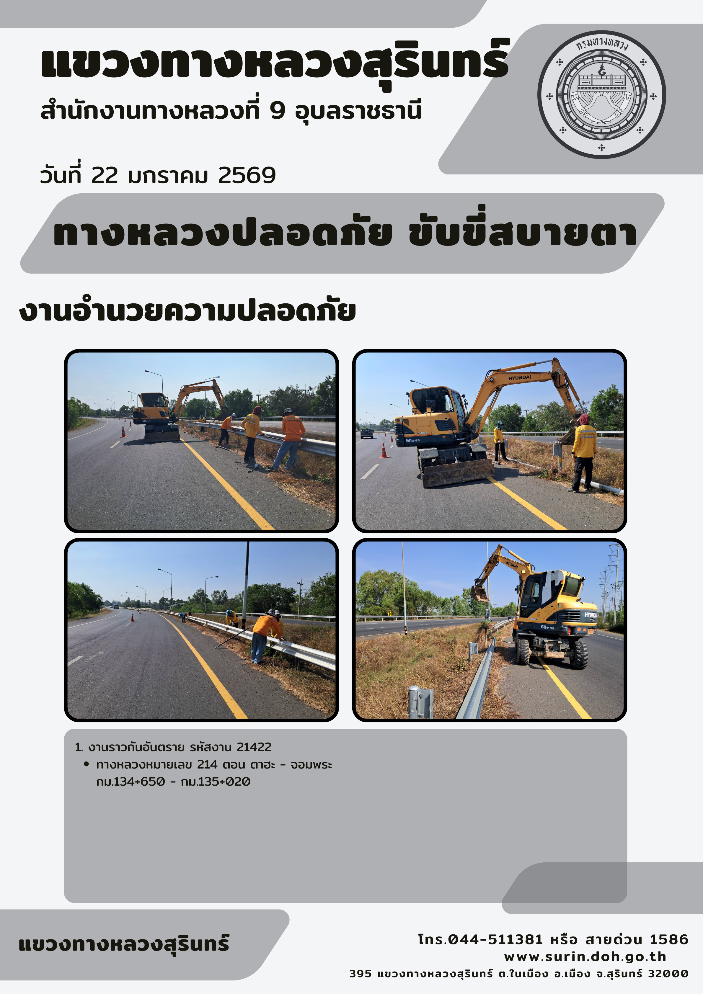 ทางหลวงปลอดภัย ขับขี่สบายตา 22 มกราคม 2569