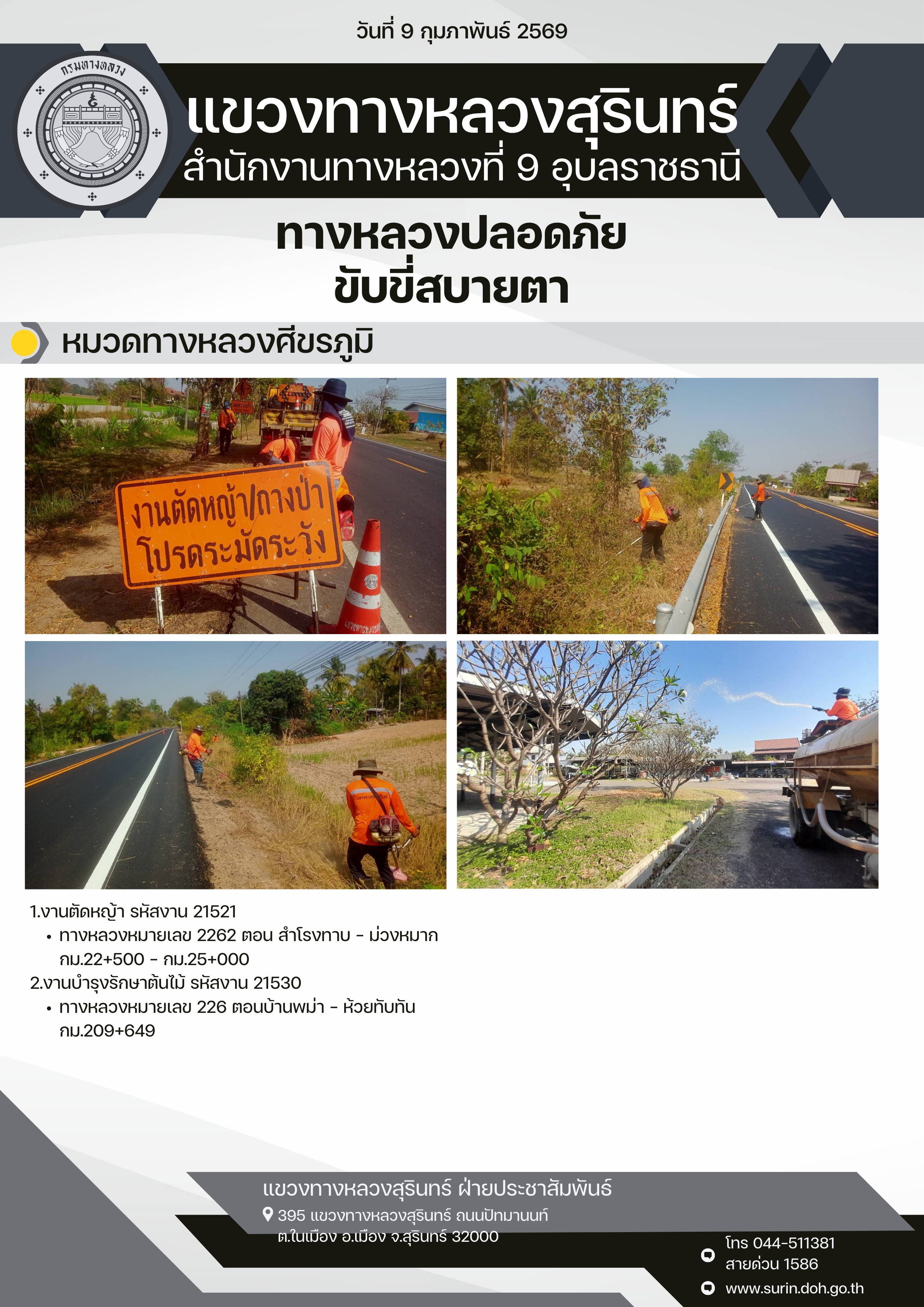 ทางหลวงปลอดภัย ขับขี่สบายตา 9 กุมภาพันธ์ 2569