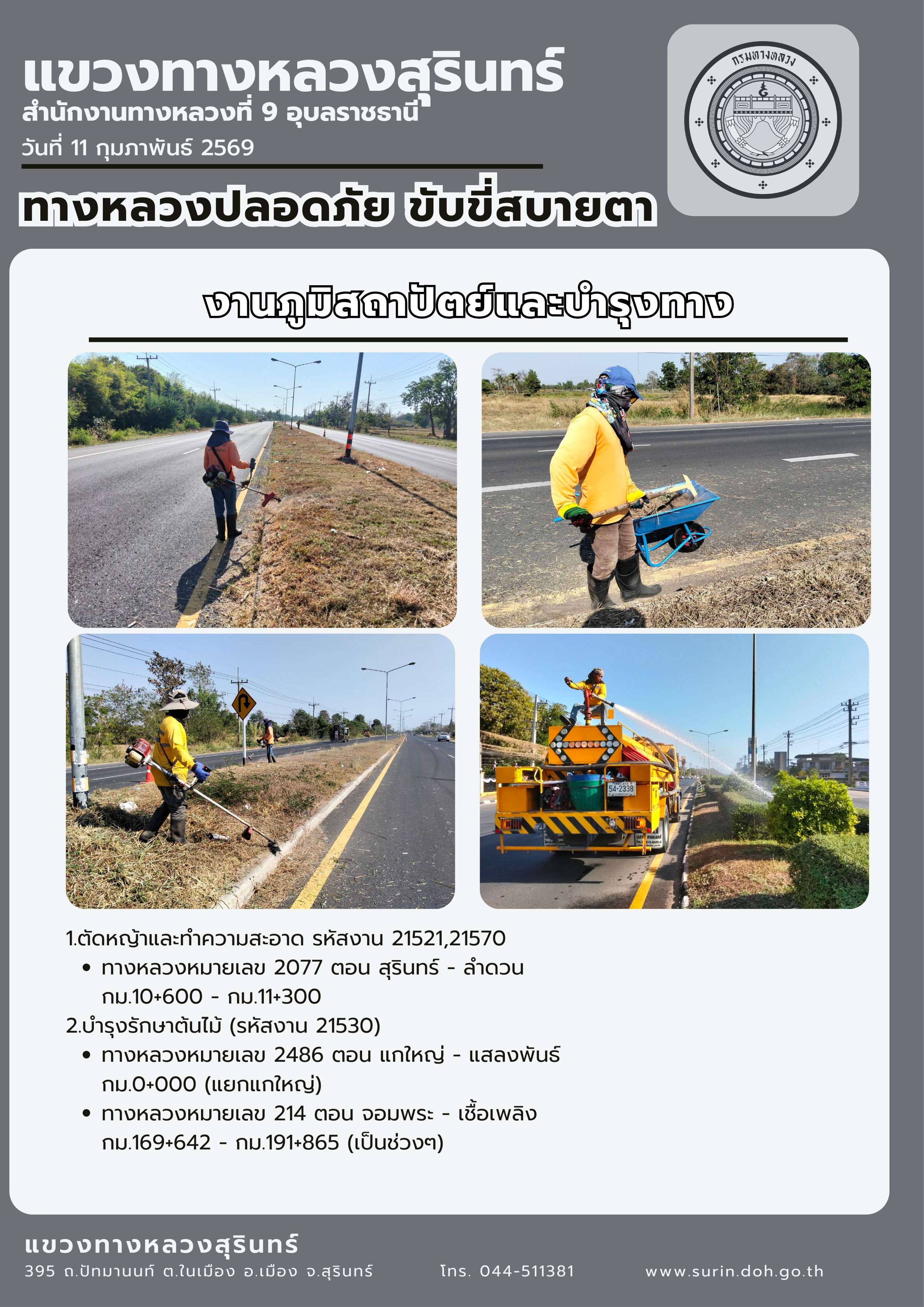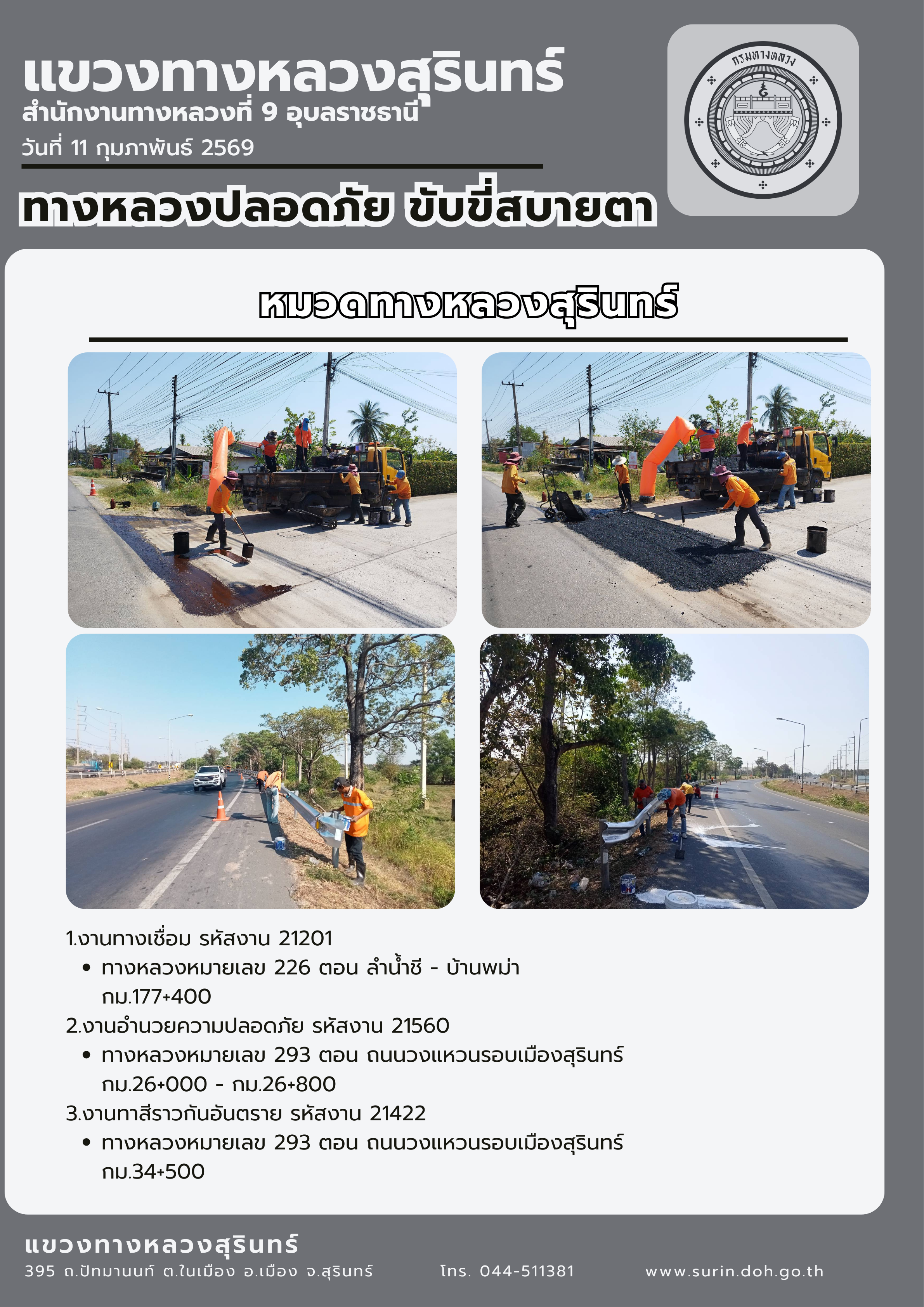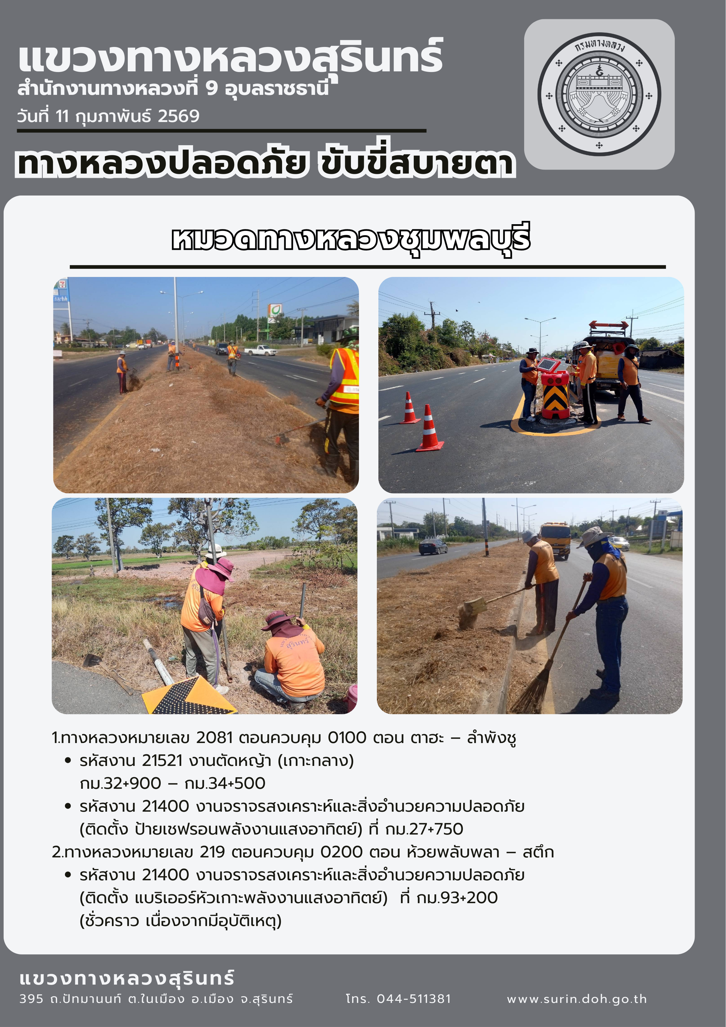 ทางหลวงปลอดภัย ขับขี่สบายตา 11 กุมภาพันธ์ 2569