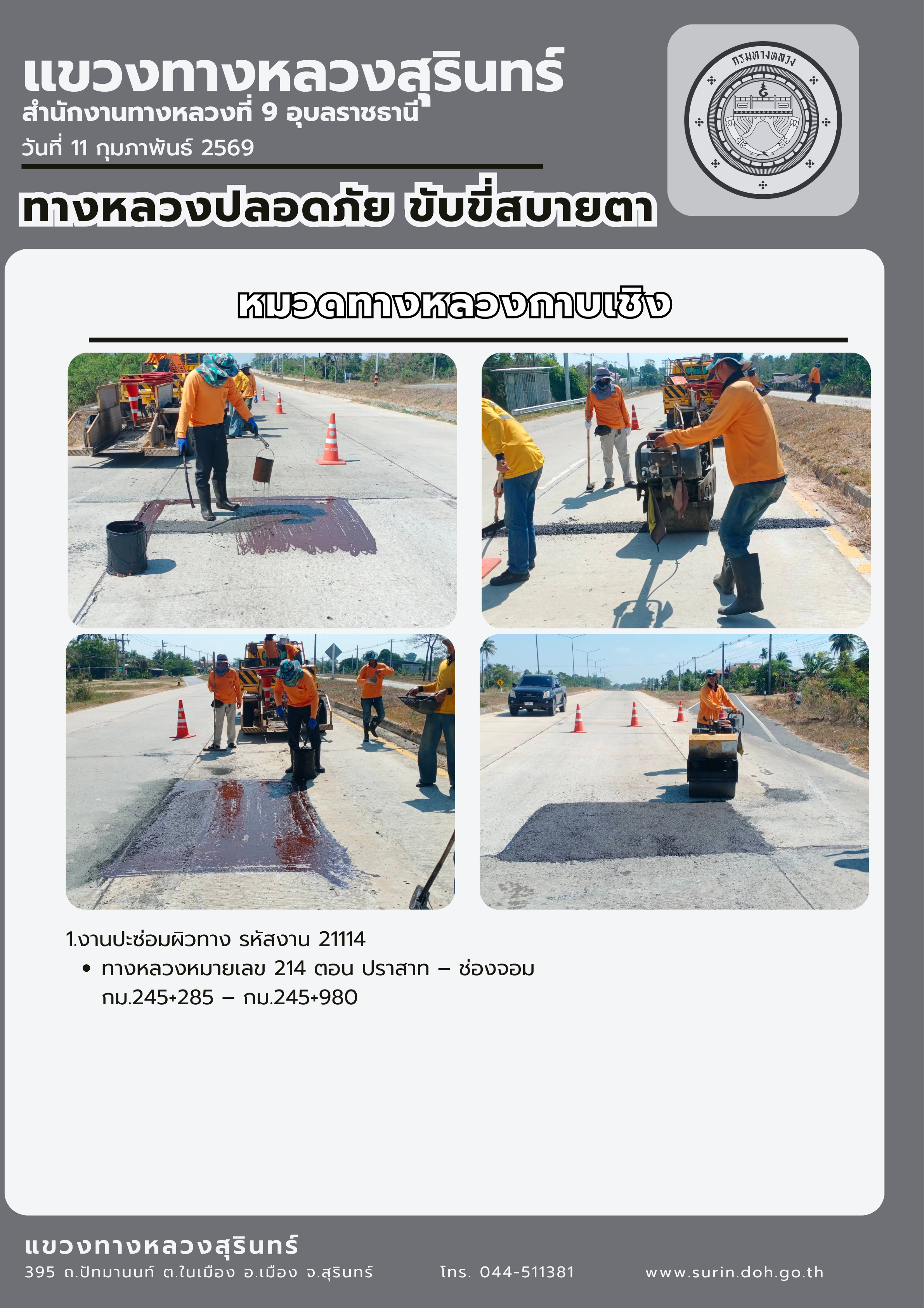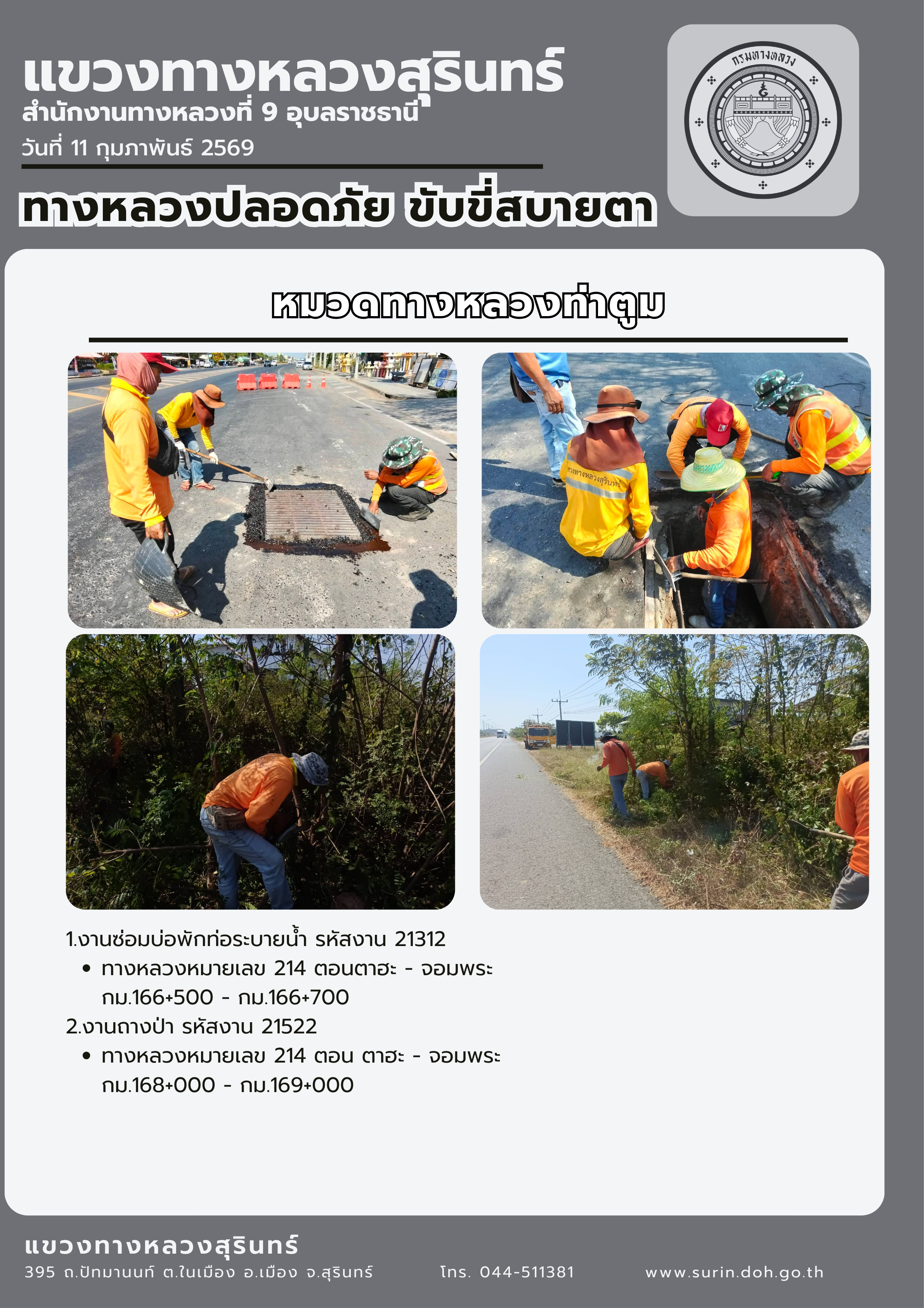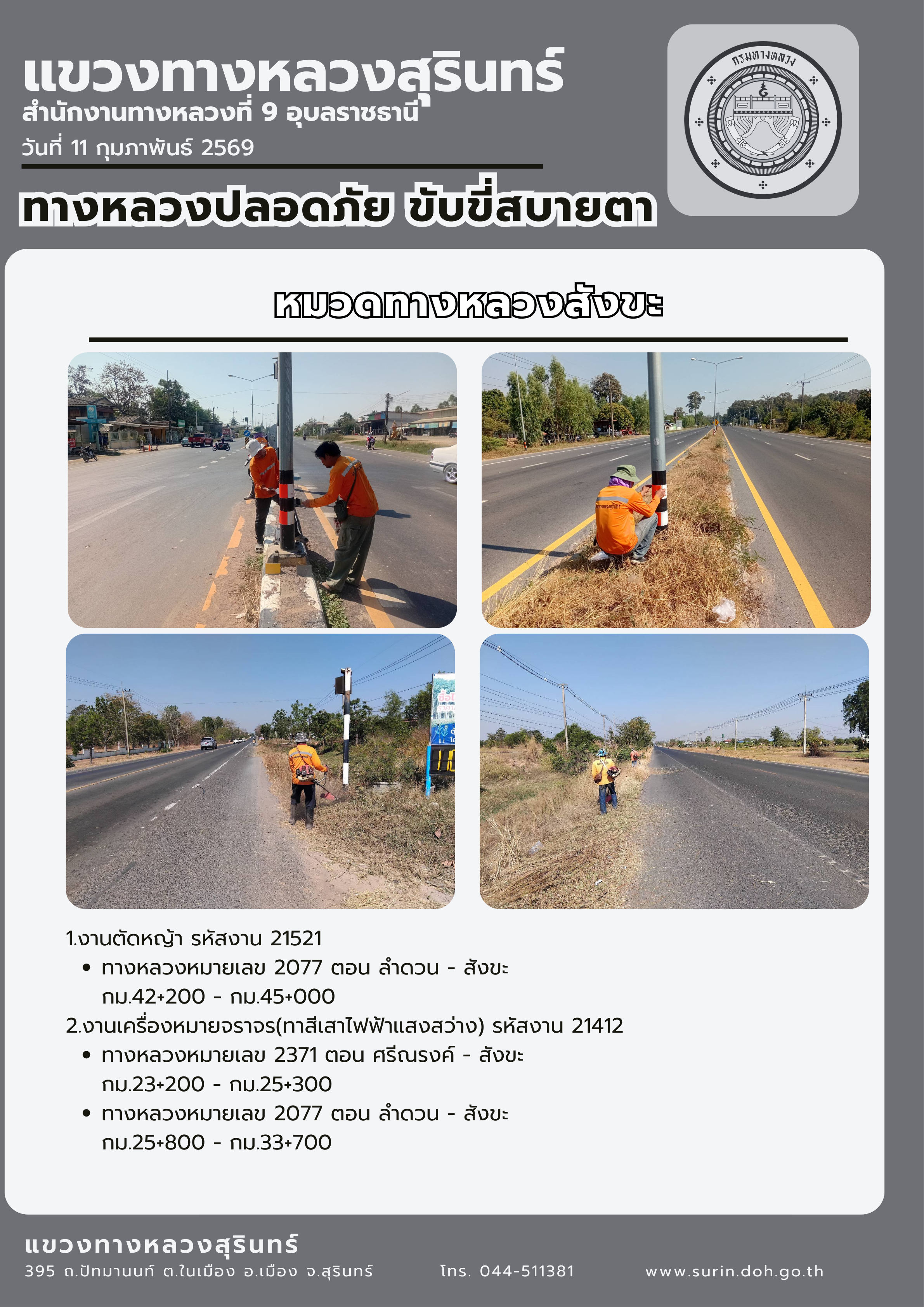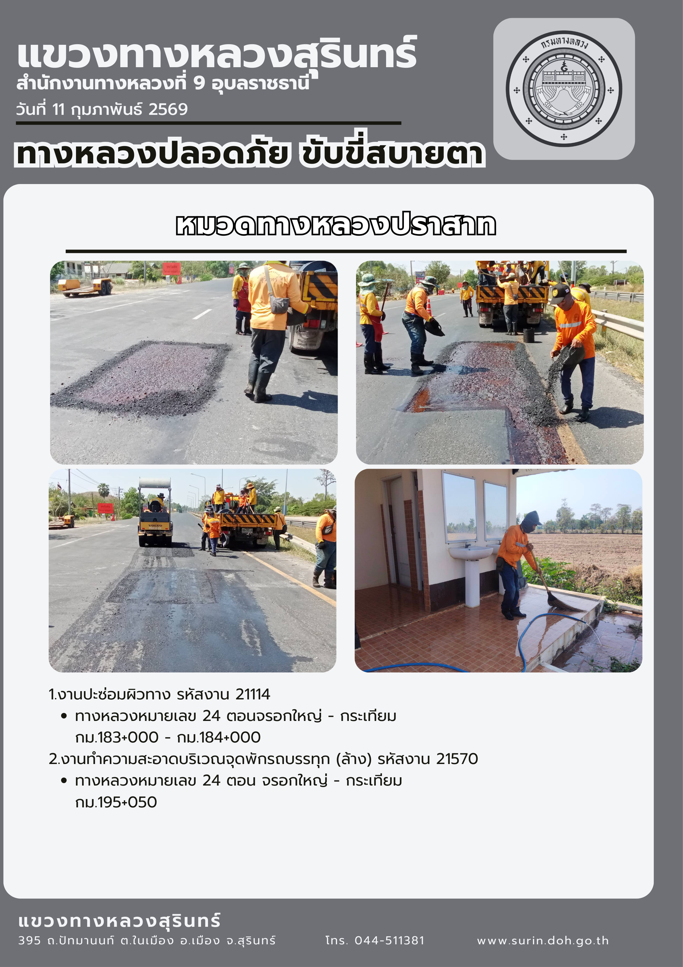 ทางหลวงปลอดภัย ขับขี่สบายตา 11 กุมภาพันธ์ 2569