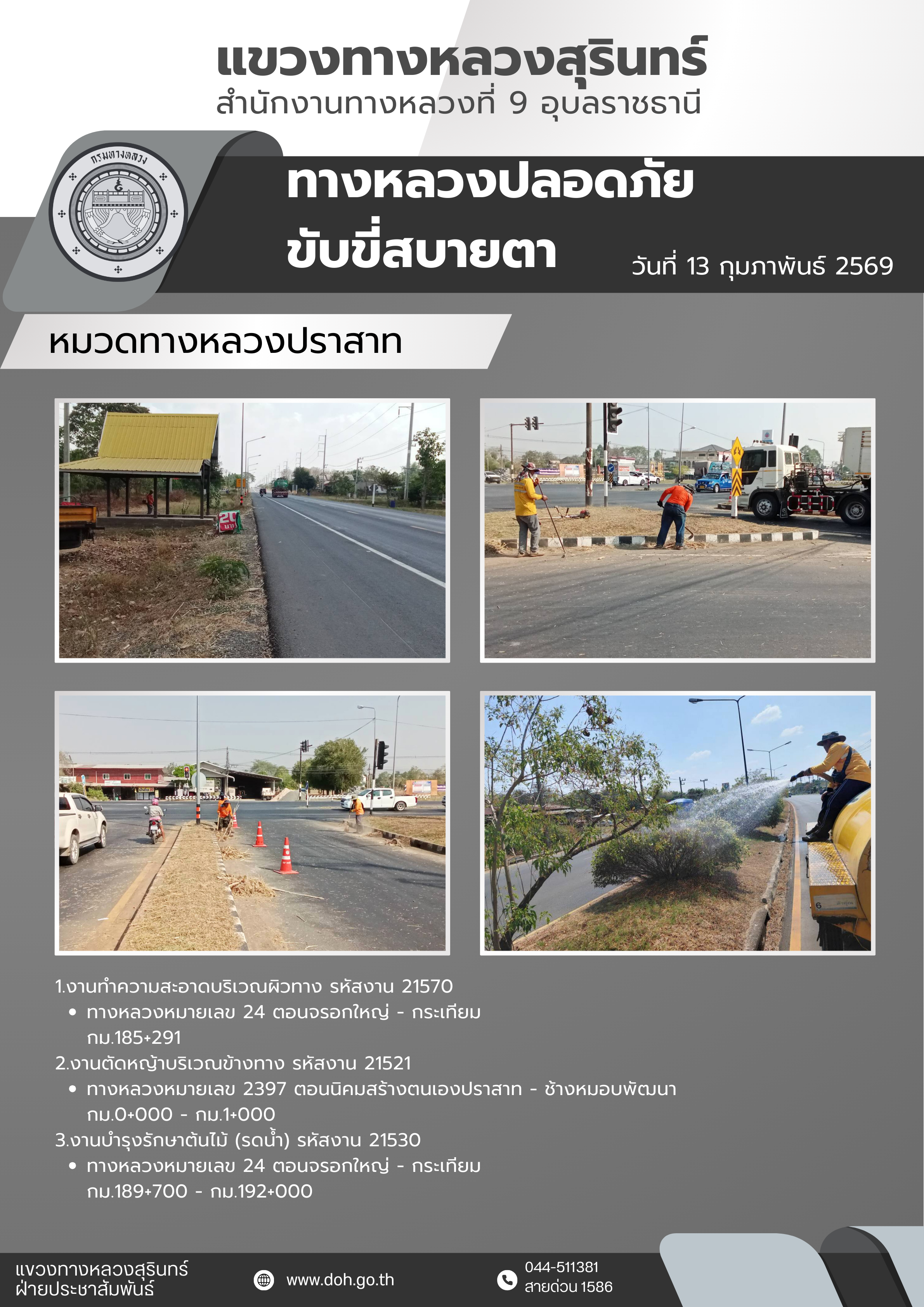 ทางหลวงปลอดภัย ขับขี่สบายตา 13 กุมภาพันธ์ 2569