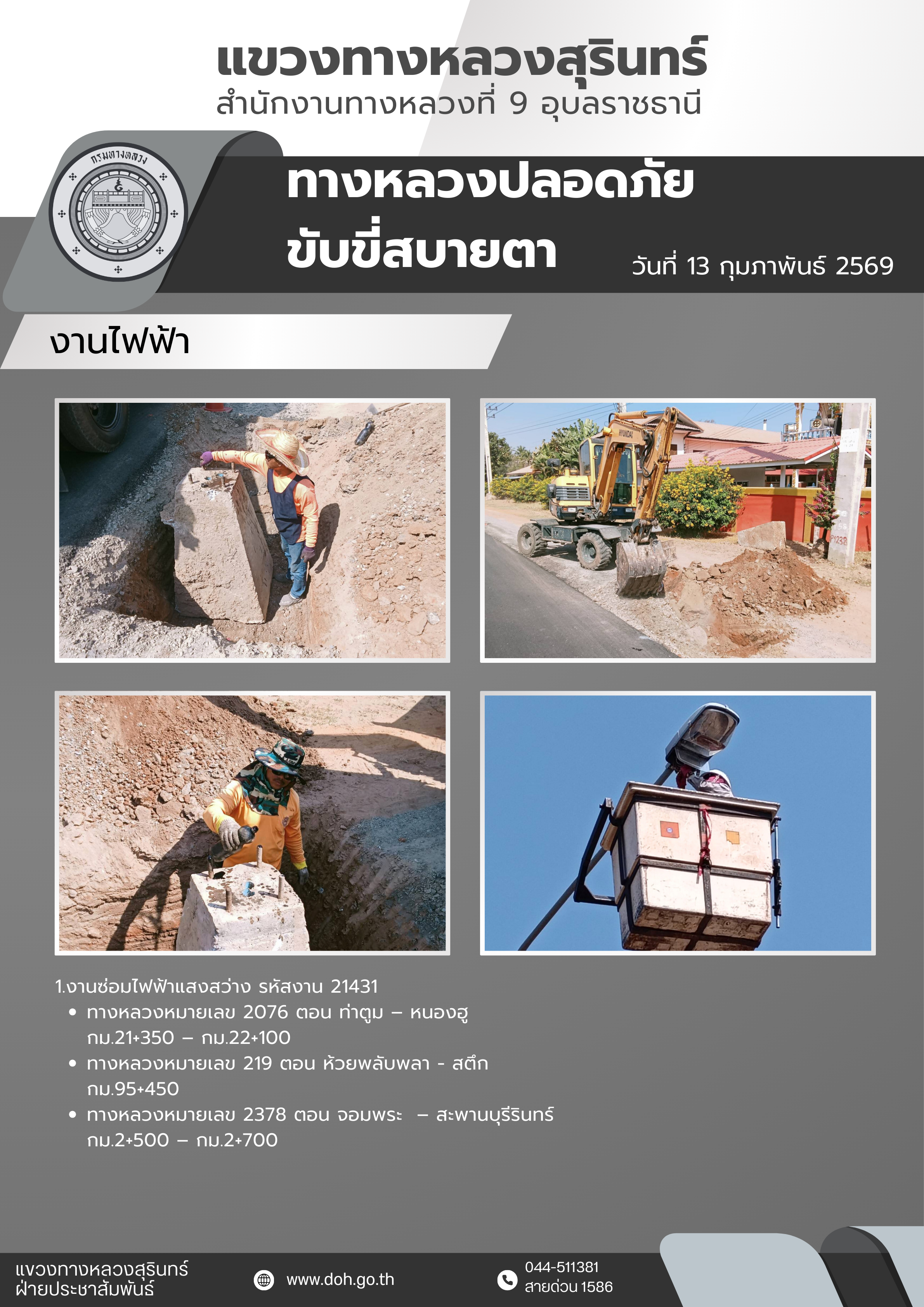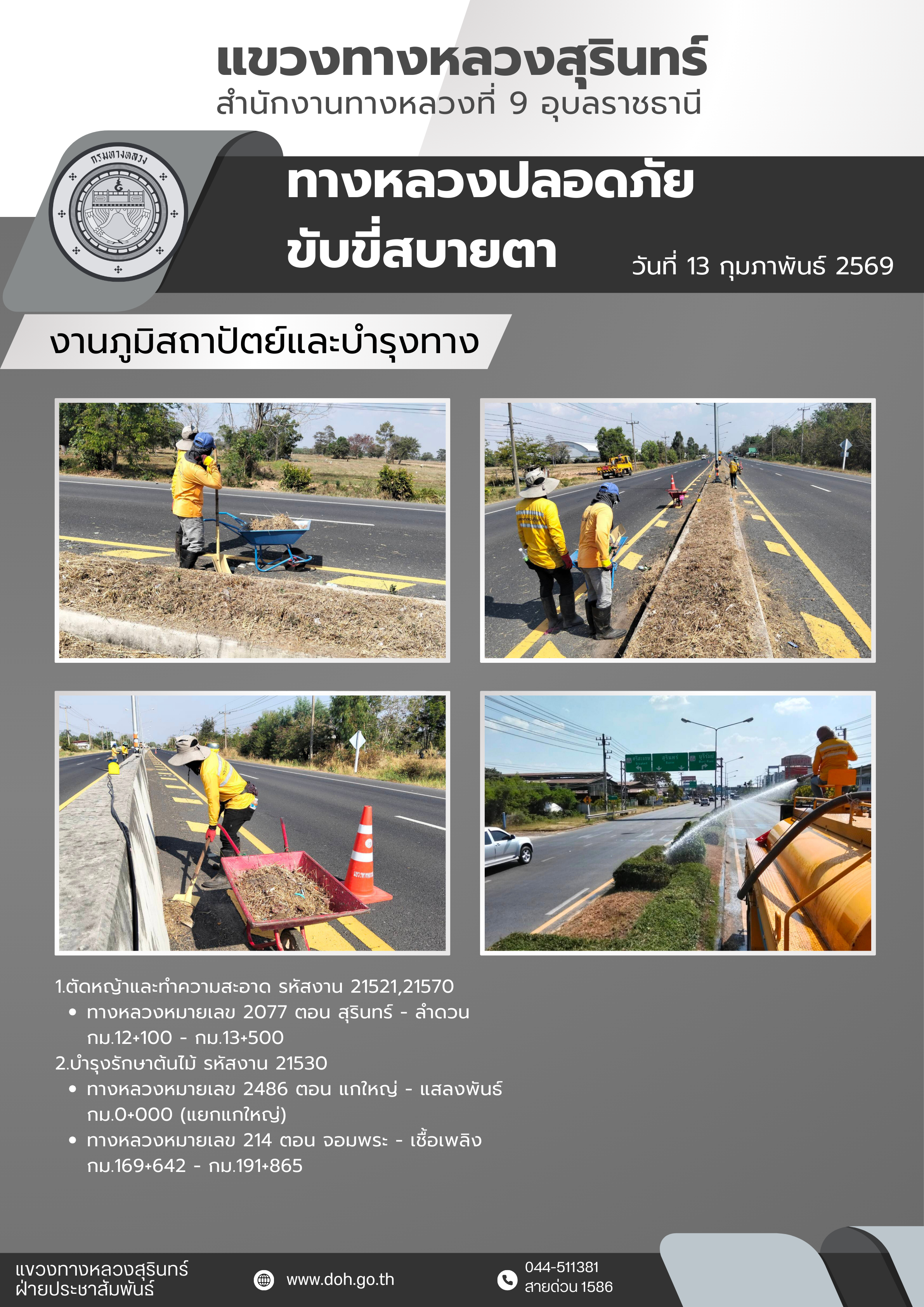 ข้อมูลข่าว : ทางหลวงปลอดภัย ขับขี่สบายตา 13 กุมภาพันธ์ 2569