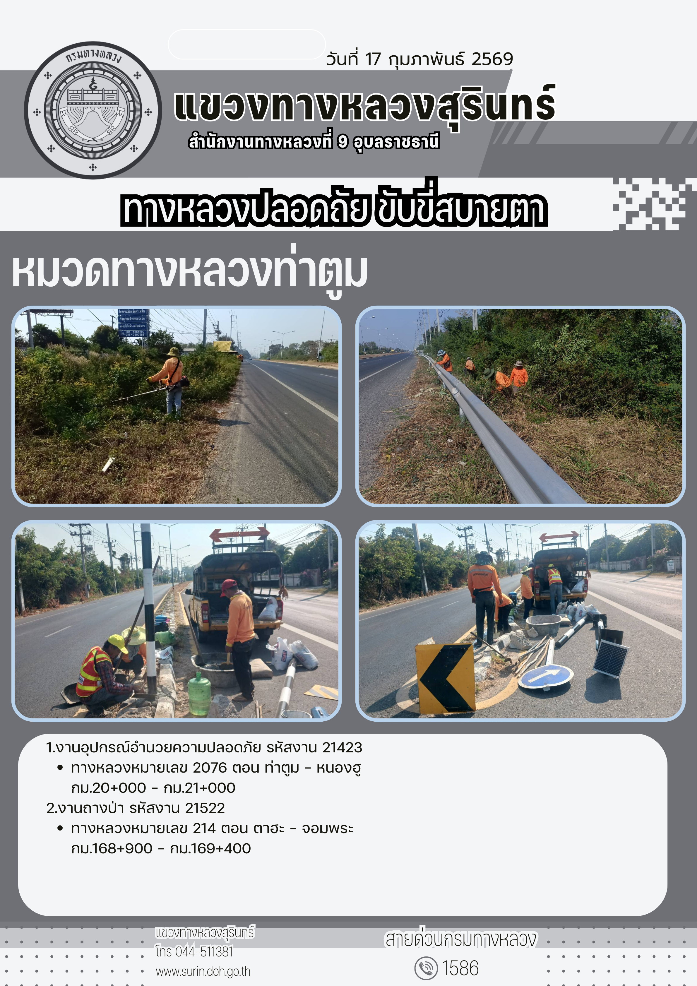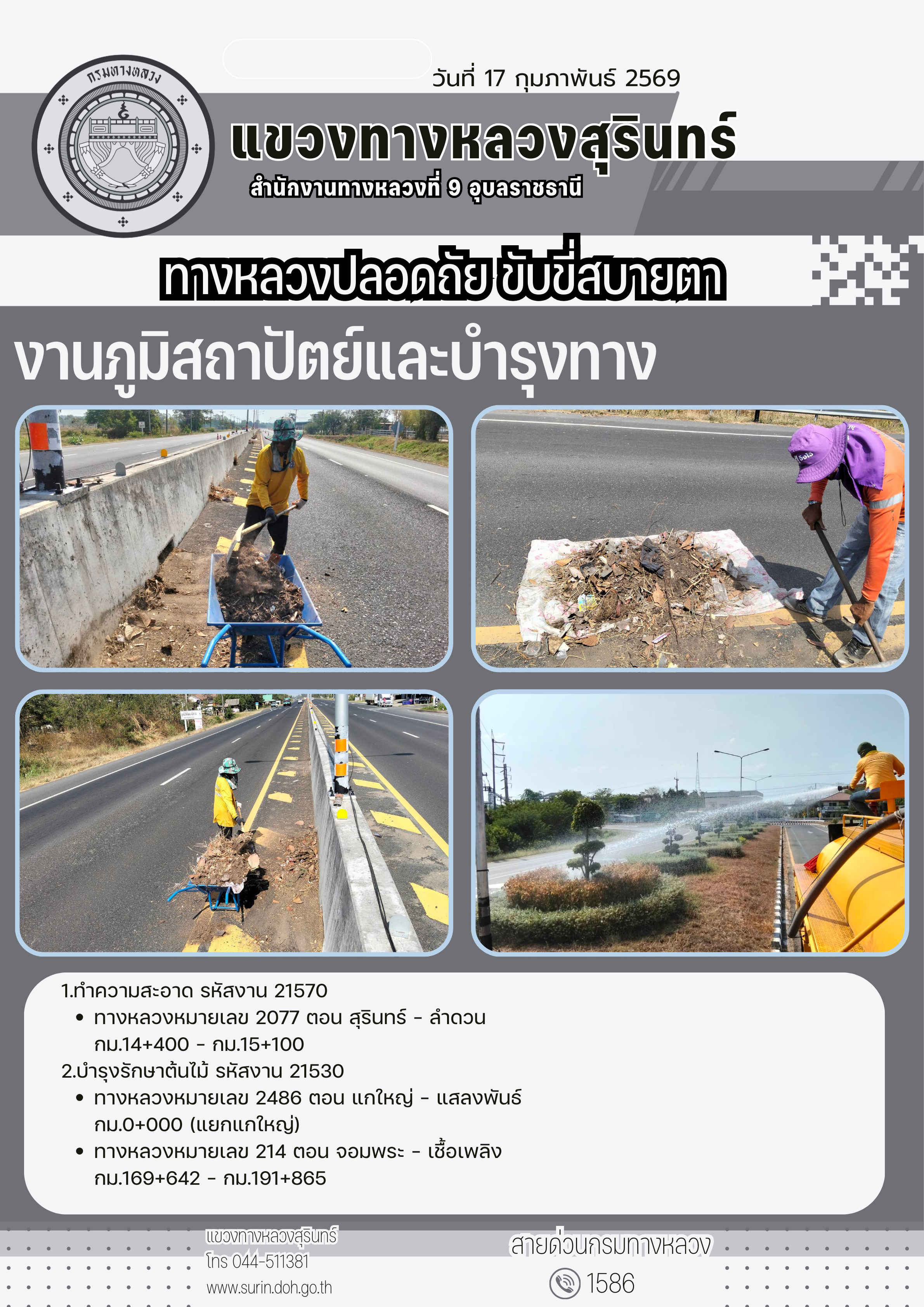 ข้อมูลข่าว : ทางหลวงปลอดภัย ขับขี่สบายตา 17 กุมภาพันธ์ 2569