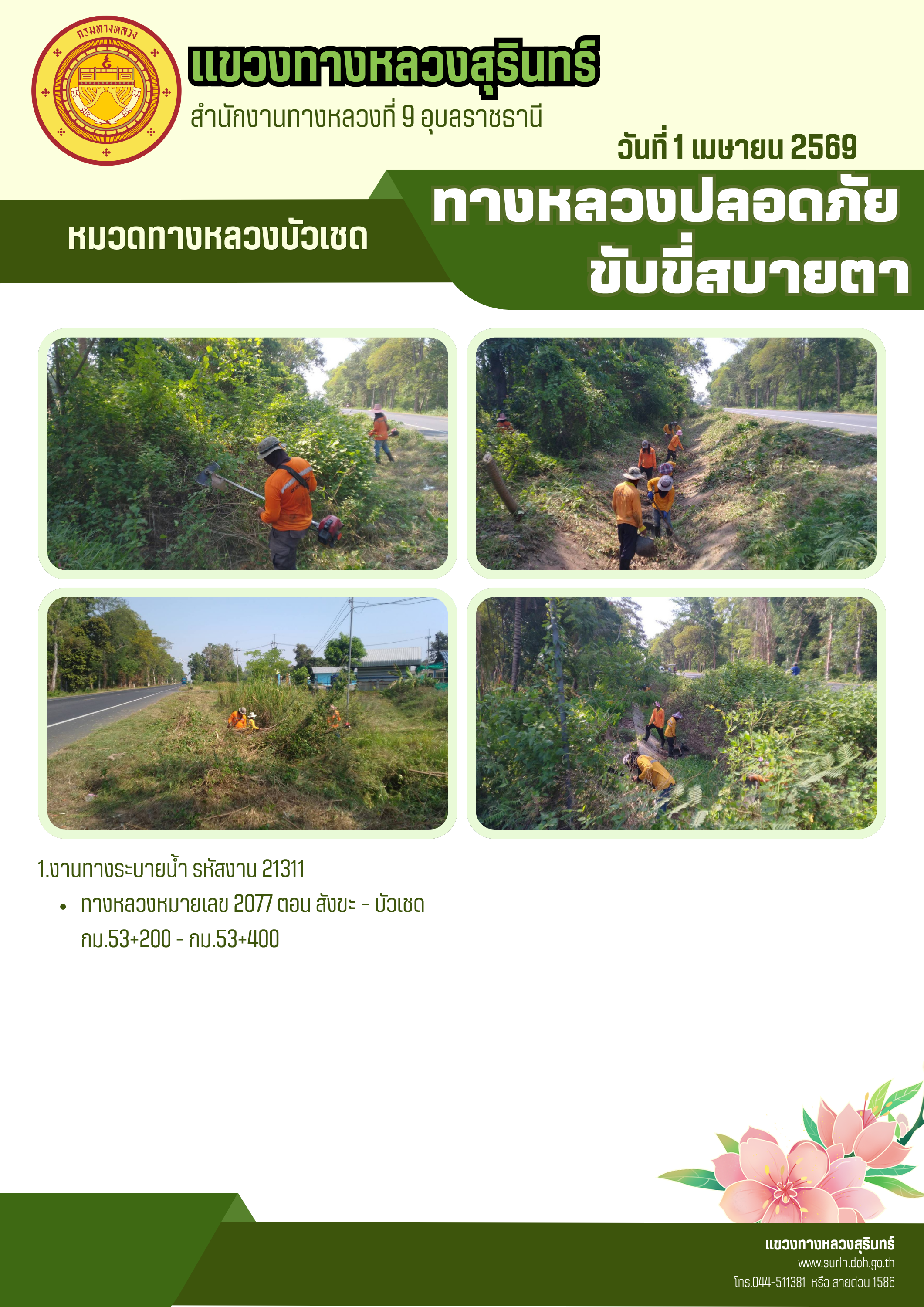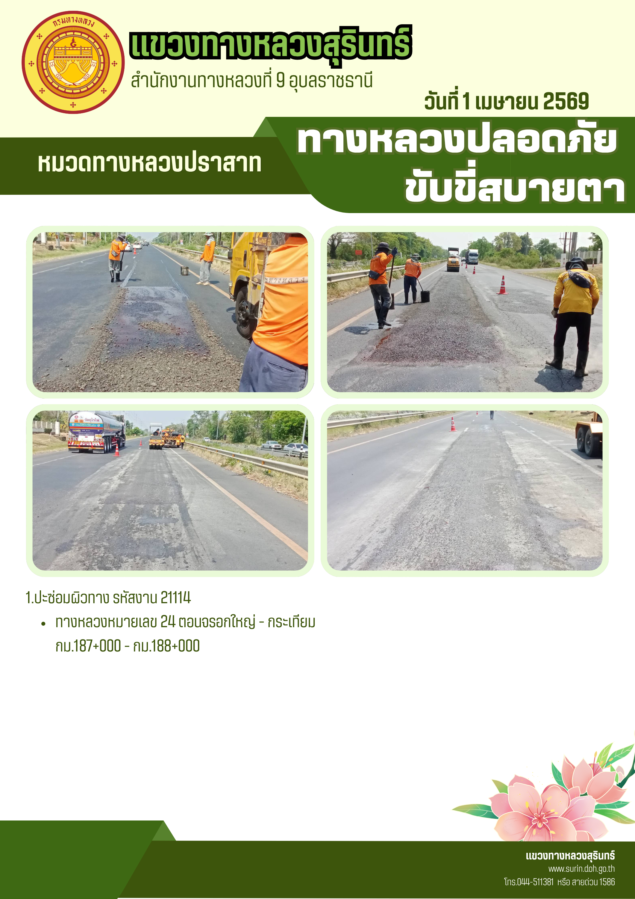 ข้อมูลข่าว : ทางหลวงปลอดภัย ขับขี่สบายตา 1 เมษายน 2569