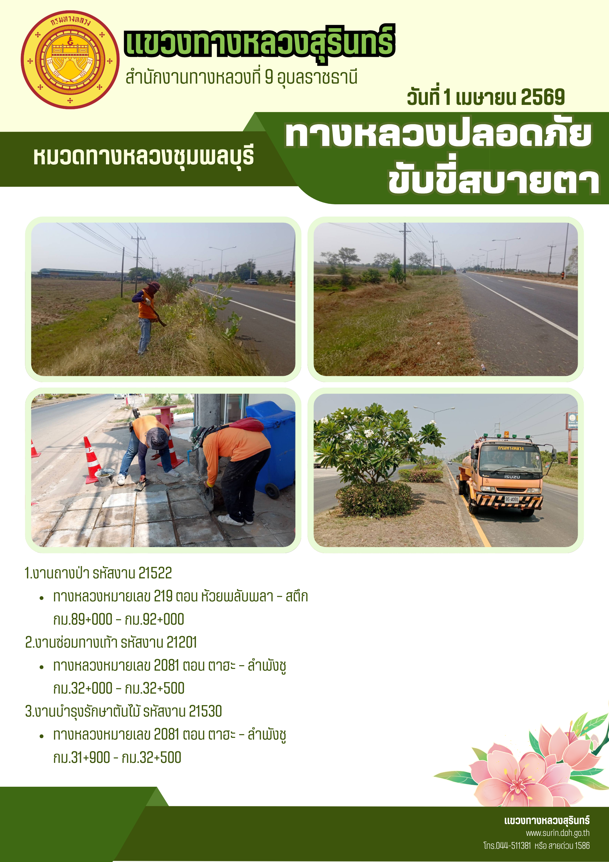 ทางหลวงปลอดภัย ขับขี่สบายตา 1 เมษายน 2569